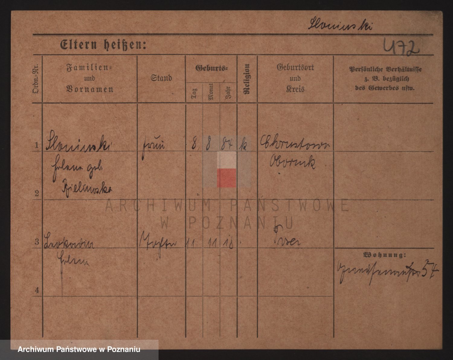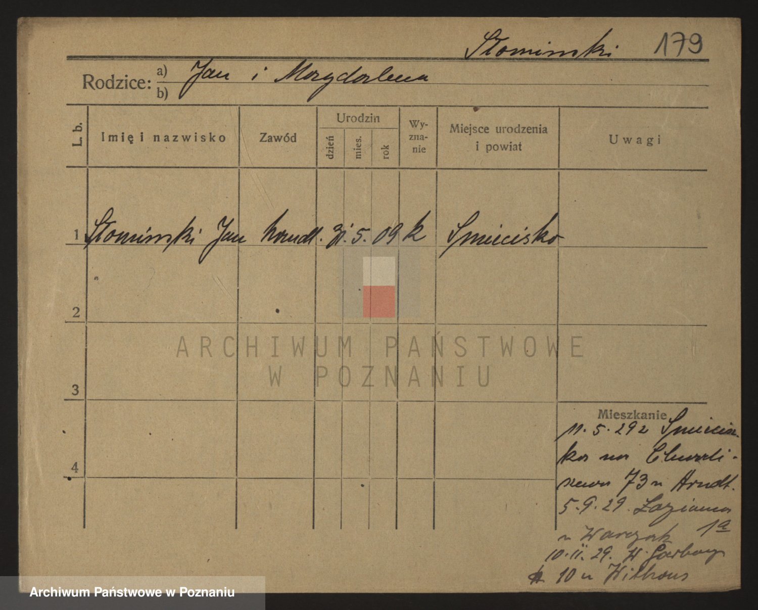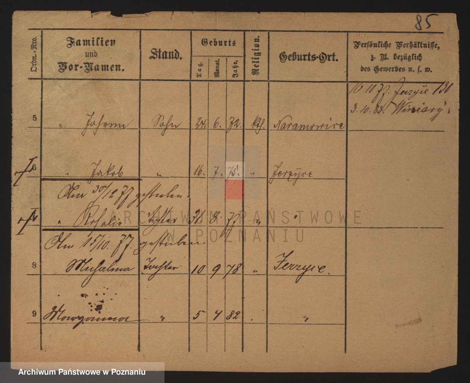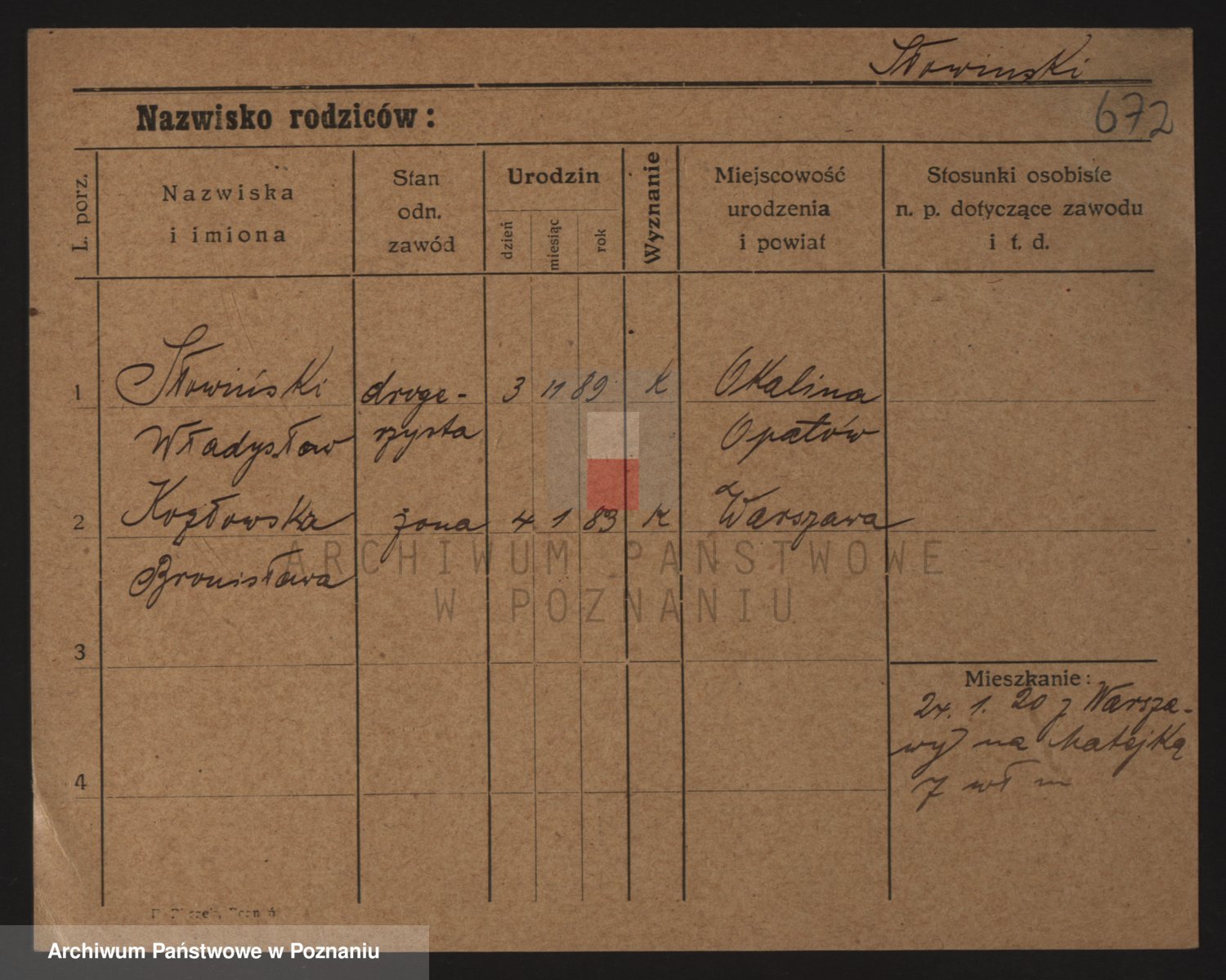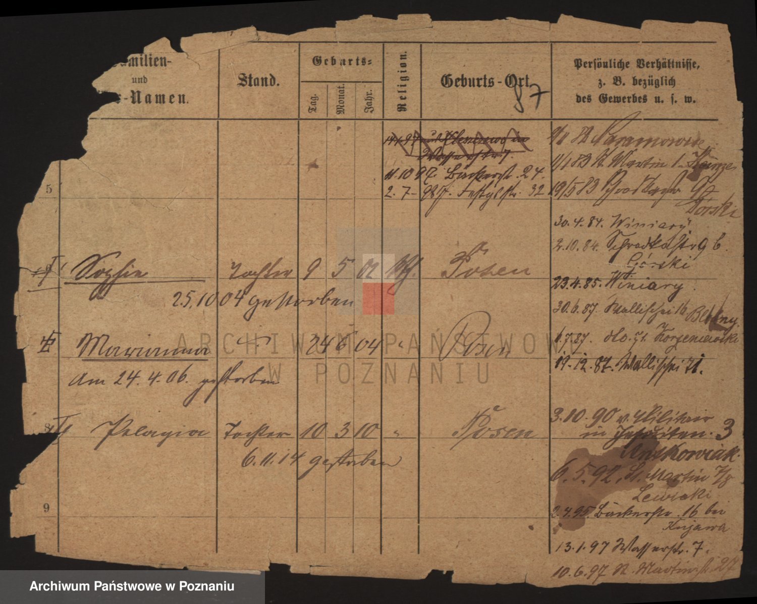Podgląd karty osobowej dostępny jest po kliknięciu na nazwisko lub ikonkę karty. Można dokonywać powiększenia (ikony na górze) lub przechodzić między kolejnymi skanami (strzałki po bokach).