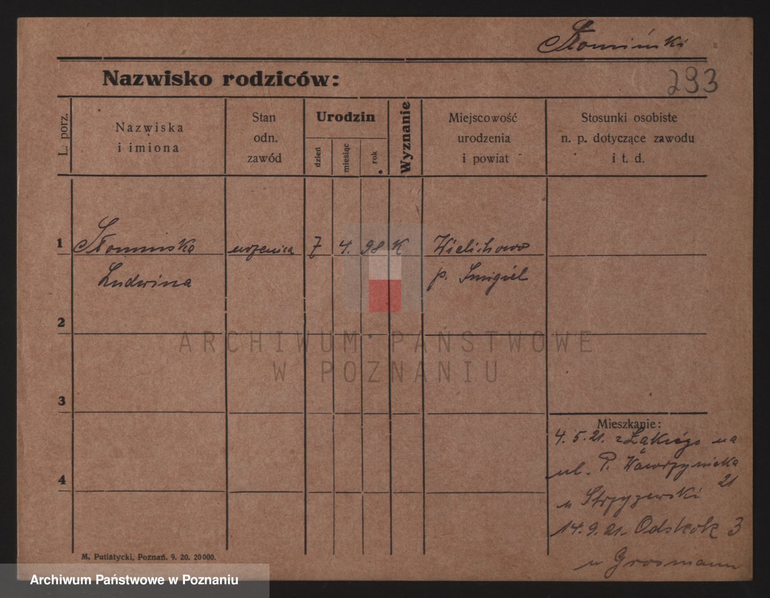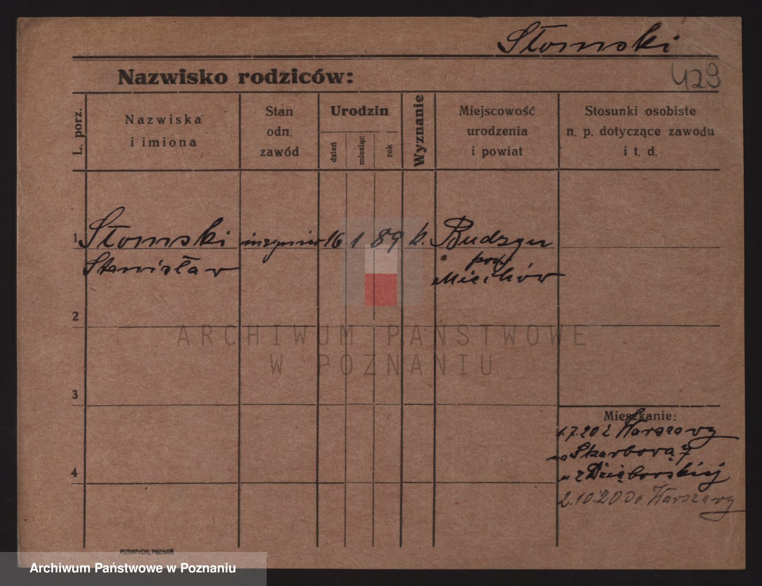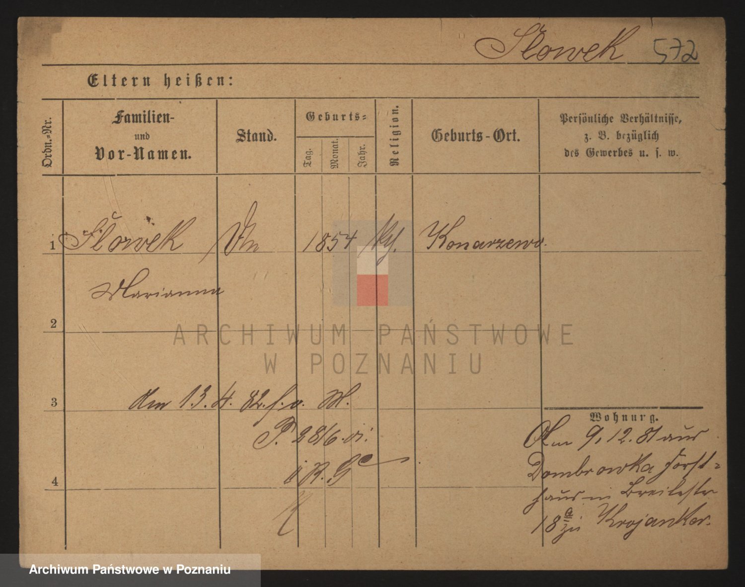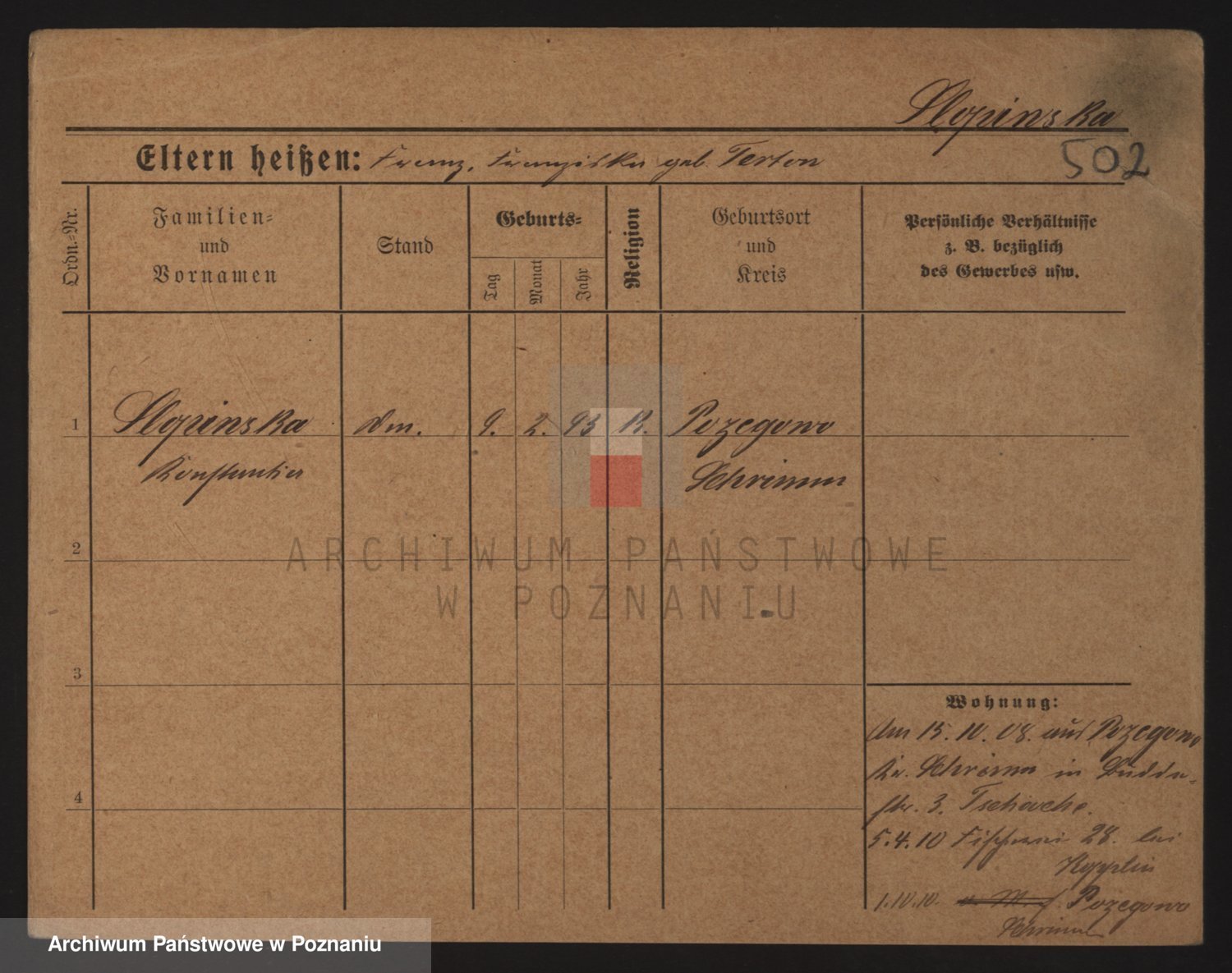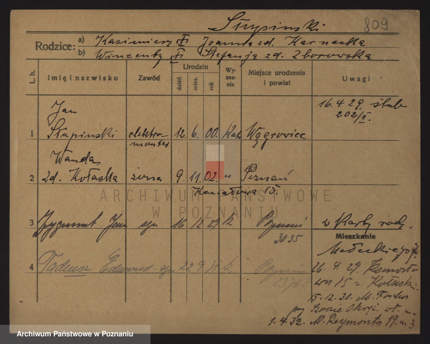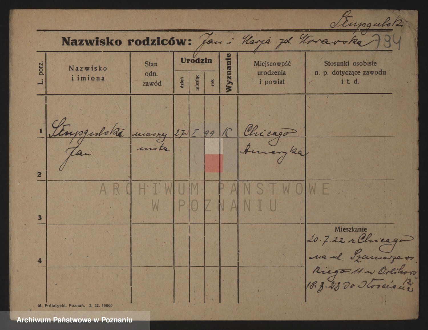 Podgląd karty osobowej dostępny jest po kliknięciu na nazwisko lub ikonkę karty. Można dokonywać powiększenia (ikony na górze) lub przechodzić między kolejnymi skanami (strzałki po bokach).