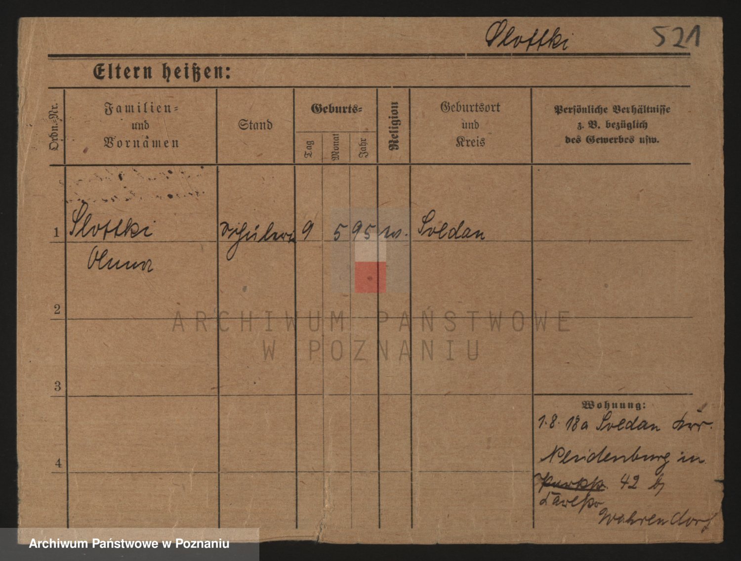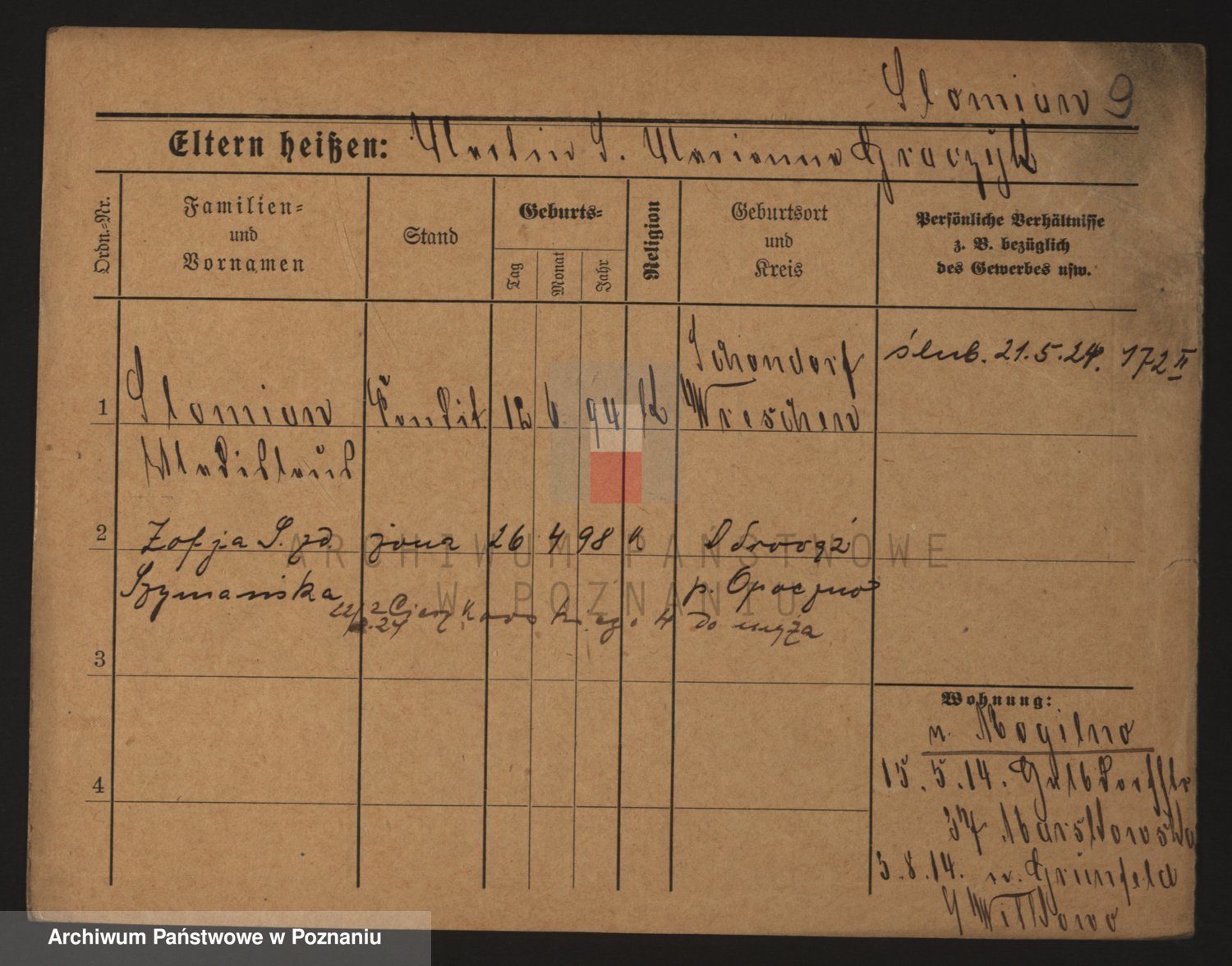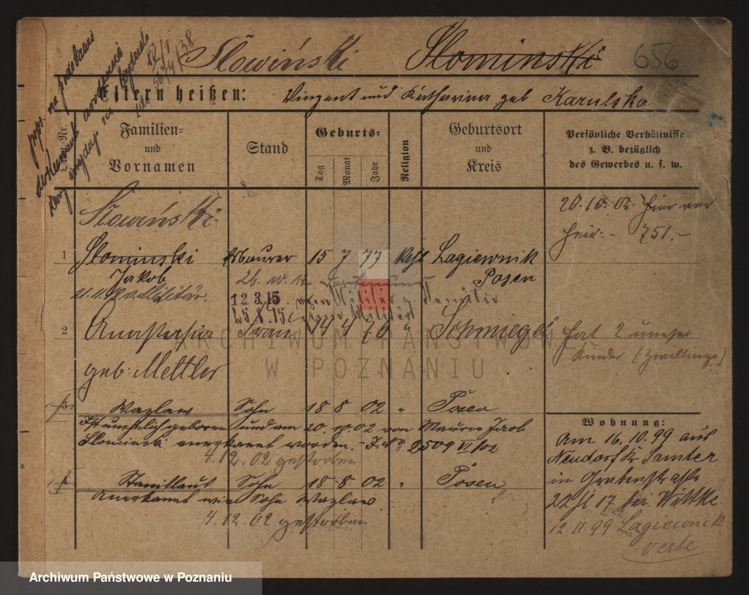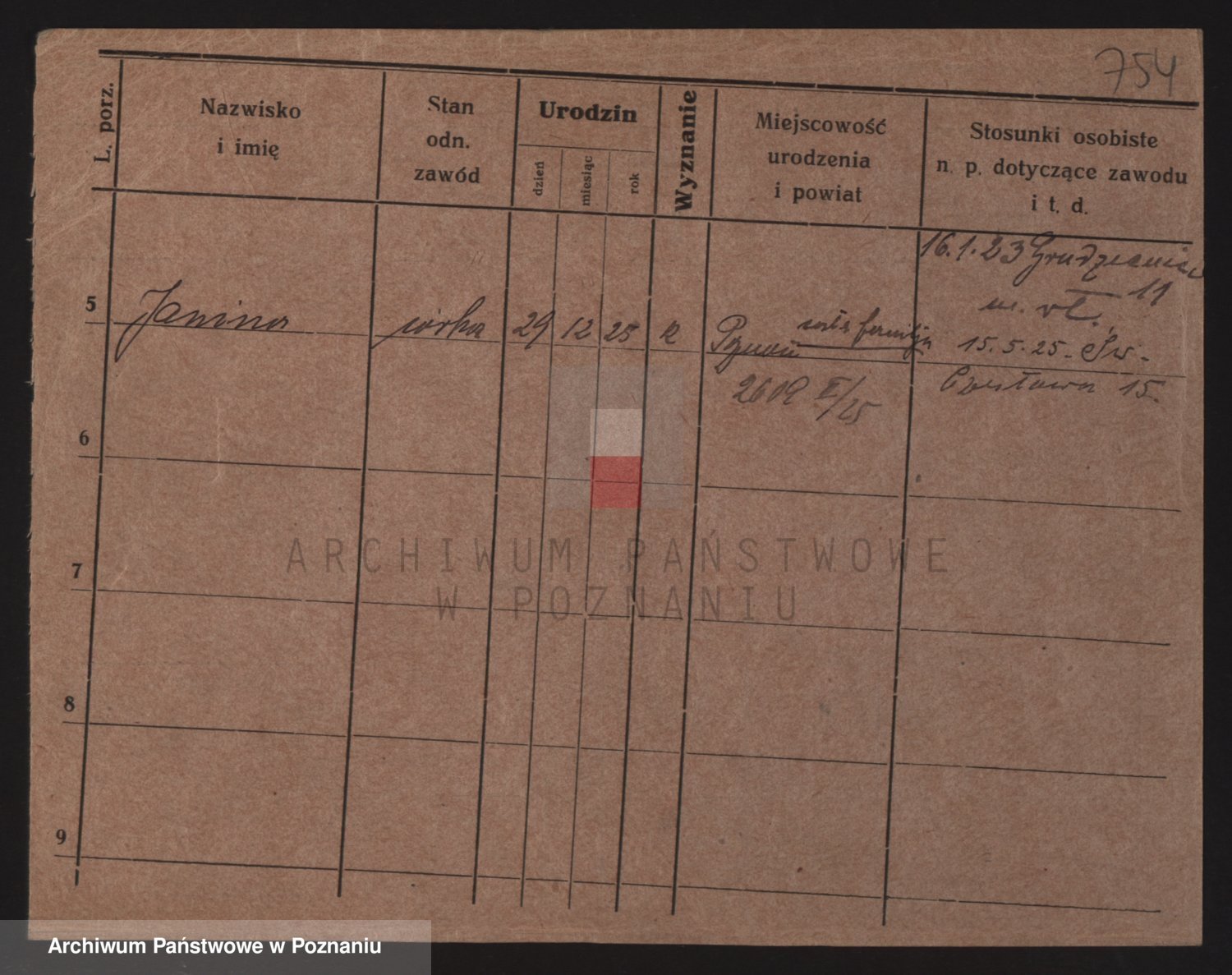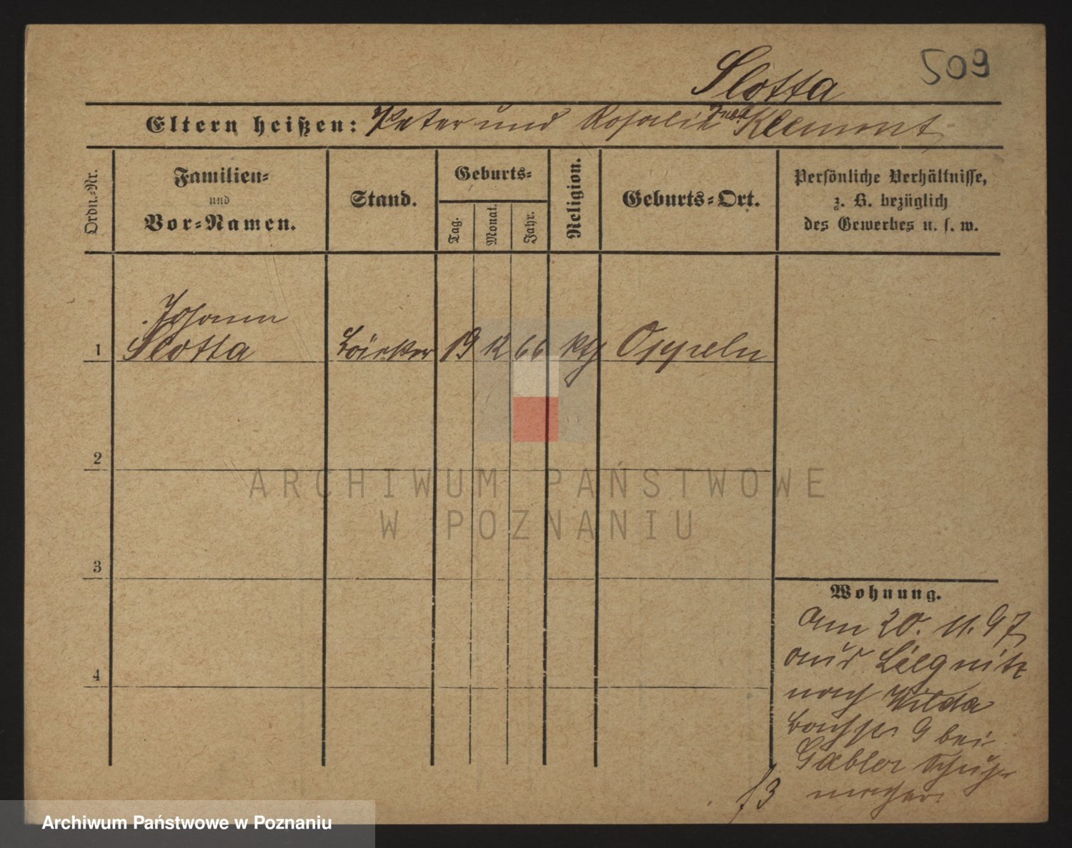 Podgląd karty osobowej dostępny jest po kliknięciu na nazwisko lub ikonkę karty. Można dokonywać powiększenia (ikony na górze) lub przechodzić między kolejnymi skanami (strzałki po bokach).