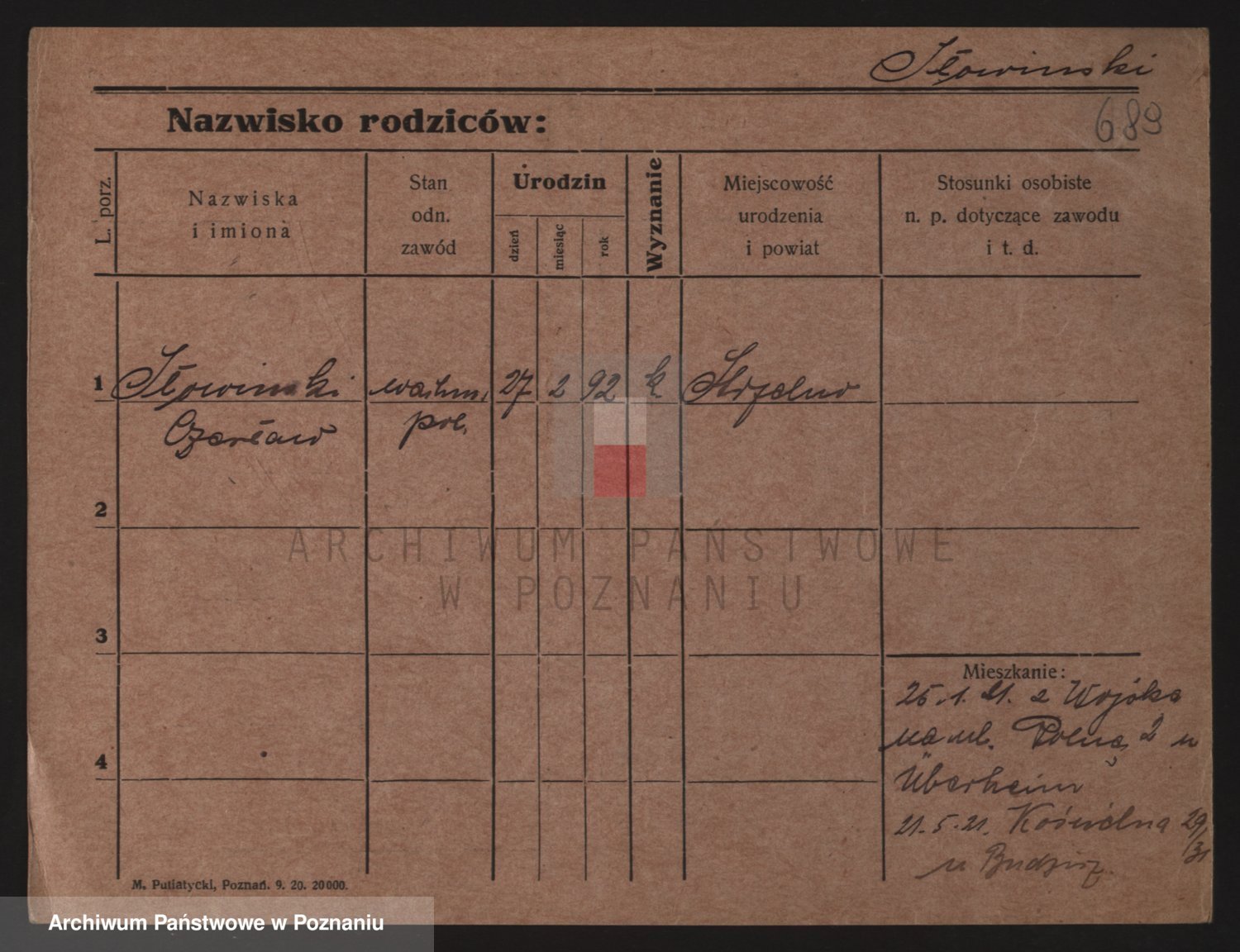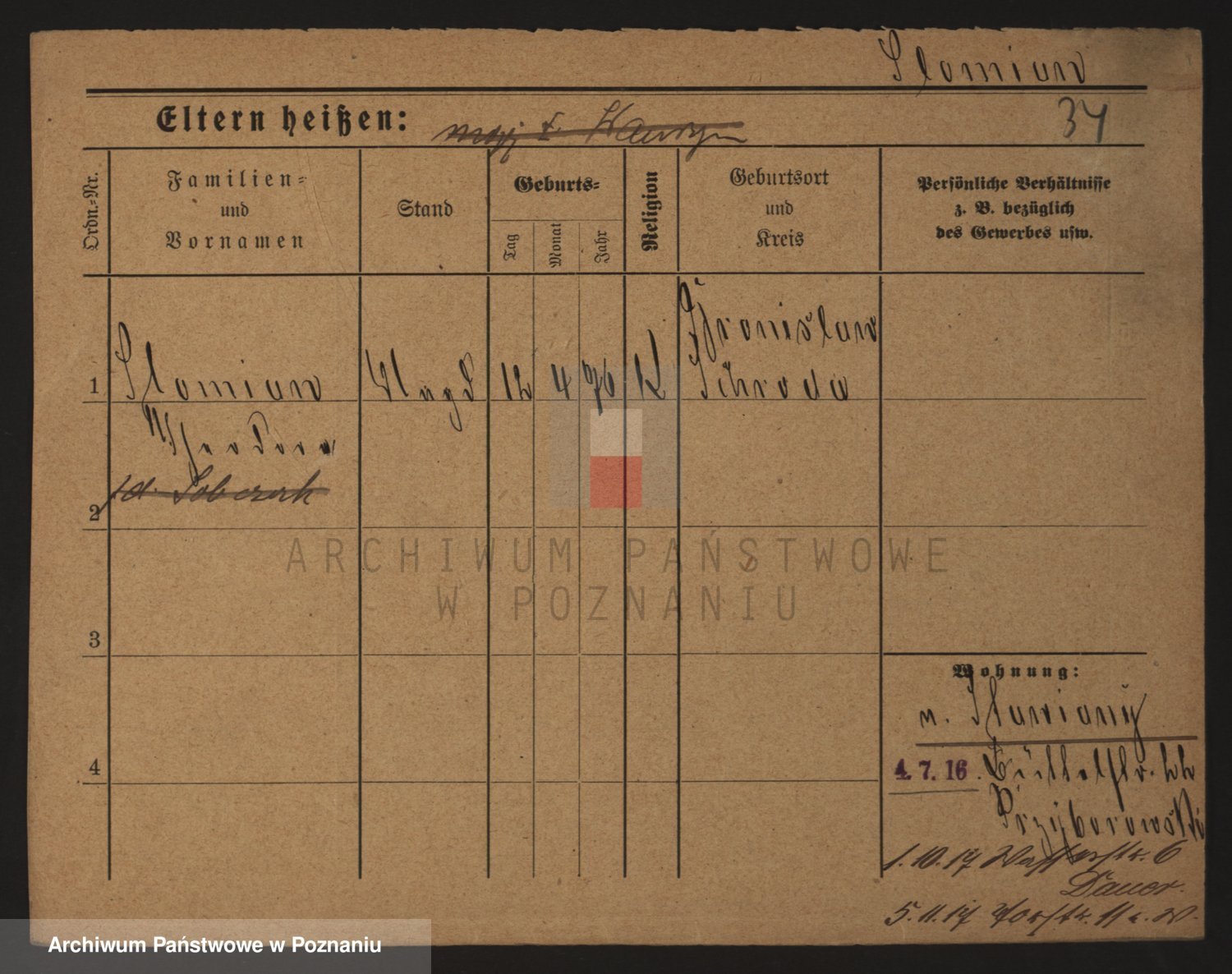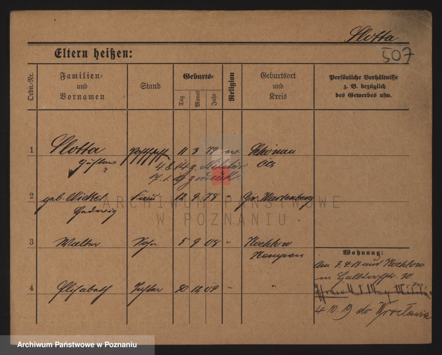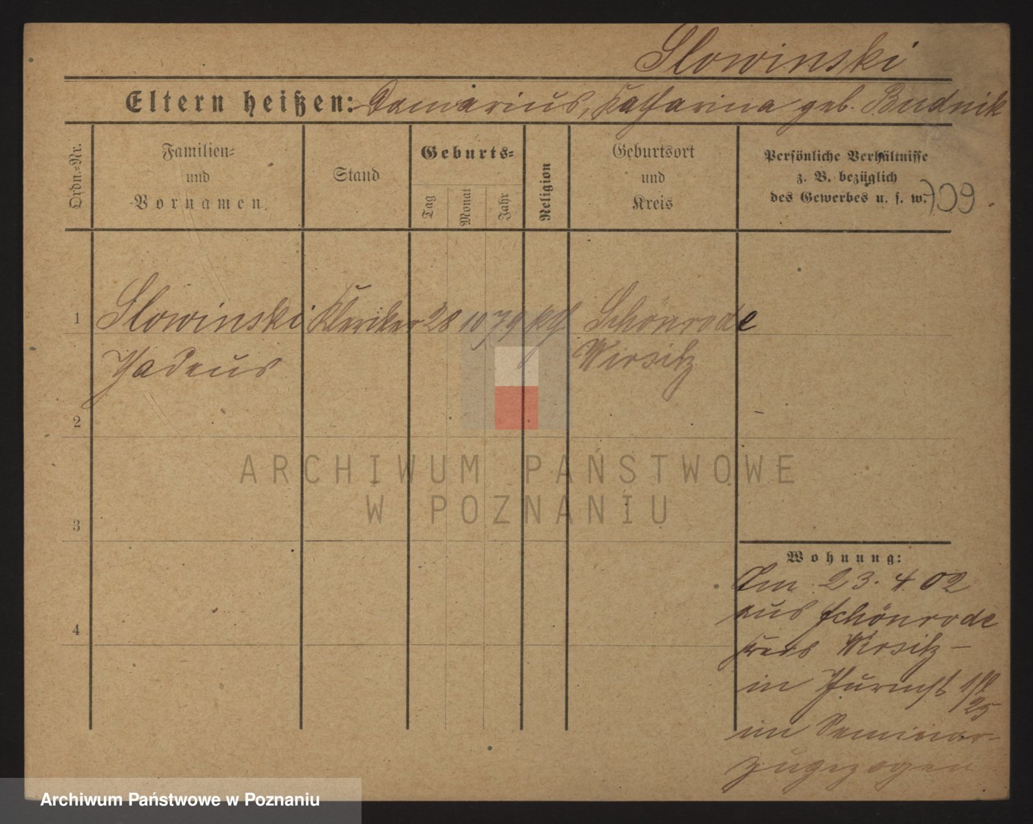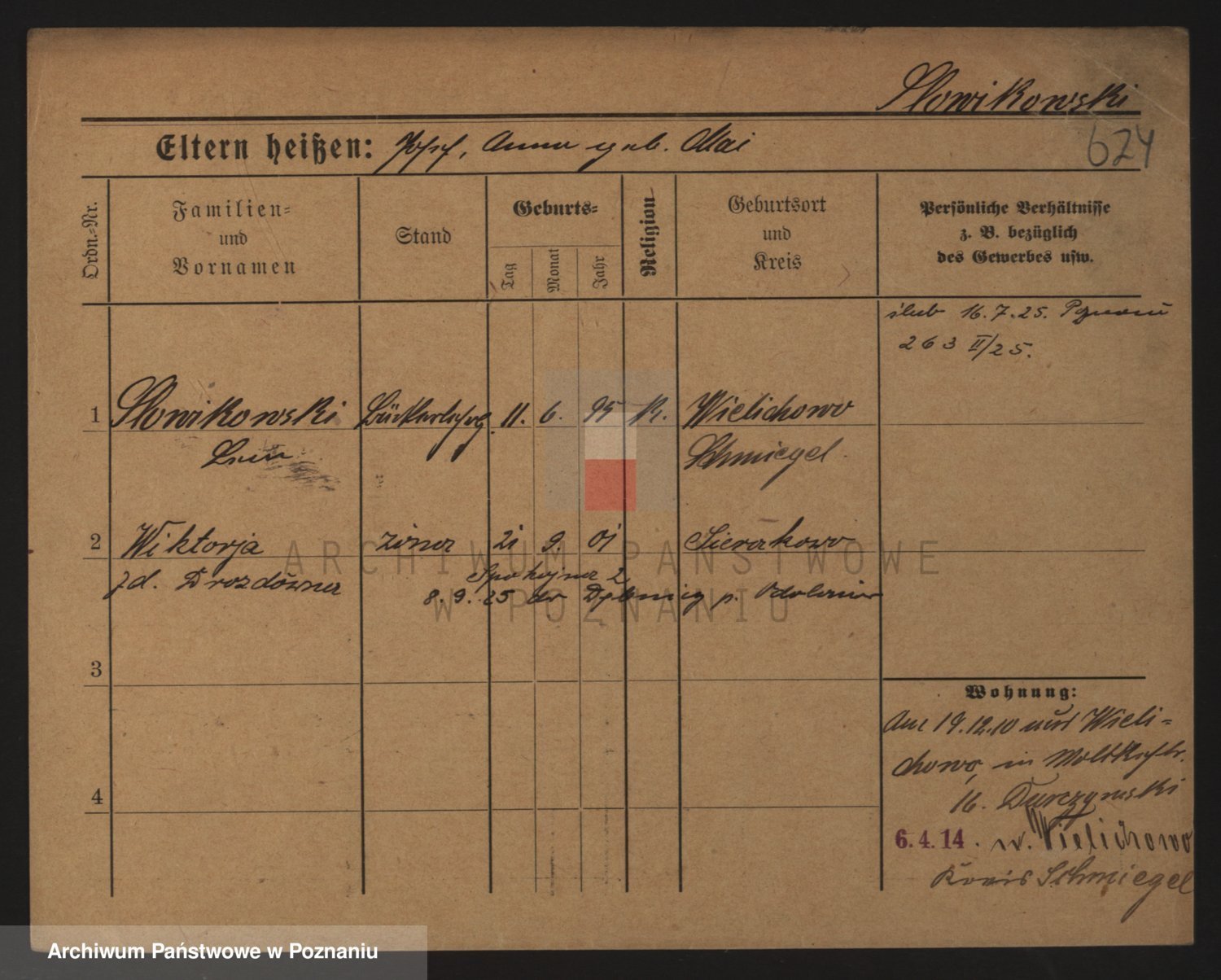 Podgląd karty osobowej dostępny jest po kliknięciu na nazwisko lub ikonkę karty. Można dokonywać powiększenia (ikony na górze) lub przechodzić między kolejnymi skanami (strzałki po bokach).