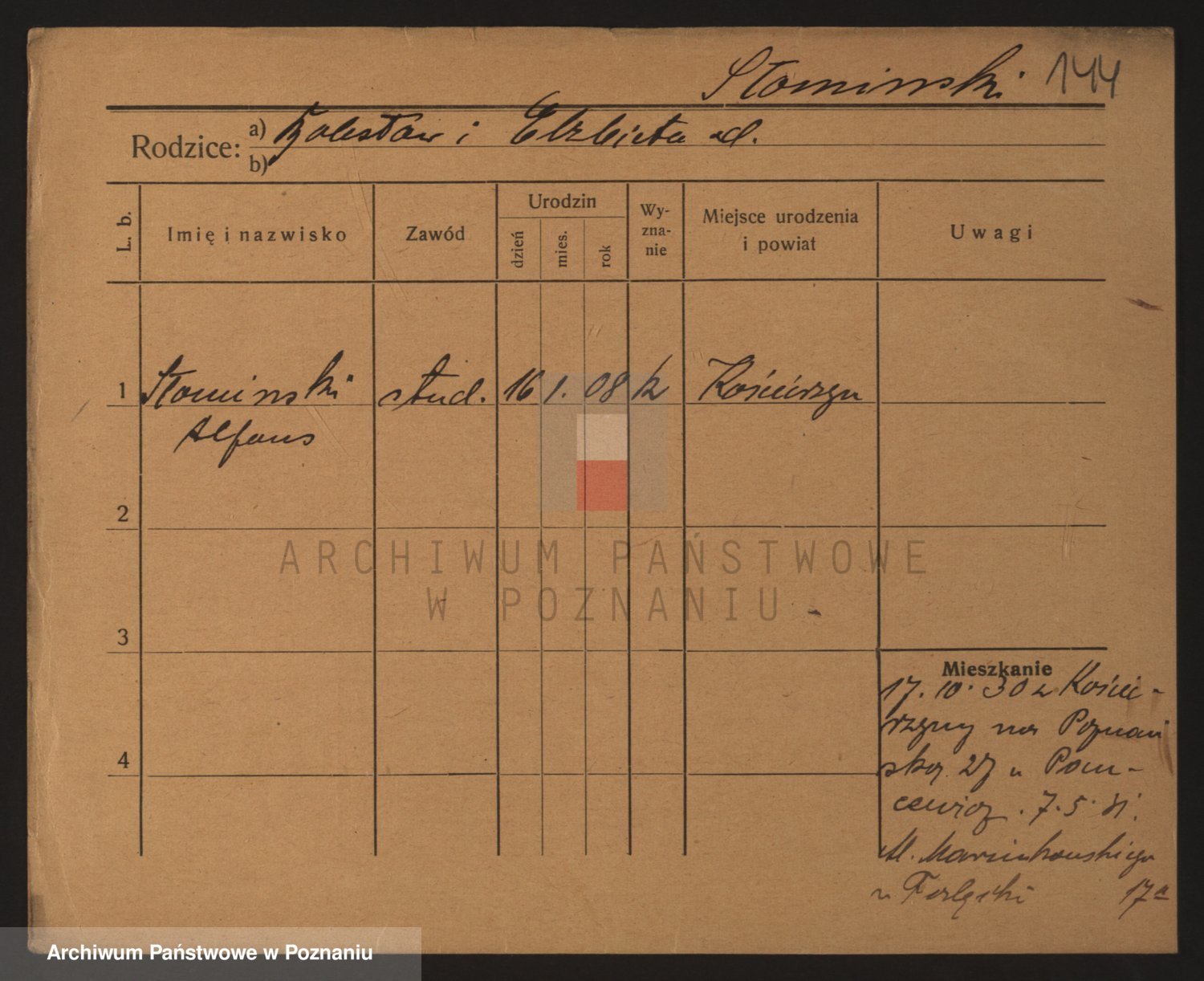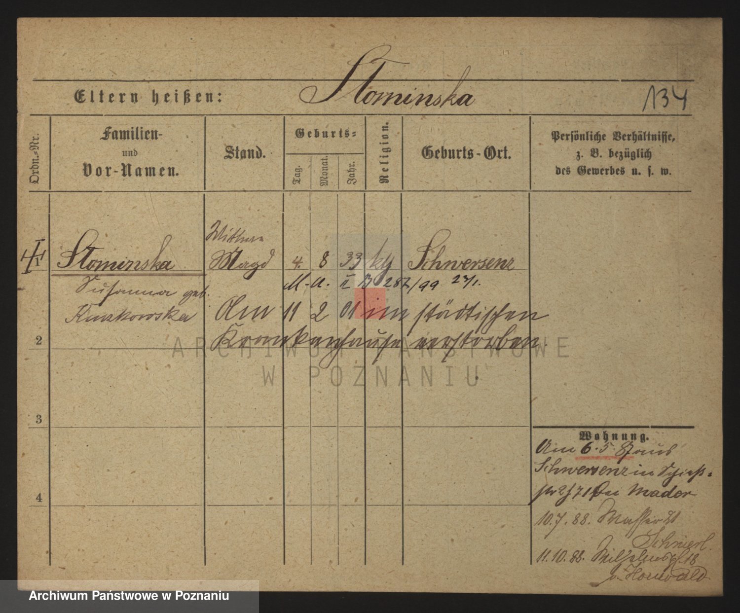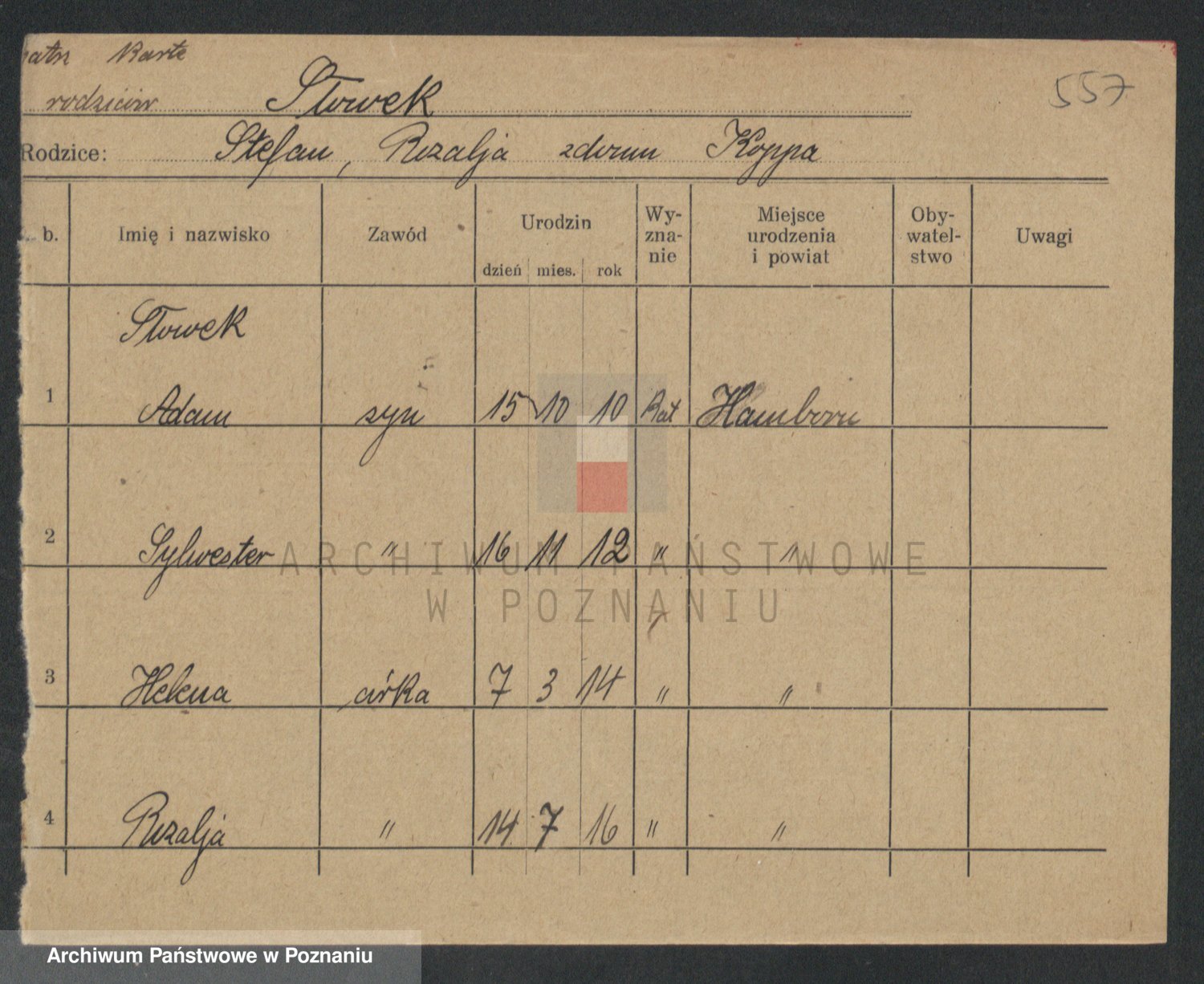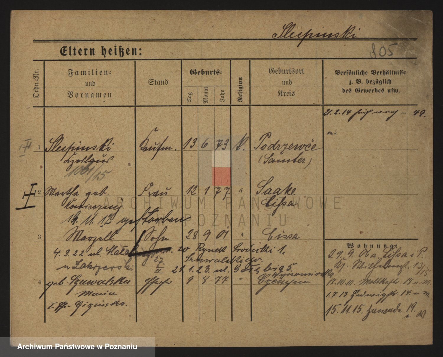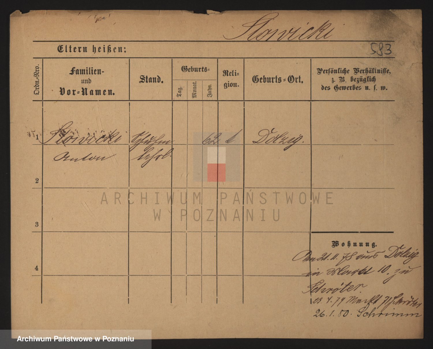 Podgląd karty osobowej dostępny jest po kliknięciu na nazwisko lub ikonkę karty. Można dokonywać powiększenia (ikony na górze) lub przechodzić między kolejnymi skanami (strzałki po bokach).