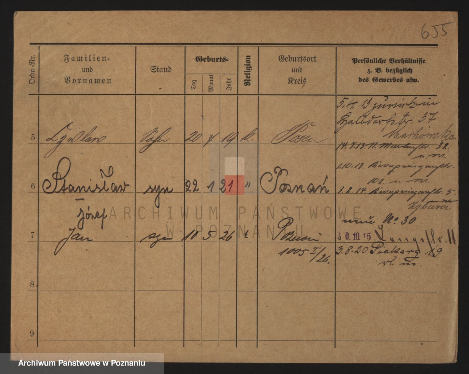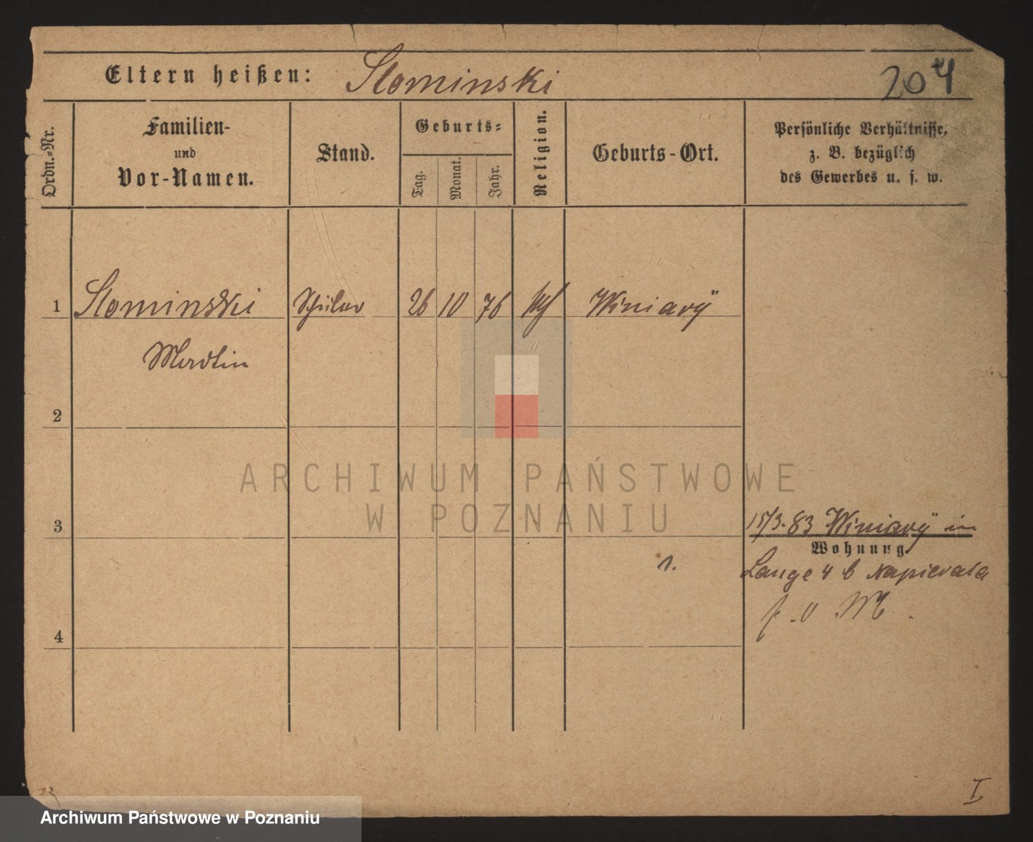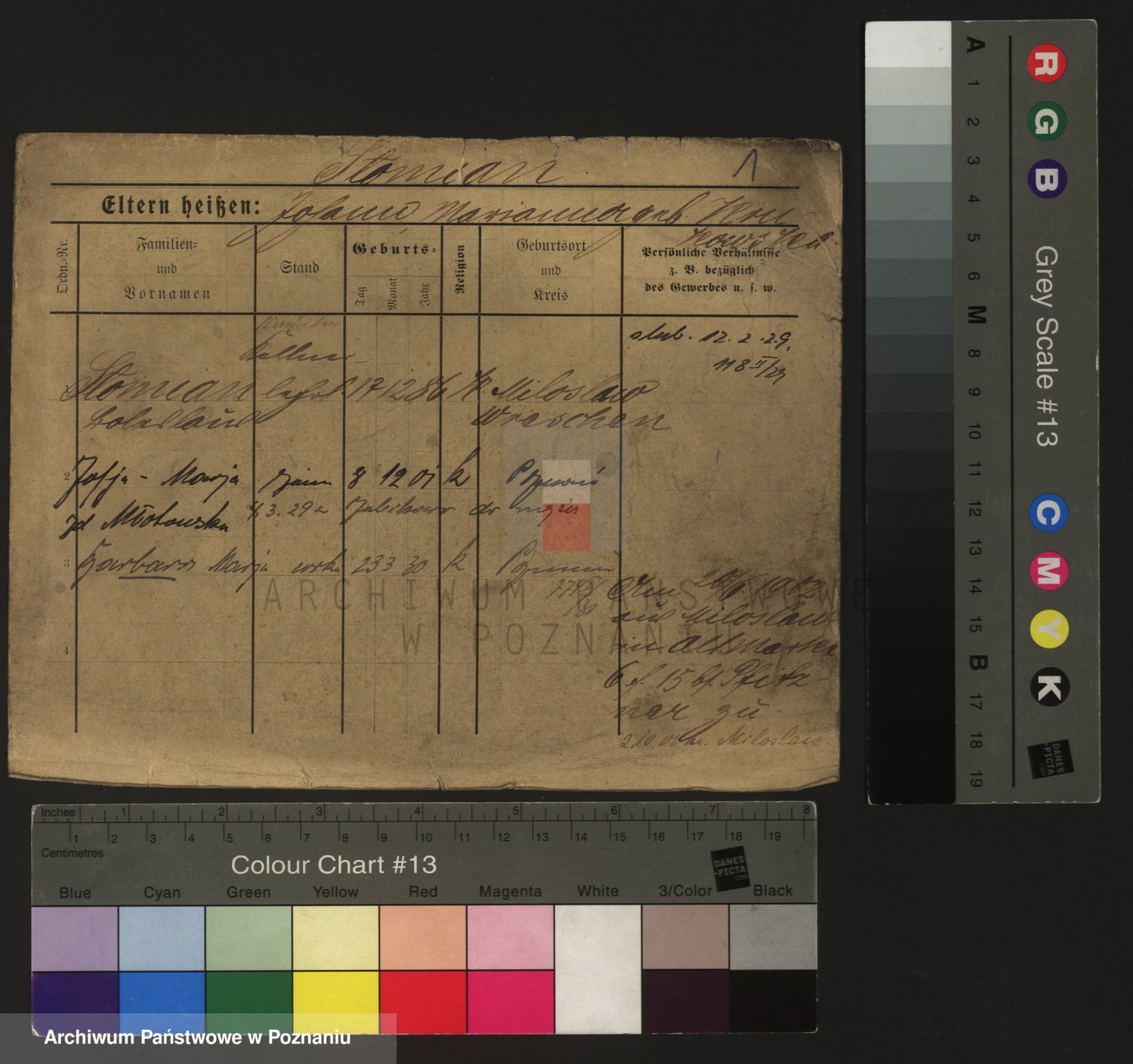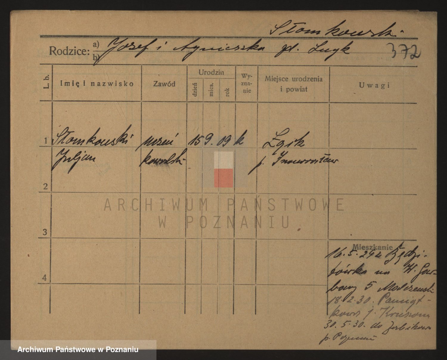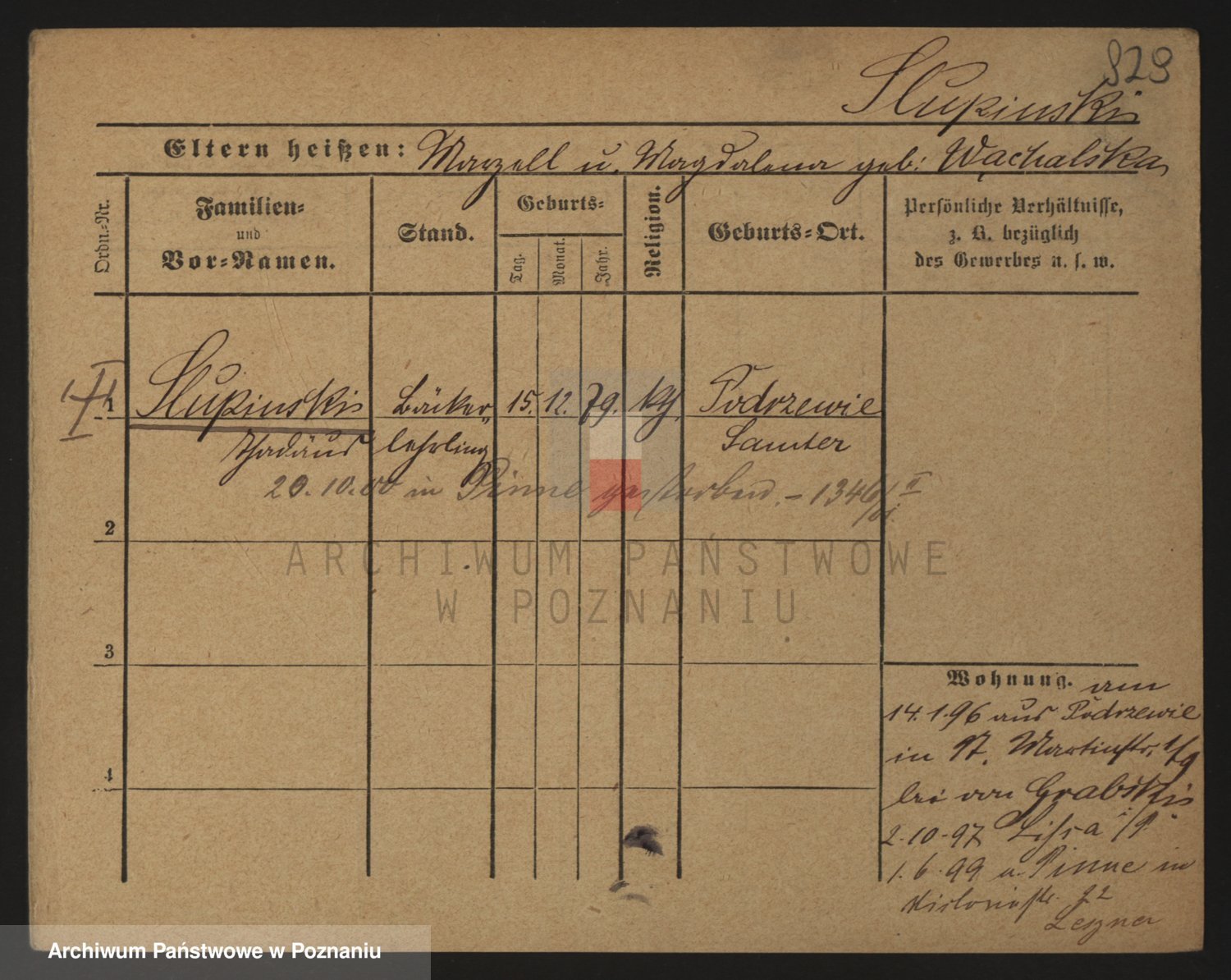 Podgląd karty osobowej dostępny jest po kliknięciu na nazwisko lub ikonkę karty. Można dokonywać powiększenia (ikony na górze) lub przechodzić między kolejnymi skanami (strzałki po bokach).