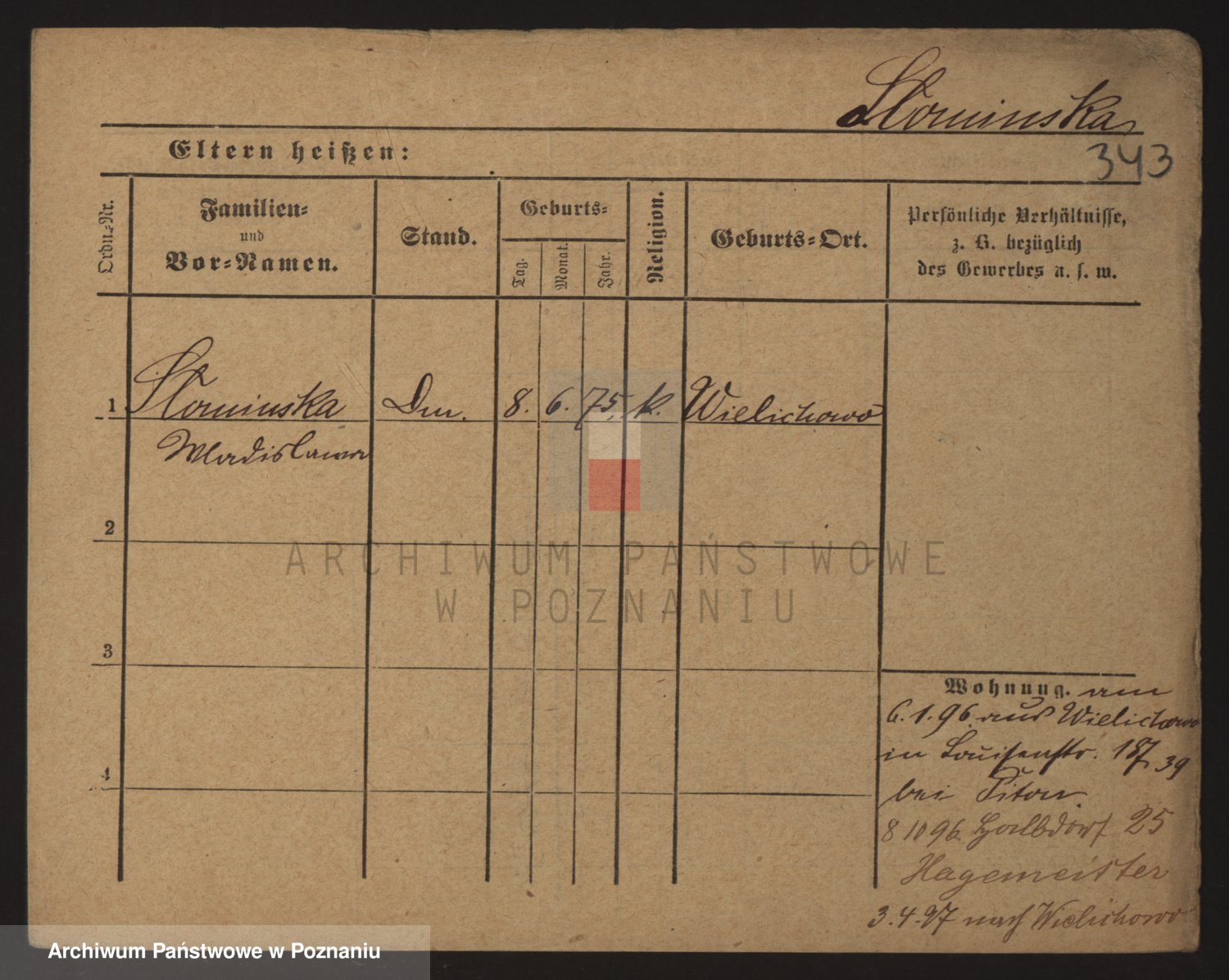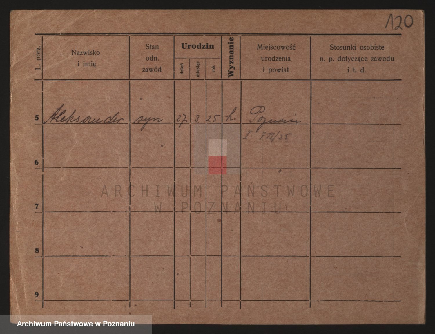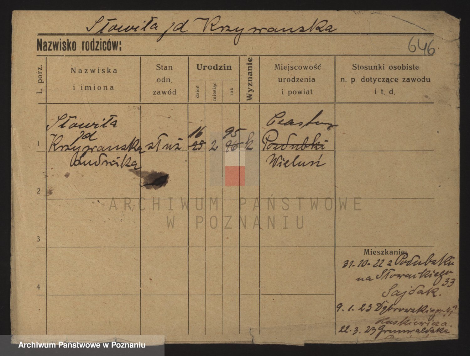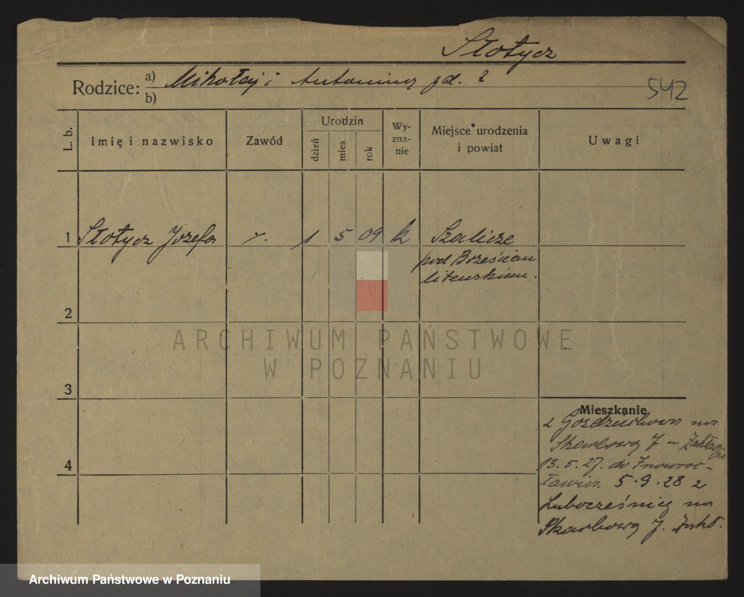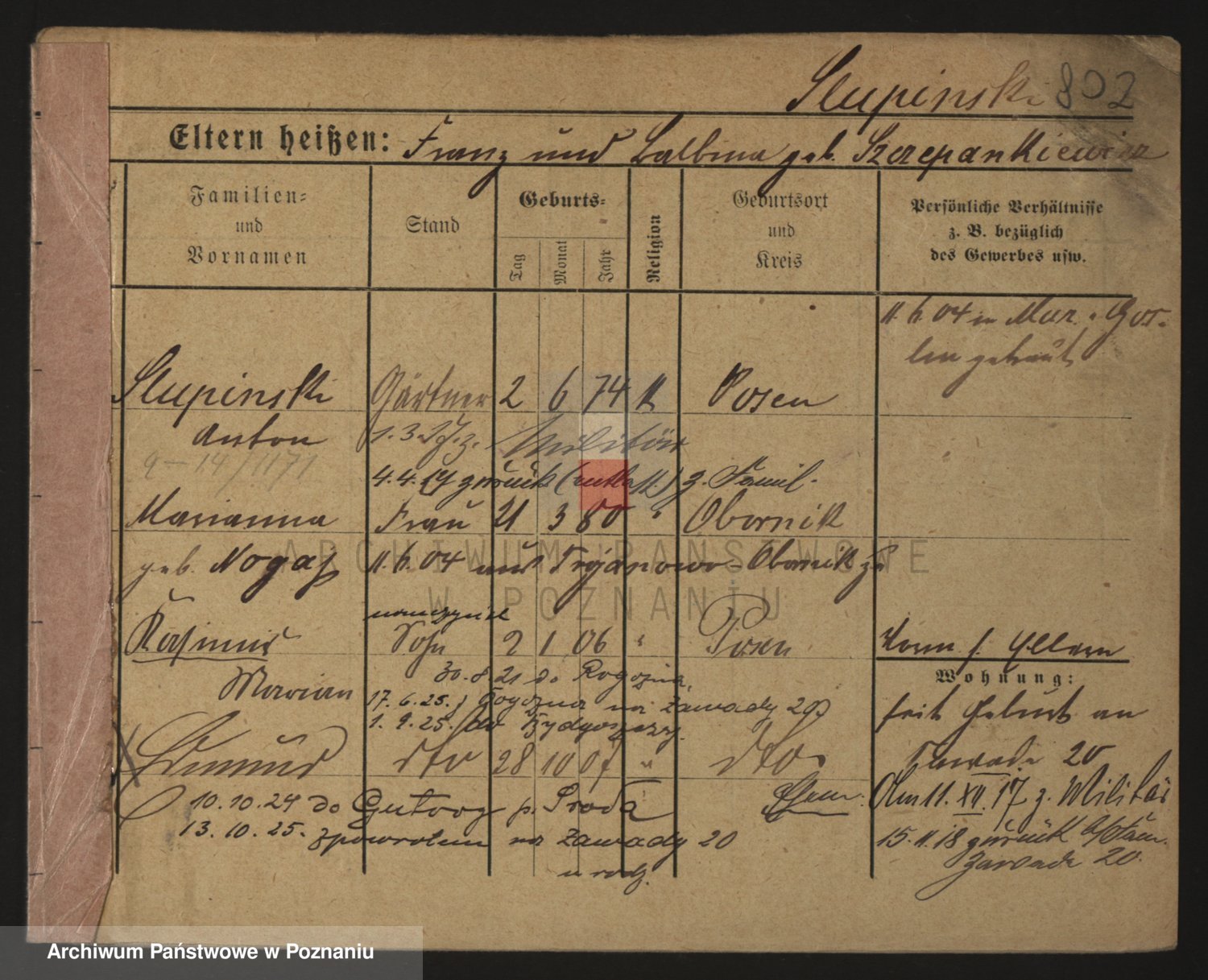 Podgląd karty osobowej dostępny jest po kliknięciu na nazwisko lub ikonkę karty. Można dokonywać powiększenia (ikony na górze) lub przechodzić między kolejnymi skanami (strzałki po bokach).