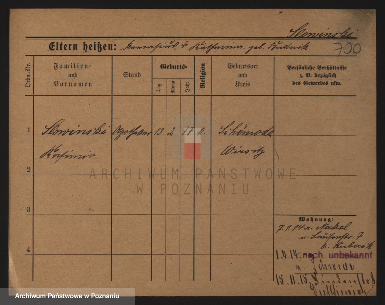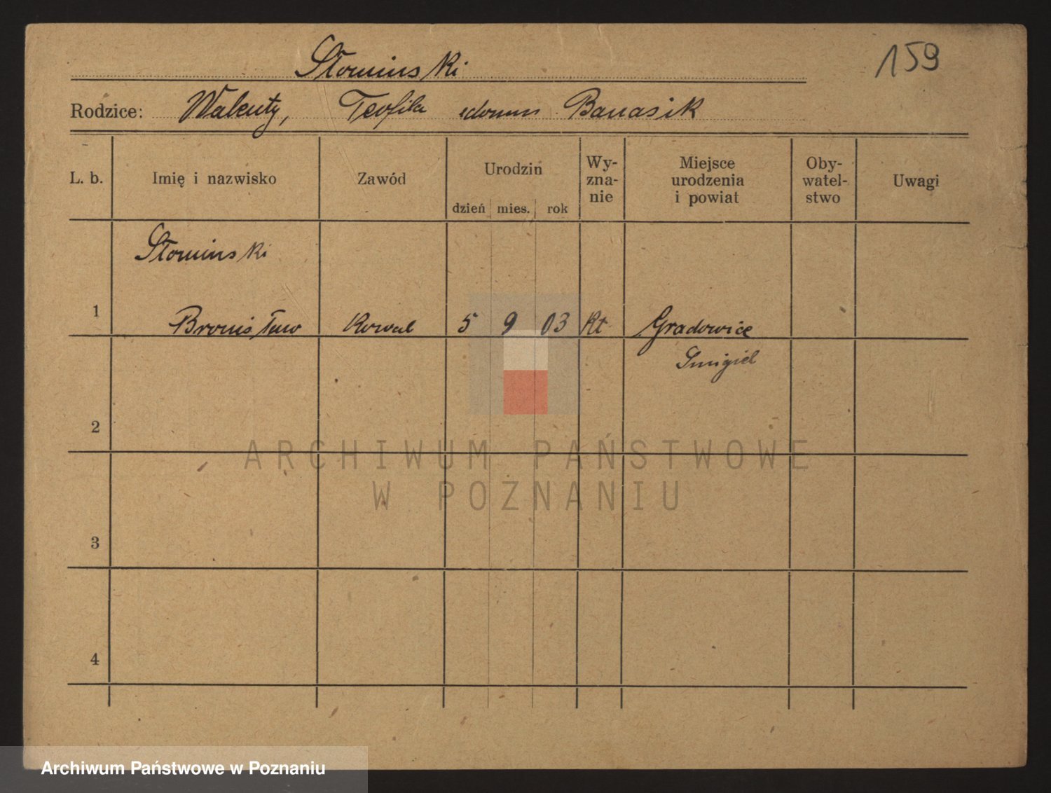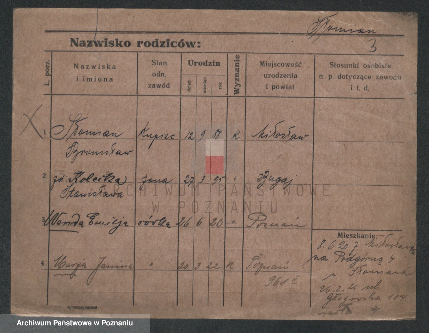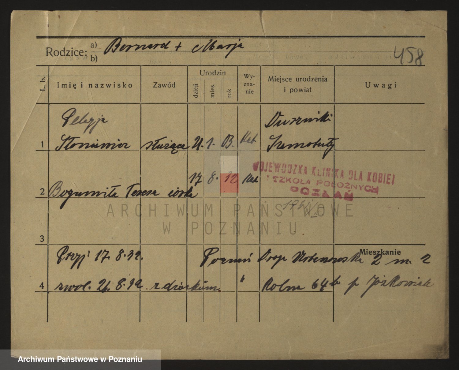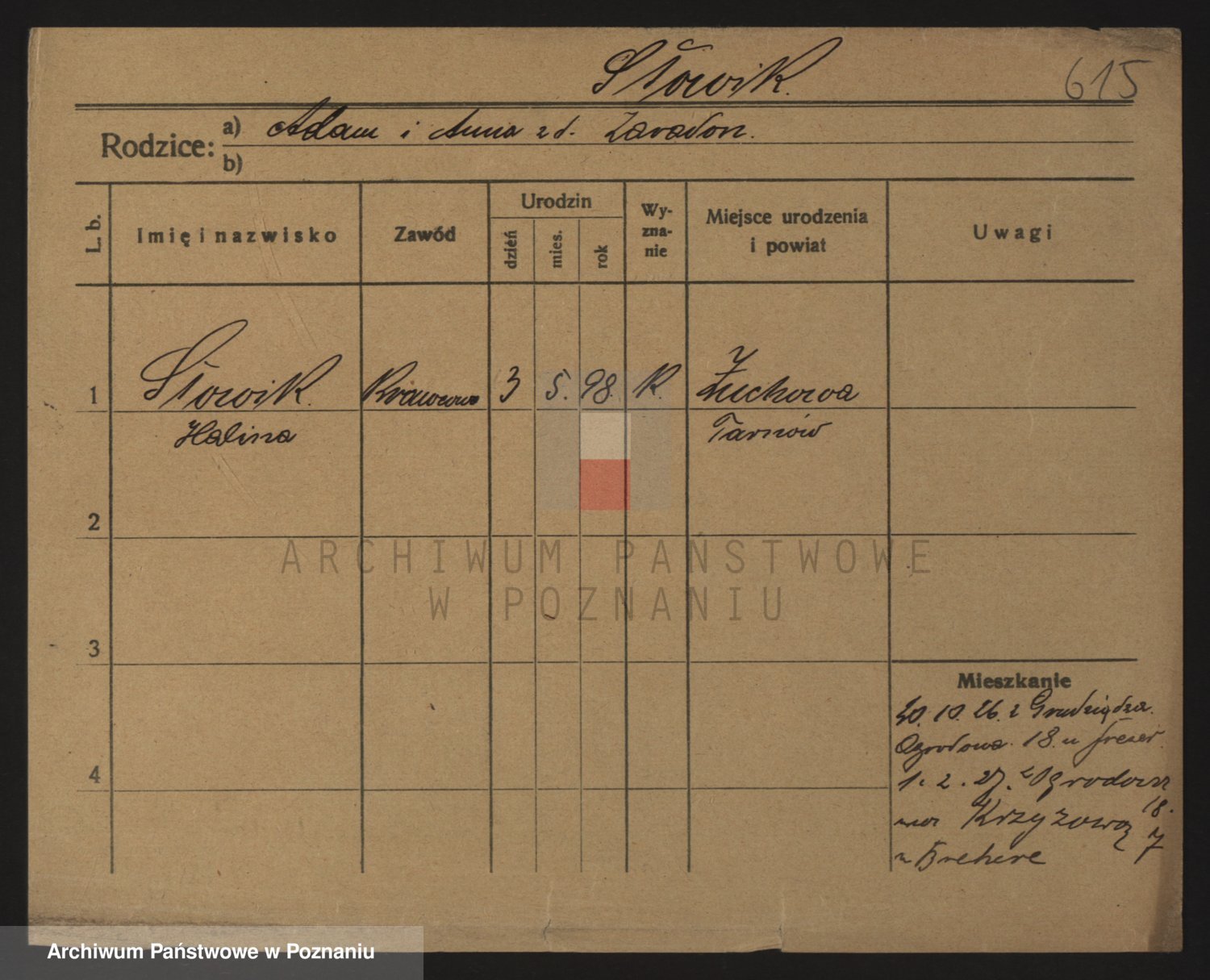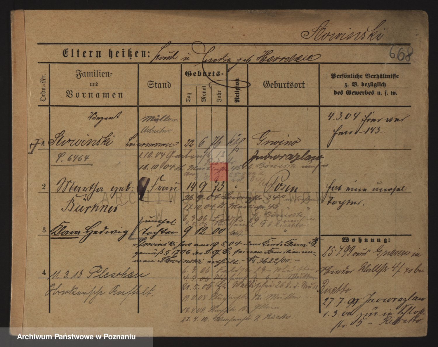 Podgląd karty osobowej dostępny jest po kliknięciu na nazwisko lub ikonkę karty. Można dokonywać powiększenia (ikony na górze) lub przechodzić między kolejnymi skanami (strzałki po bokach).