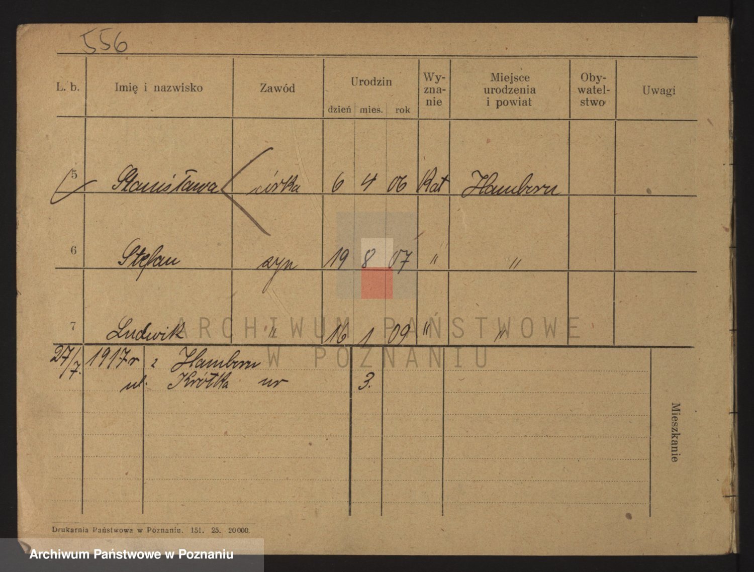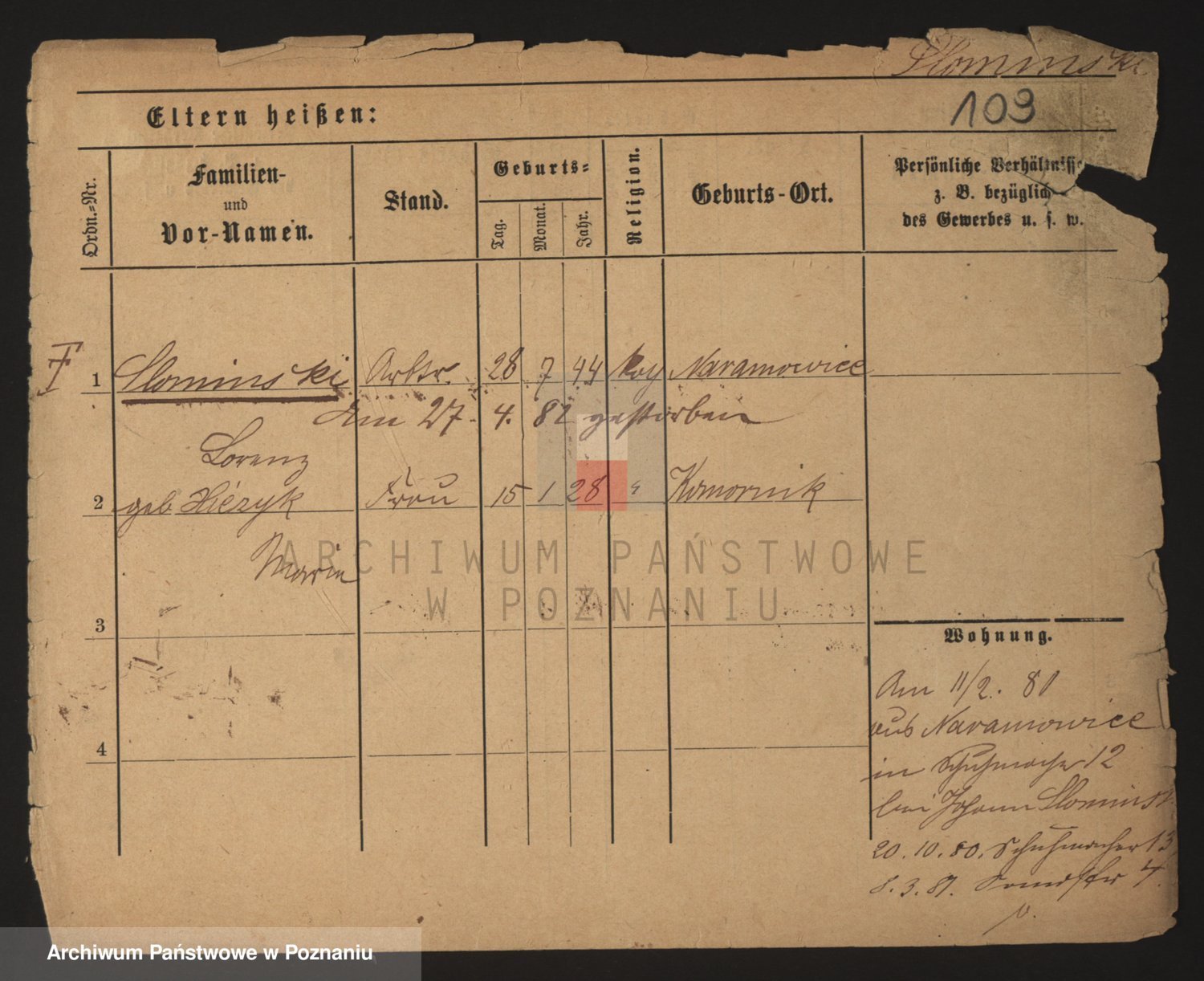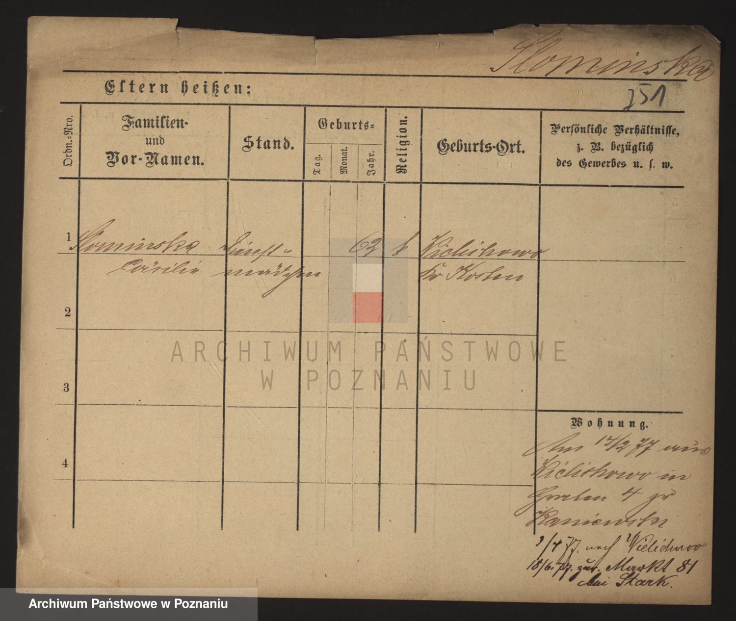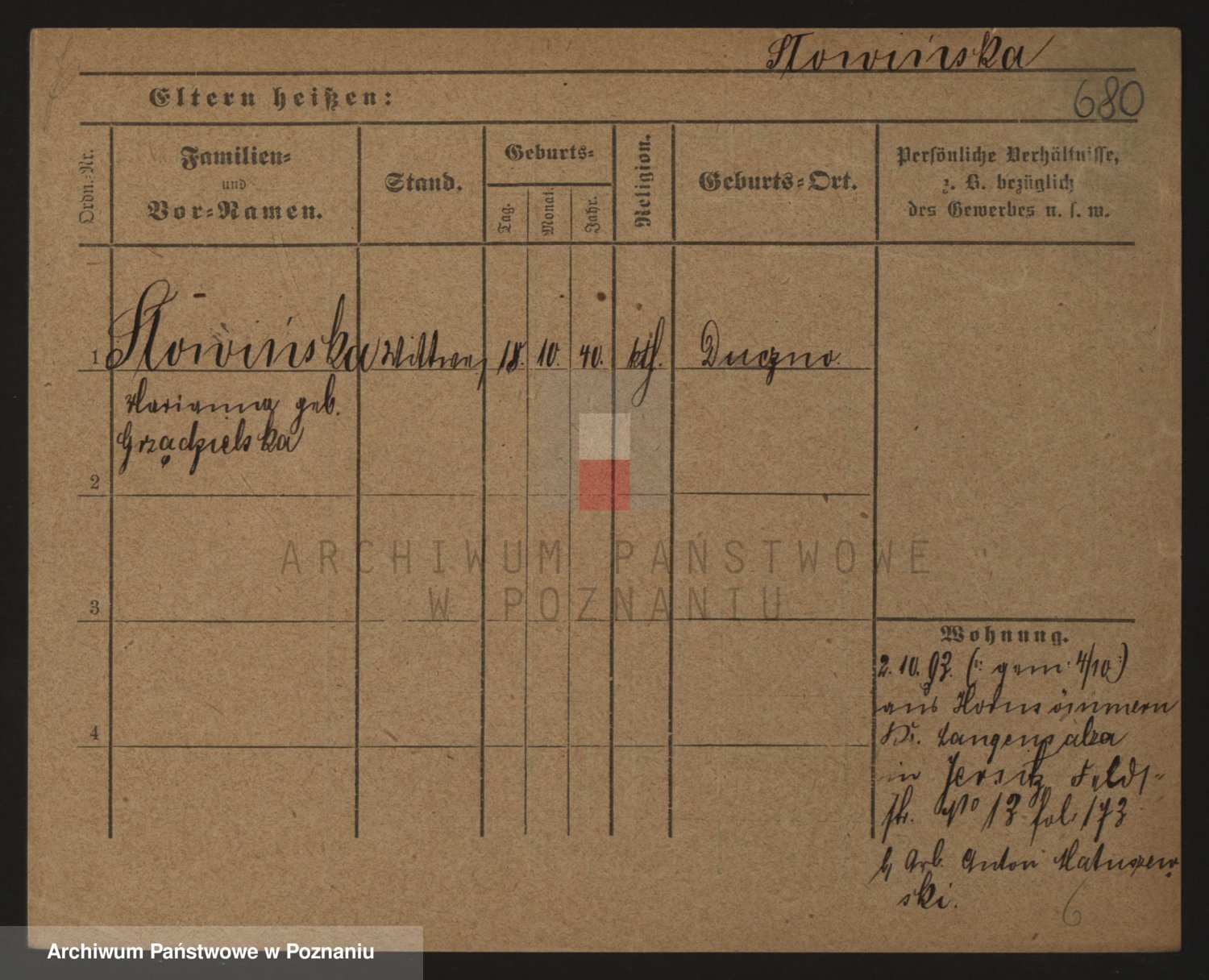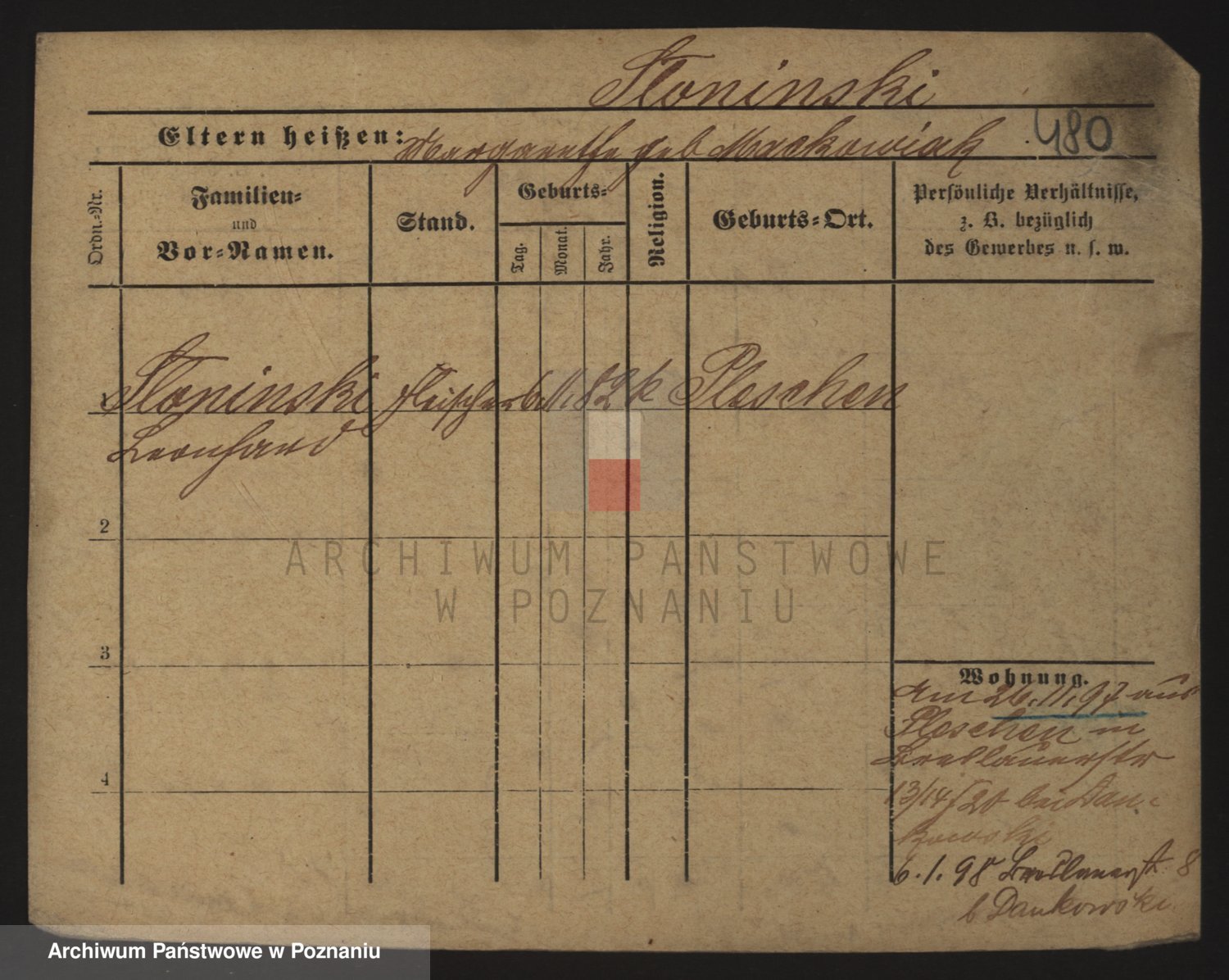 Podgląd karty osobowej dostępny jest po kliknięciu na nazwisko lub ikonkę karty. Można dokonywać powiększenia (ikony na górze) lub przechodzić między kolejnymi skanami (strzałki po bokach).