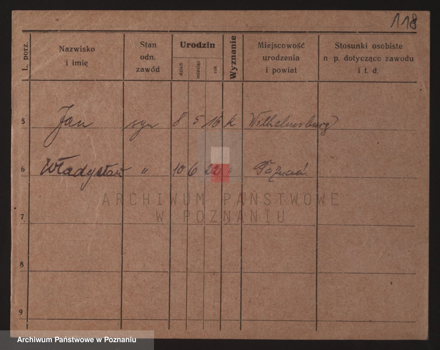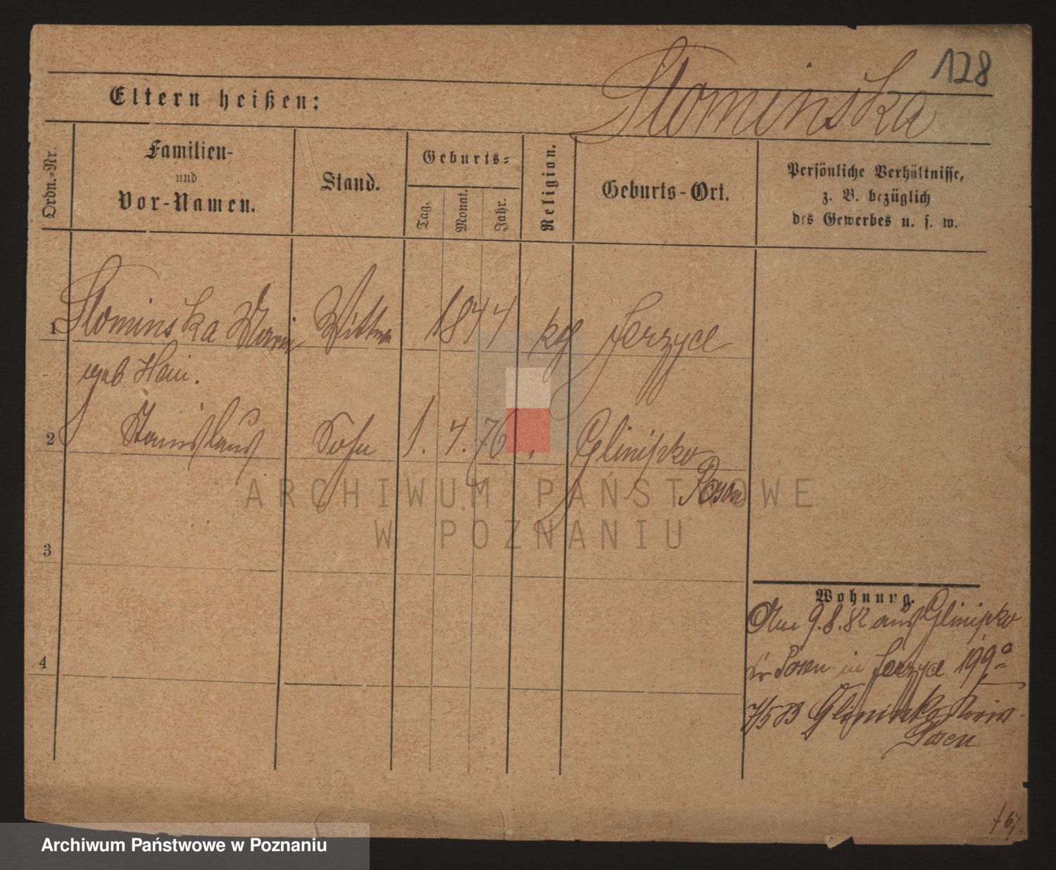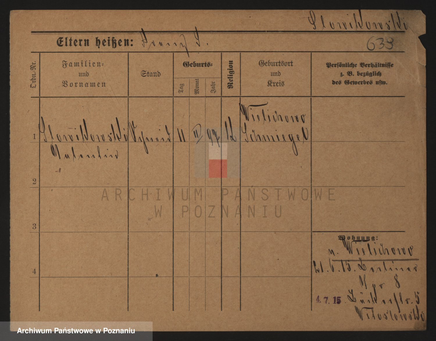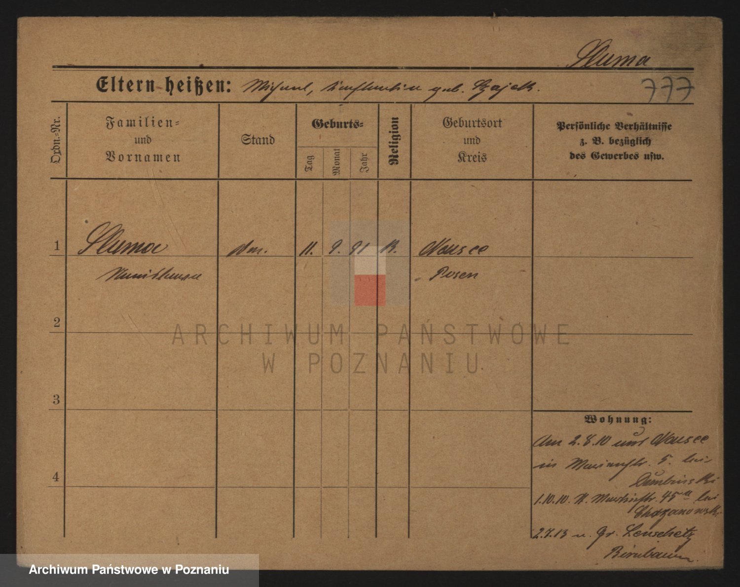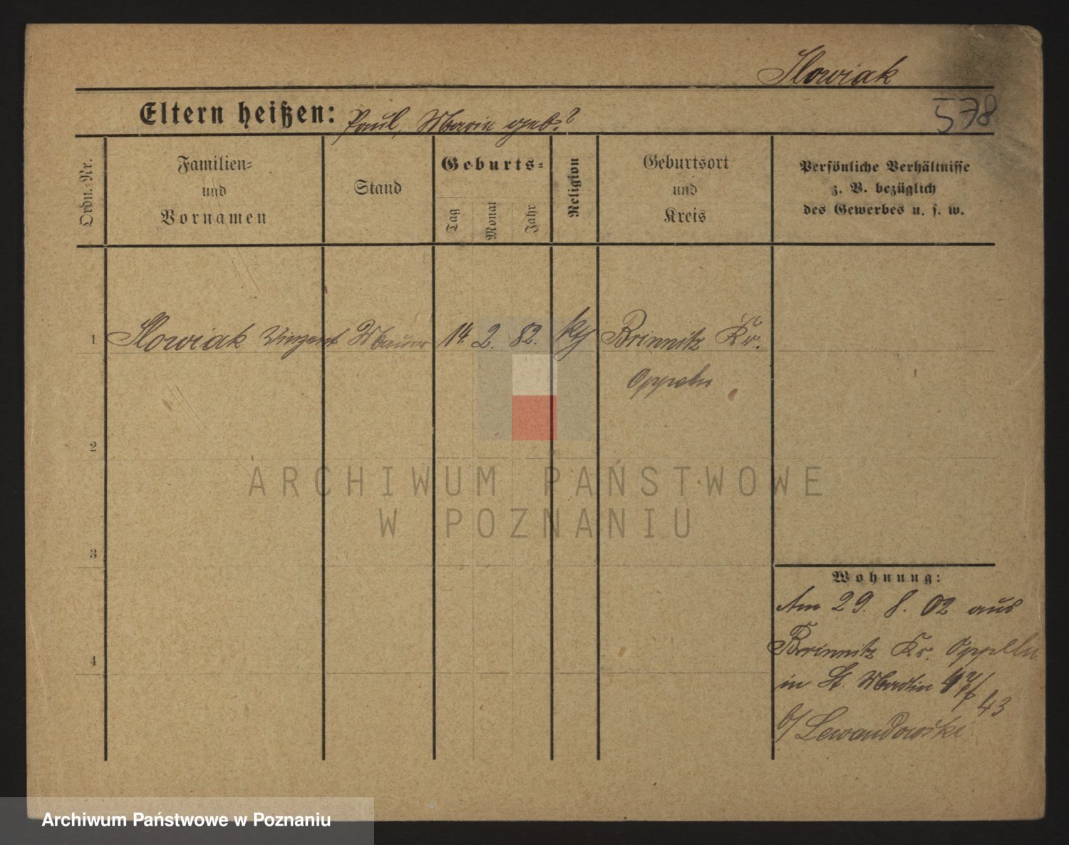 Podgląd karty osobowej dostępny jest po kliknięciu na nazwisko lub ikonkę karty. Można dokonywać powiększenia (ikony na górze) lub przechodzić między kolejnymi skanami (strzałki po bokach).