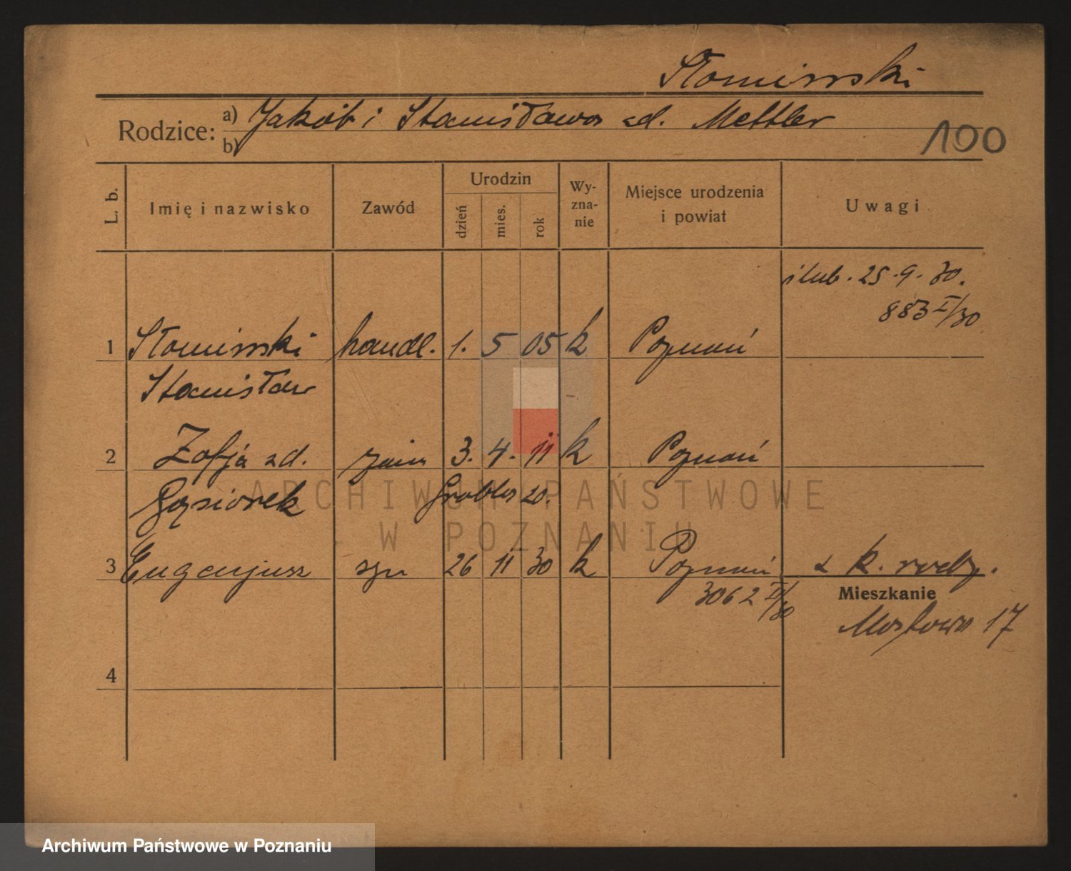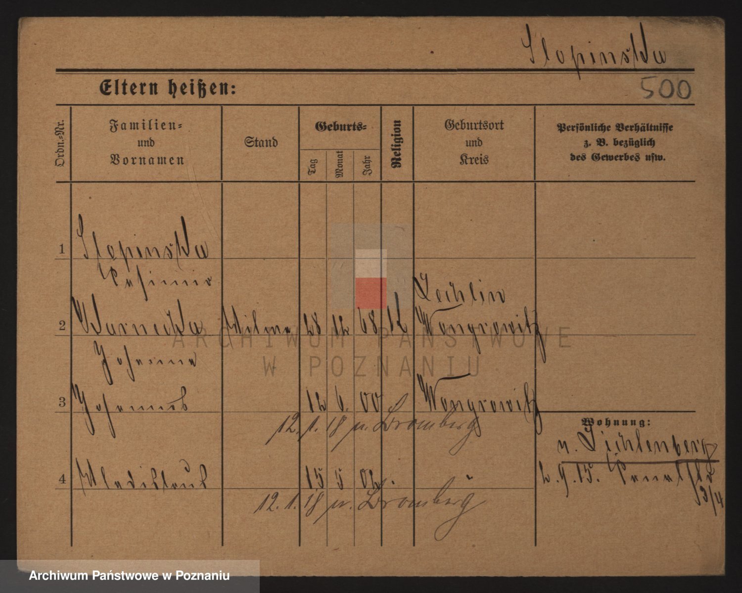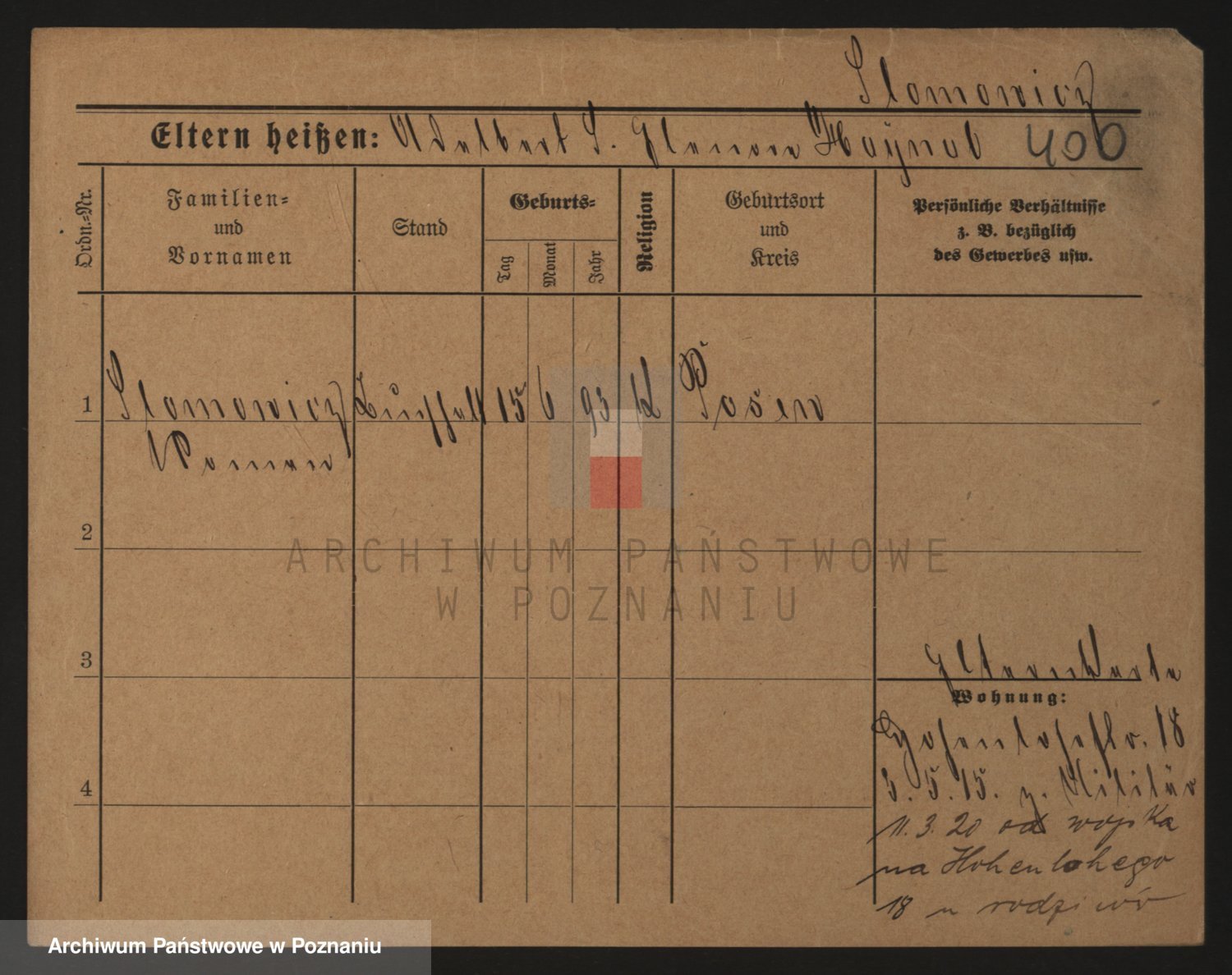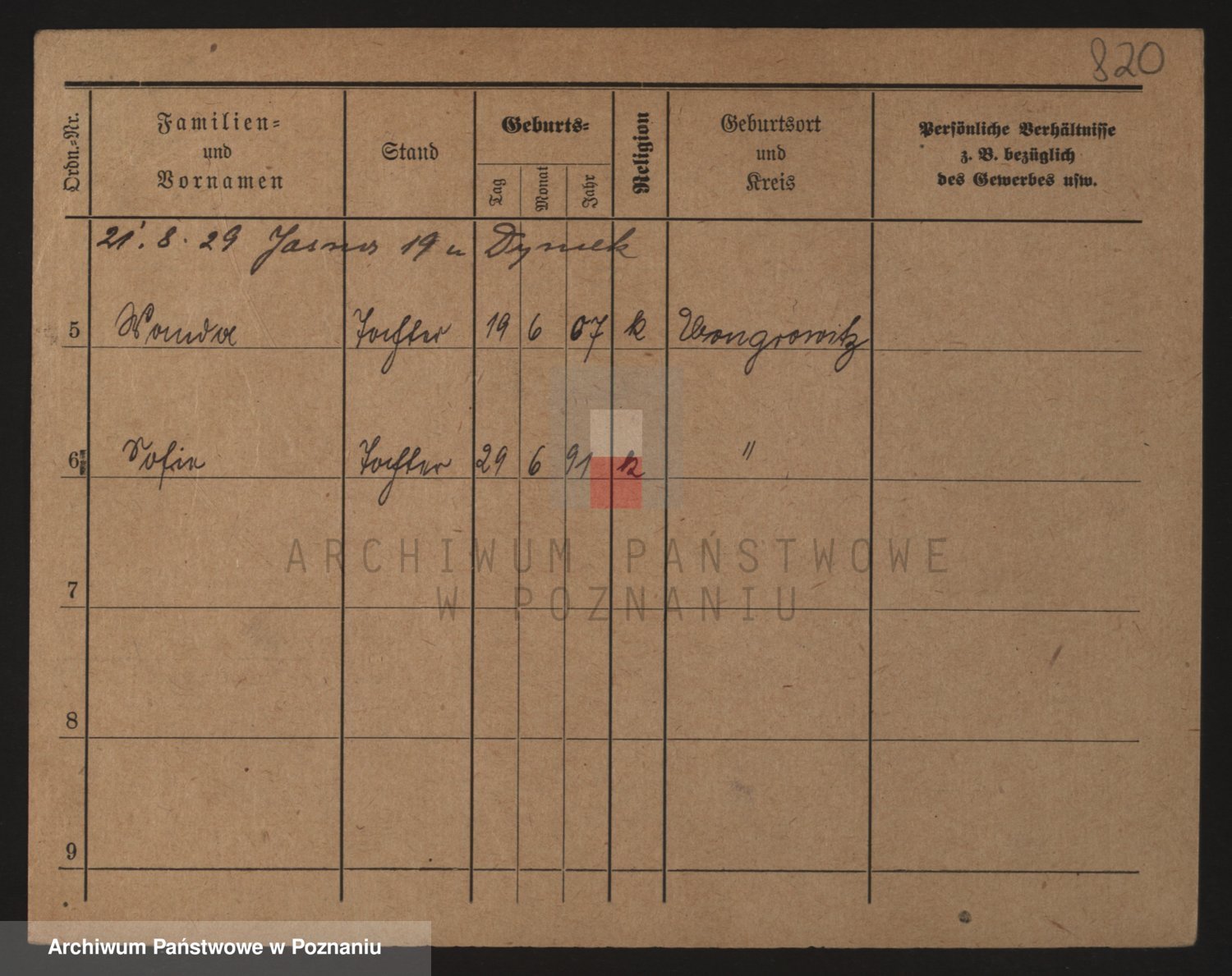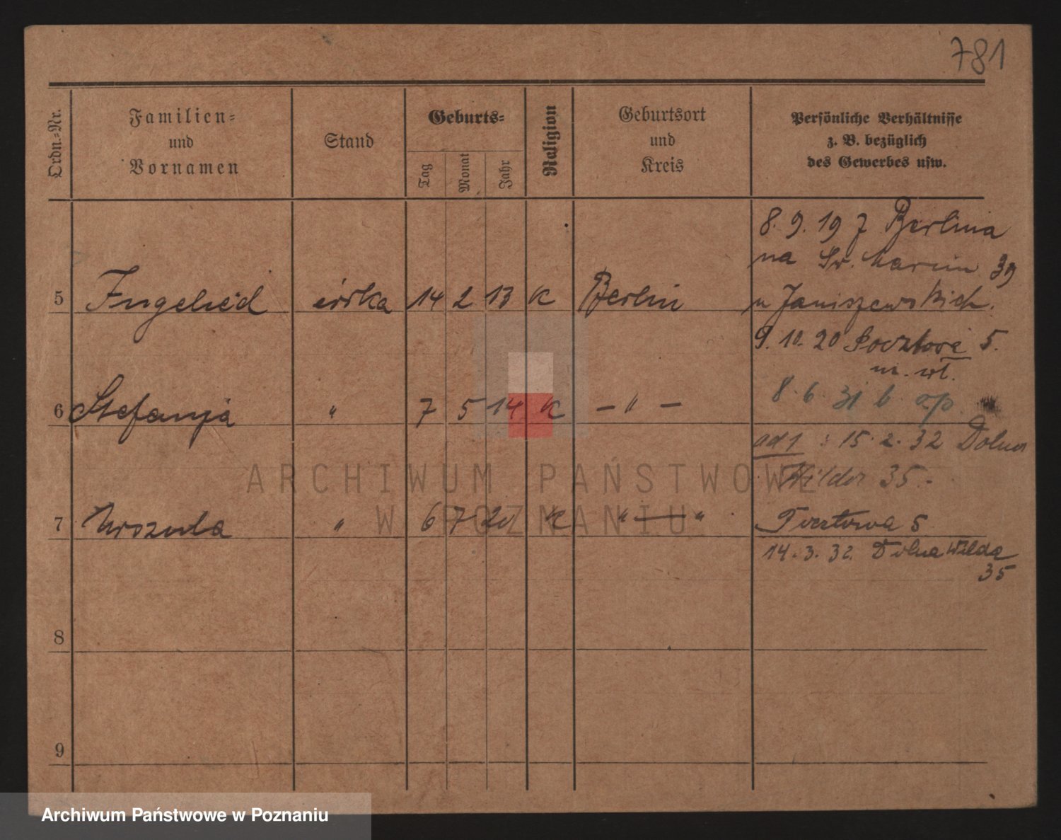 Podgląd karty osobowej dostępny jest po kliknięciu na nazwisko lub ikonkę karty. Można dokonywać powiększenia (ikony na górze) lub przechodzić między kolejnymi skanami (strzałki po bokach).