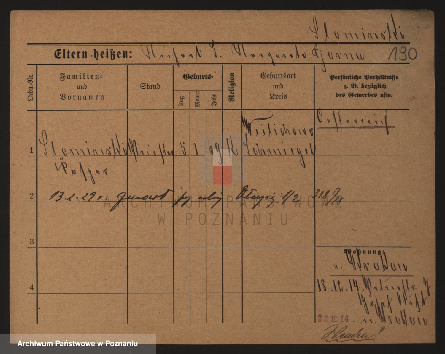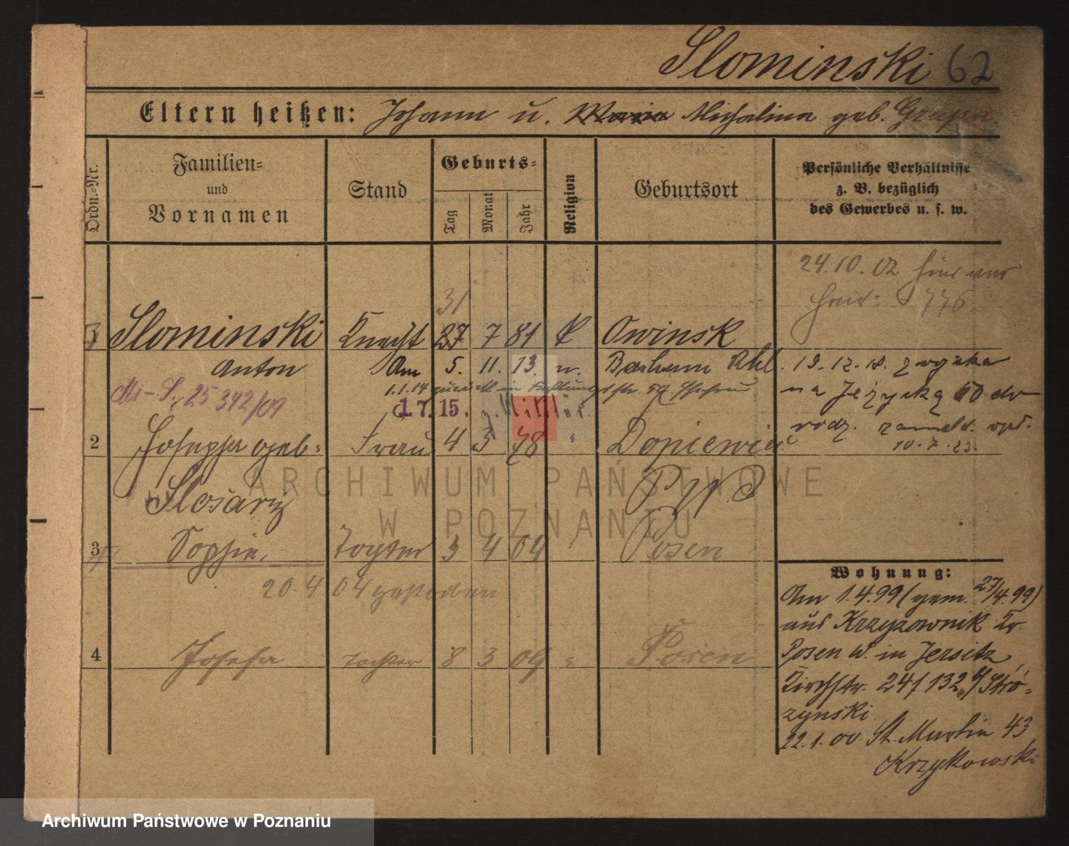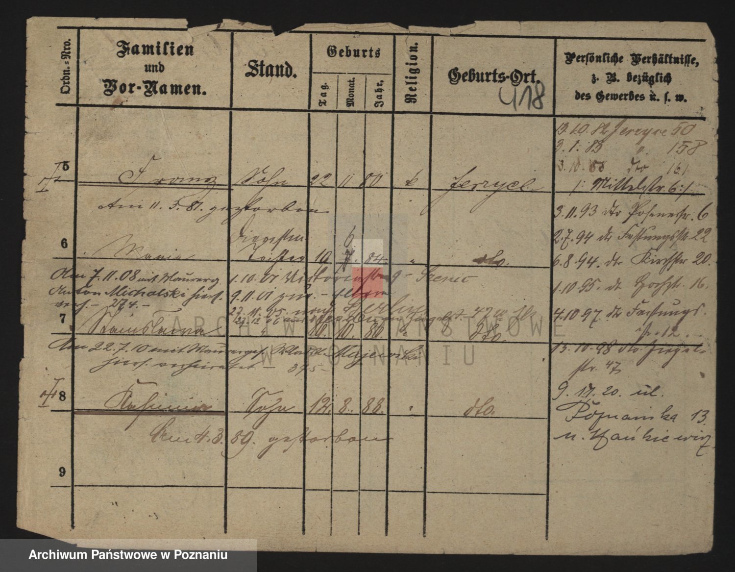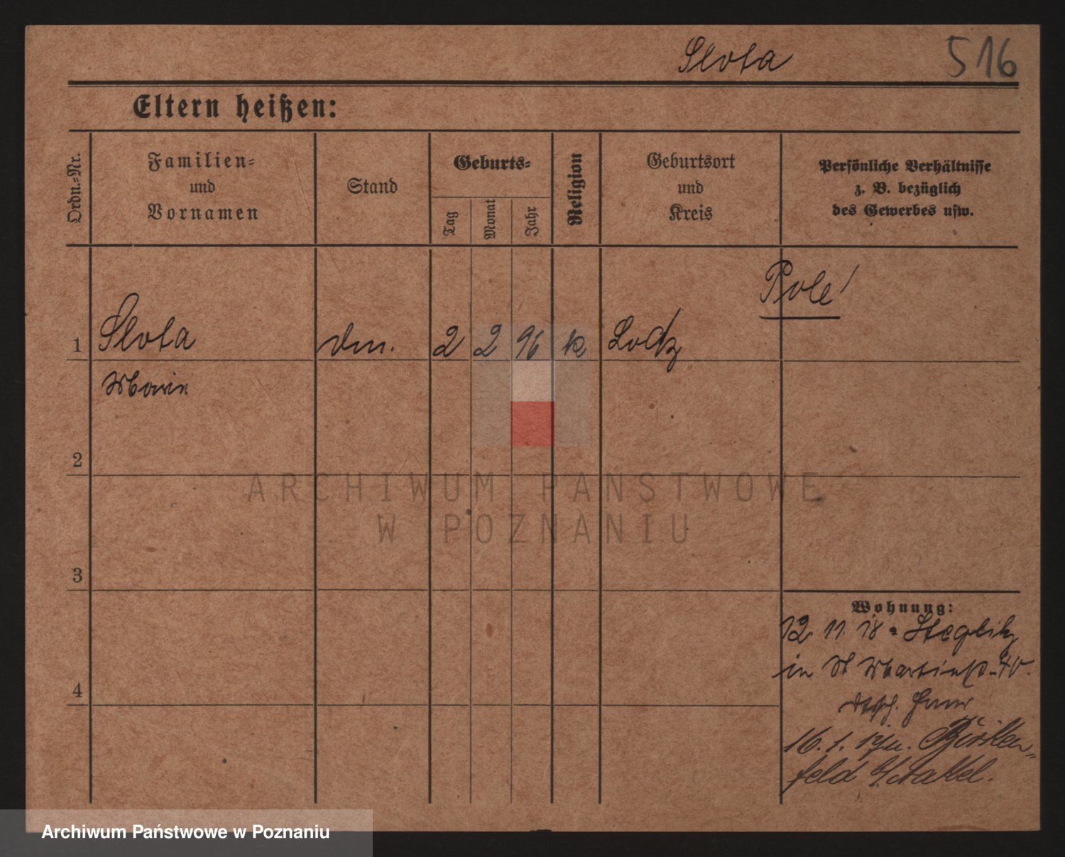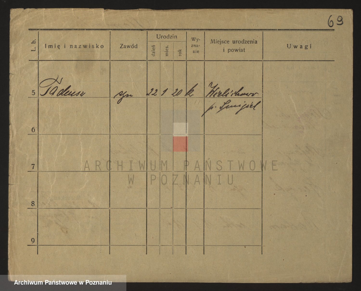 Podgląd karty osobowej dostępny jest po kliknięciu na nazwisko lub ikonkę karty. Można dokonywać powiększenia (ikony na górze) lub przechodzić między kolejnymi skanami (strzałki po bokach).
