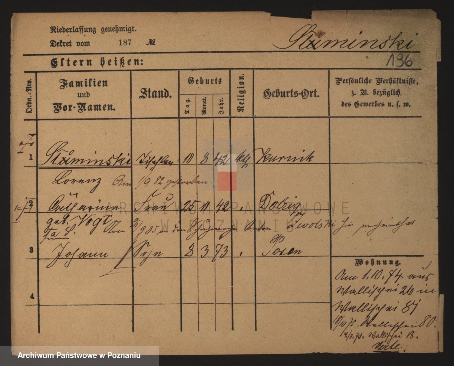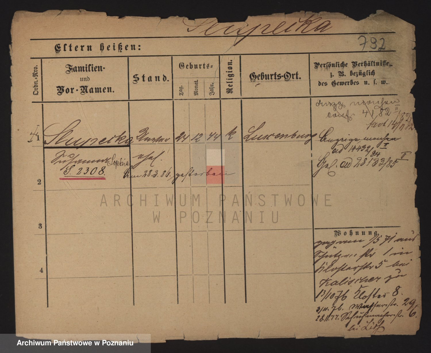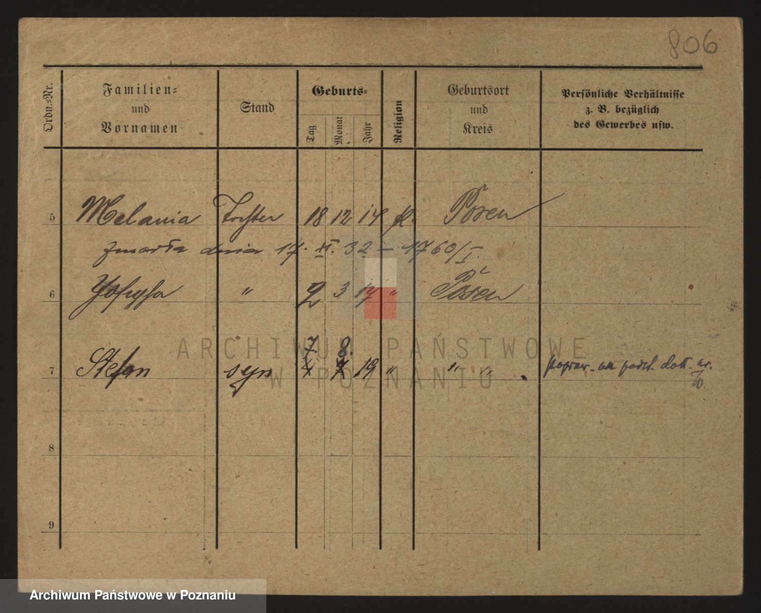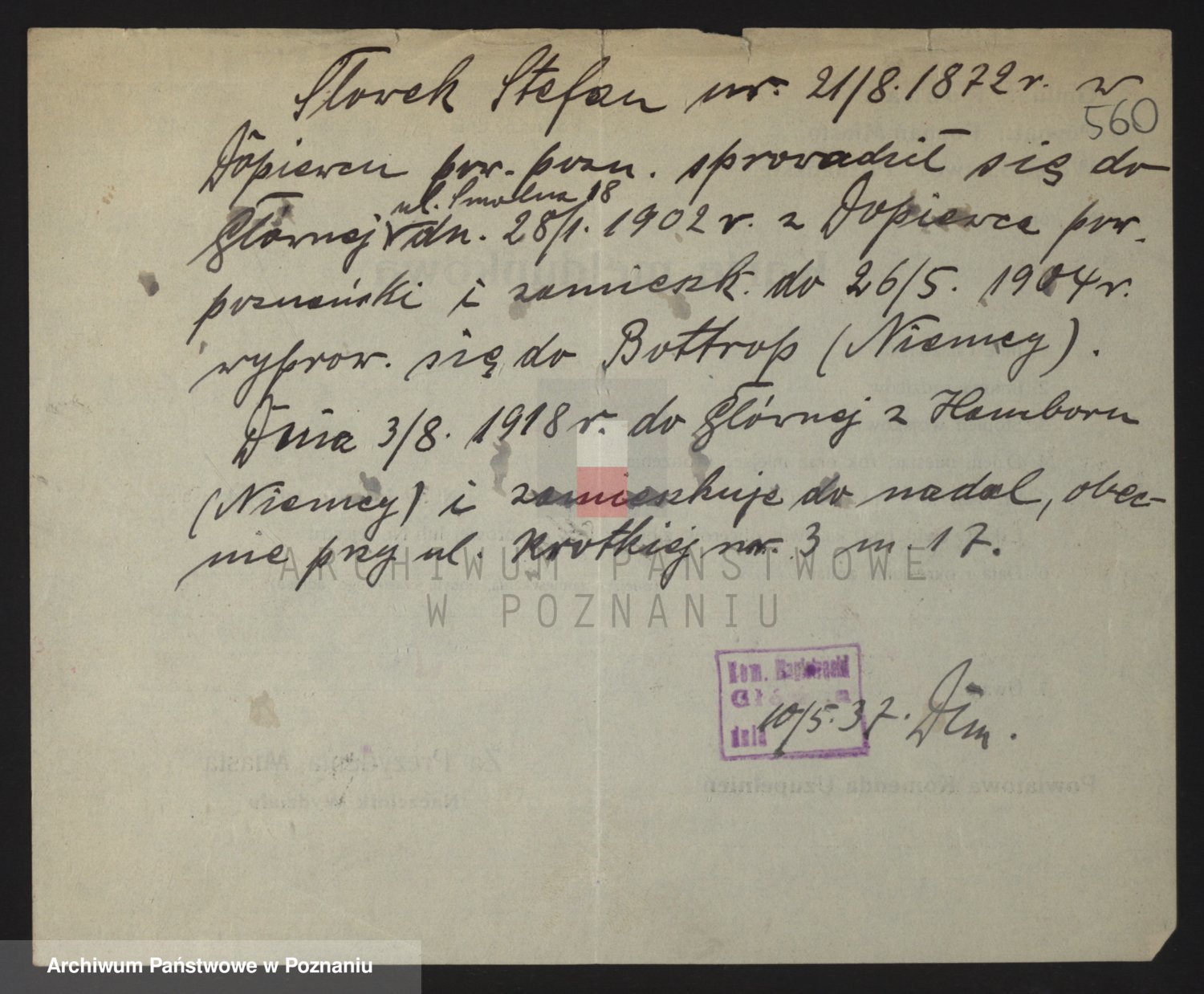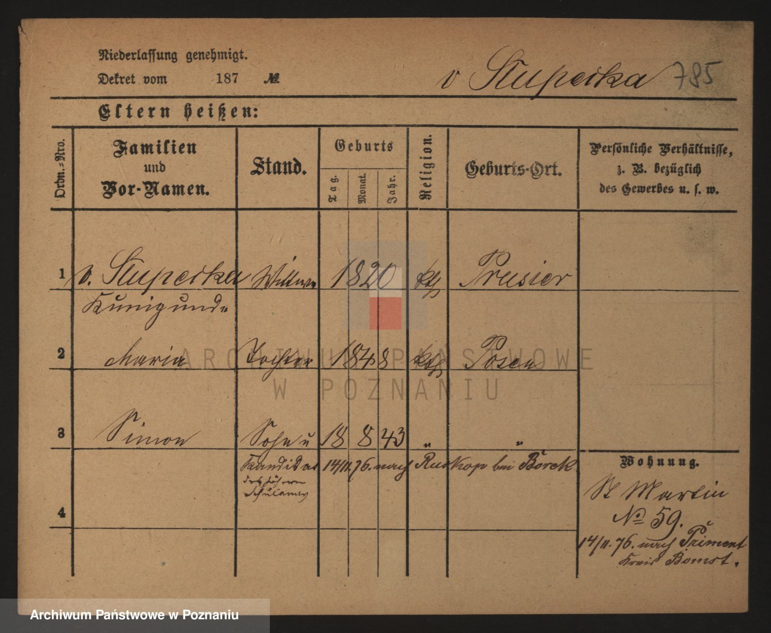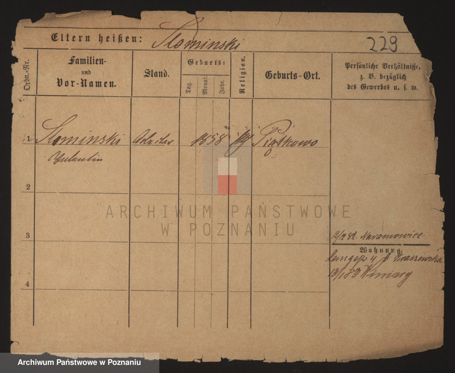 Podgląd karty osobowej dostępny jest po kliknięciu na nazwisko lub ikonkę karty. Można dokonywać powiększenia (ikony na górze) lub przechodzić między kolejnymi skanami (strzałki po bokach).