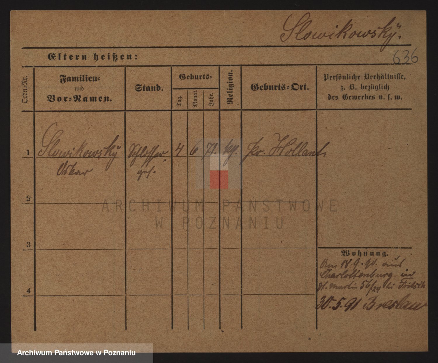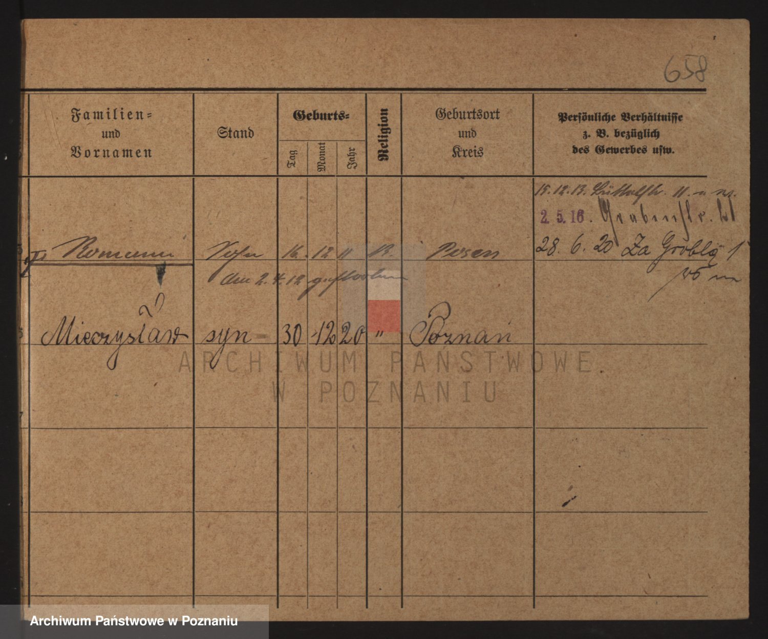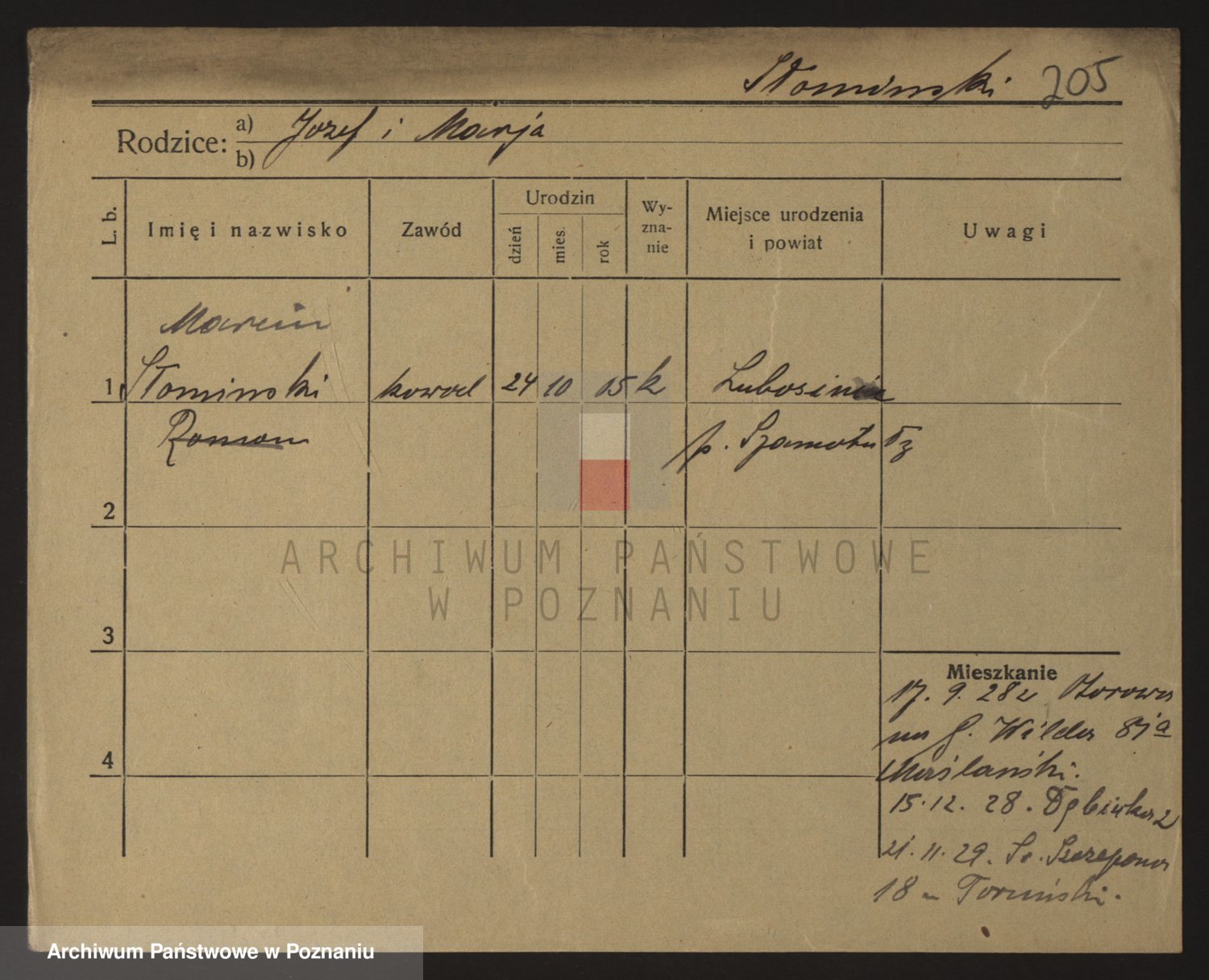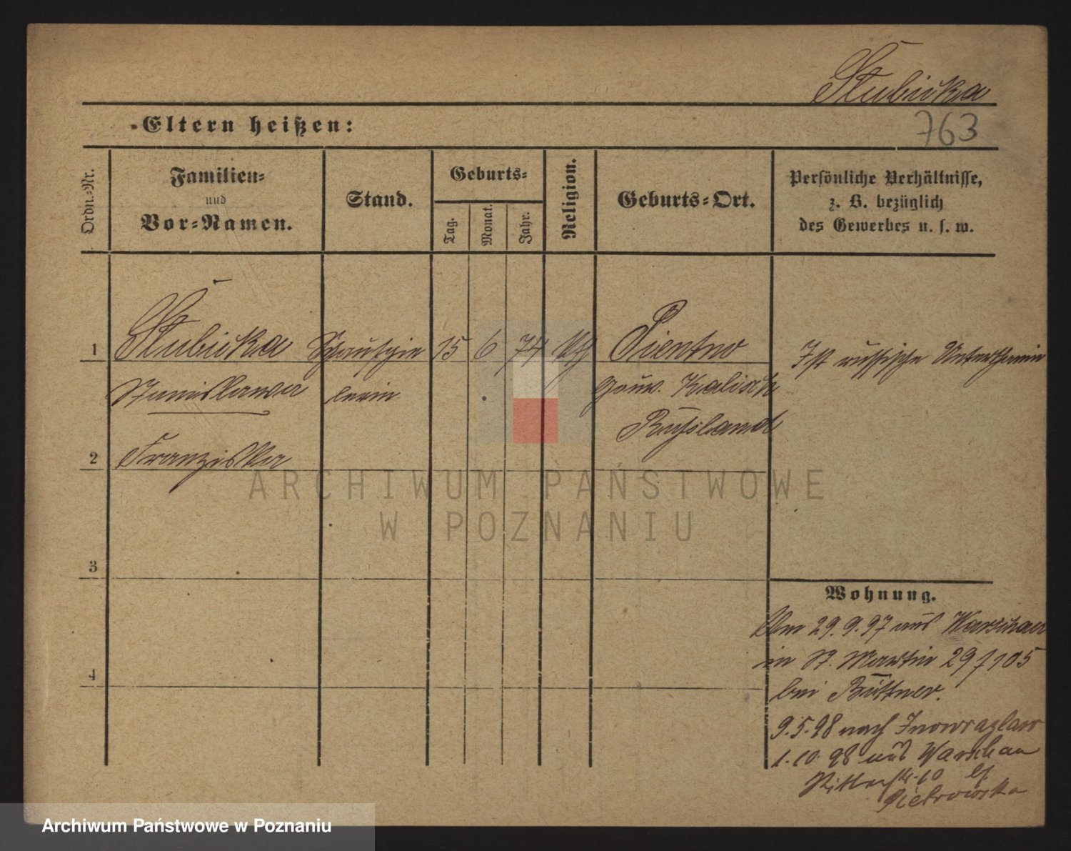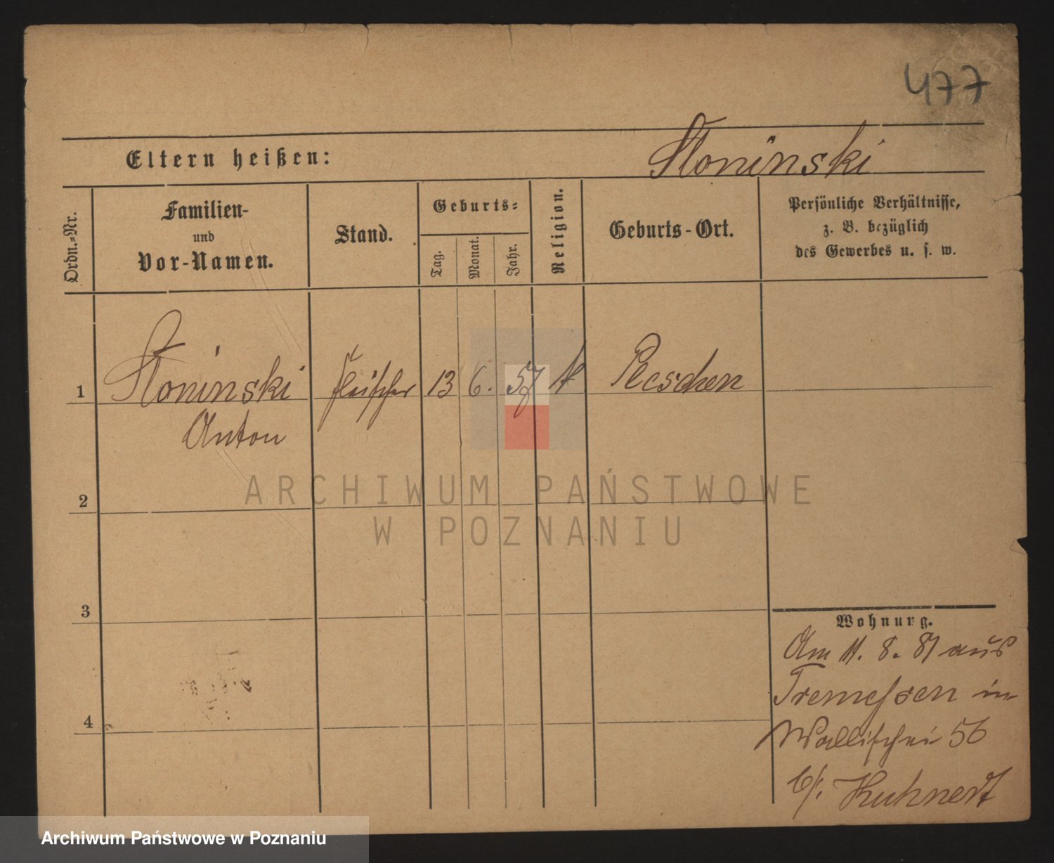 Podgląd karty osobowej dostępny jest po kliknięciu na nazwisko lub ikonkę karty. Można dokonywać powiększenia (ikony na górze) lub przechodzić między kolejnymi skanami (strzałki po bokach).