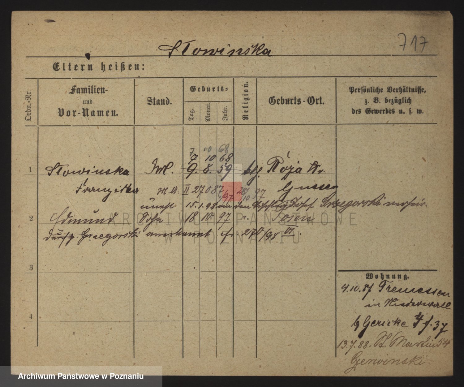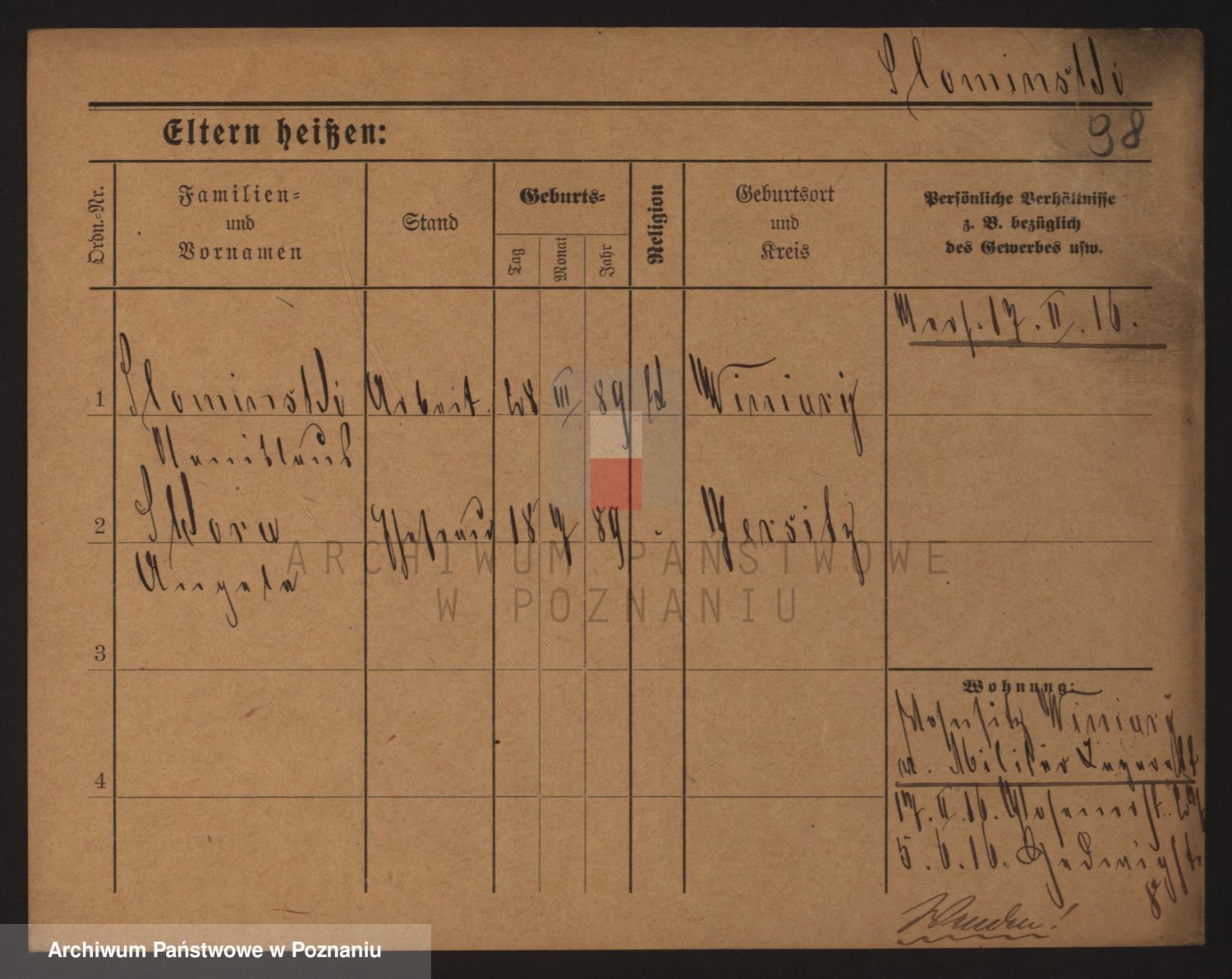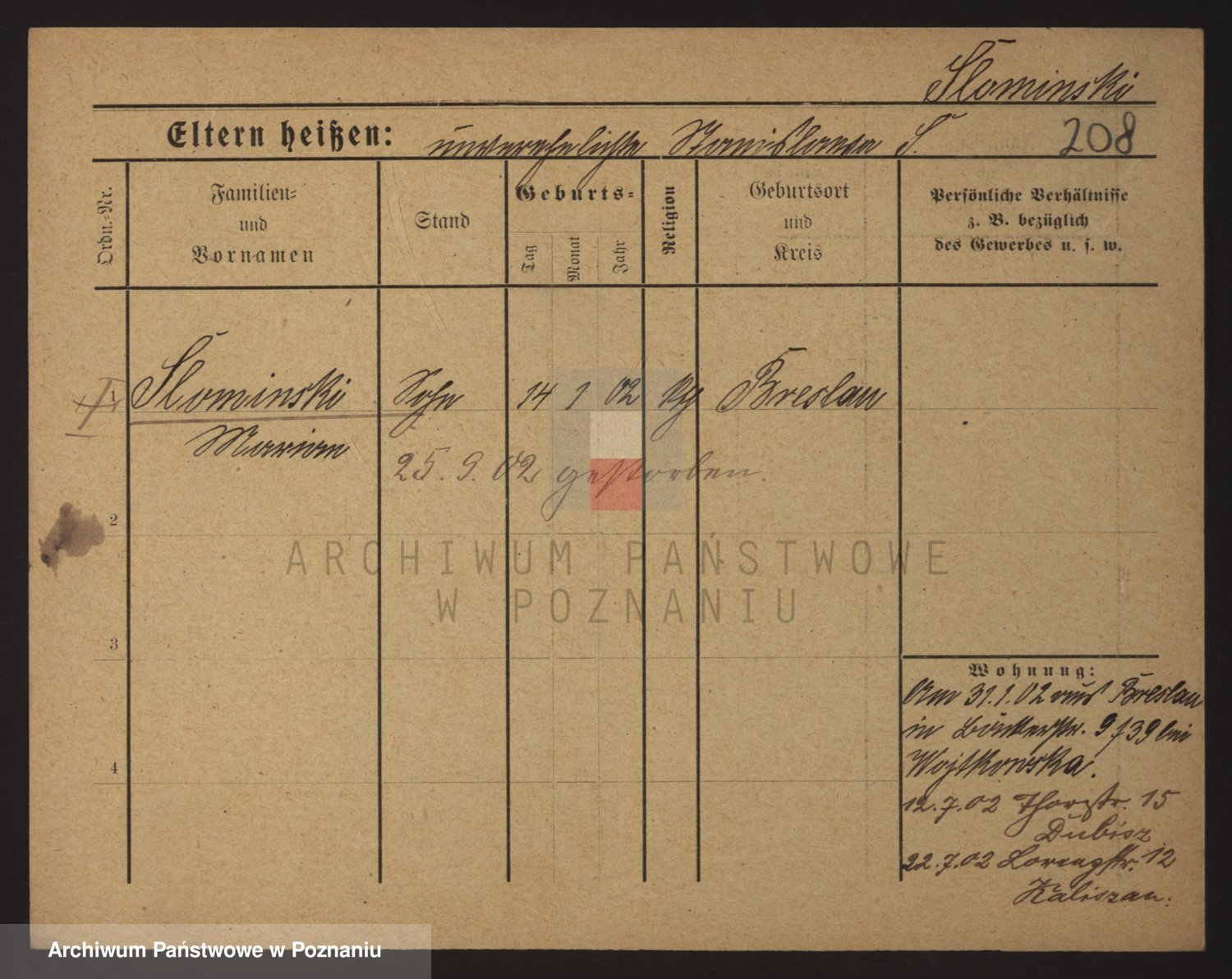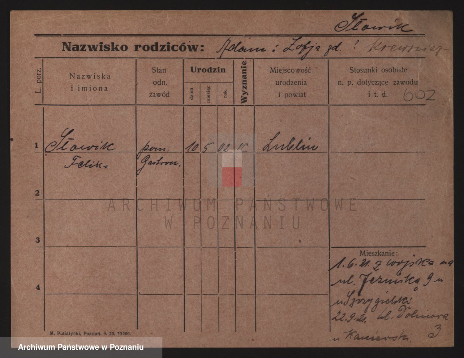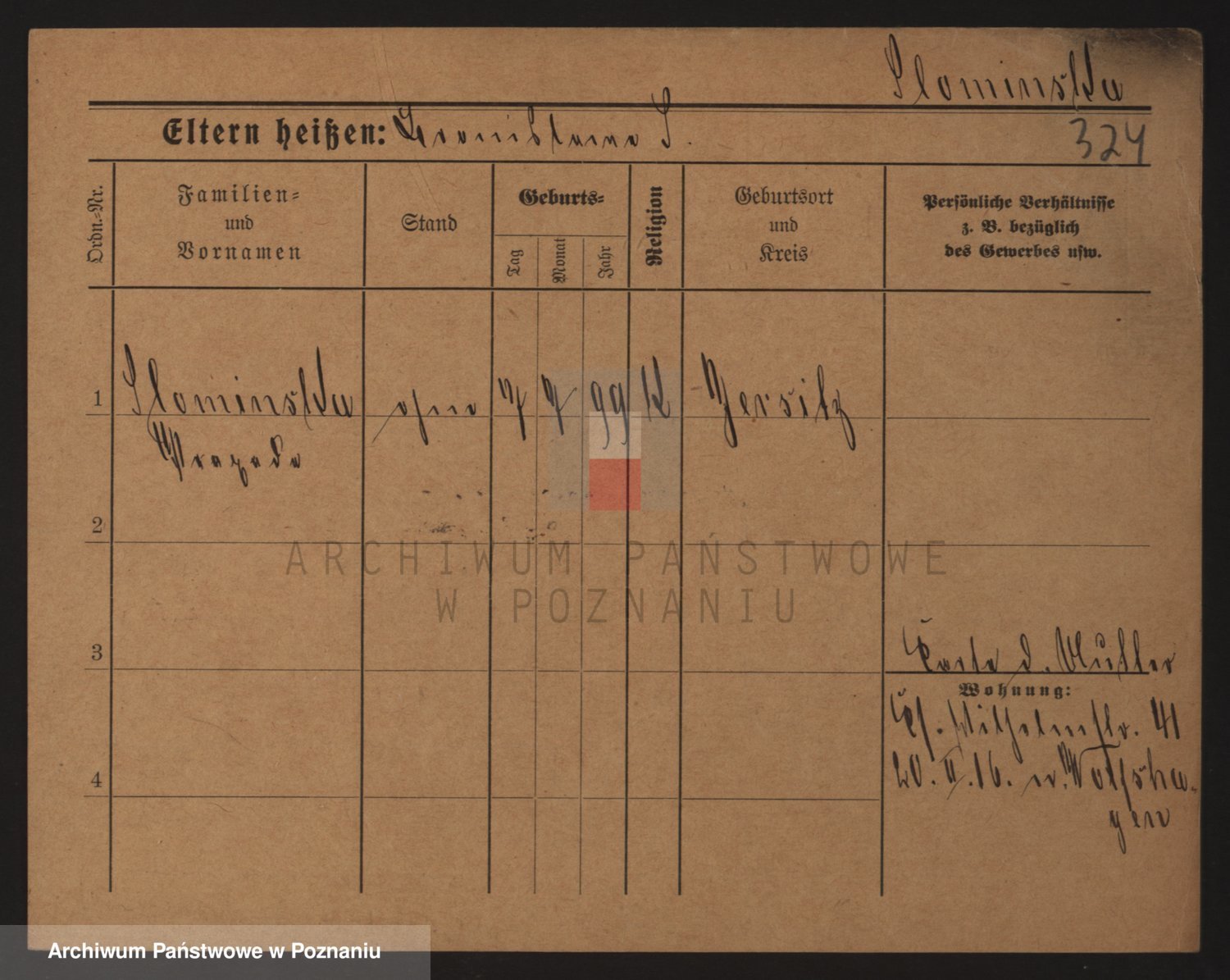 Podgląd karty osobowej dostępny jest po kliknięciu na nazwisko lub ikonkę karty. Można dokonywać powiększenia (ikony na górze) lub przechodzić między kolejnymi skanami (strzałki po bokach).