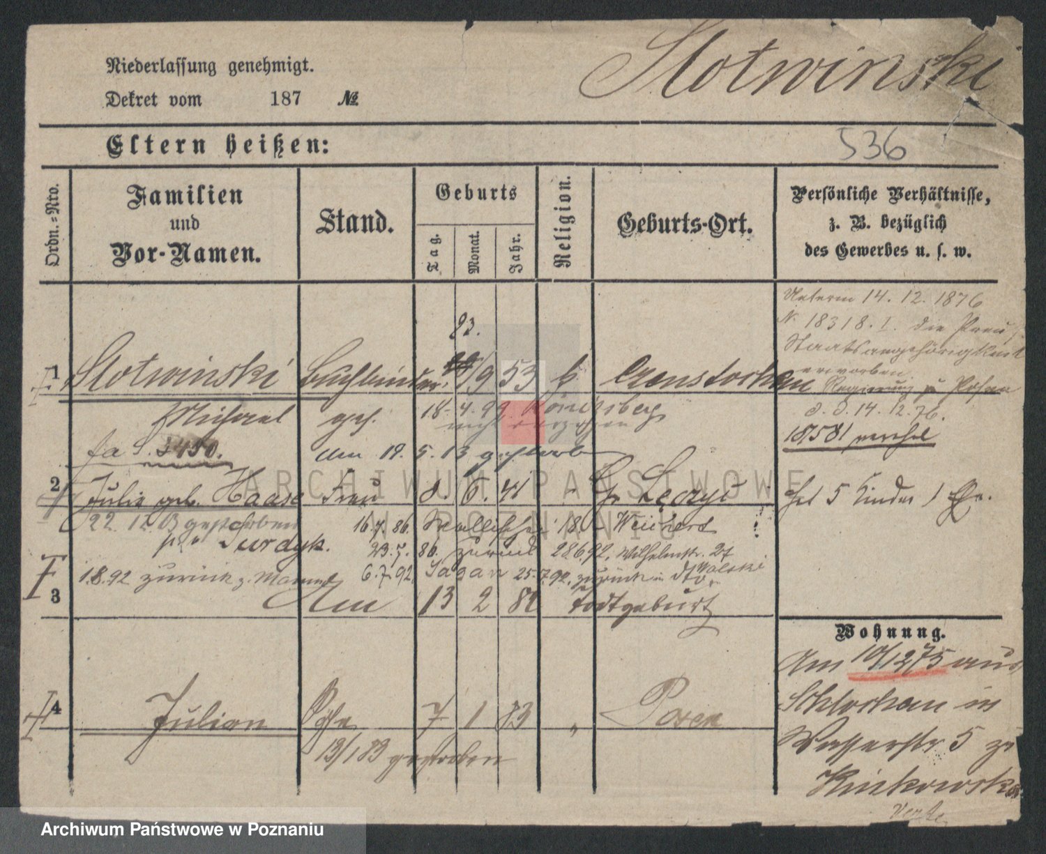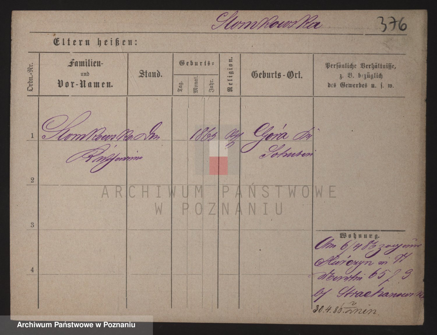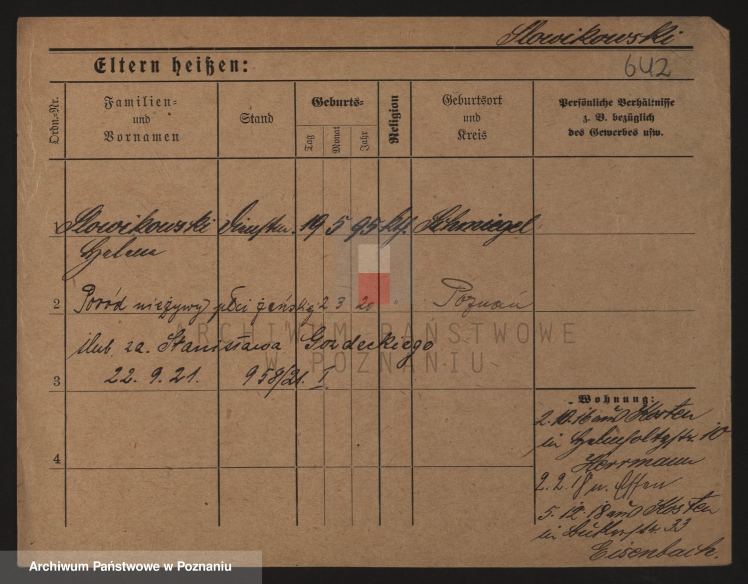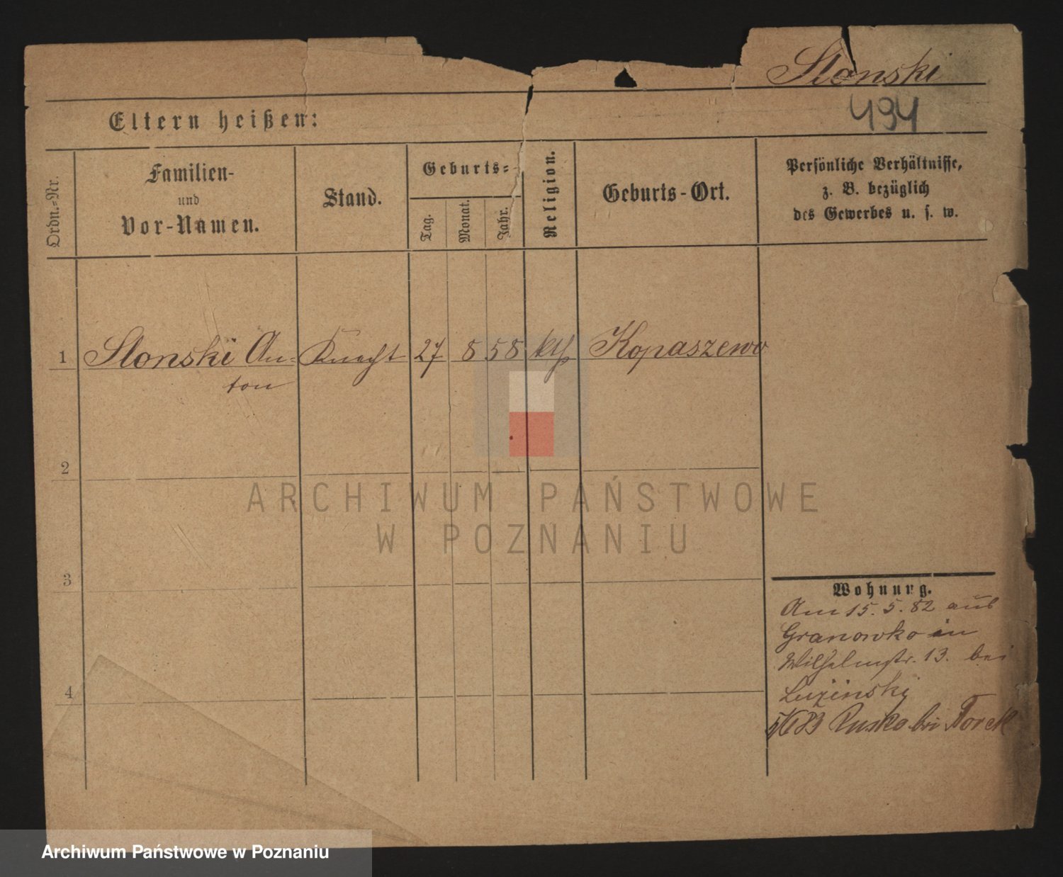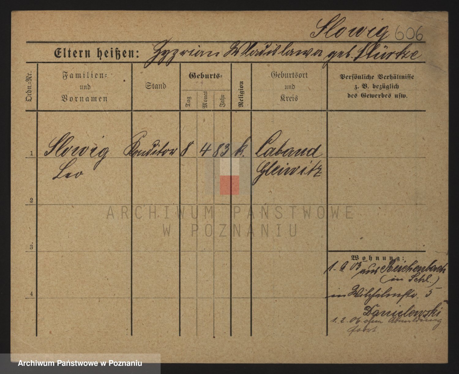 Podgląd karty osobowej dostępny jest po kliknięciu na nazwisko lub ikonkę karty. Można dokonywać powiększenia (ikony na górze) lub przechodzić między kolejnymi skanami (strzałki po bokach).