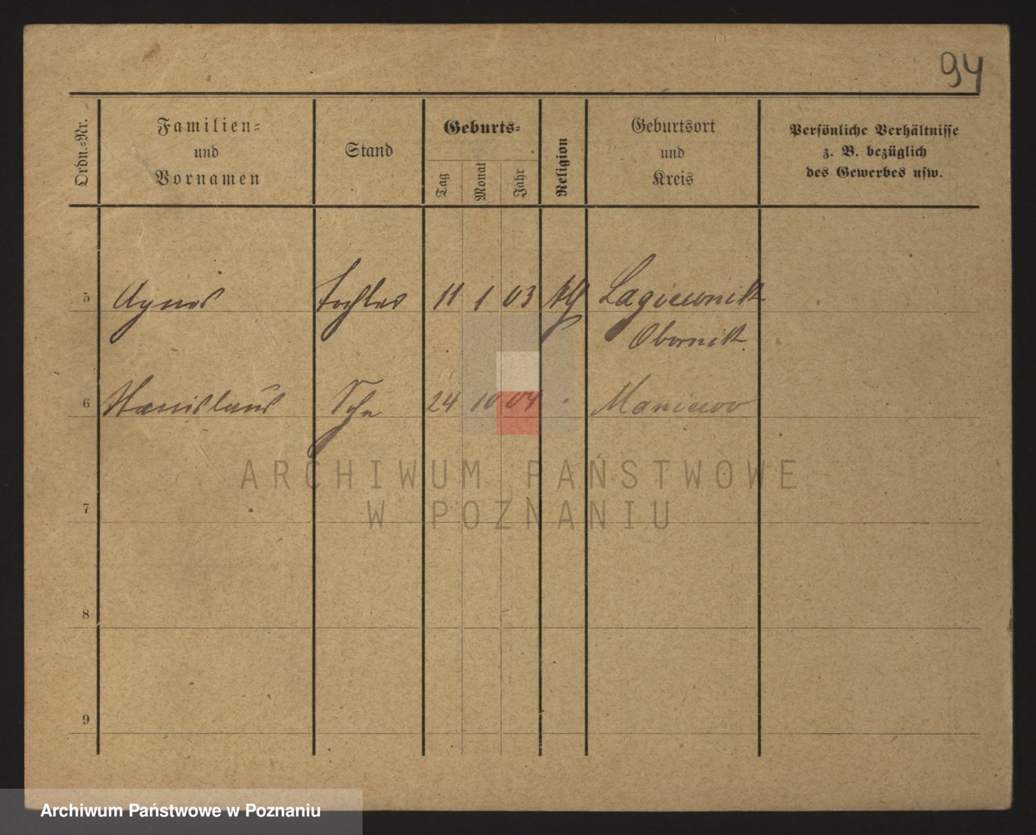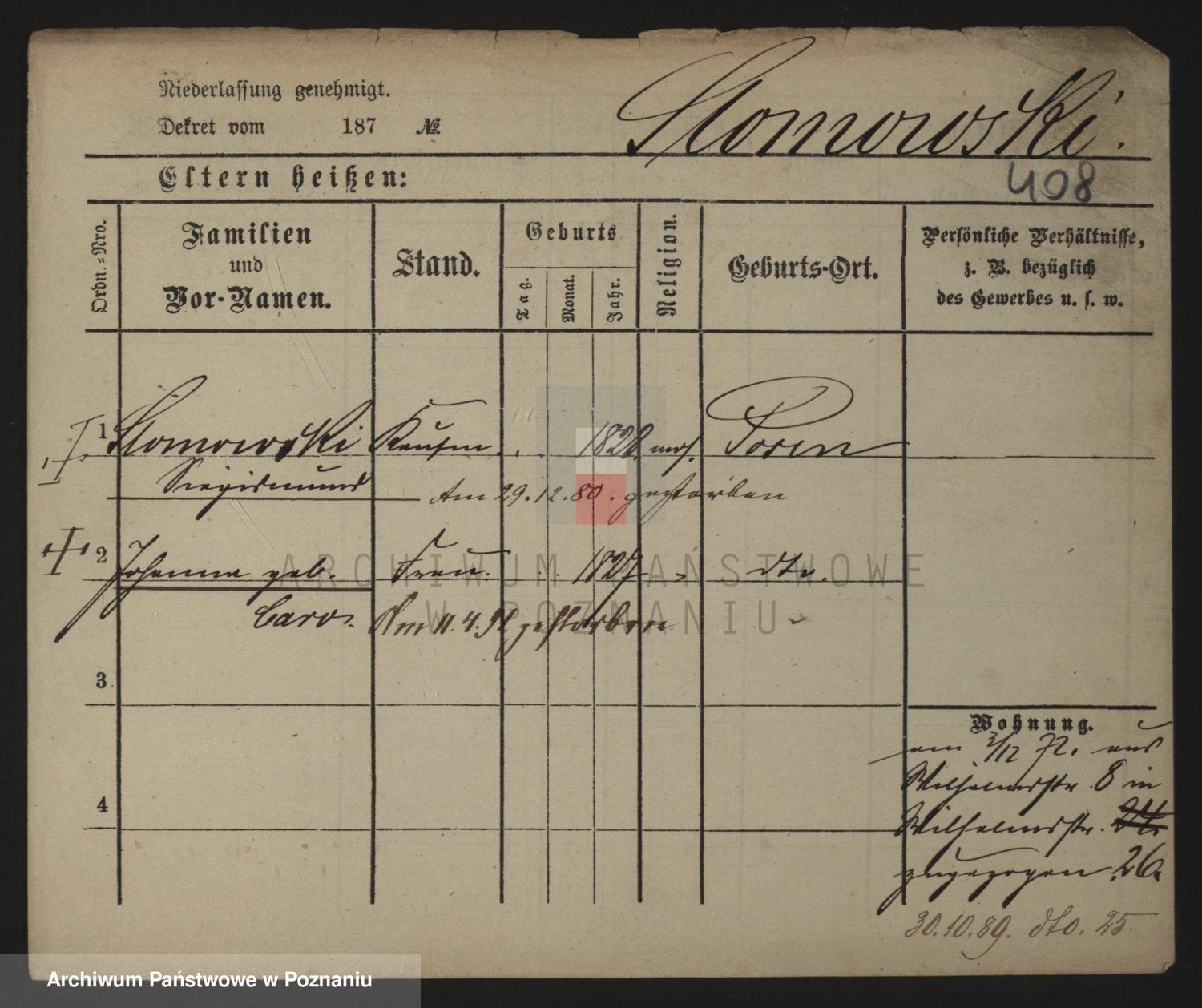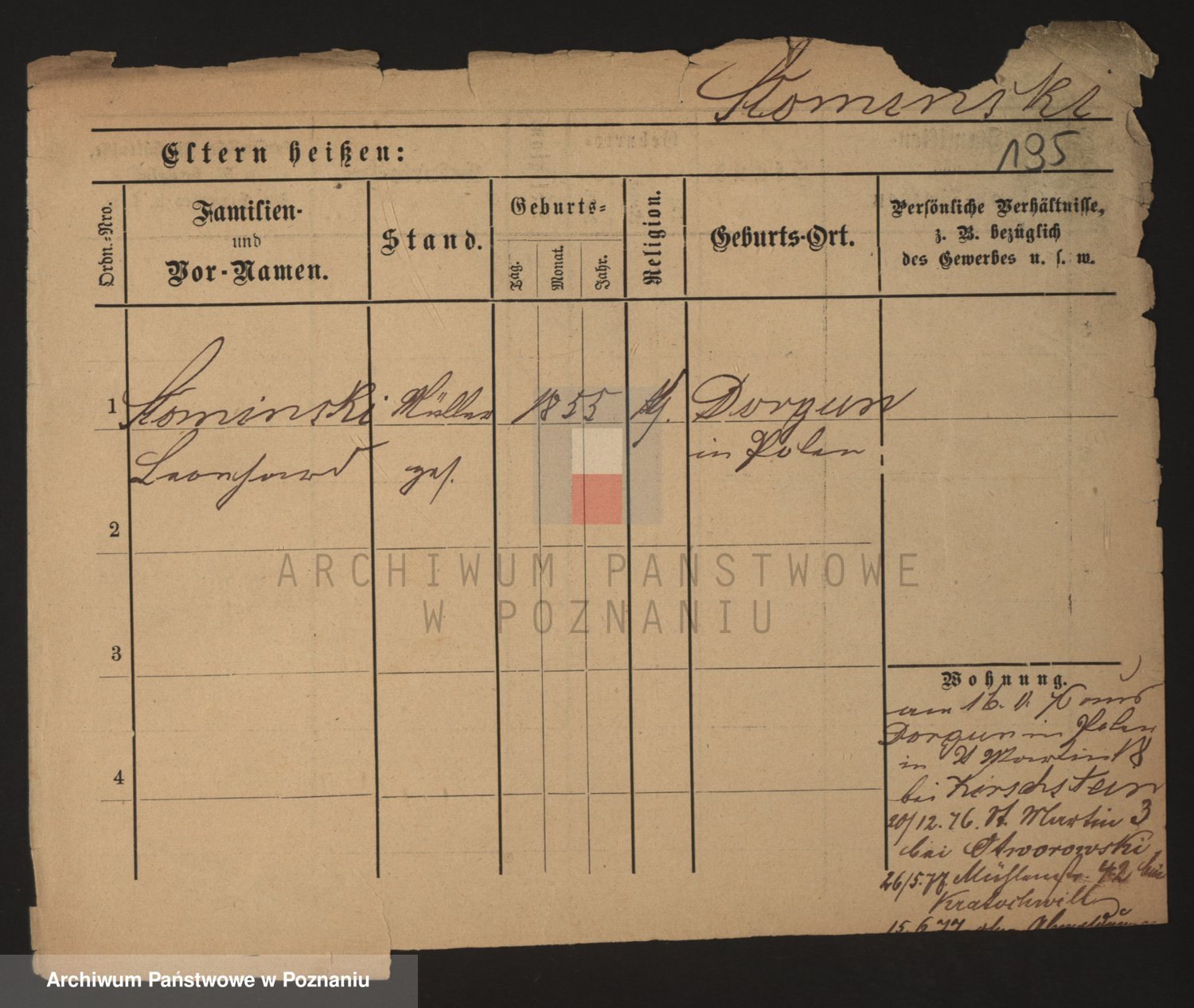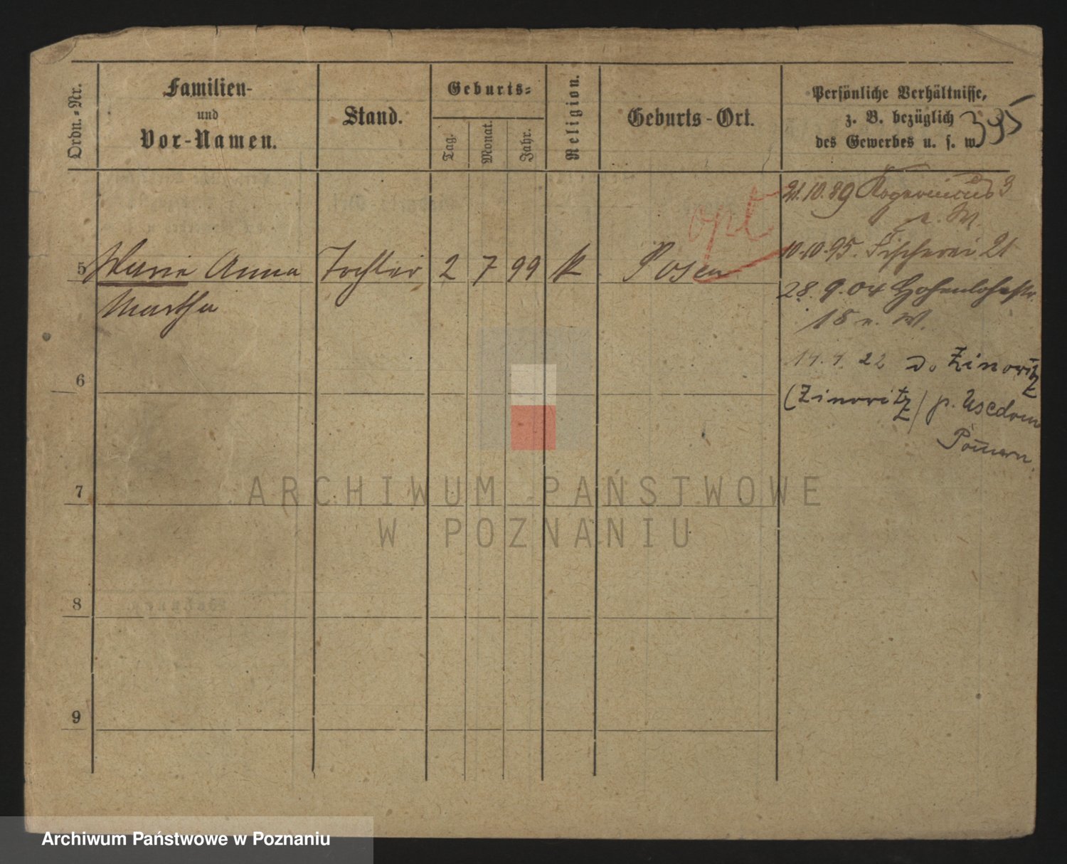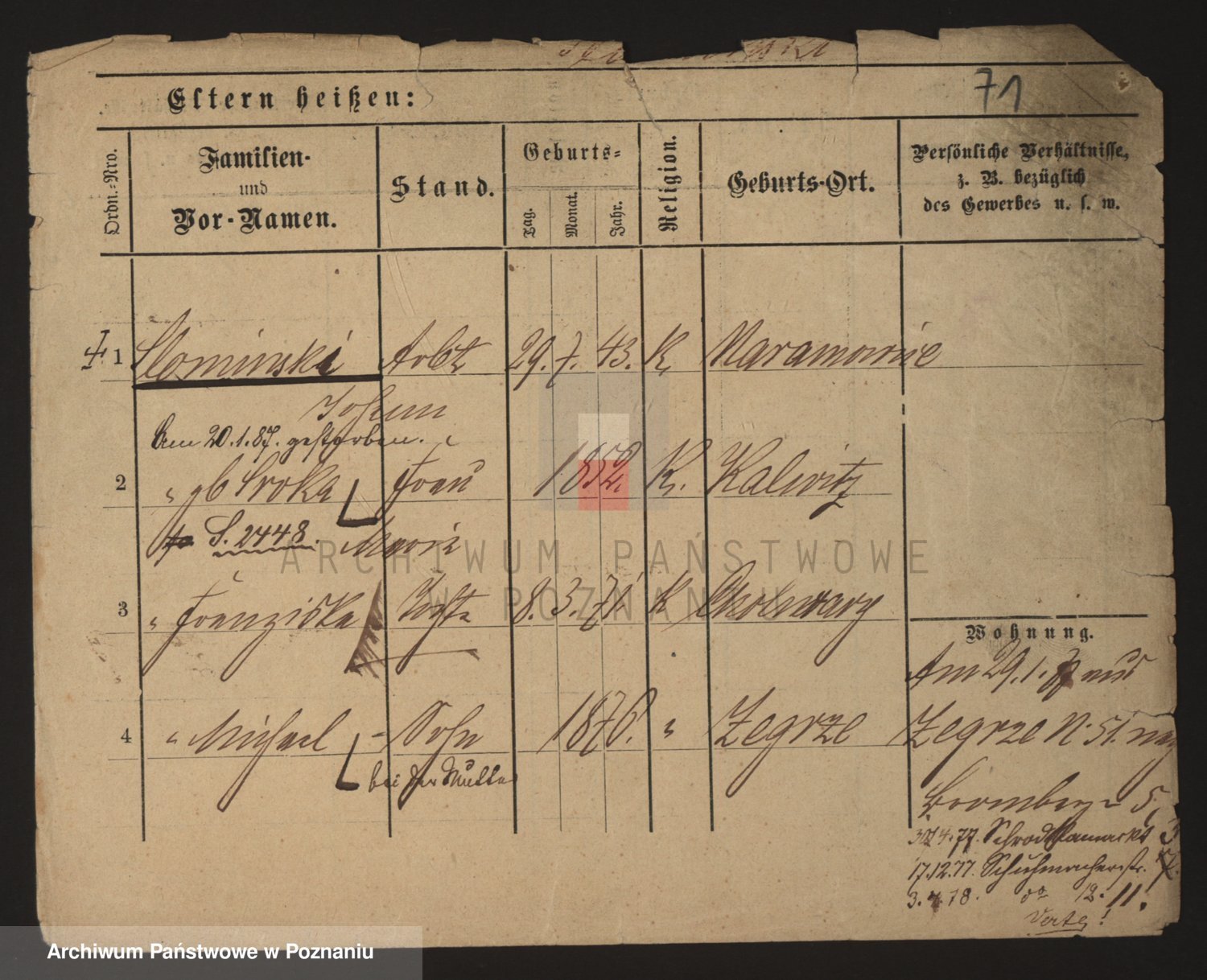 Podgląd karty osobowej dostępny jest po kliknięciu na nazwisko lub ikonkę karty. Można dokonywać powiększenia (ikony na górze) lub przechodzić między kolejnymi skanami (strzałki po bokach).