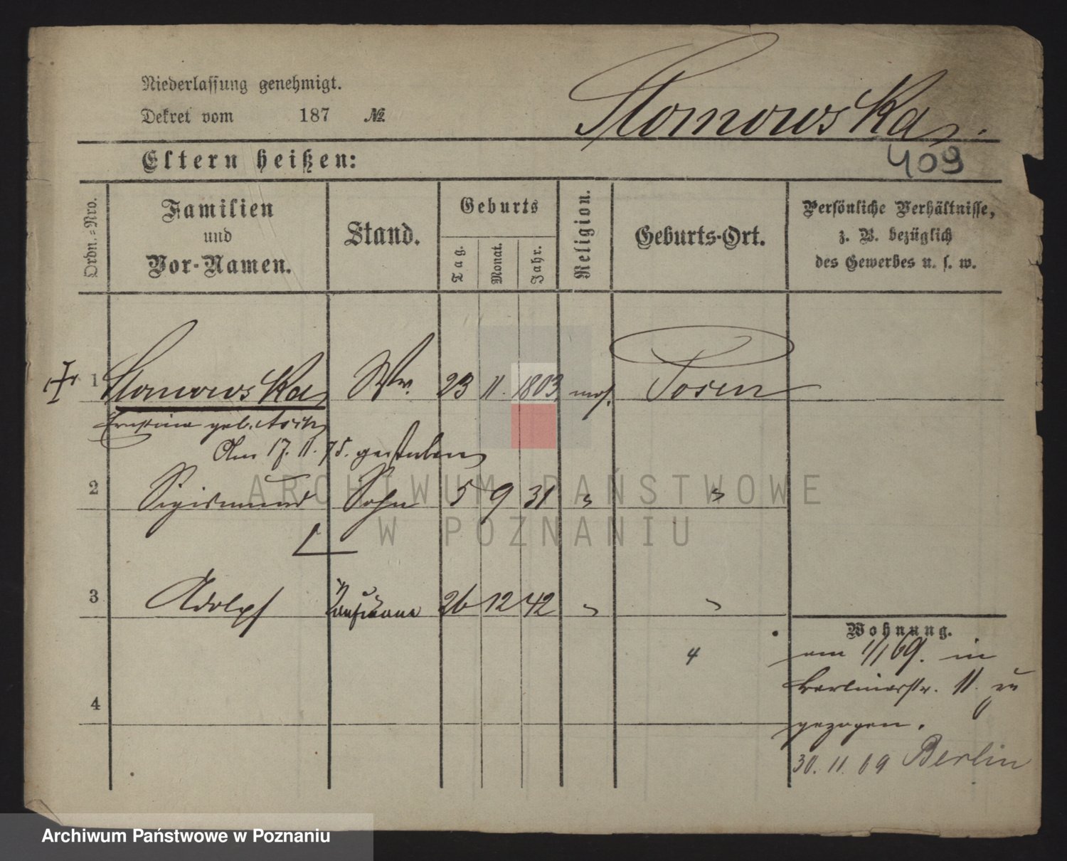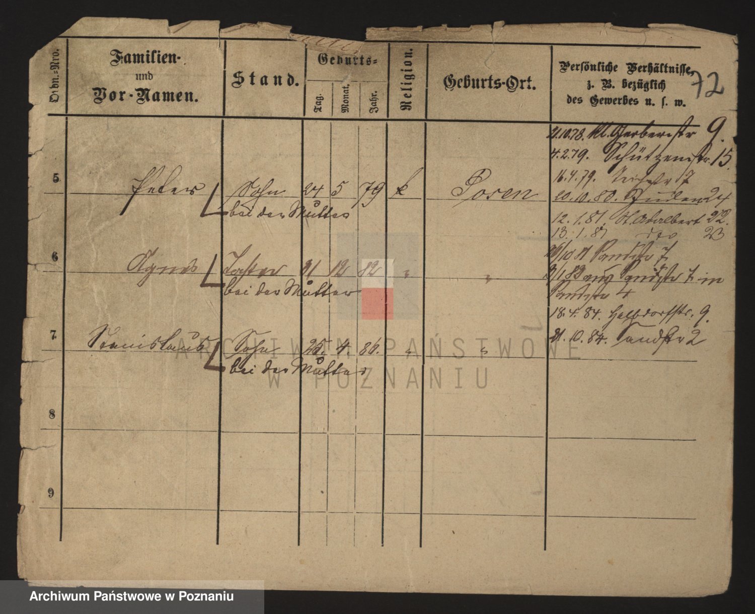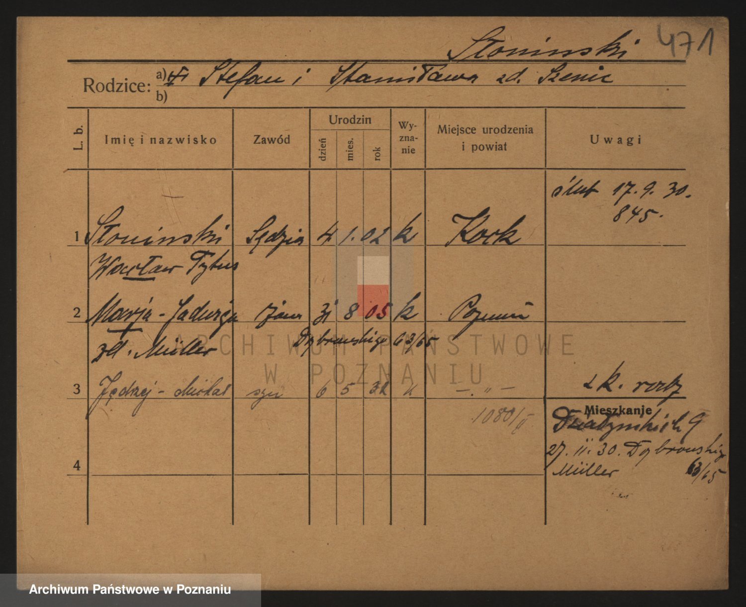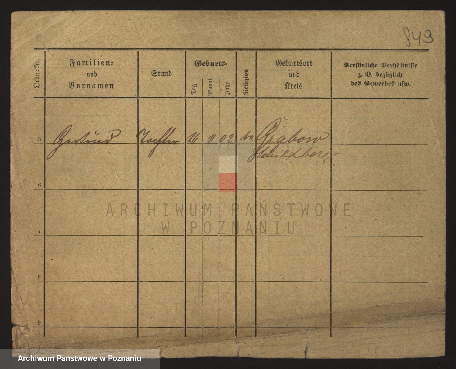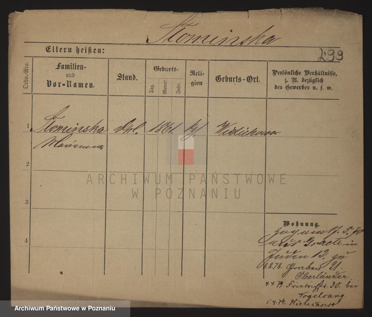 Podgląd karty osobowej dostępny jest po kliknięciu na nazwisko lub ikonkę karty. Można dokonywać powiększenia (ikony na górze) lub przechodzić między kolejnymi skanami (strzałki po bokach).