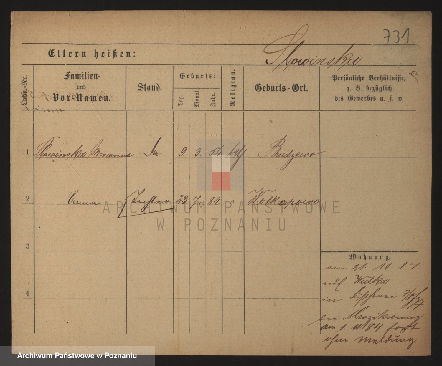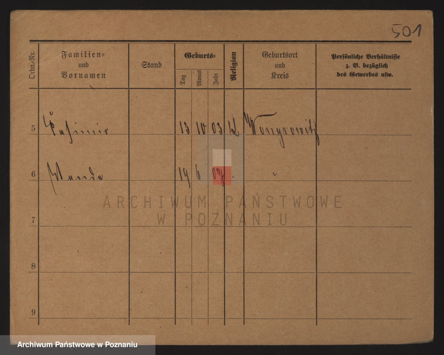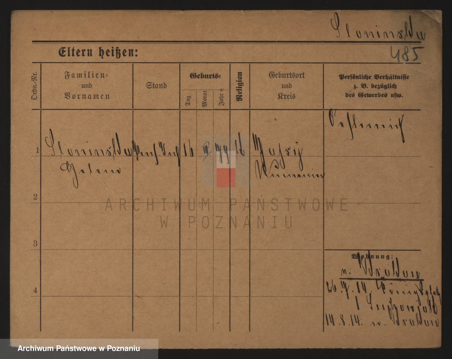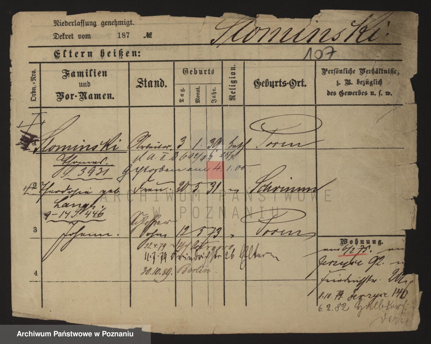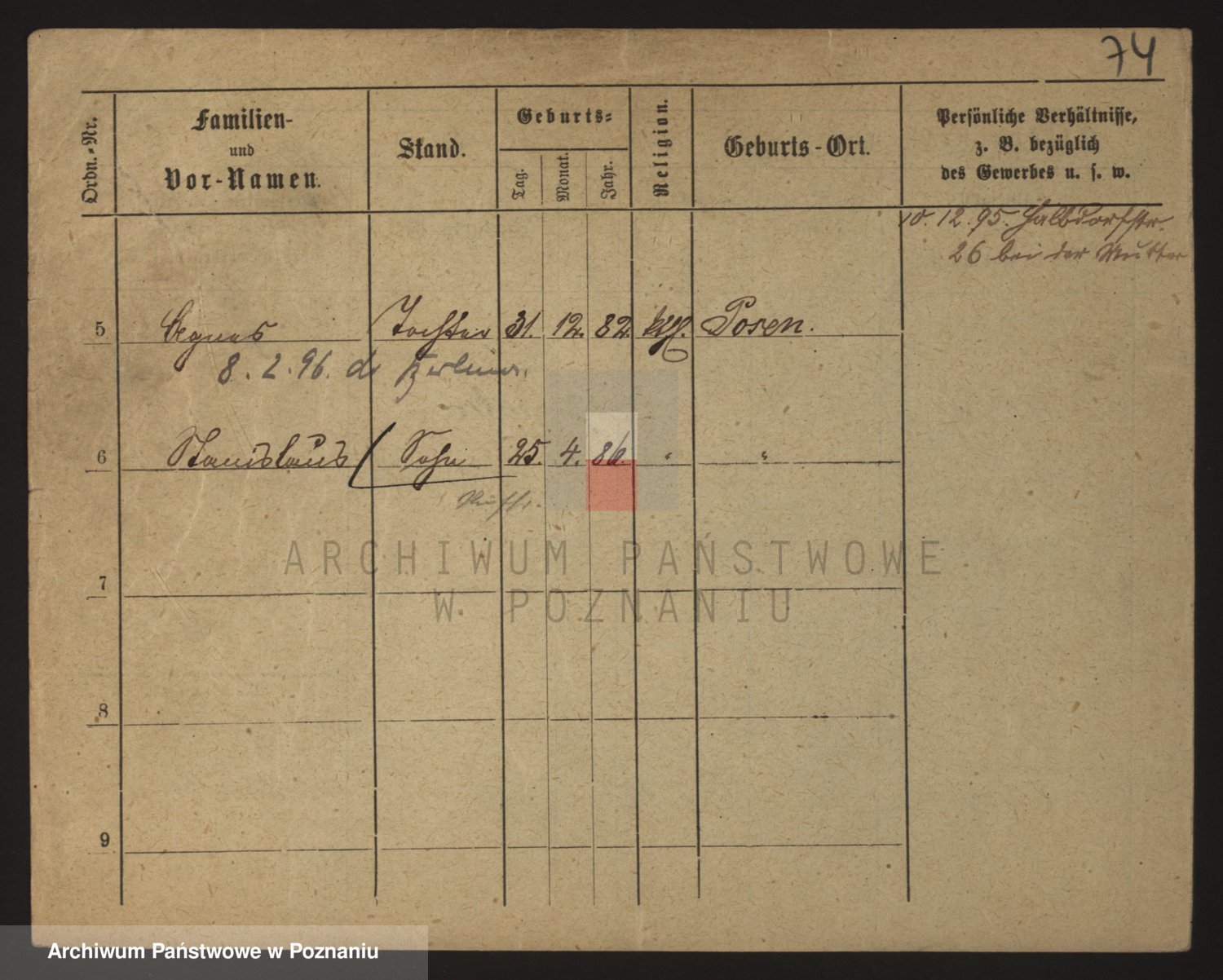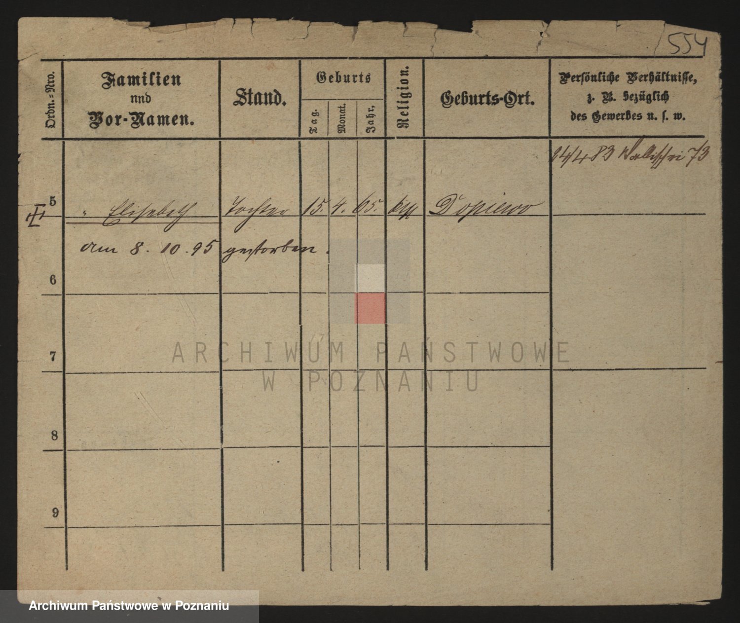 Podgląd karty osobowej dostępny jest po kliknięciu na nazwisko lub ikonkę karty. Można dokonywać powiększenia (ikony na górze) lub przechodzić między kolejnymi skanami (strzałki po bokach).