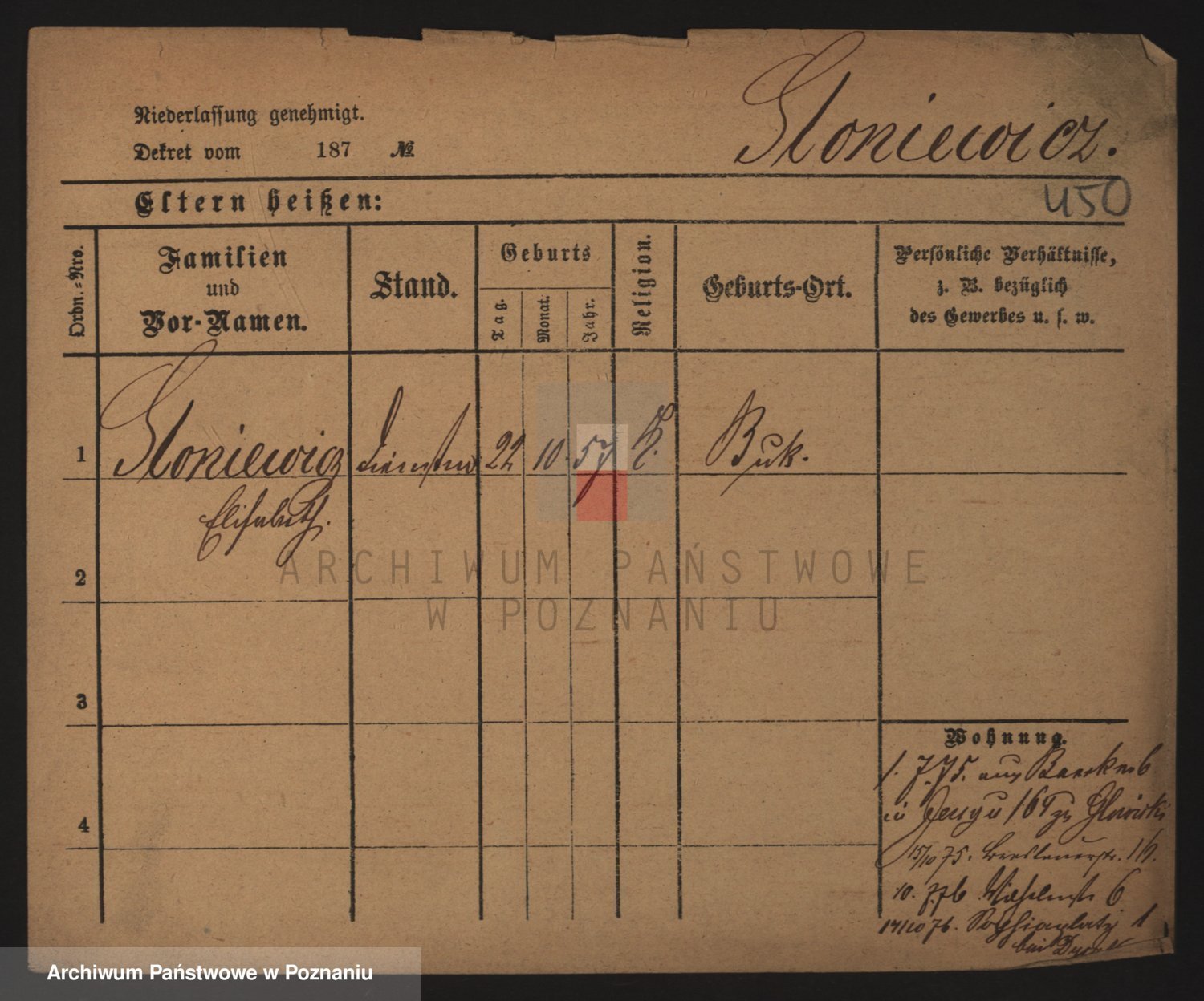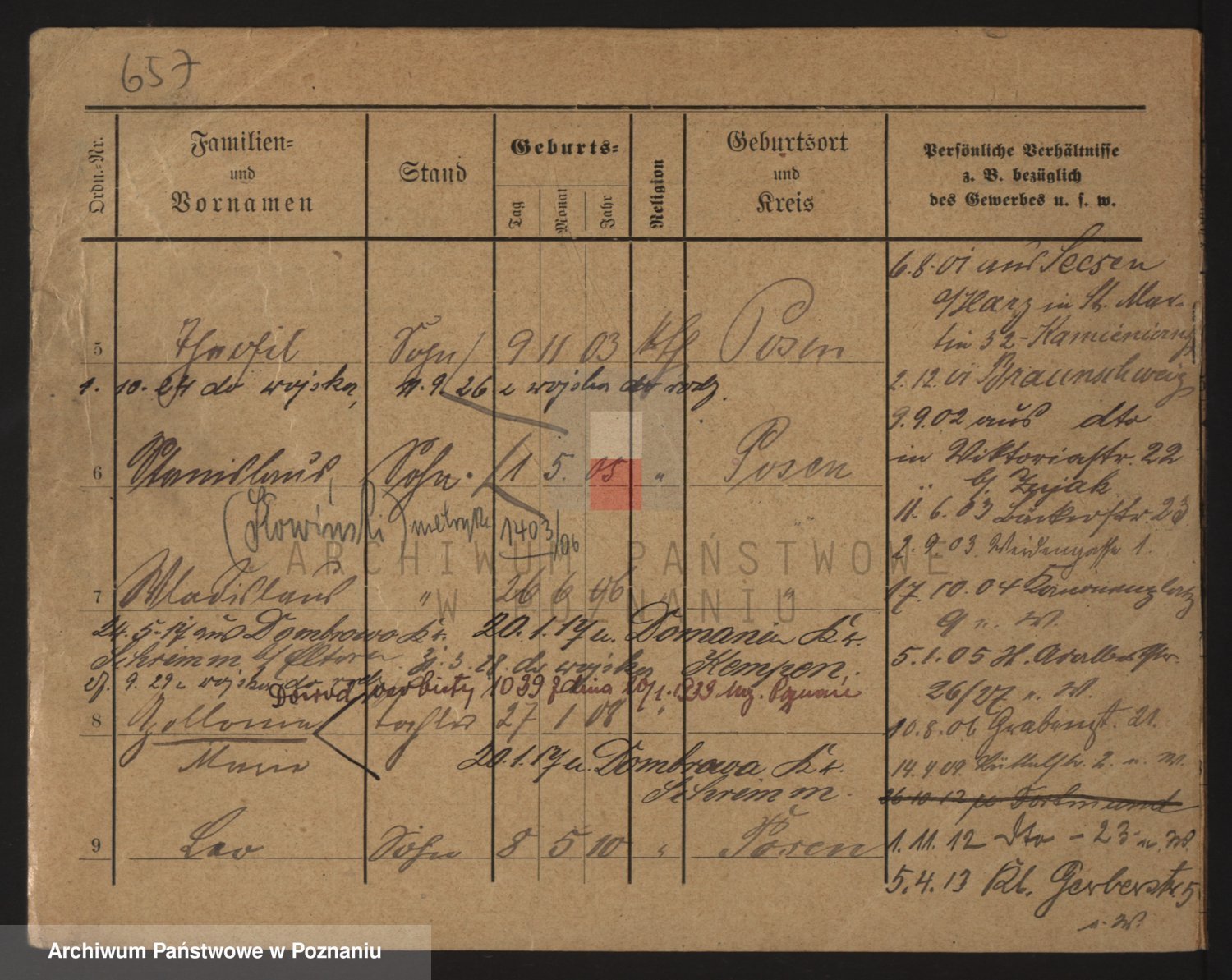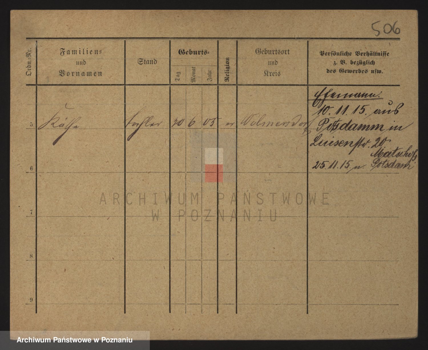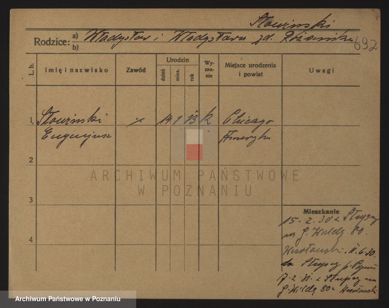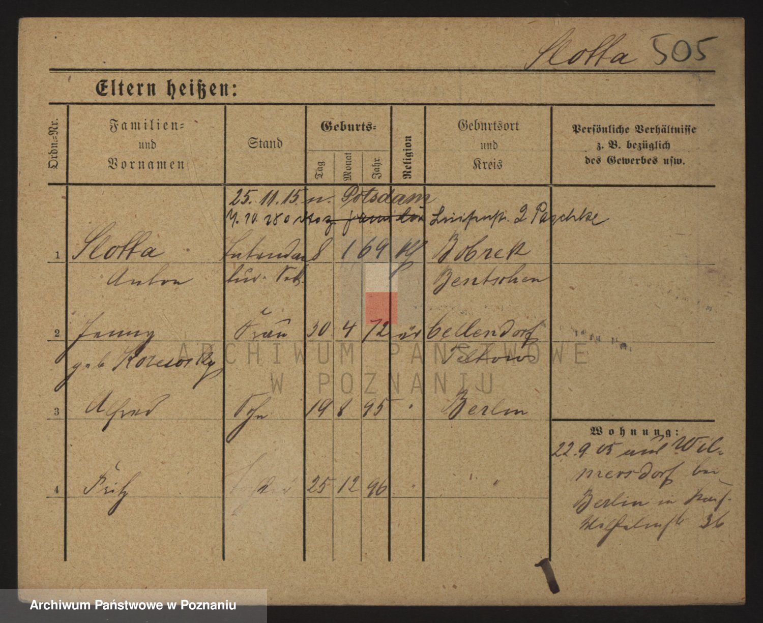 Podgląd karty osobowej dostępny jest po kliknięciu na nazwisko lub ikonkę karty. Można dokonywać powiększenia (ikony na górze) lub przechodzić między kolejnymi skanami (strzałki po bokach).