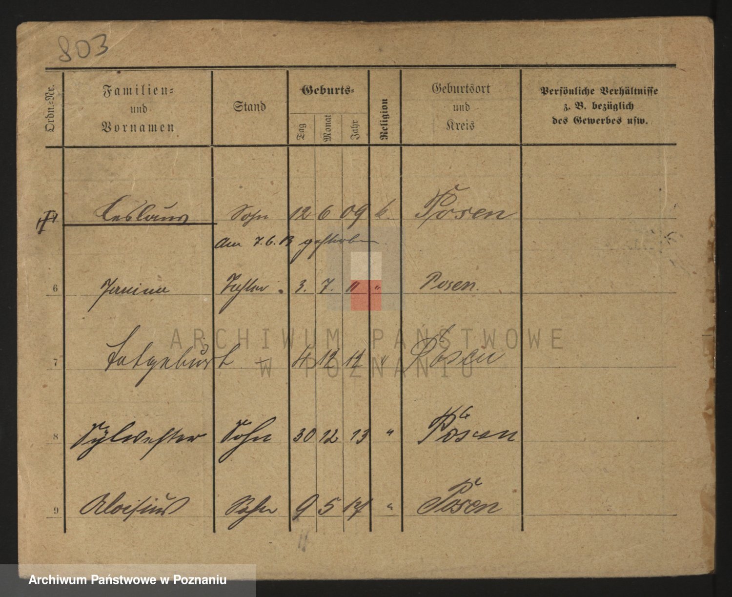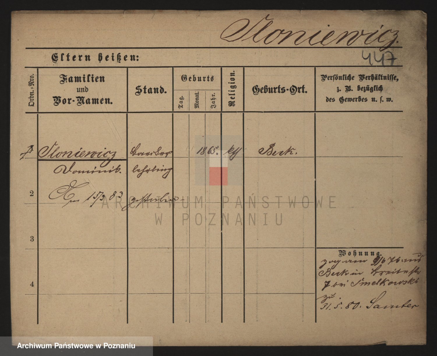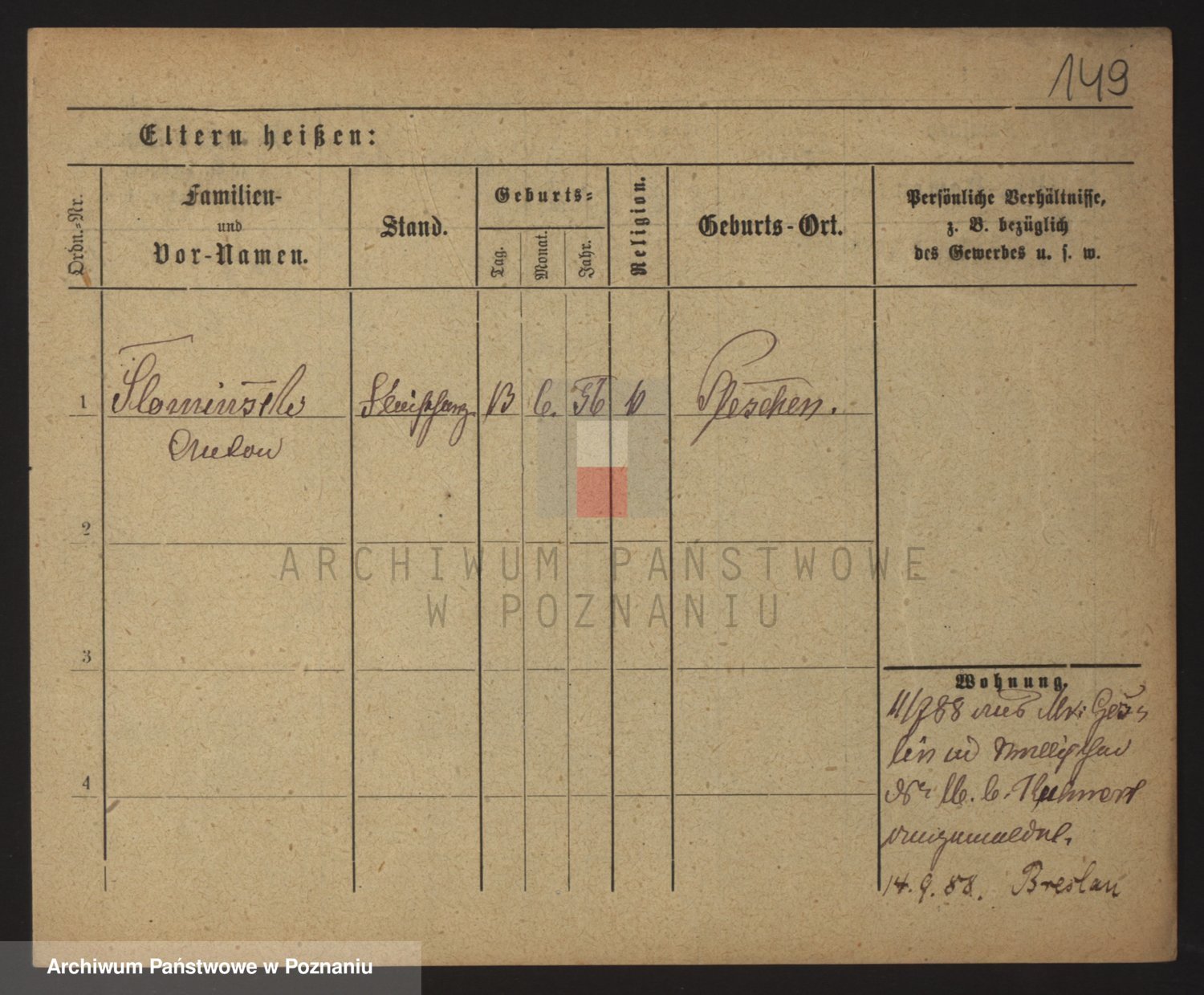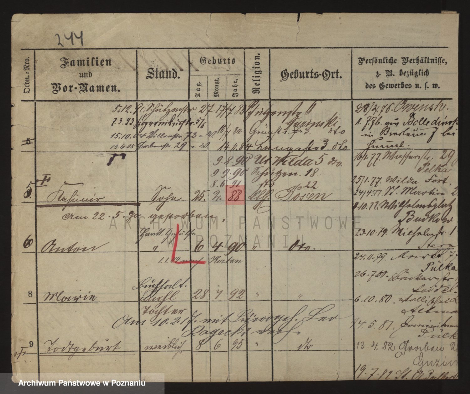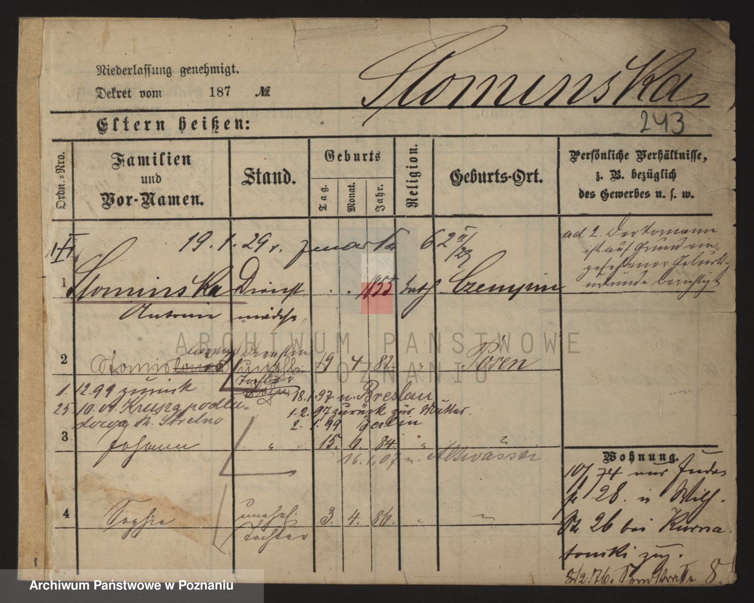 Podgląd karty osobowej dostępny jest po kliknięciu na nazwisko lub ikonkę karty. Można dokonywać powiększenia (ikony na górze) lub przechodzić między kolejnymi skanami (strzałki po bokach).