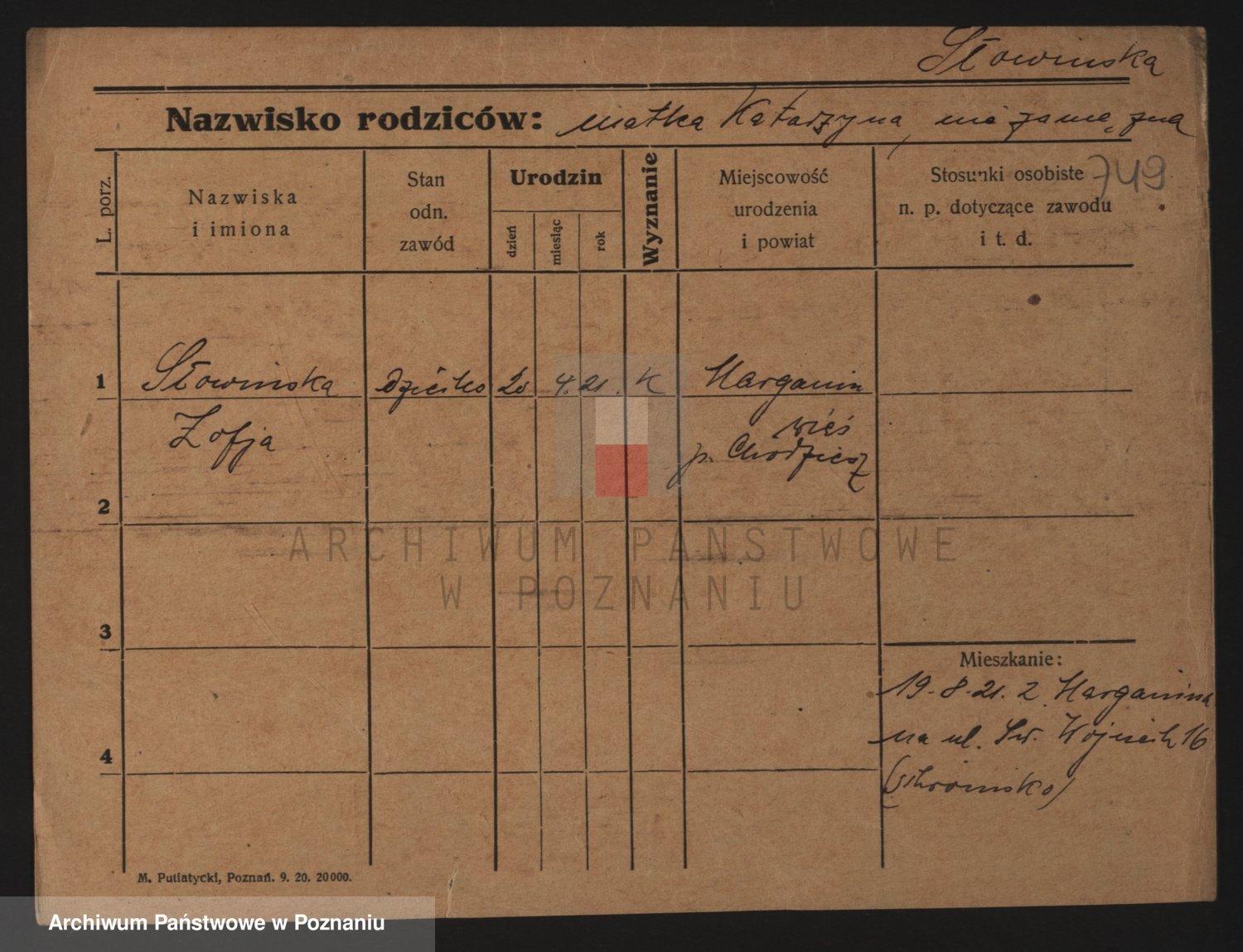Słomian z d. Młotowska, Zofja Marja