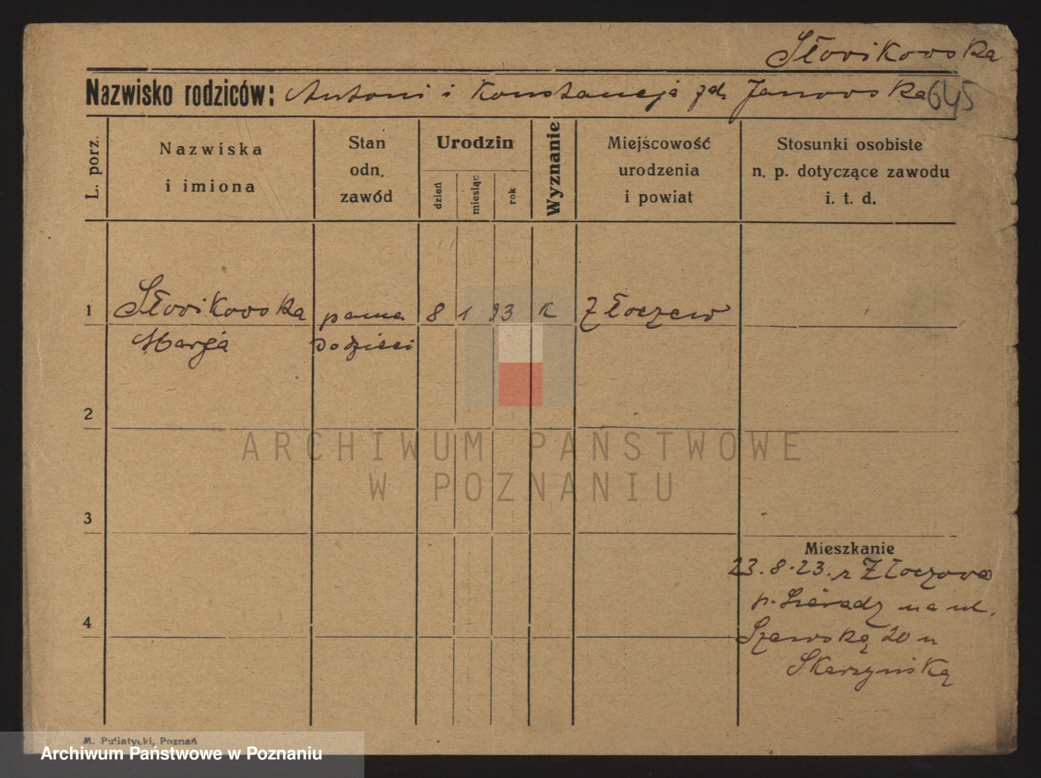 Słomian z d. Szymańska, Zofja