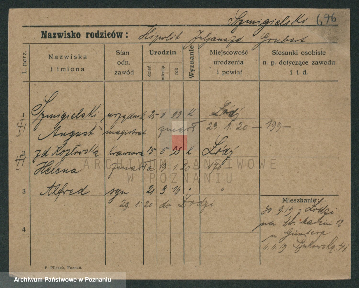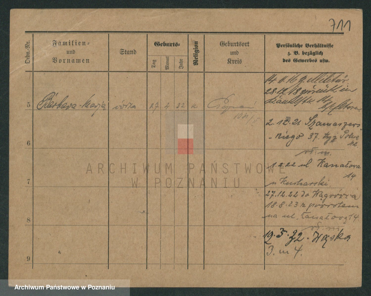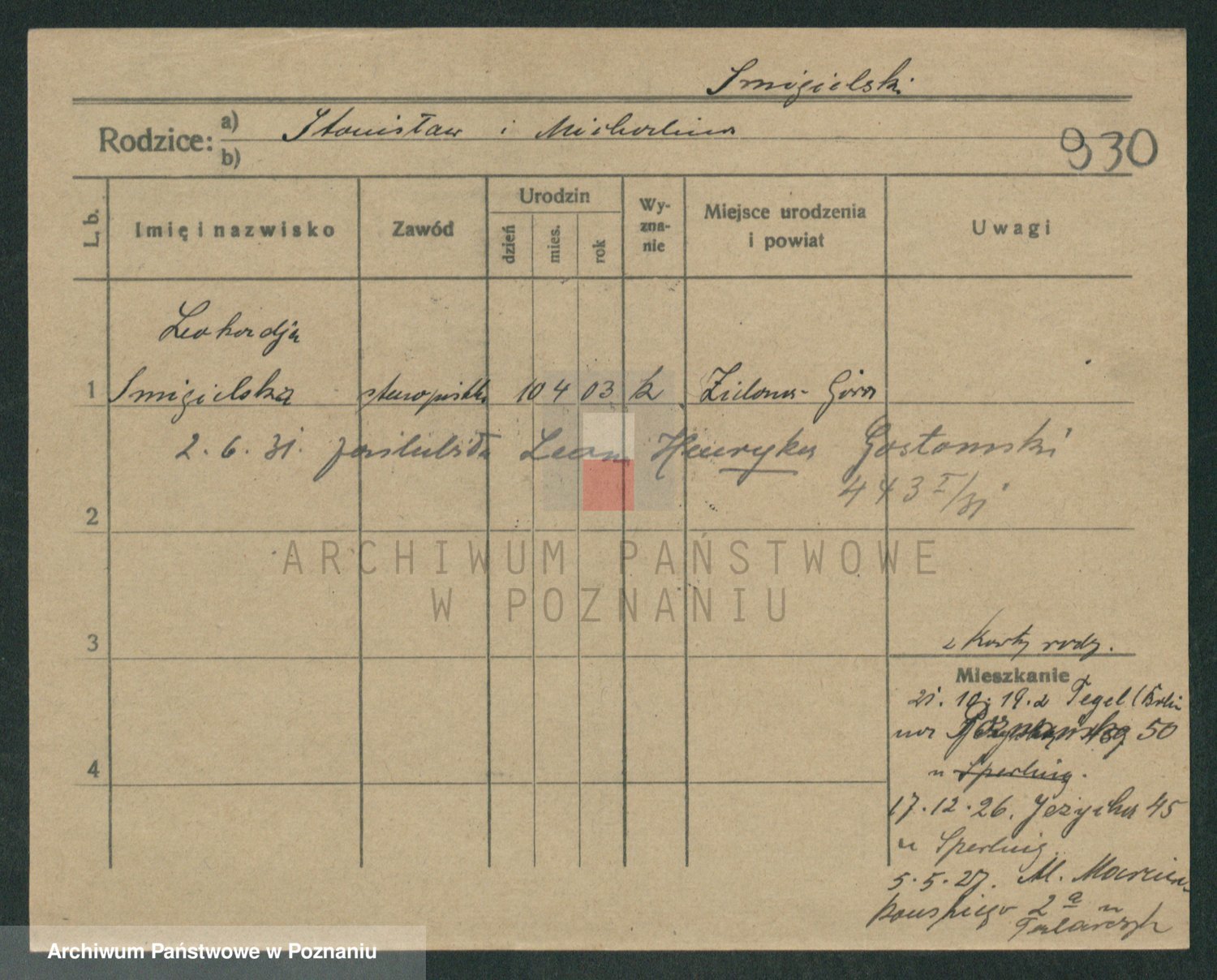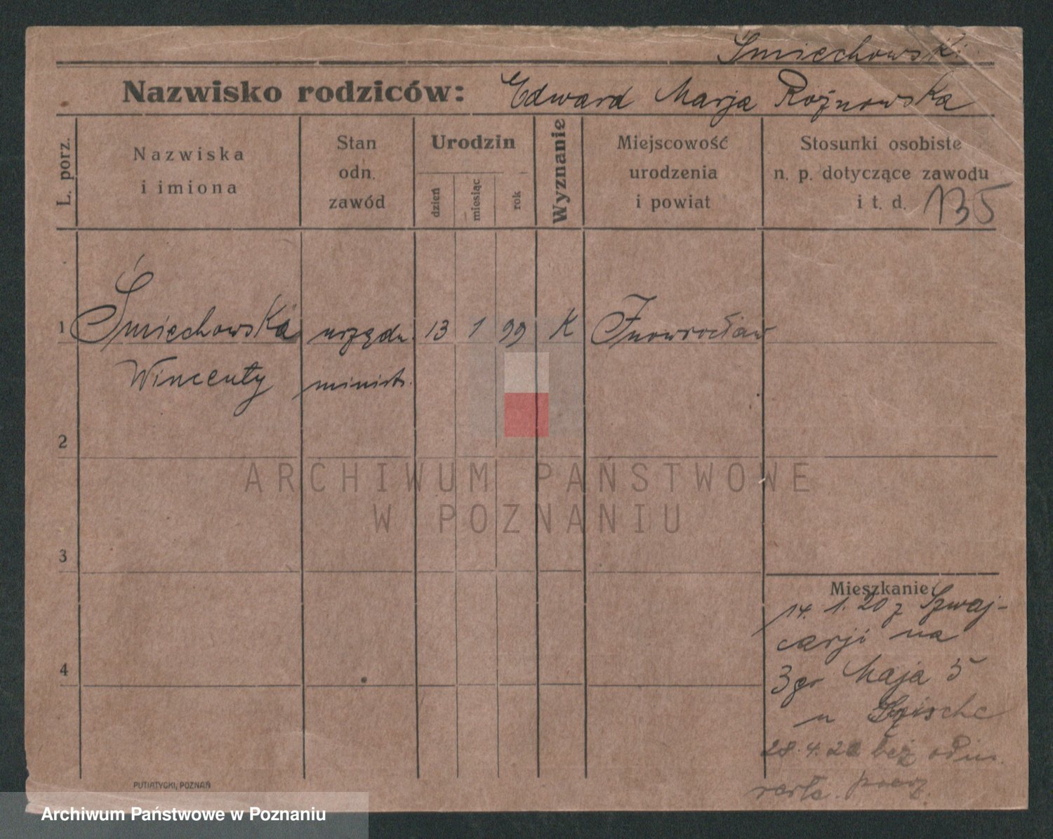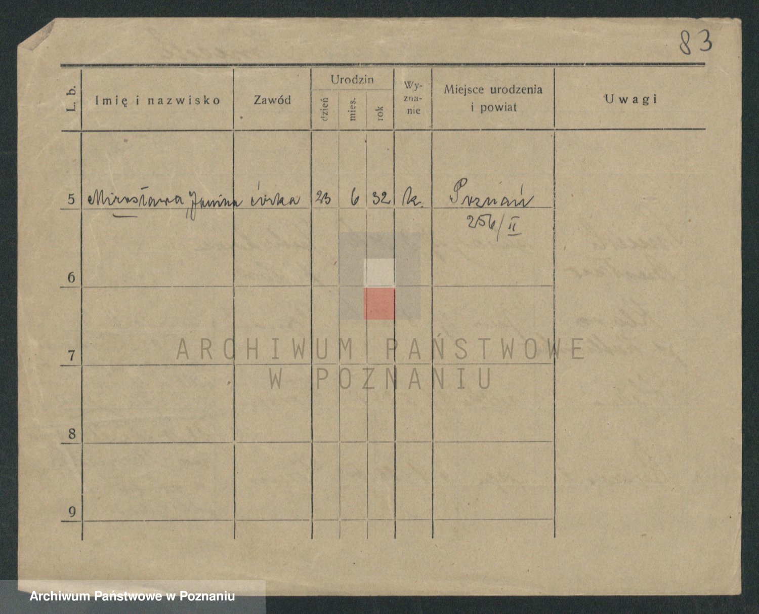 Podgląd karty osobowej dostępny jest po kliknięciu na nazwisko lub ikonkę karty. Można dokonywać powiększenia (ikony na górze) lub przechodzić między kolejnymi skanami (strzałki po bokach).