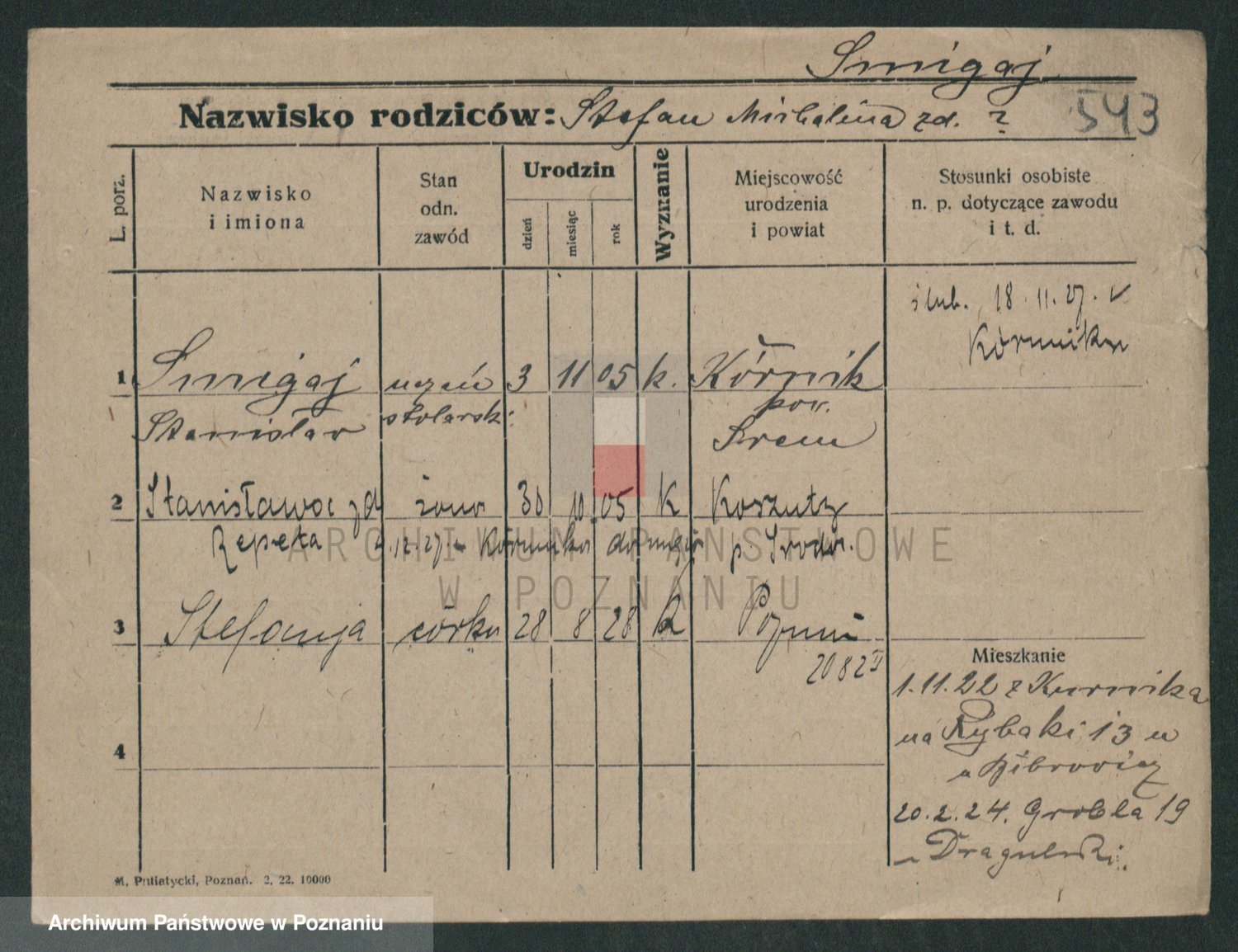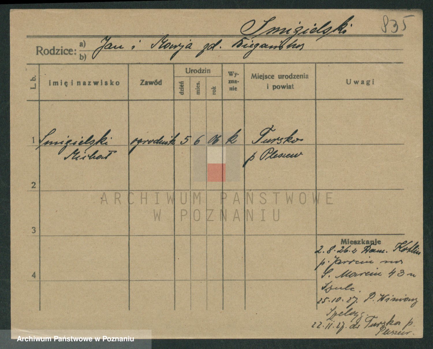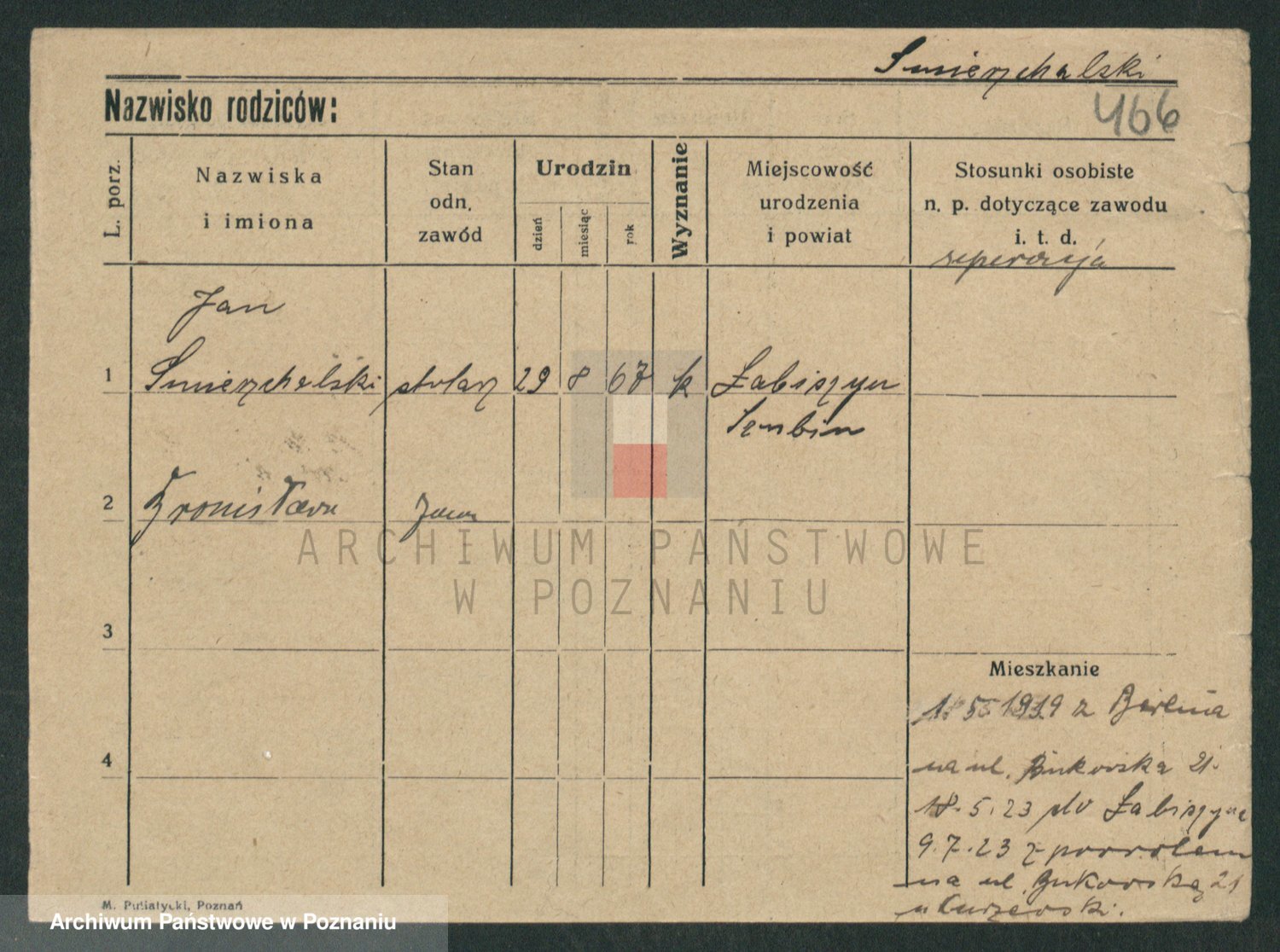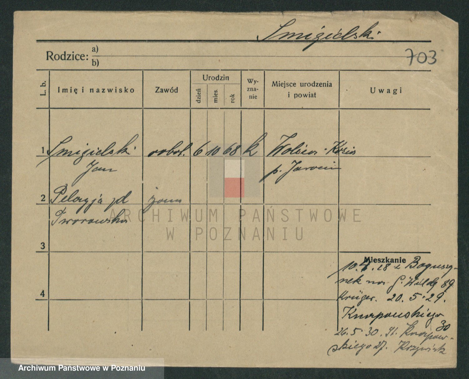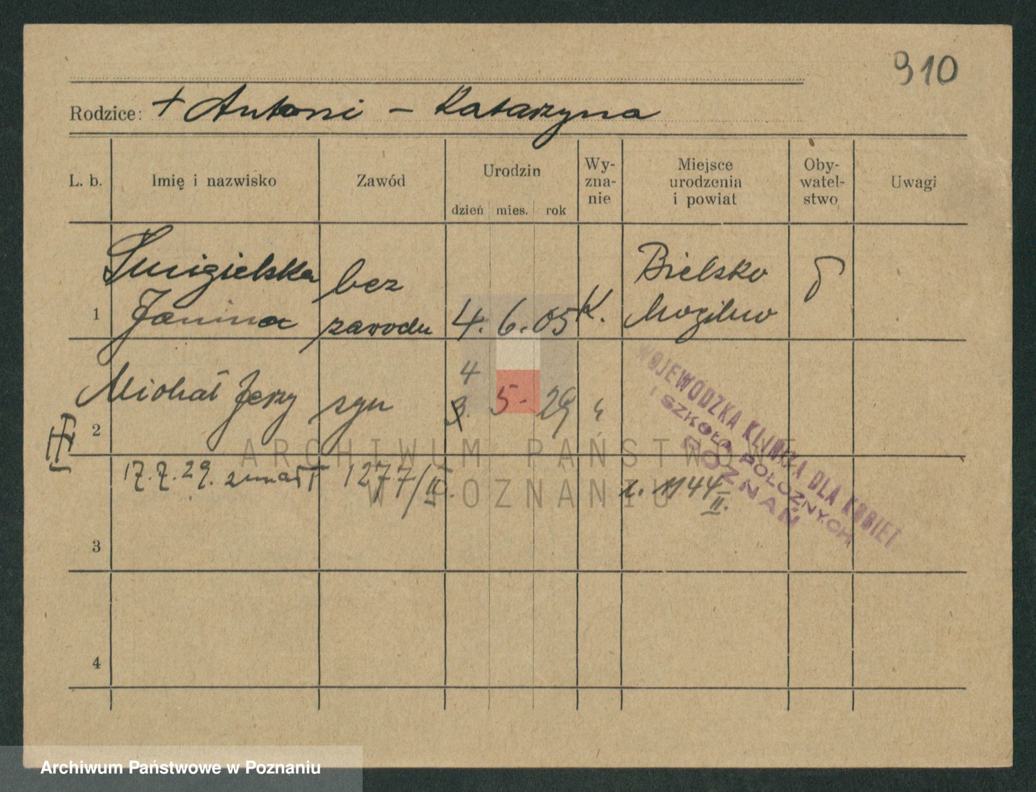 Podgląd karty osobowej dostępny jest po kliknięciu na nazwisko lub ikonkę karty. Można dokonywać powiększenia (ikony na górze) lub przechodzić między kolejnymi skanami (strzałki po bokach).