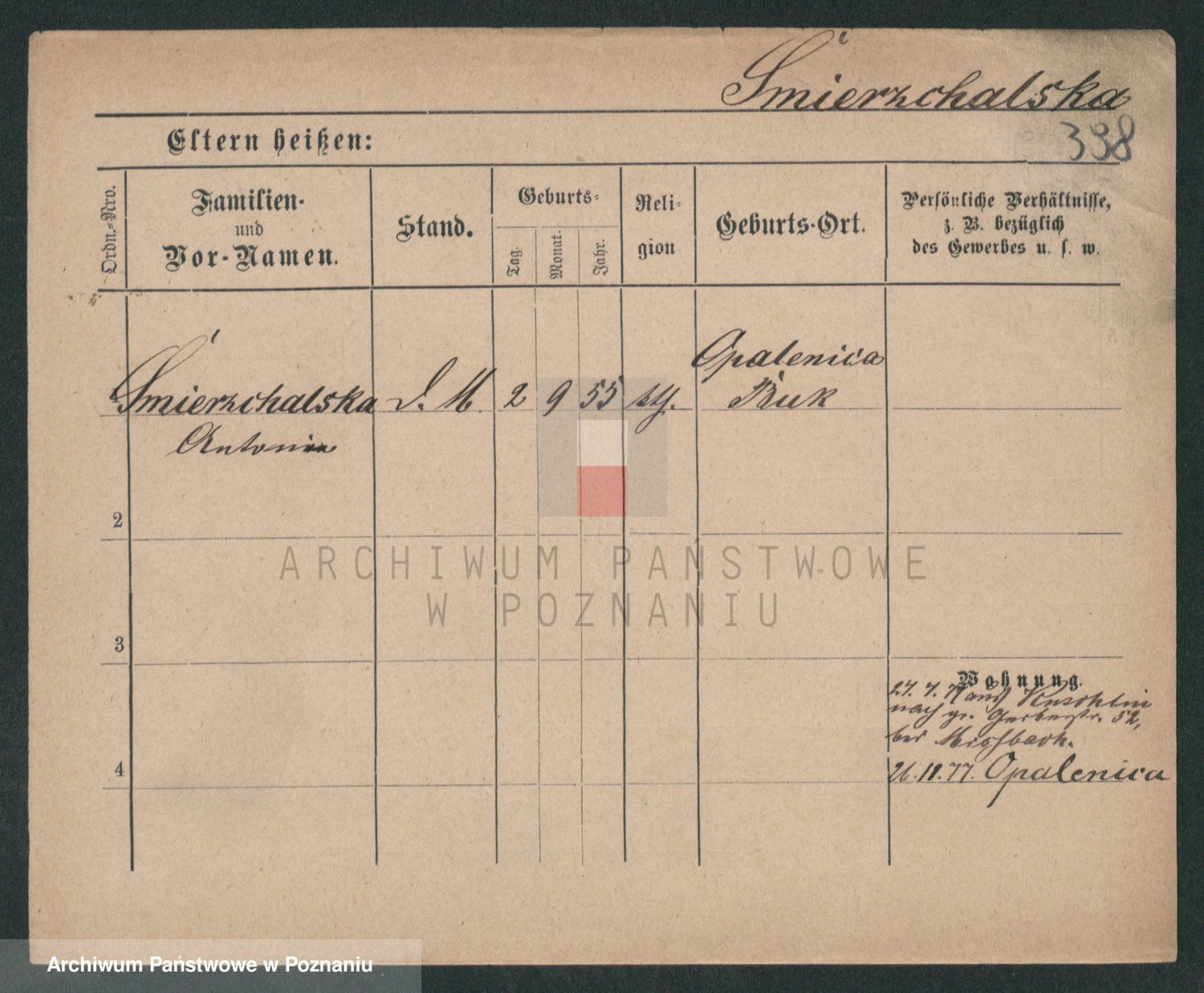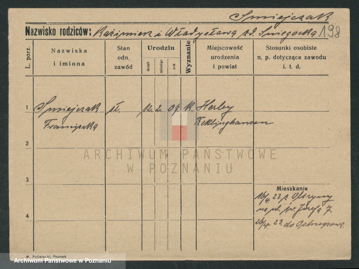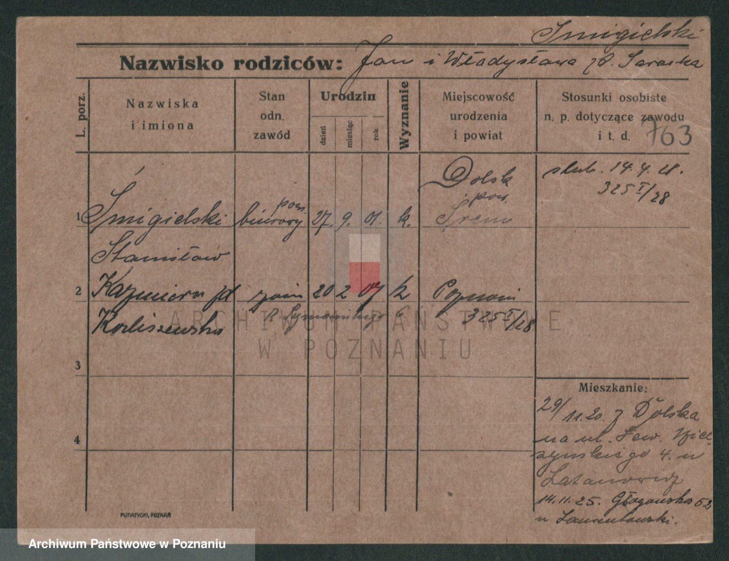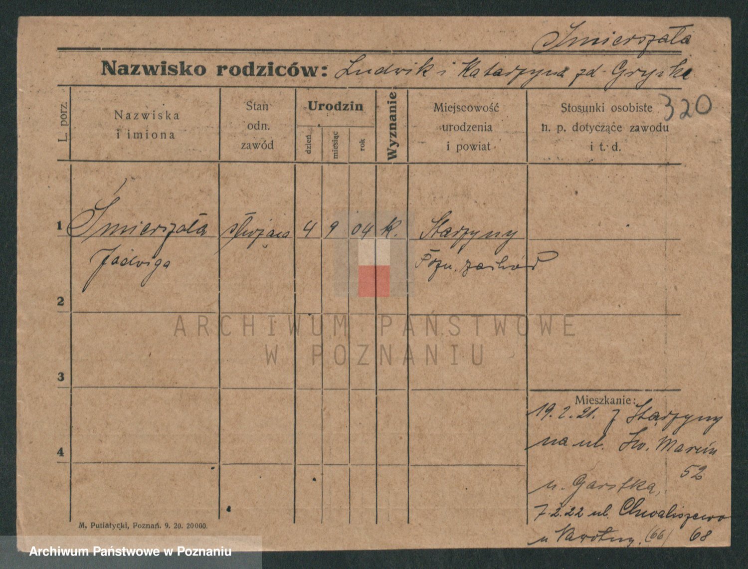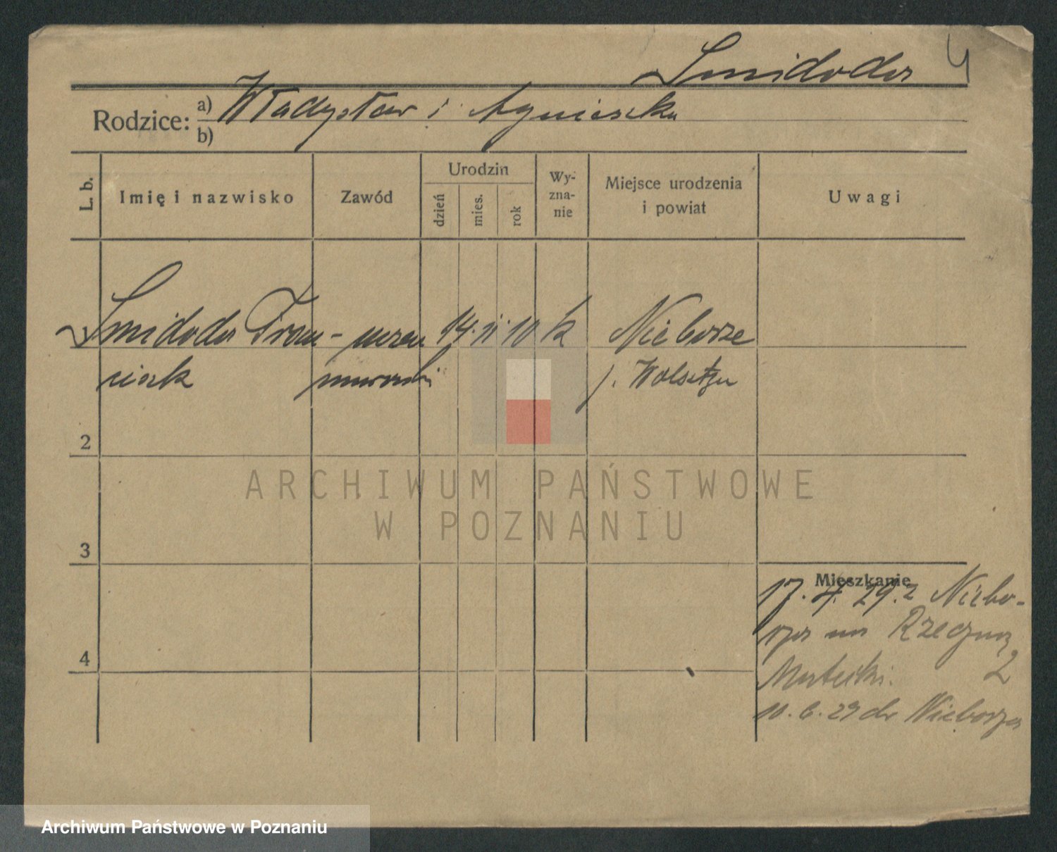 Podgląd karty osobowej dostępny jest po kliknięciu na nazwisko lub ikonkę karty. Można dokonywać powiększenia (ikony na górze) lub przechodzić między kolejnymi skanami (strzałki po bokach).