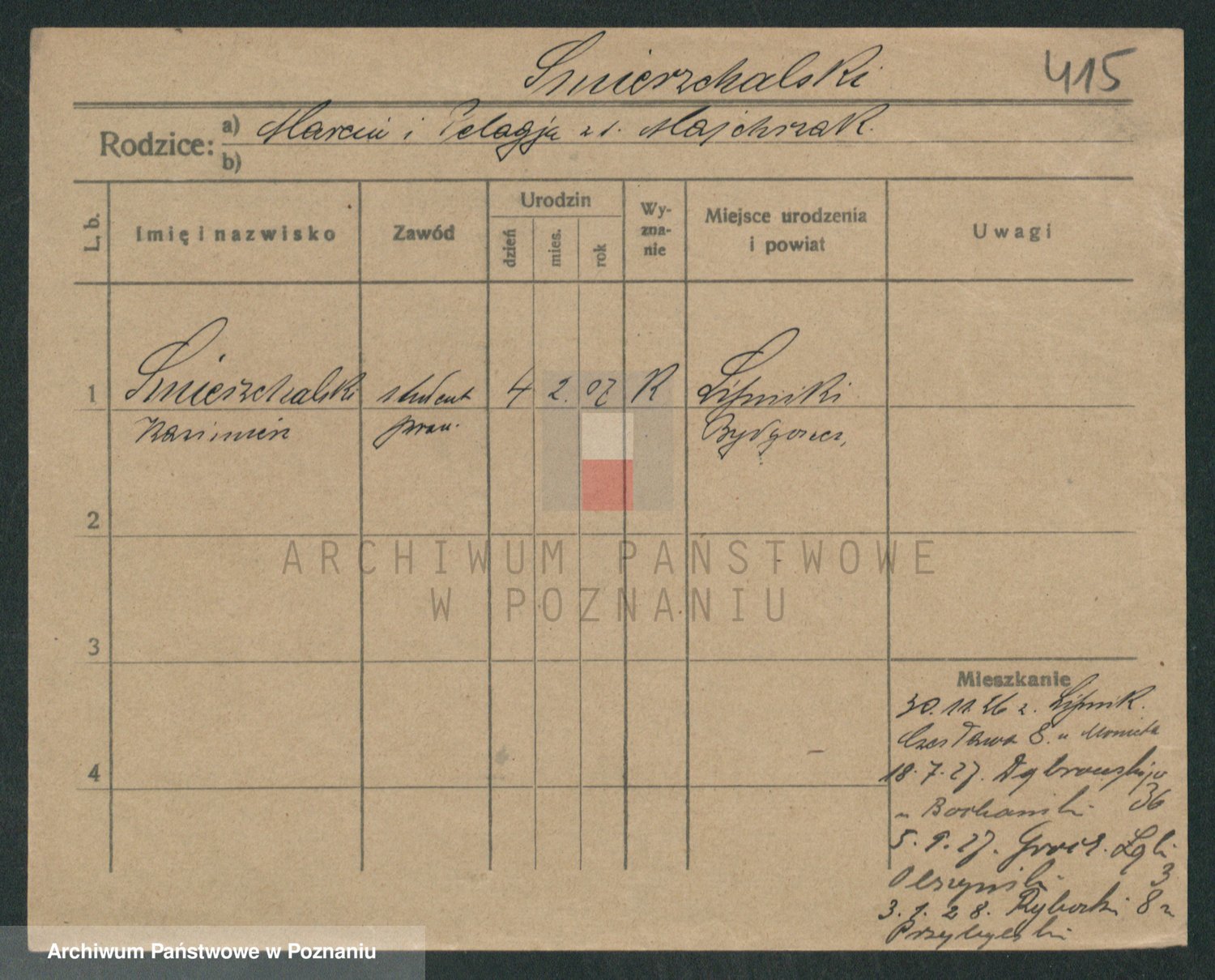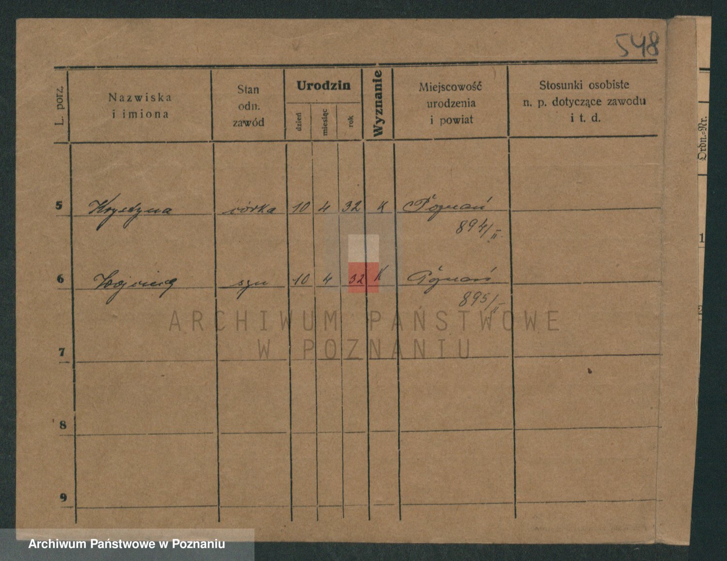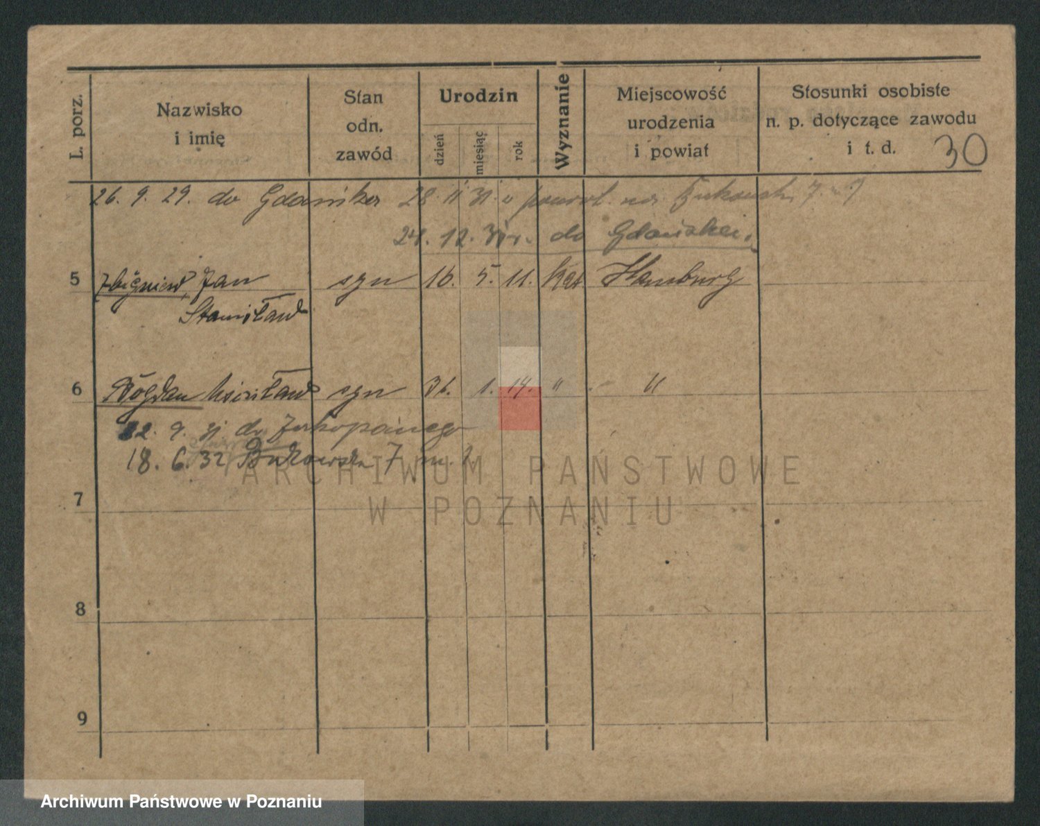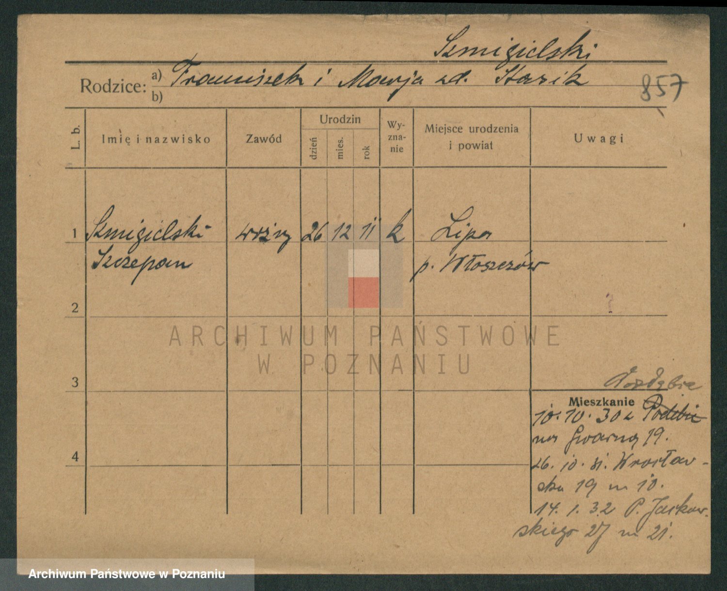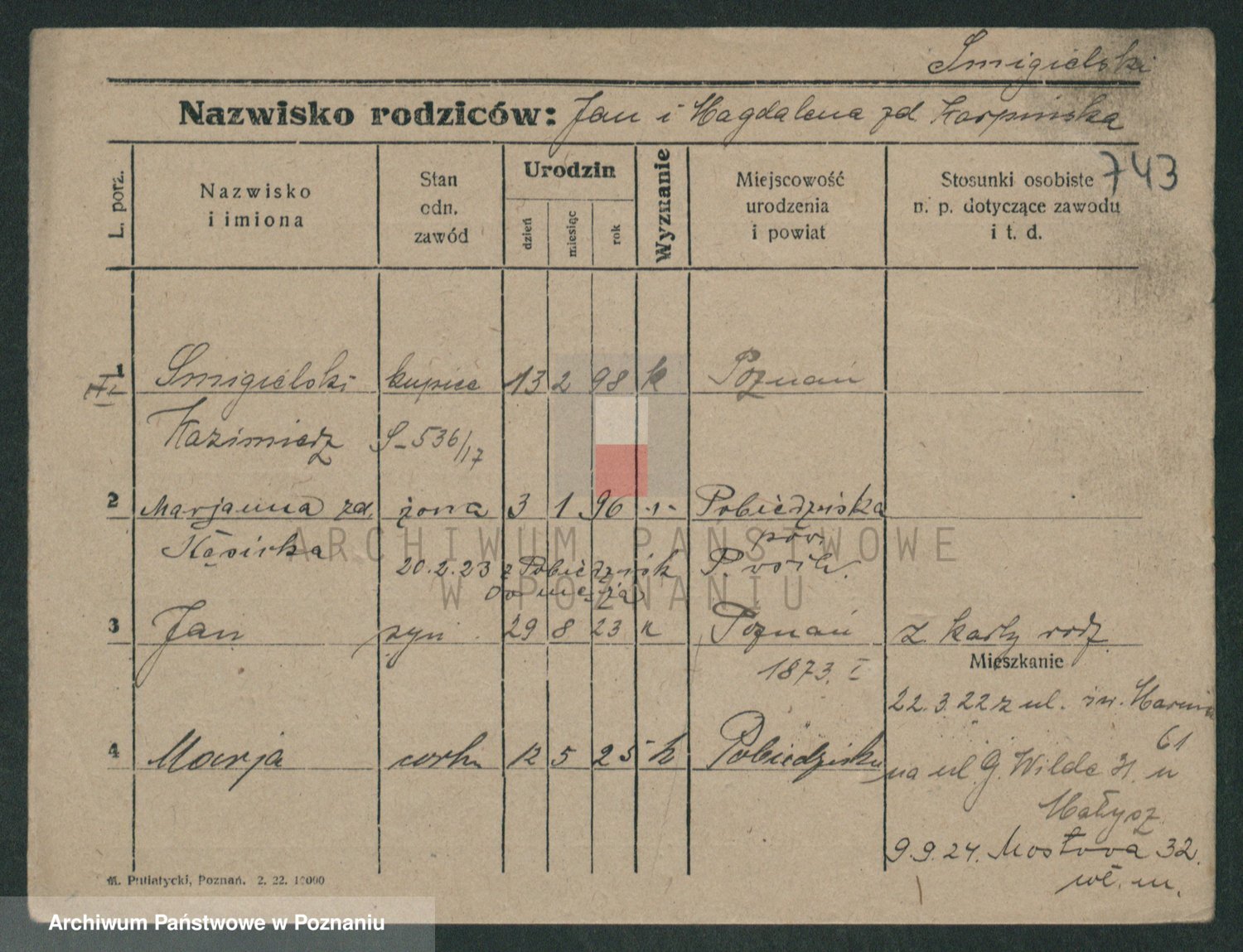 Podgląd karty osobowej dostępny jest po kliknięciu na nazwisko lub ikonkę karty. Można dokonywać powiększenia (ikony na górze) lub przechodzić między kolejnymi skanami (strzałki po bokach).
