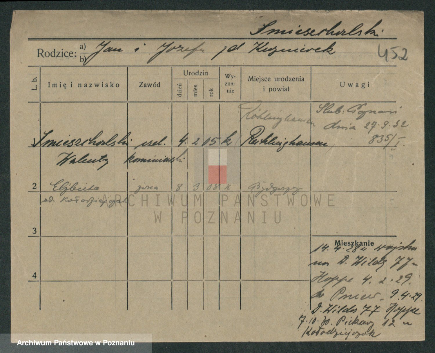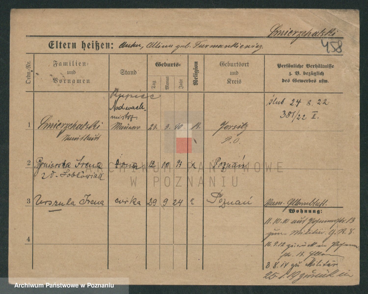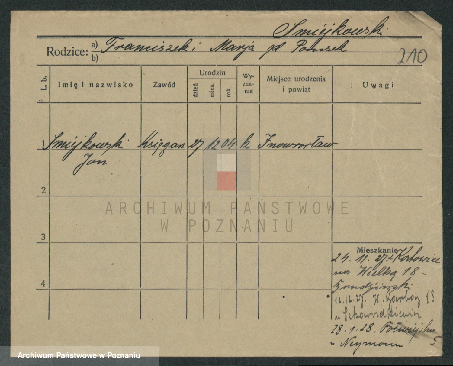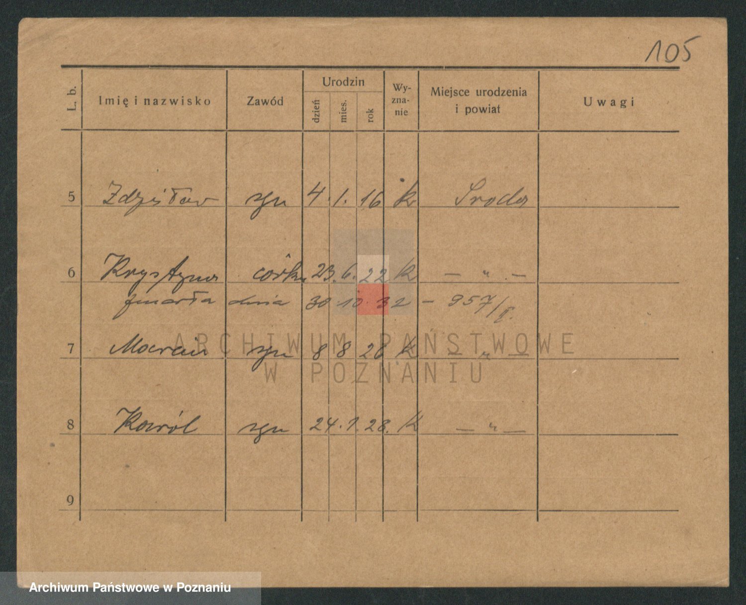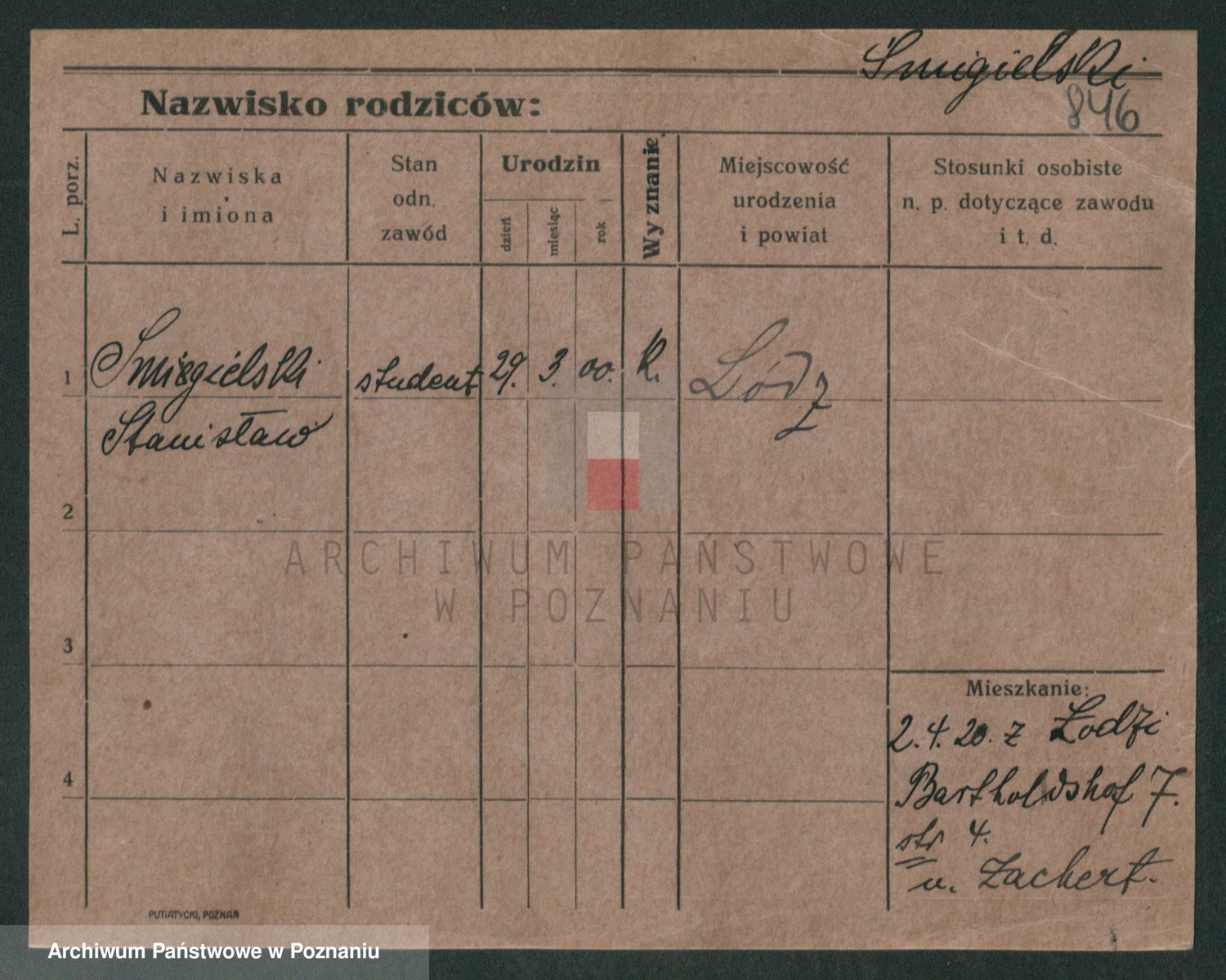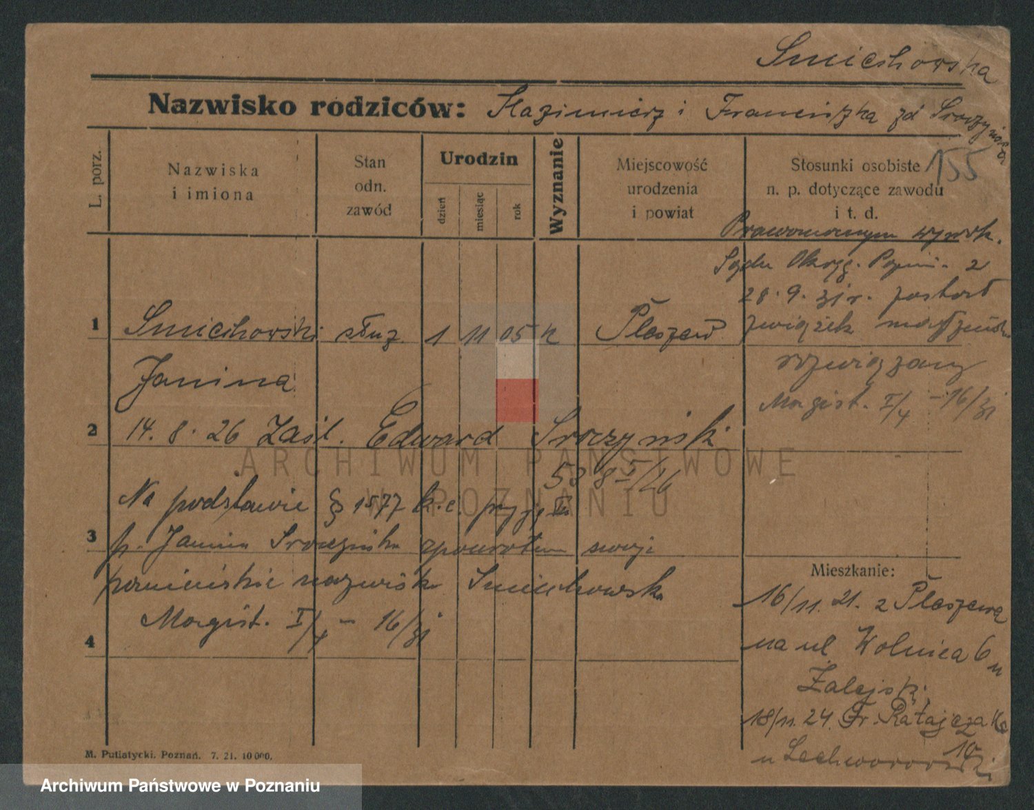 Podgląd karty osobowej dostępny jest po kliknięciu na nazwisko lub ikonkę karty. Można dokonywać powiększenia (ikony na górze) lub przechodzić między kolejnymi skanami (strzałki po bokach).