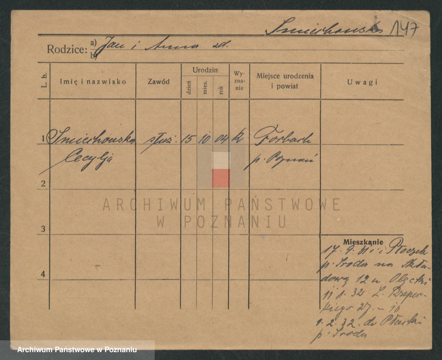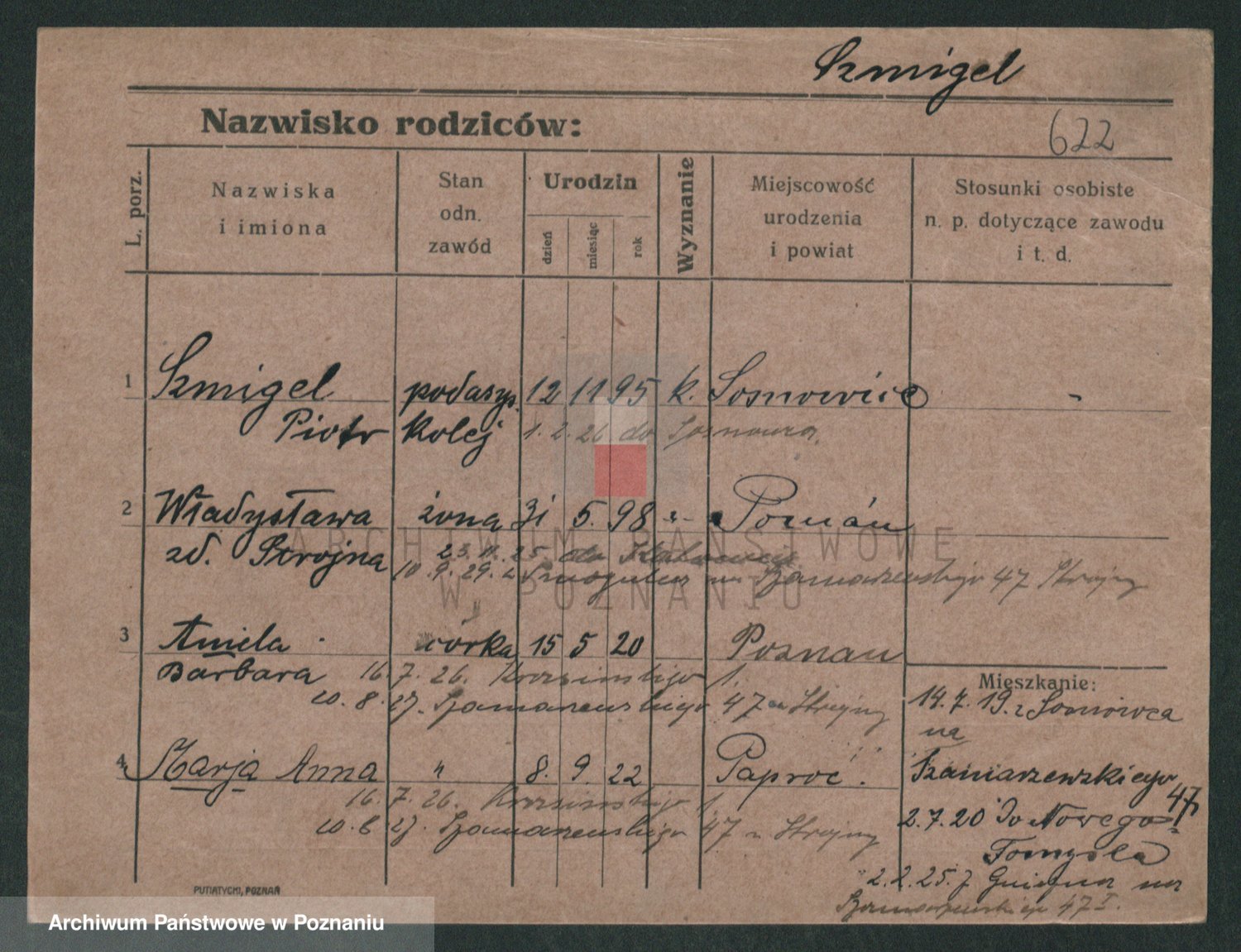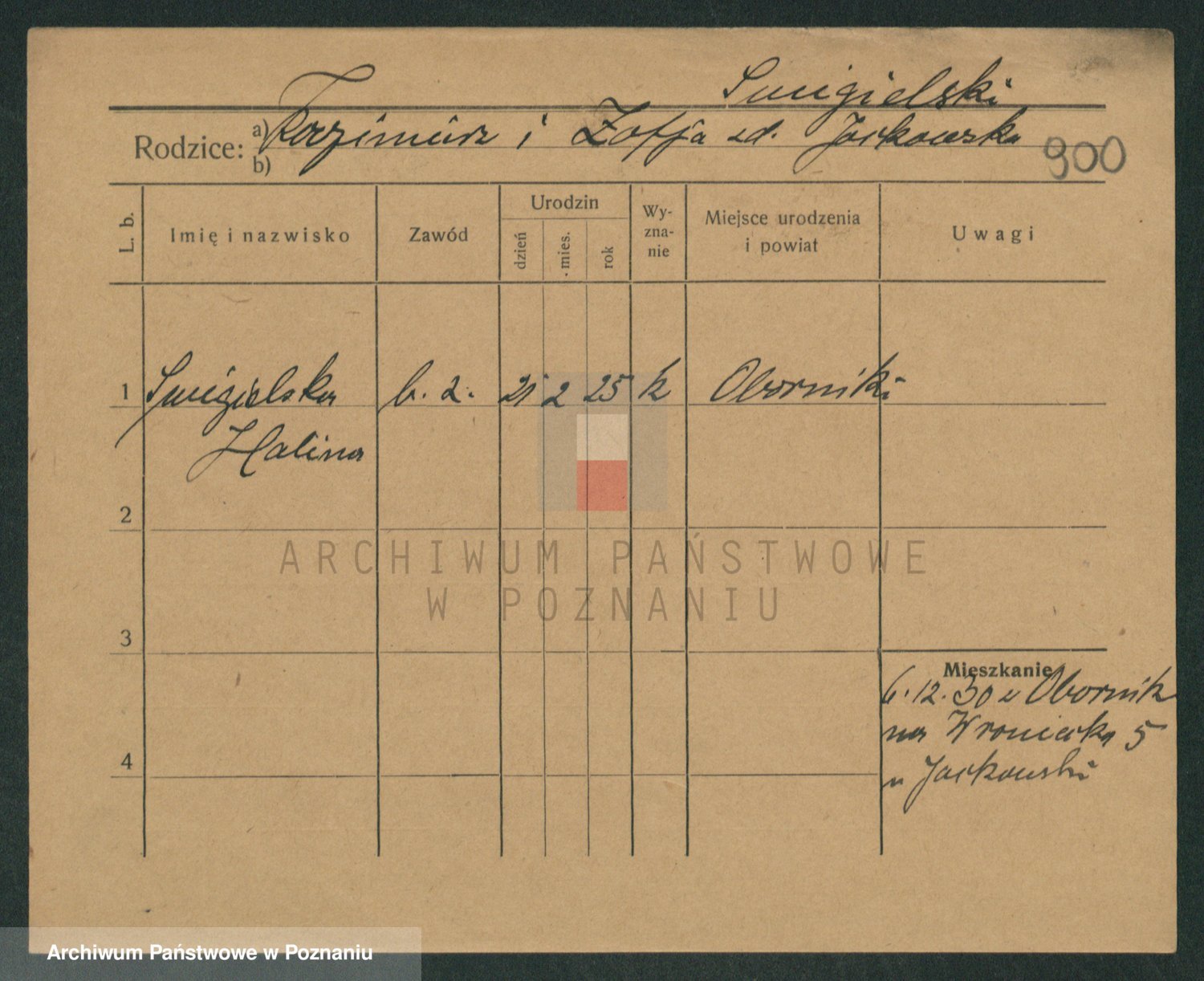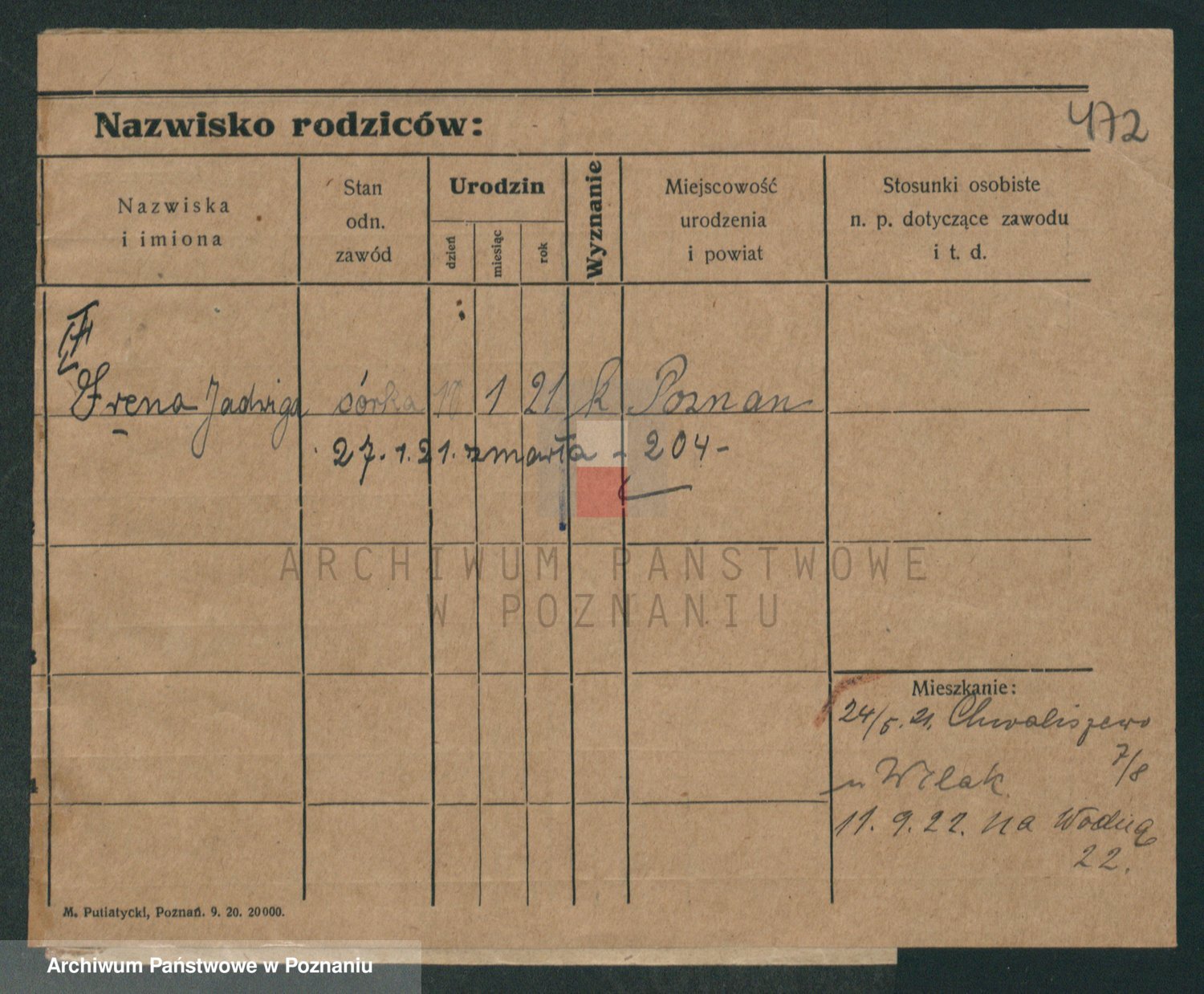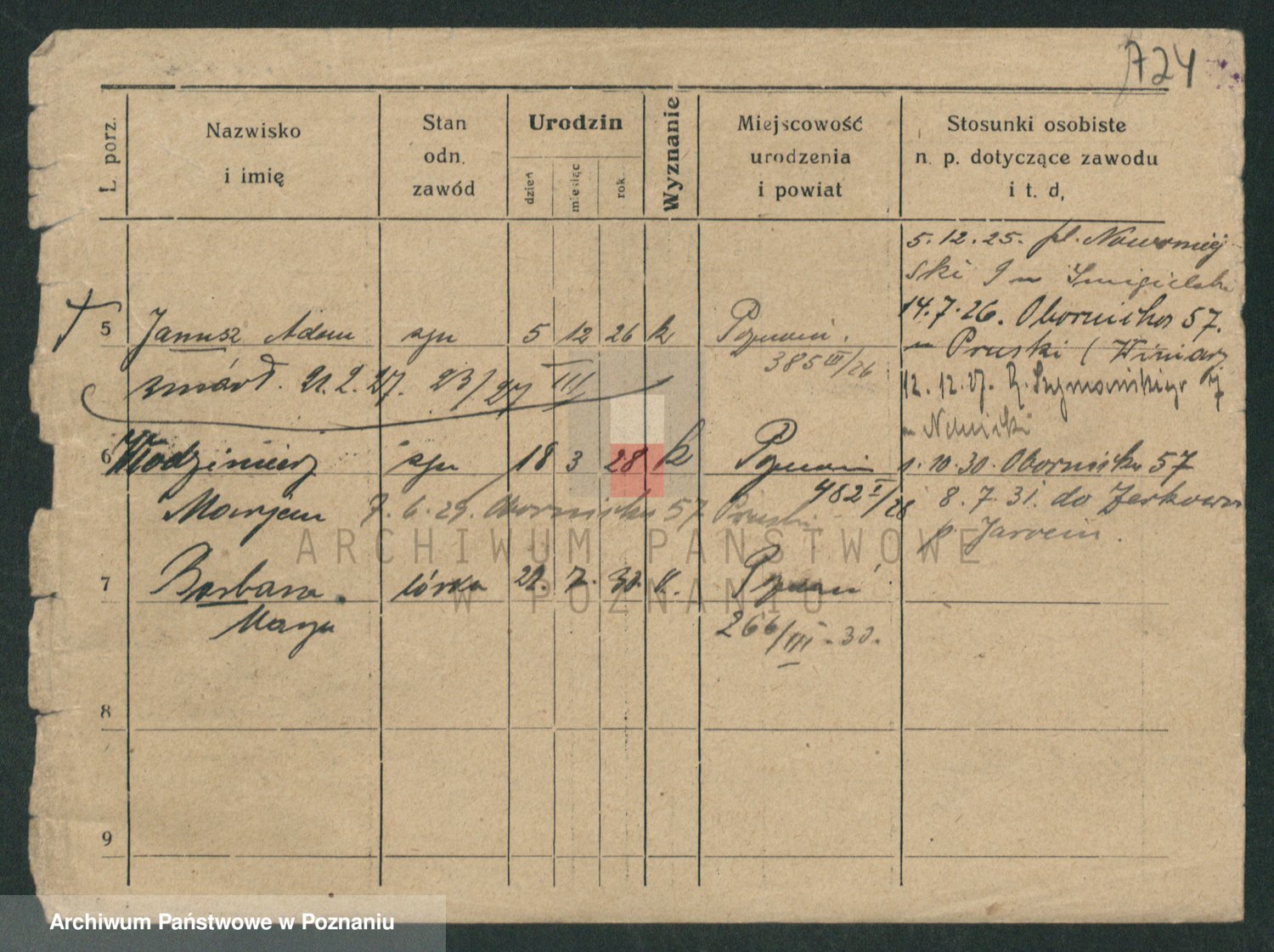Podgląd karty osobowej dostępny jest po kliknięciu na nazwisko lub ikonkę karty. Można dokonywać powiększenia (ikony na górze) lub przechodzić między kolejnymi skanami (strzałki po bokach).