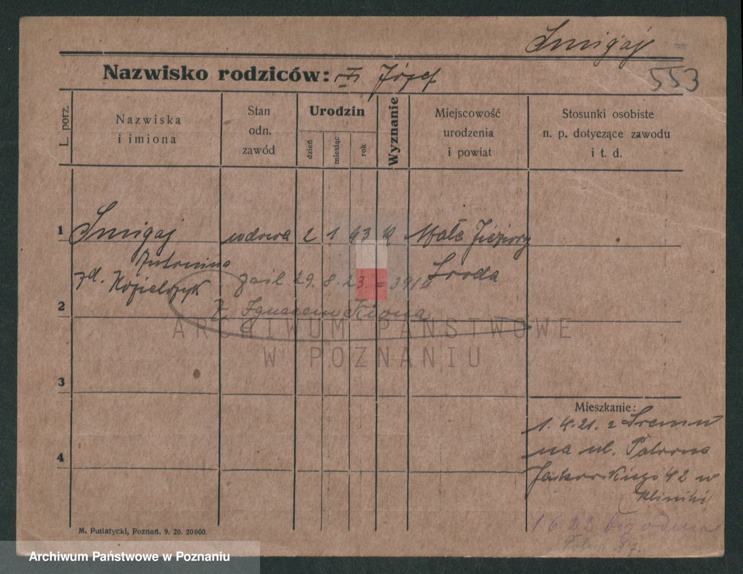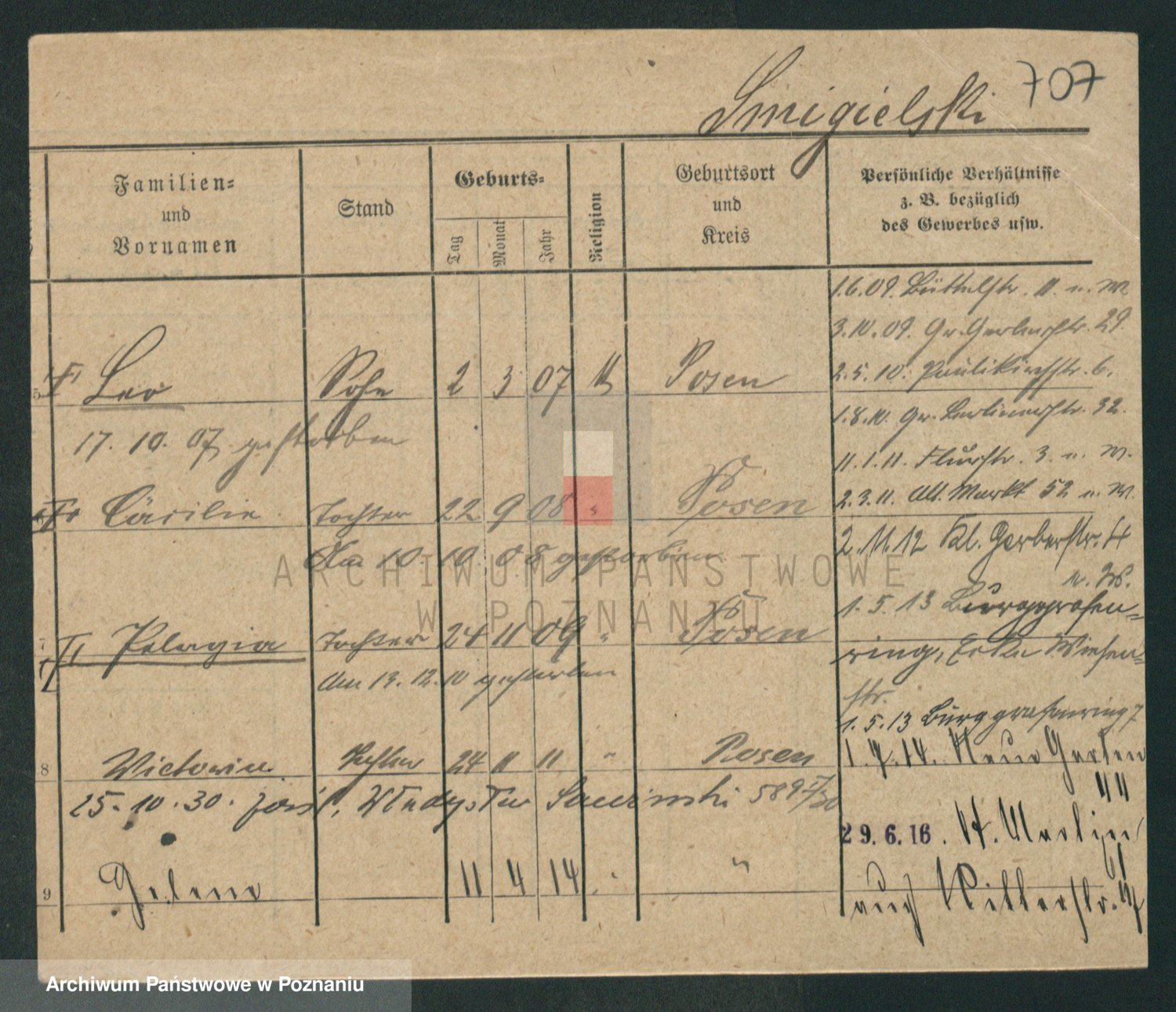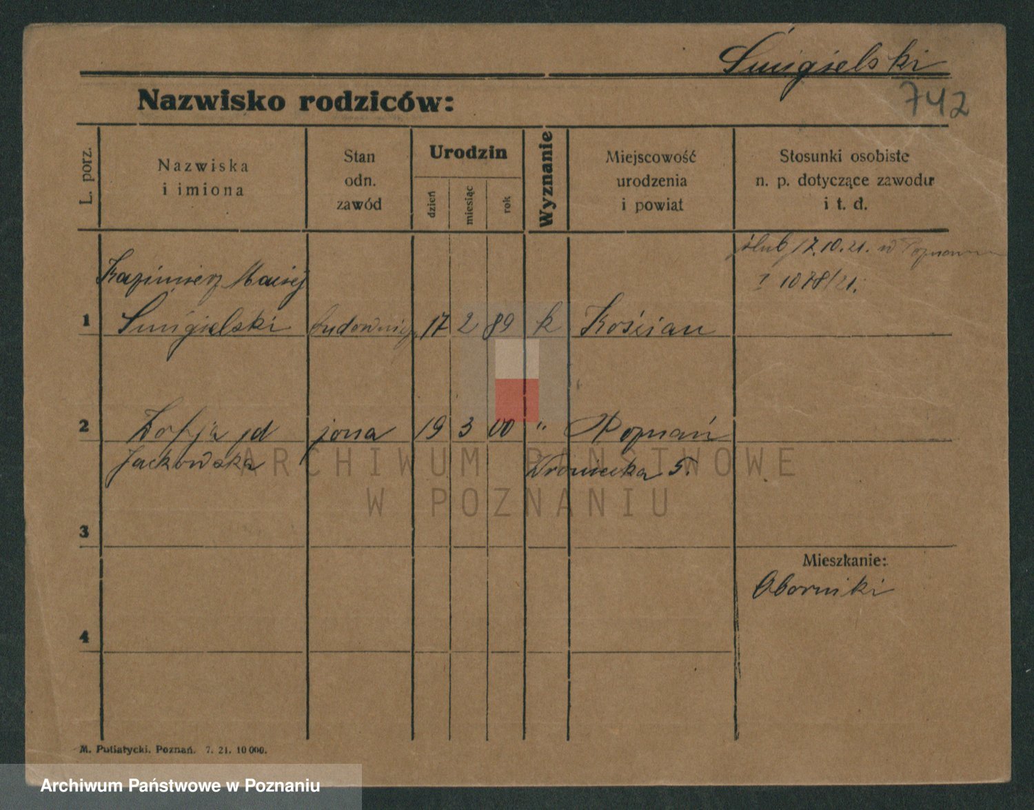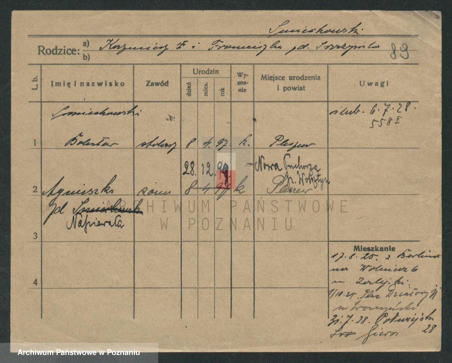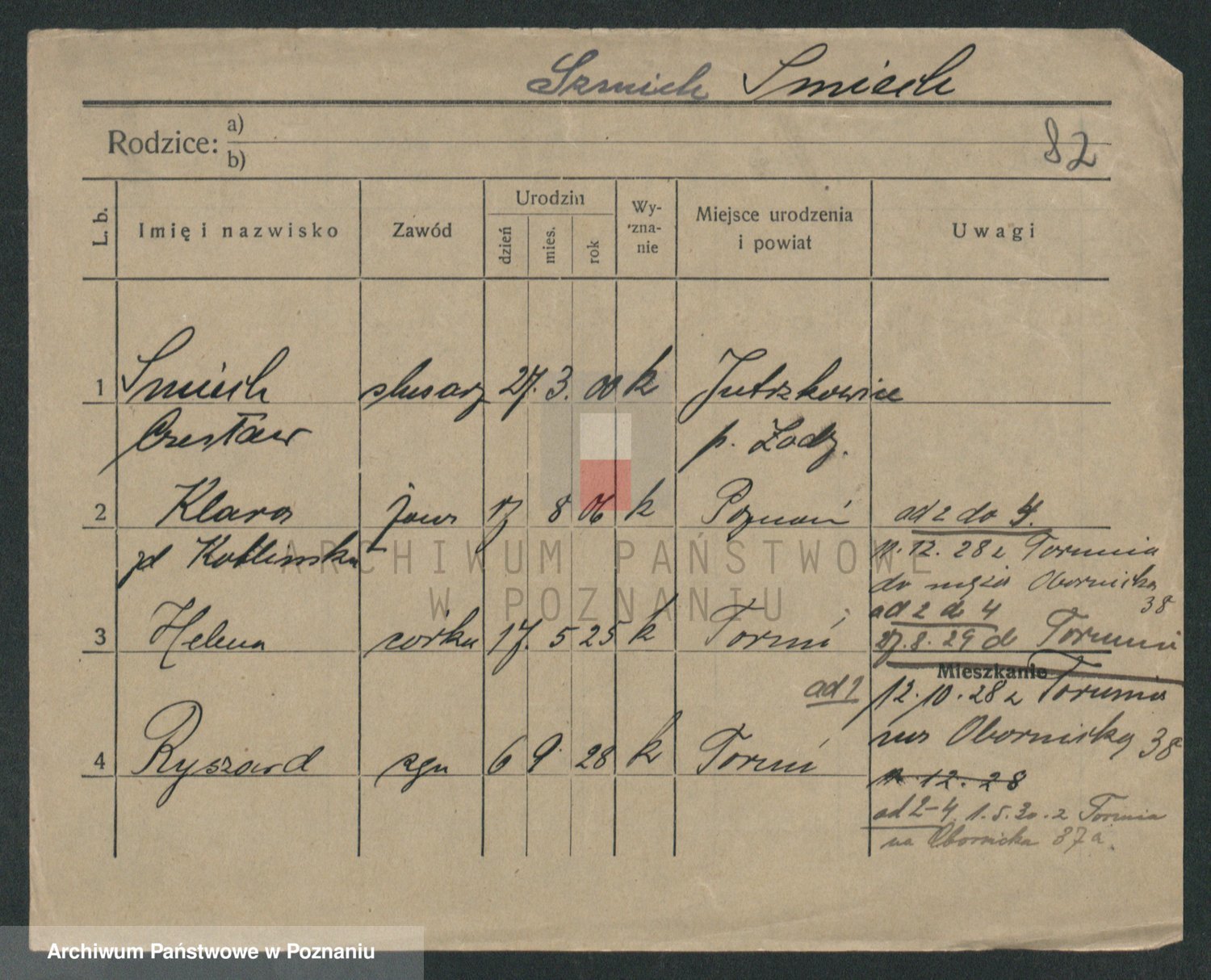 Podgląd karty osobowej dostępny jest po kliknięciu na nazwisko lub ikonkę karty. Można dokonywać powiększenia (ikony na górze) lub przechodzić między kolejnymi skanami (strzałki po bokach).
