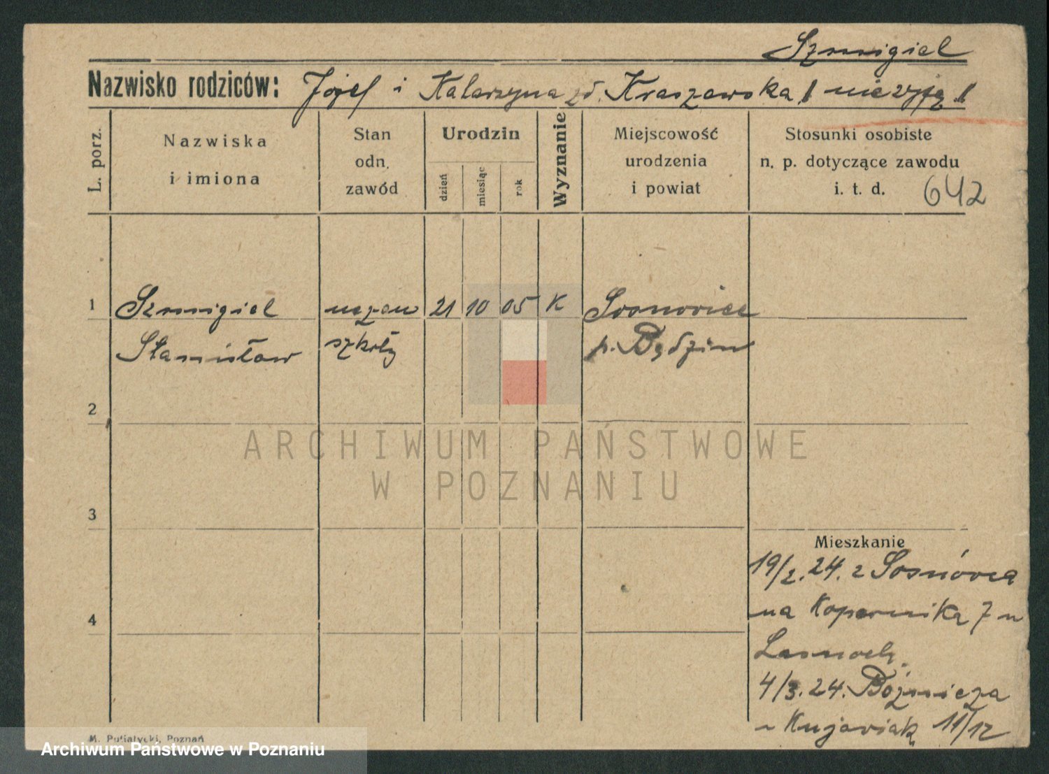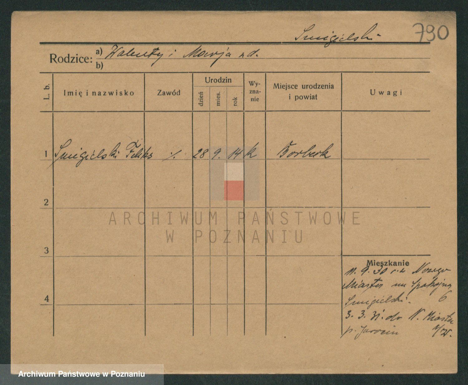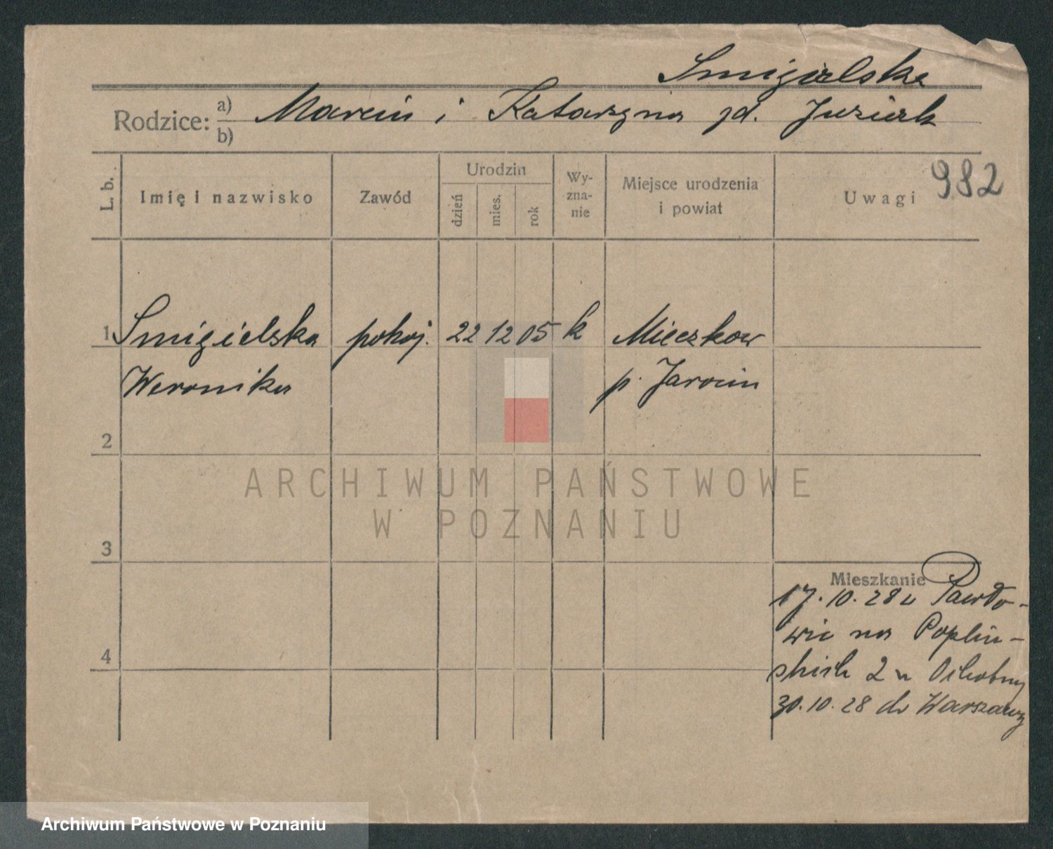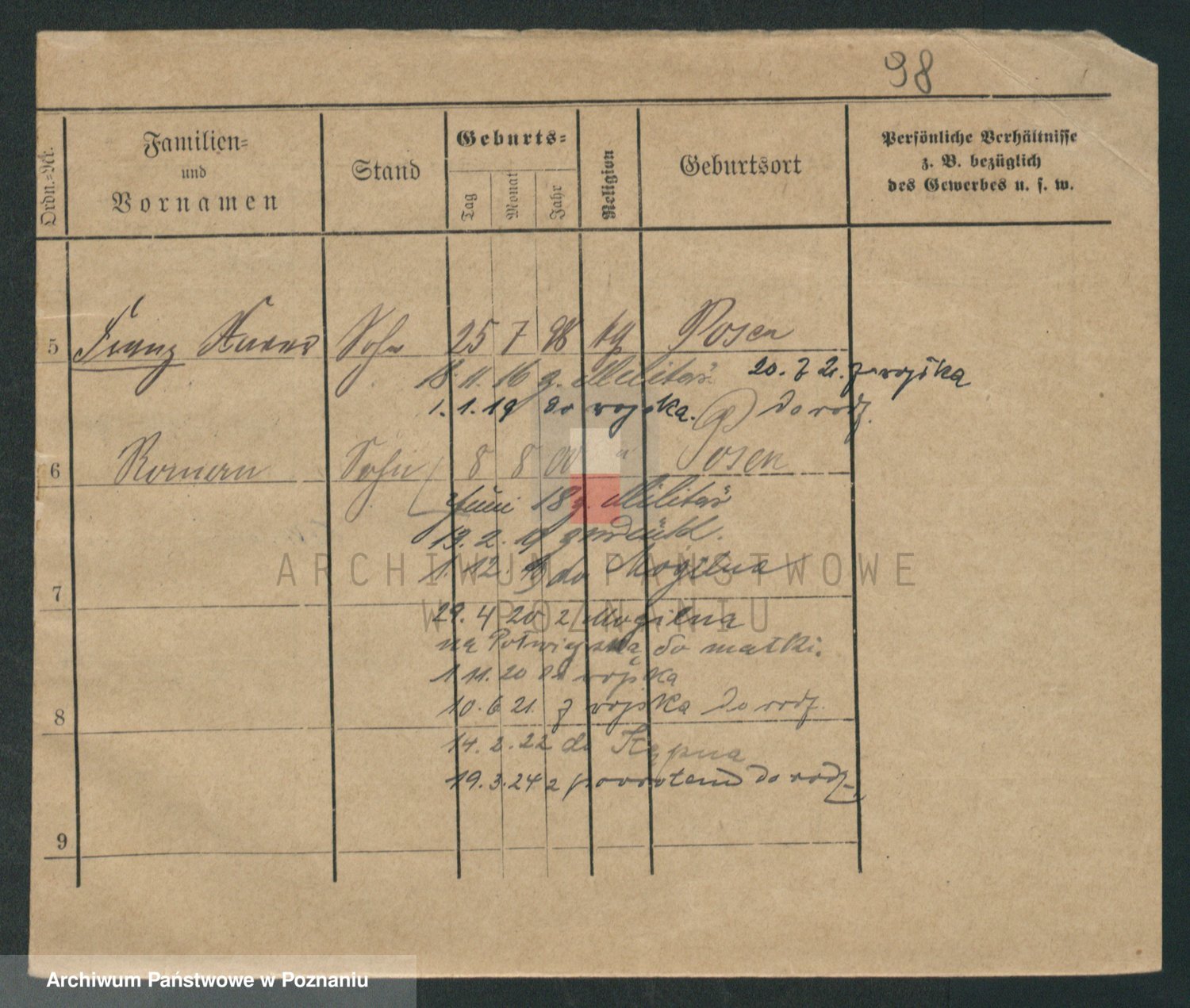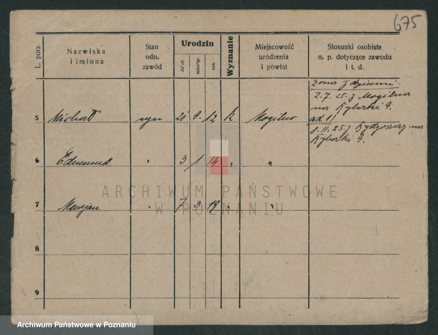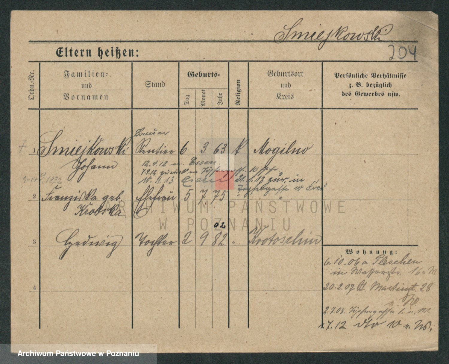 Podgląd karty osobowej dostępny jest po kliknięciu na nazwisko lub ikonkę karty. Można dokonywać powiększenia (ikony na górze) lub przechodzić między kolejnymi skanami (strzałki po bokach).