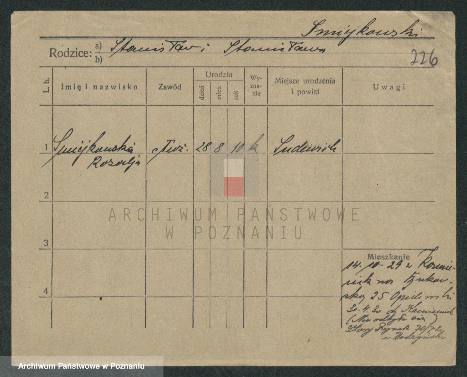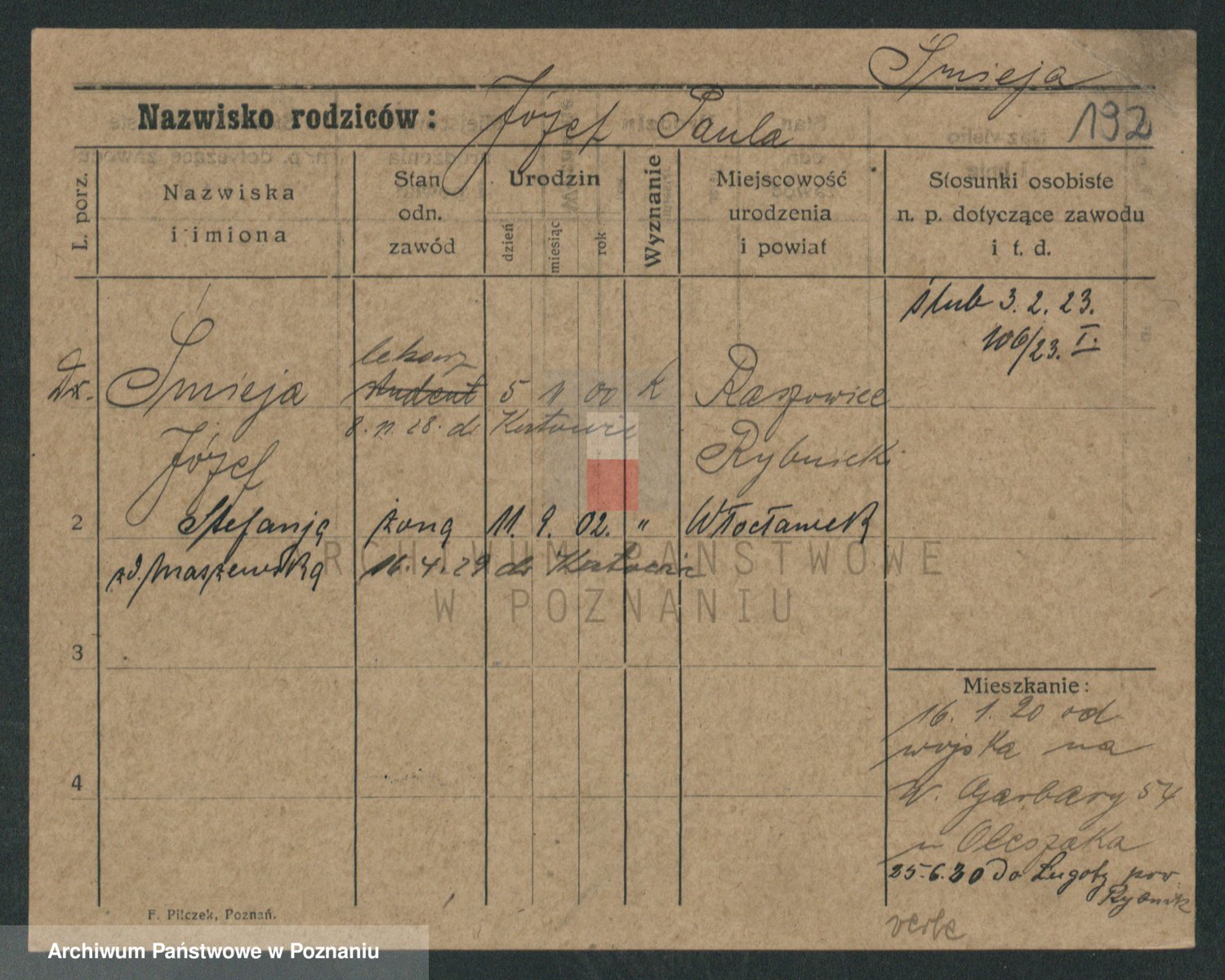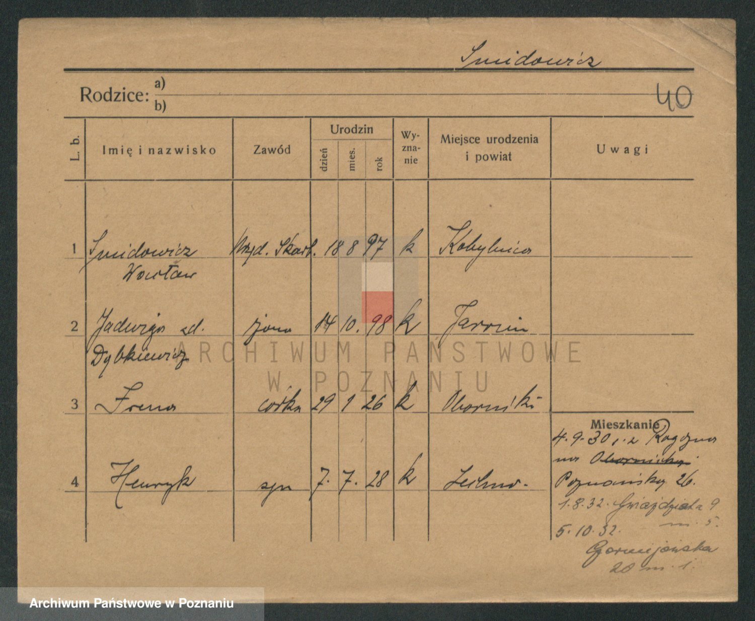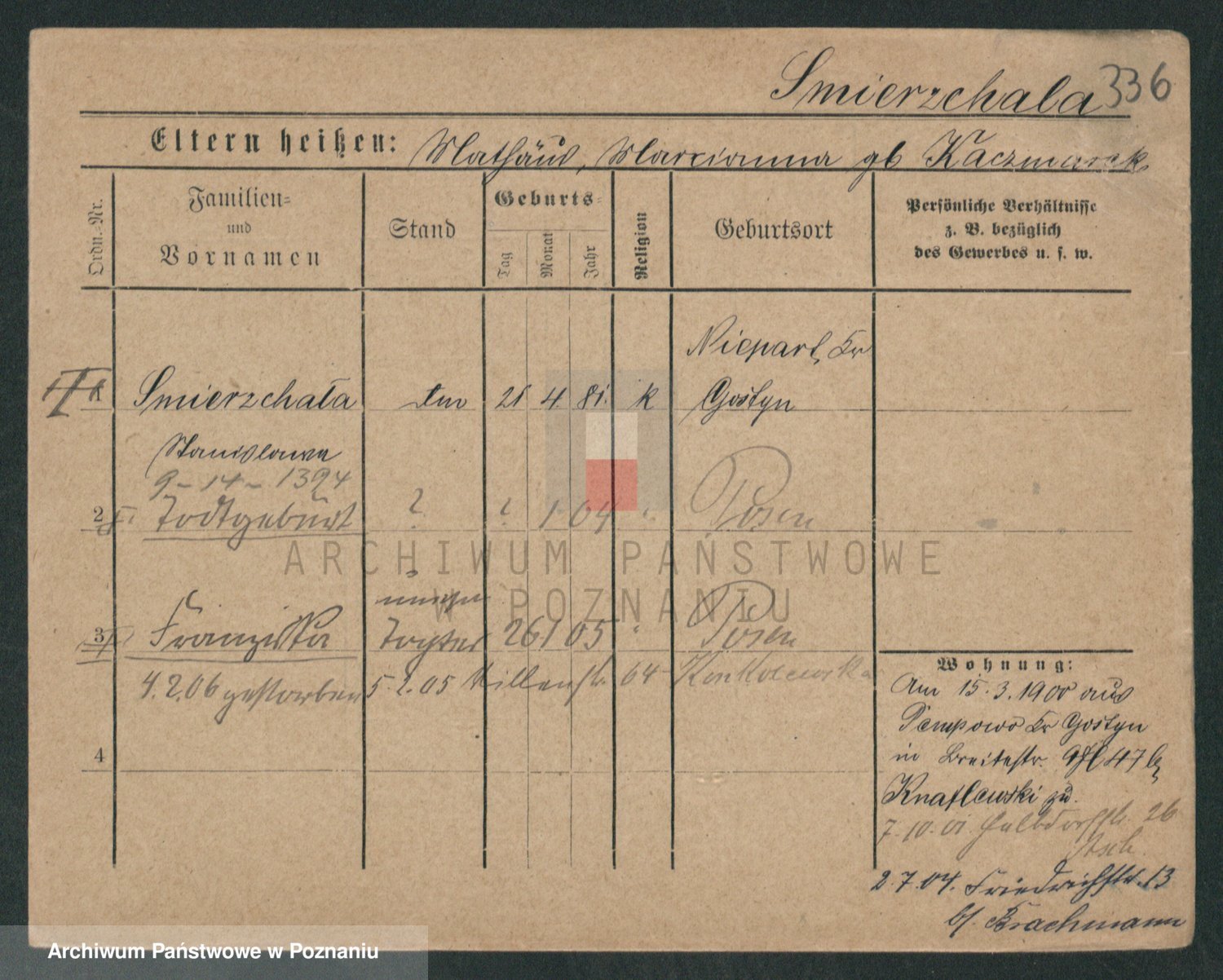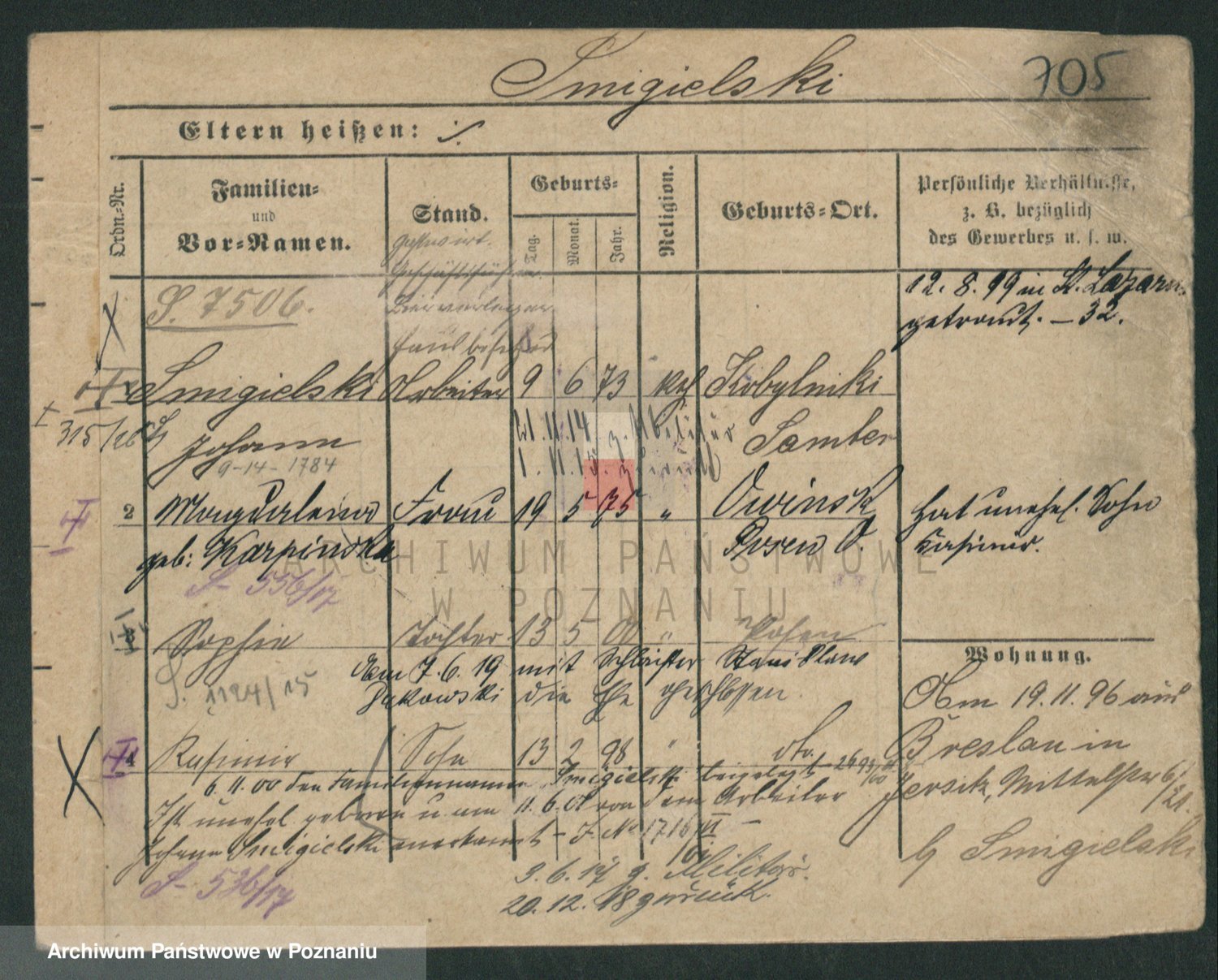 Podgląd karty osobowej dostępny jest po kliknięciu na nazwisko lub ikonkę karty. Można dokonywać powiększenia (ikony na górze) lub przechodzić między kolejnymi skanami (strzałki po bokach).
