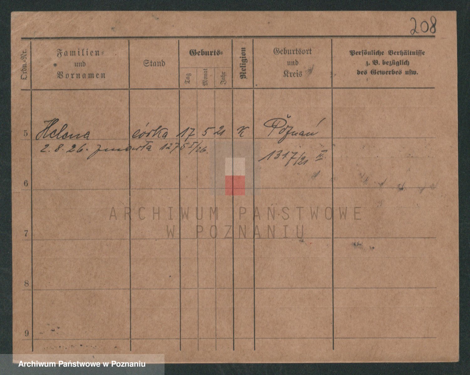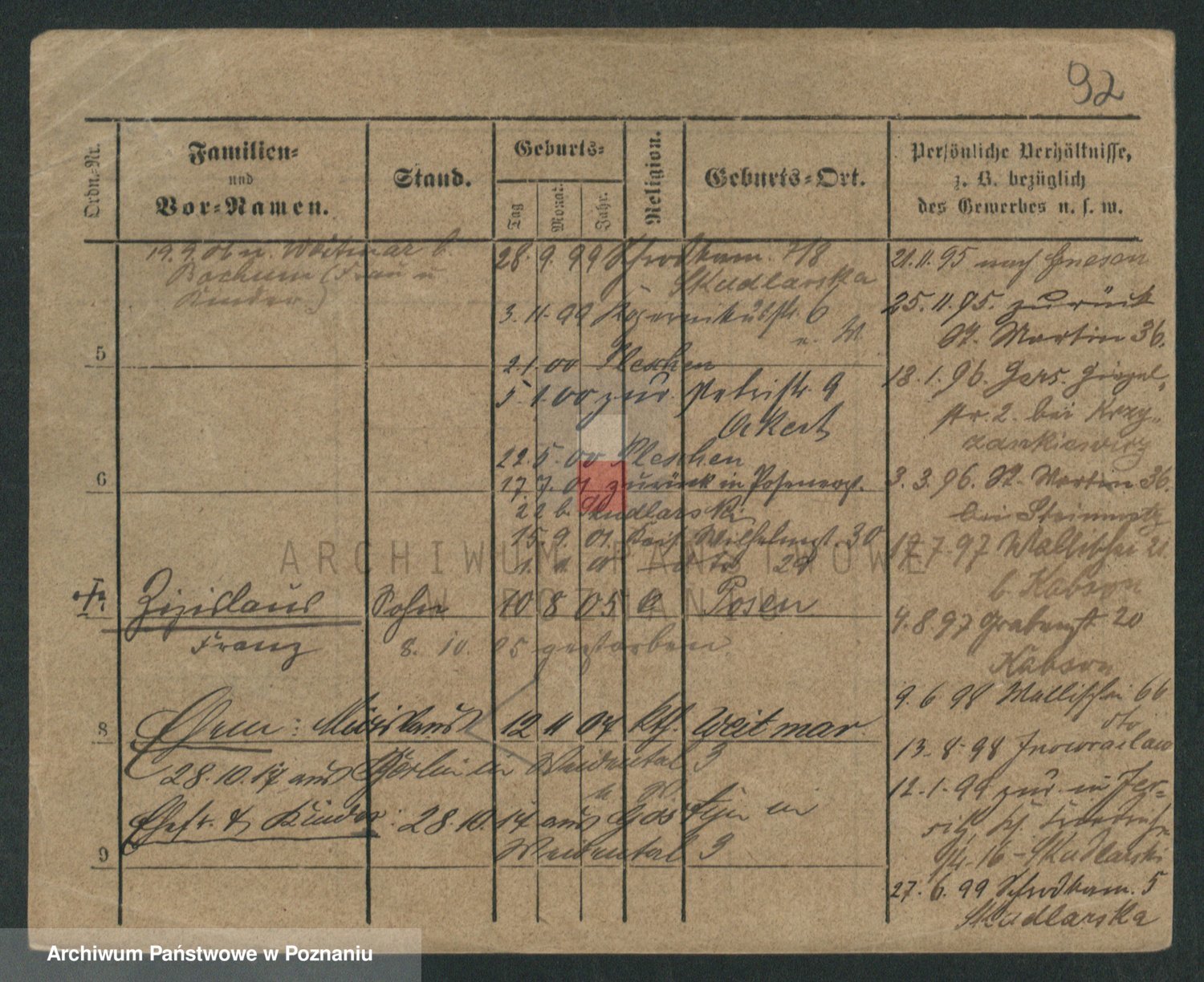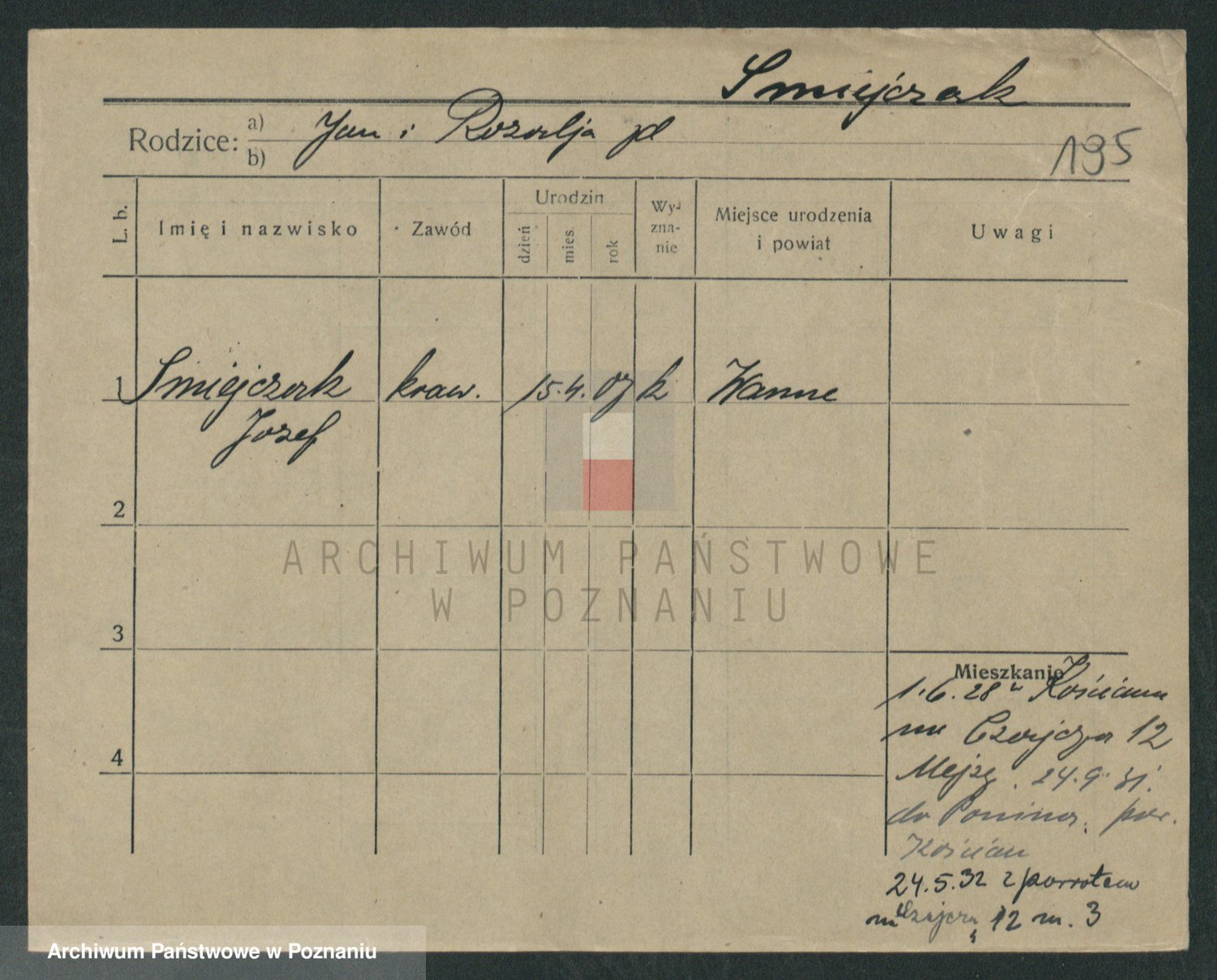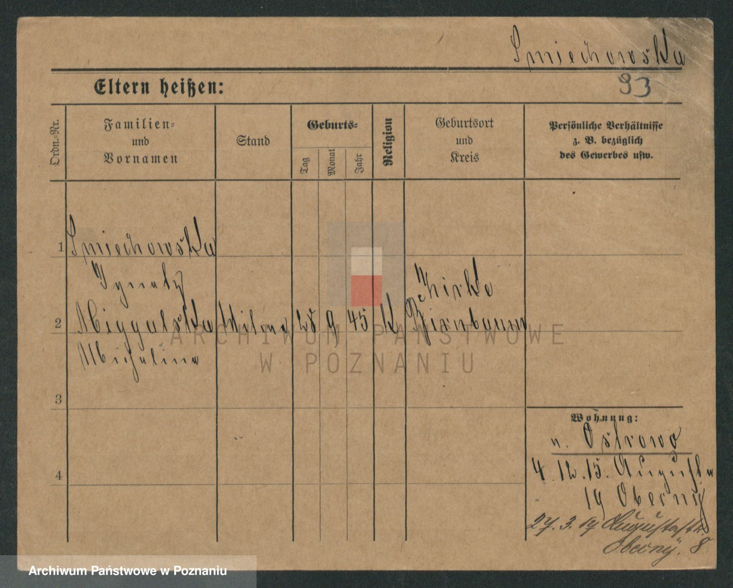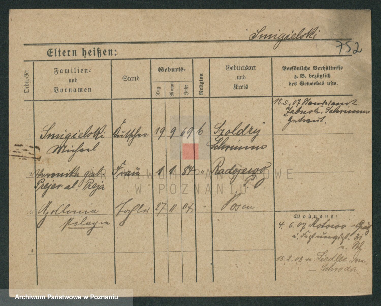 Podgląd karty osobowej dostępny jest po kliknięciu na nazwisko lub ikonkę karty. Można dokonywać powiększenia (ikony na górze) lub przechodzić między kolejnymi skanami (strzałki po bokach).