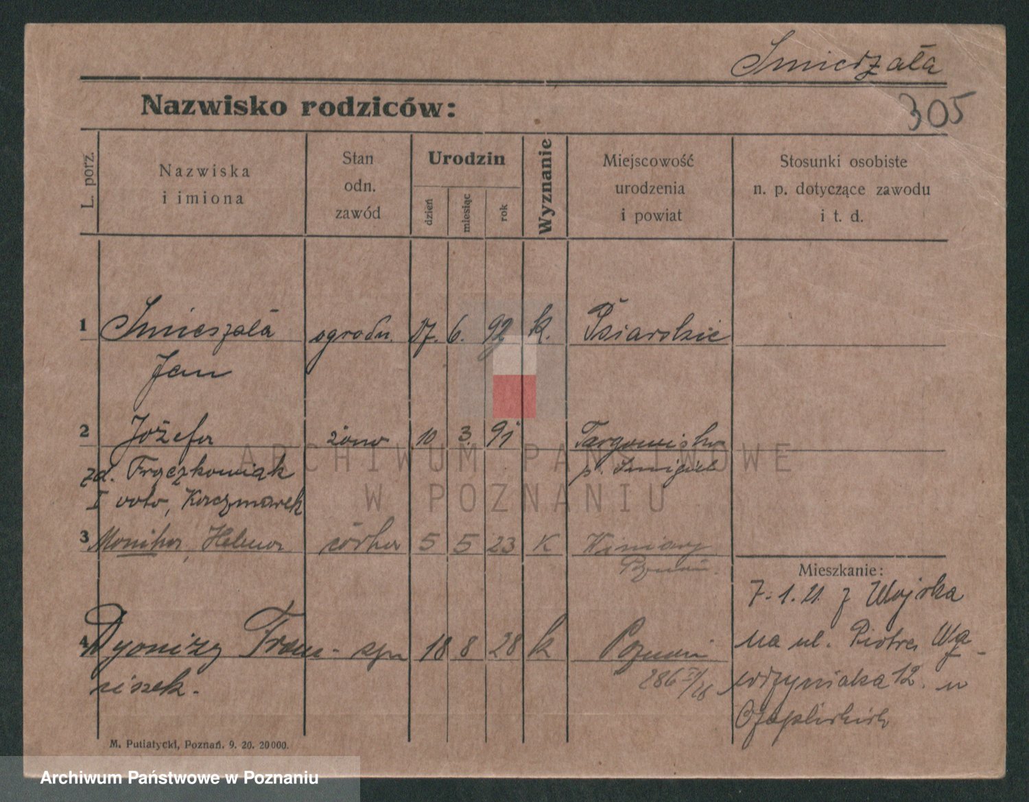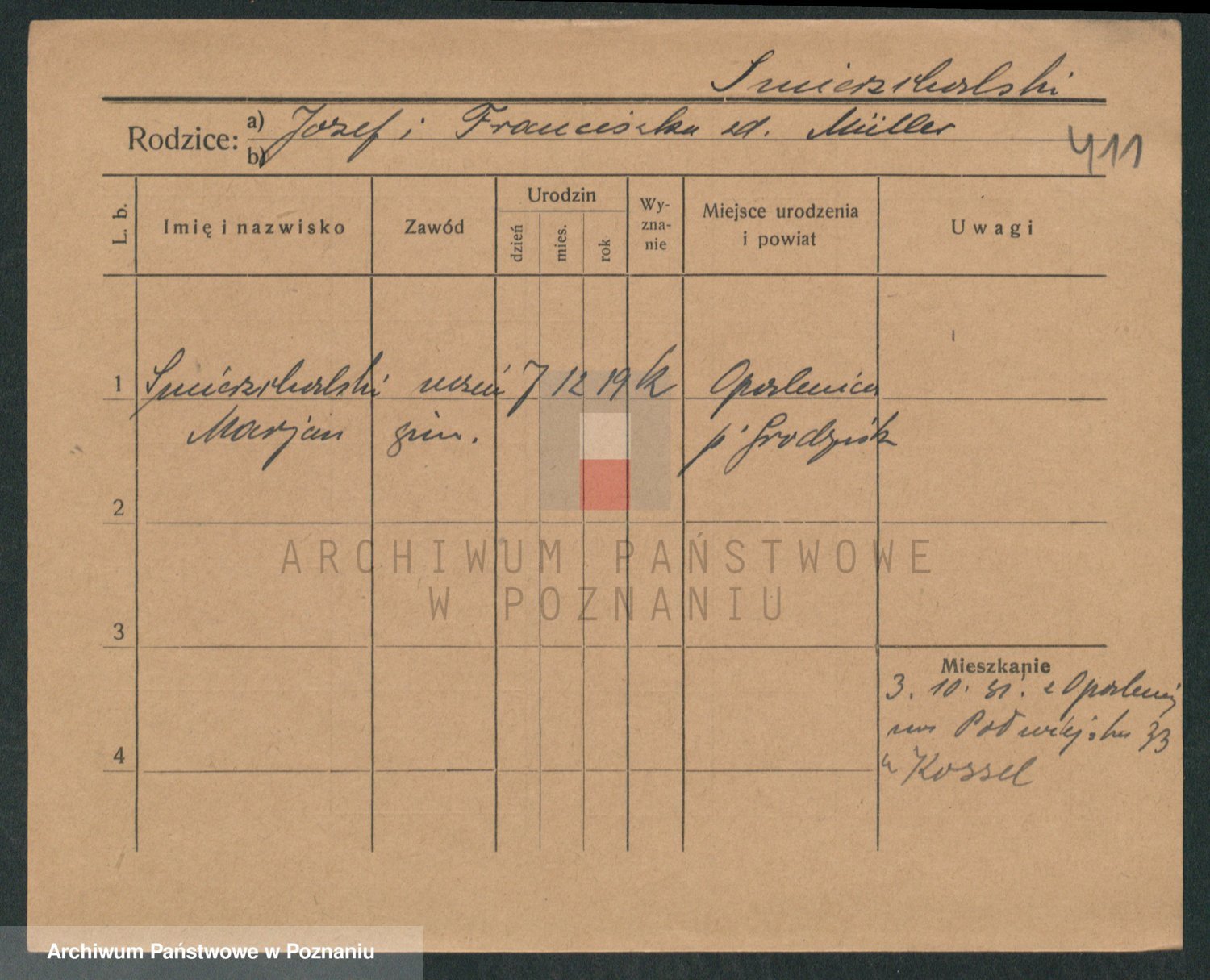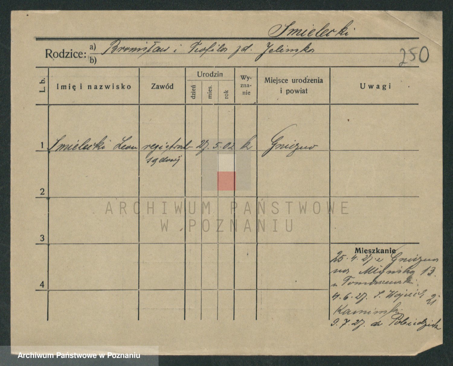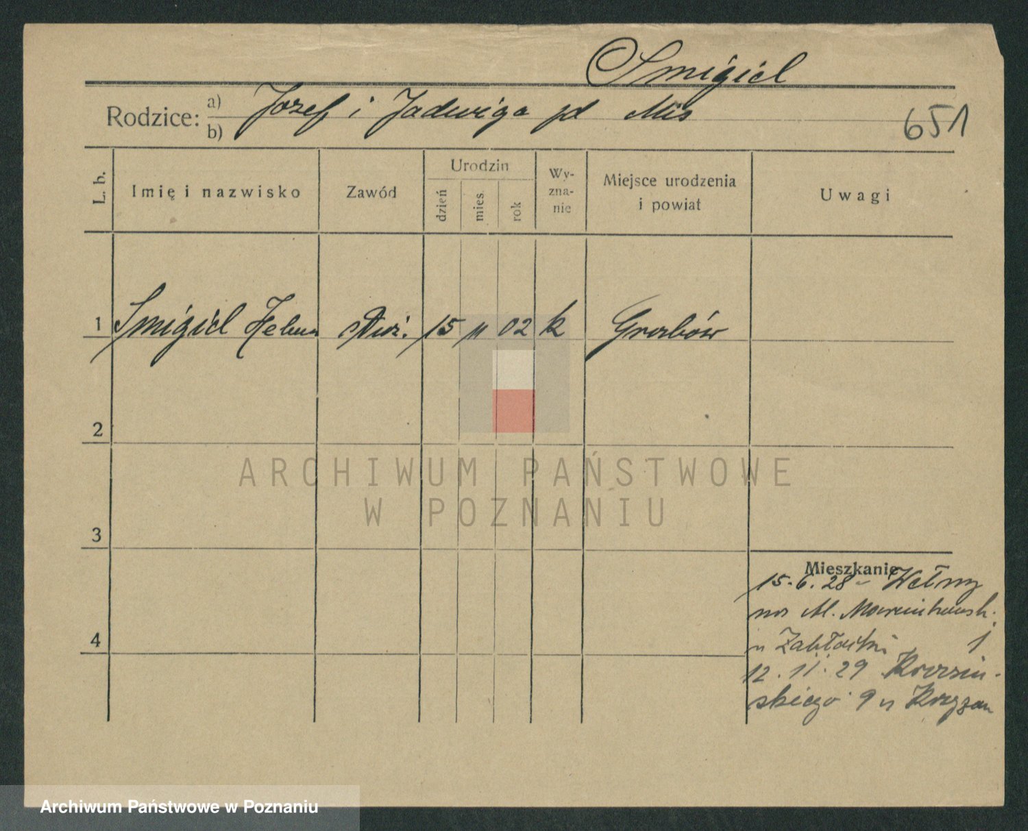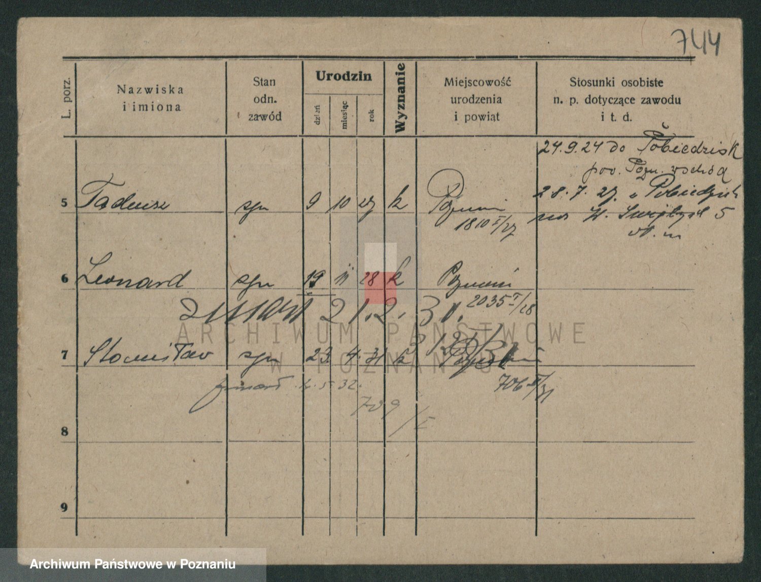 Podgląd karty osobowej dostępny jest po kliknięciu na nazwisko lub ikonkę karty. Można dokonywać powiększenia (ikony na górze) lub przechodzić między kolejnymi skanami (strzałki po bokach).
