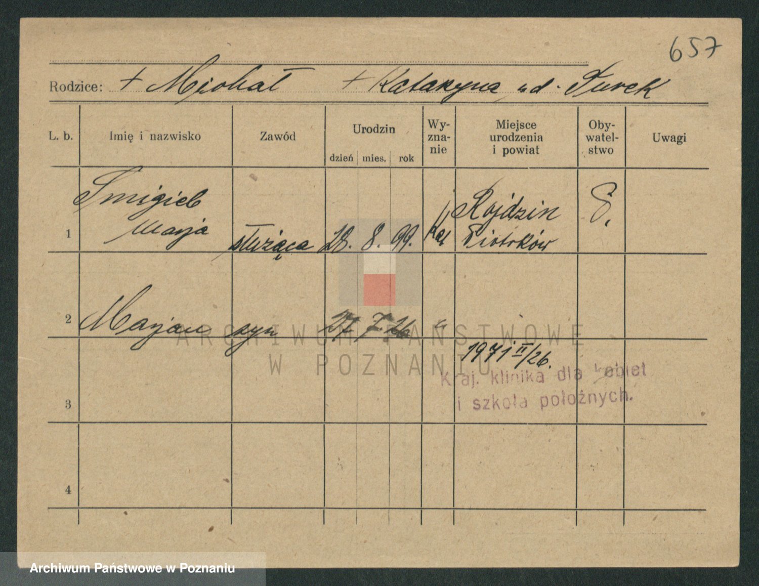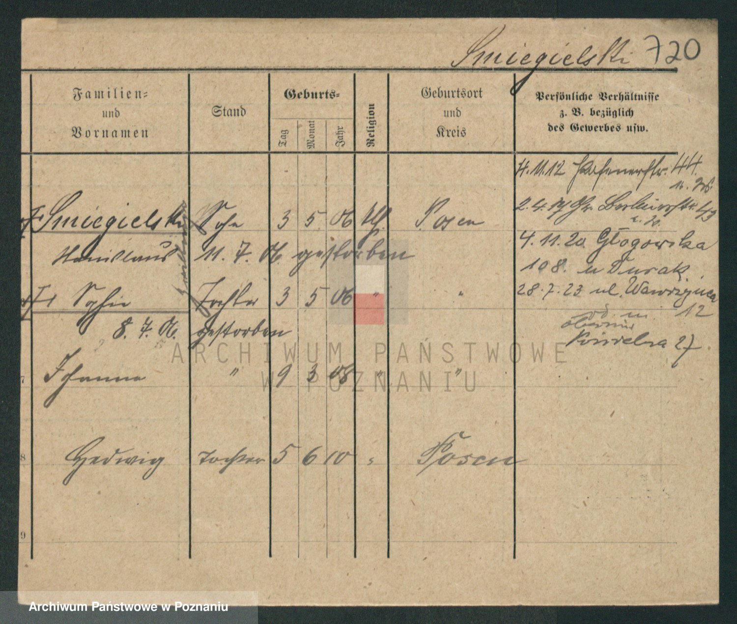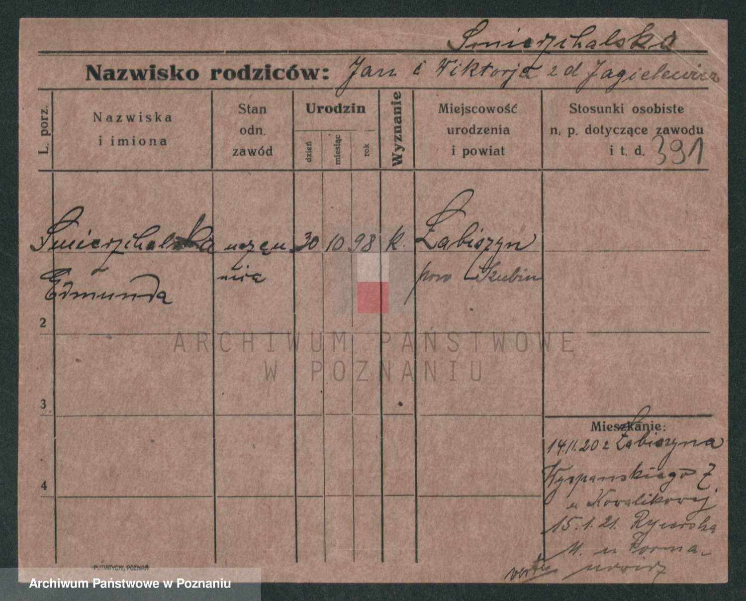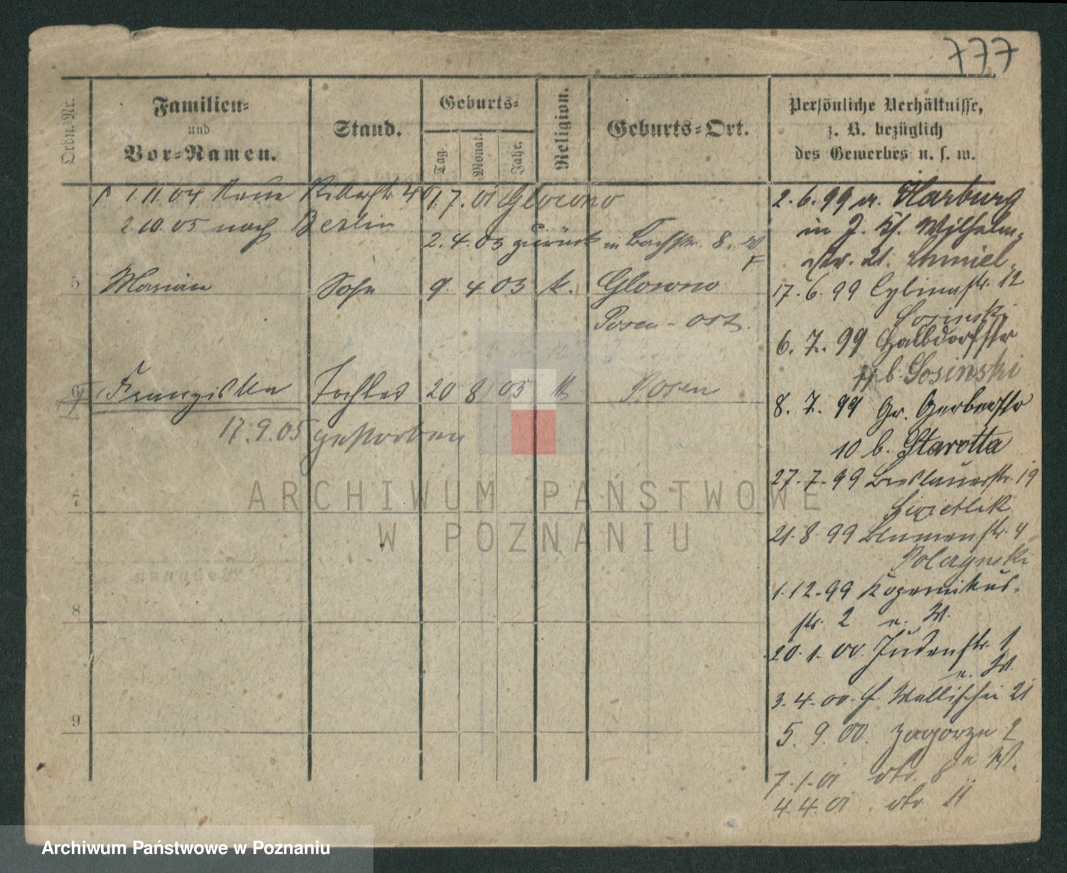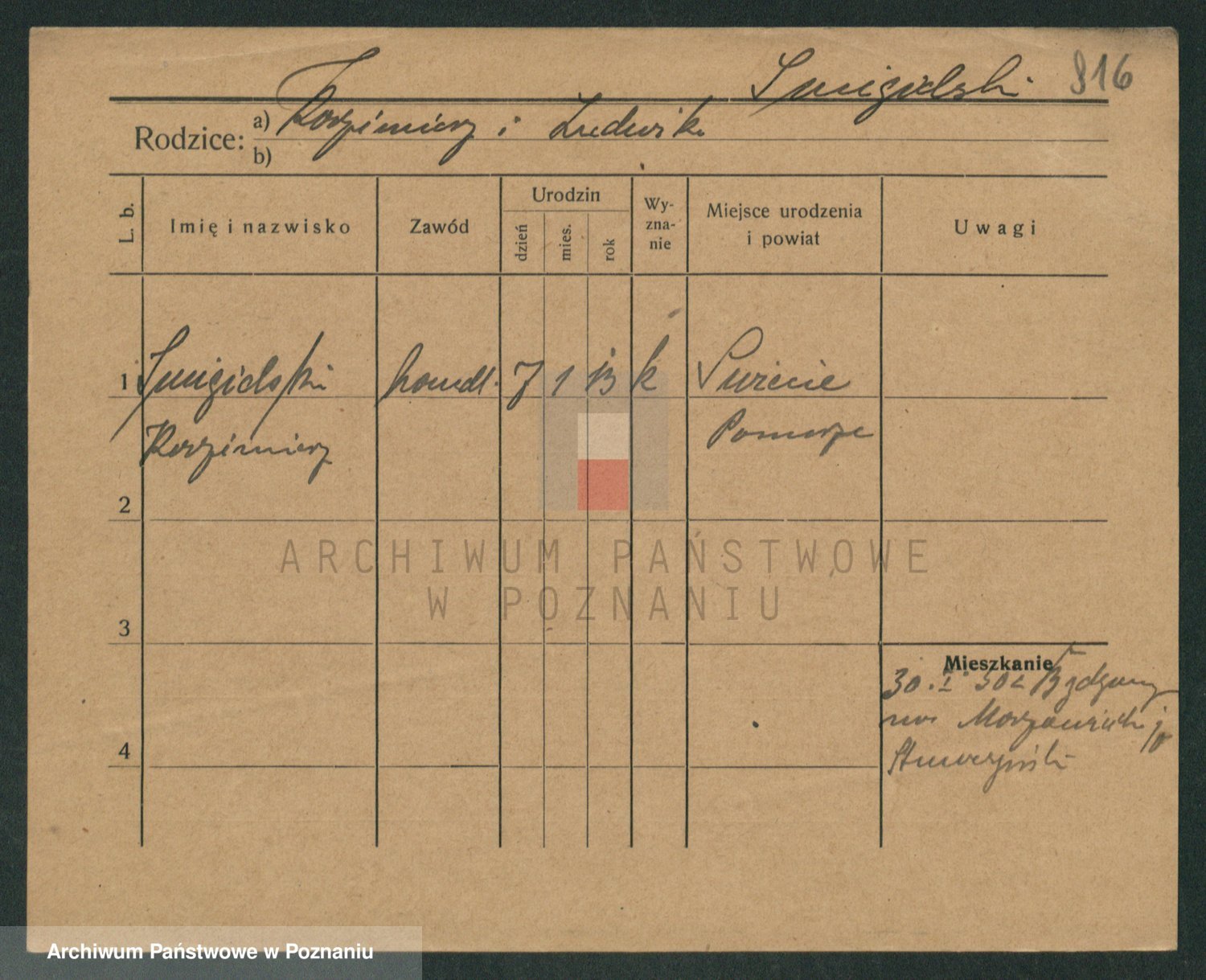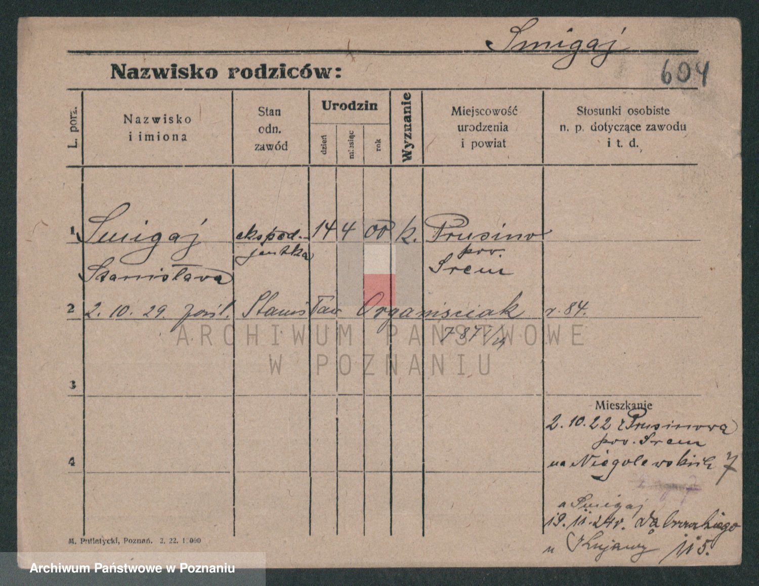 Podgląd karty osobowej dostępny jest po kliknięciu na nazwisko lub ikonkę karty. Można dokonywać powiększenia (ikony na górze) lub przechodzić między kolejnymi skanami (strzałki po bokach).