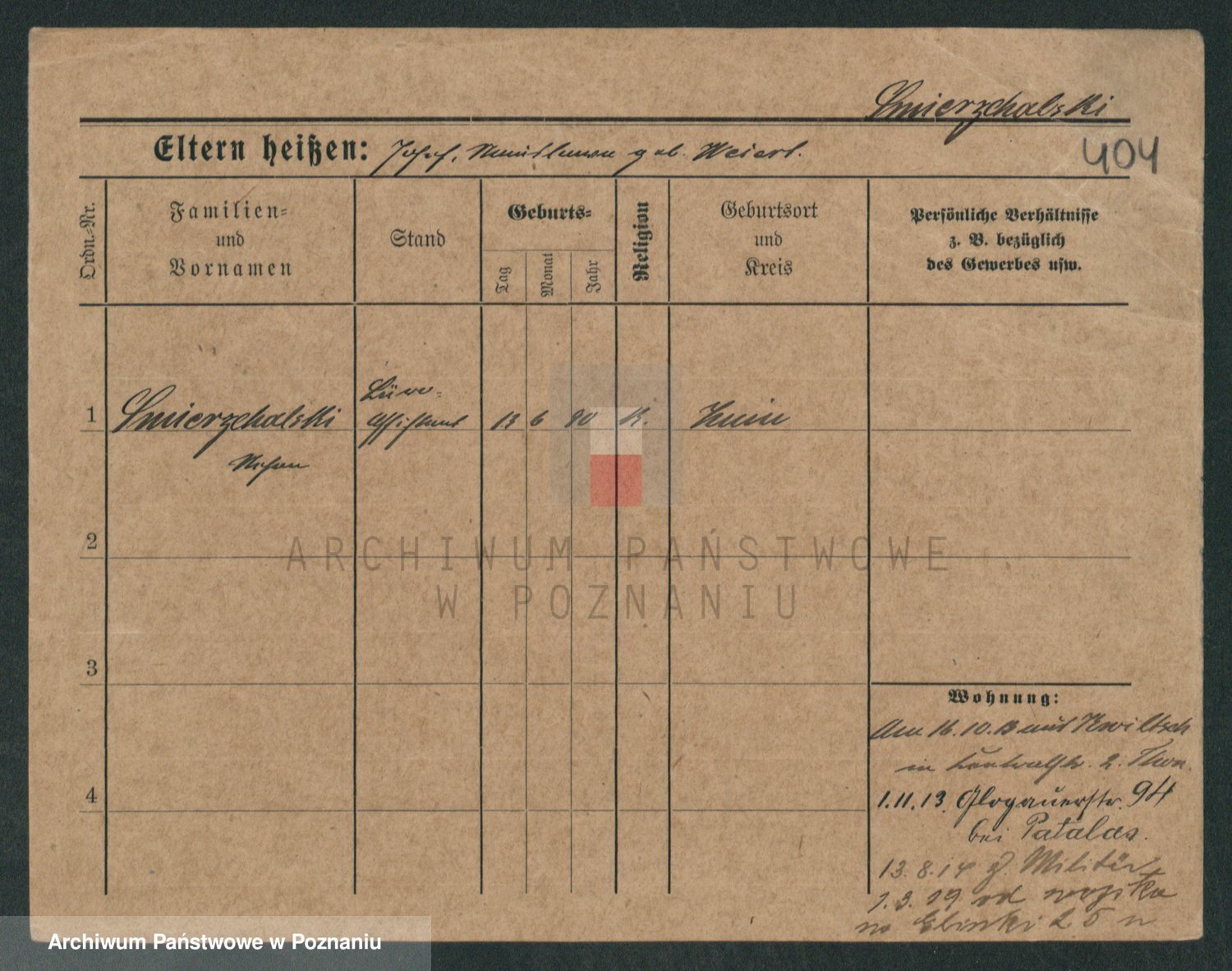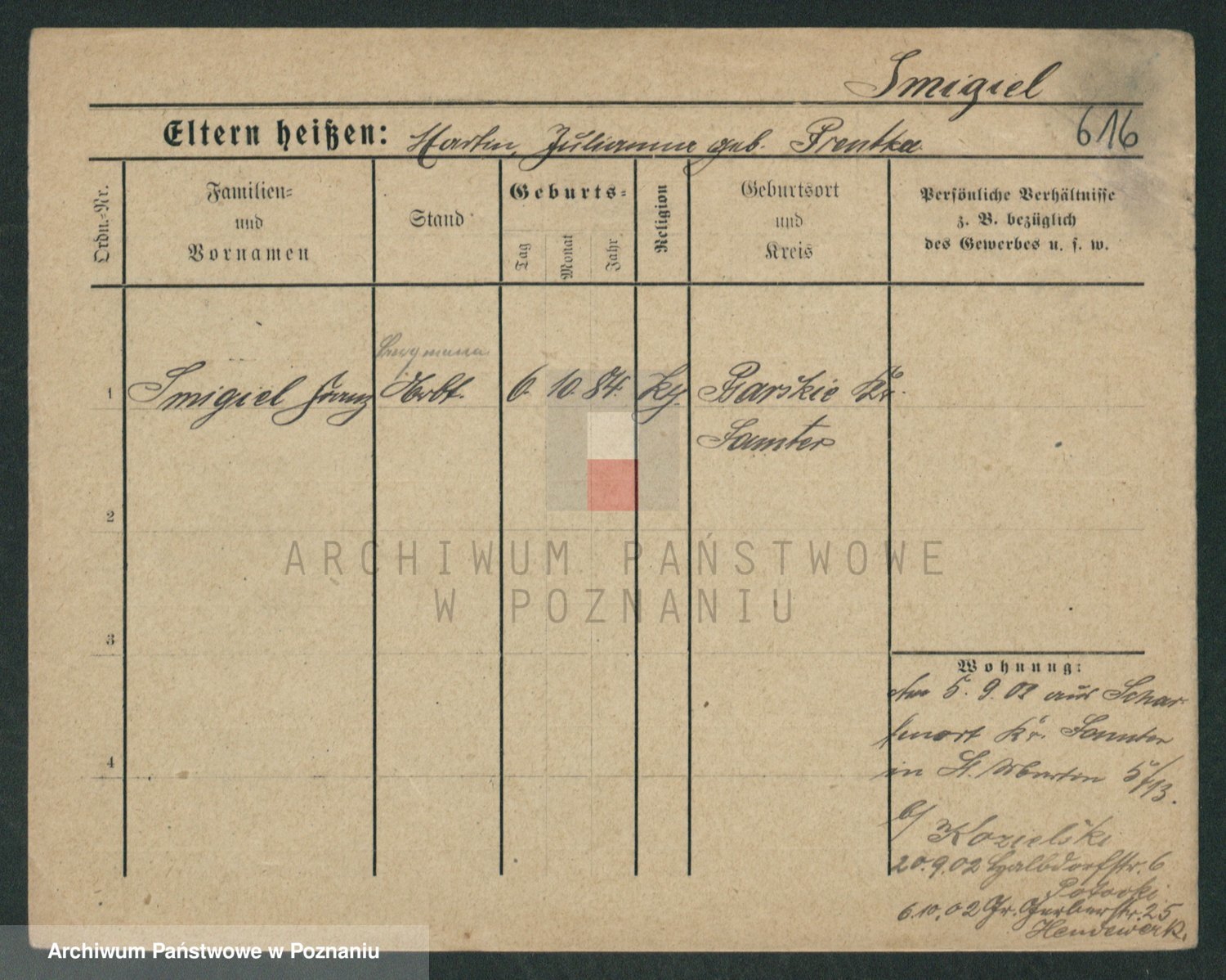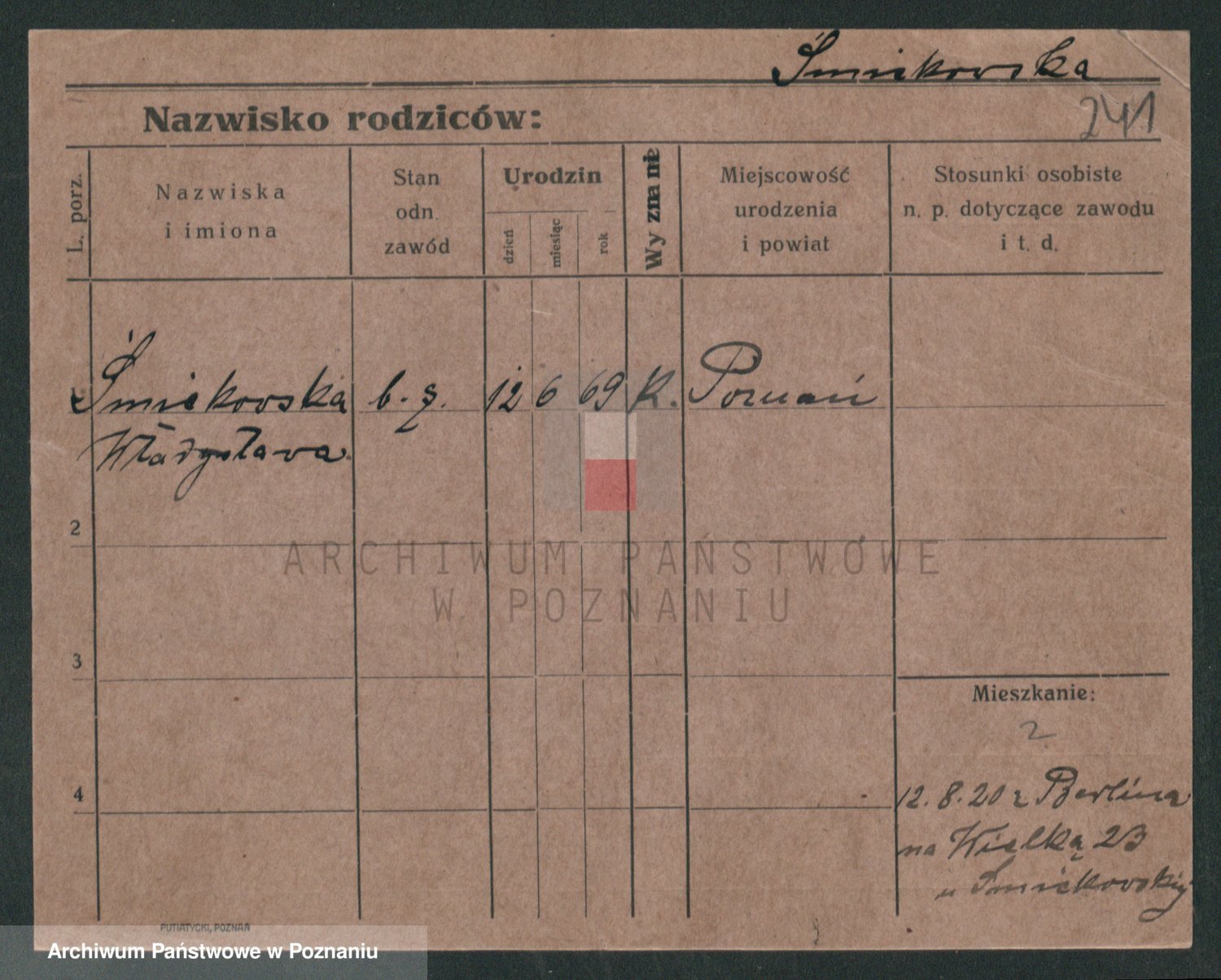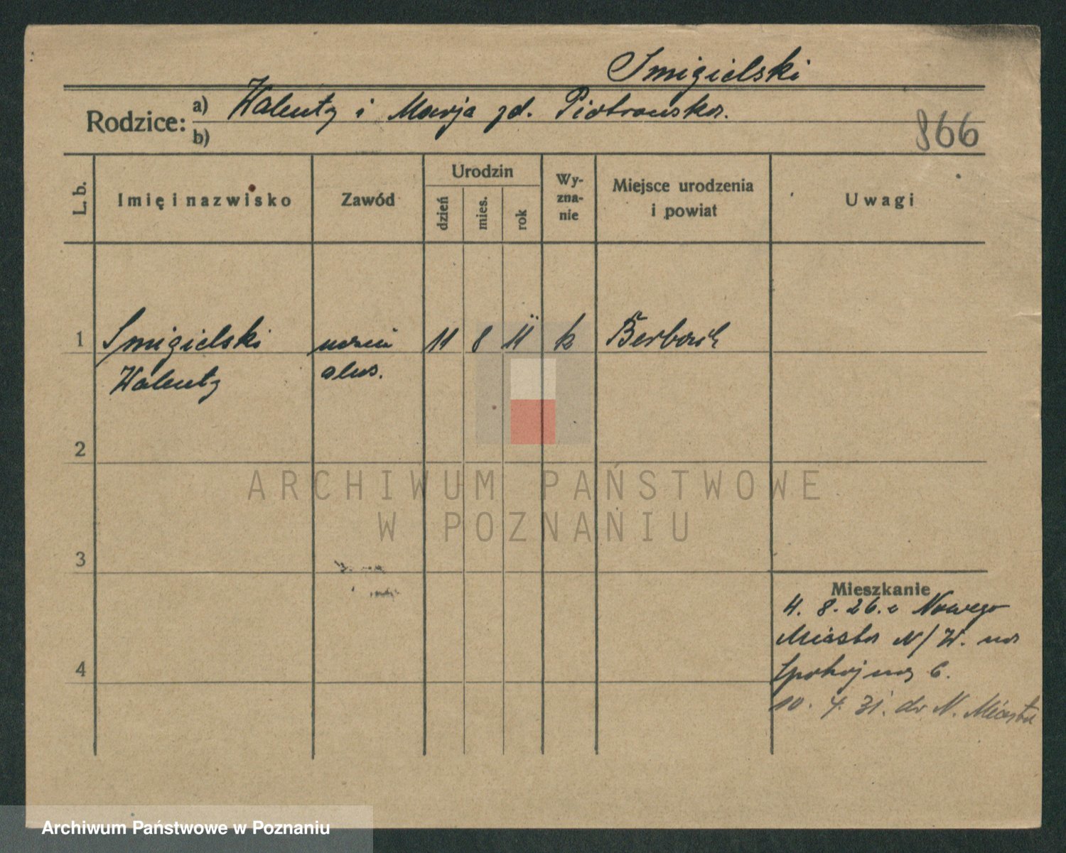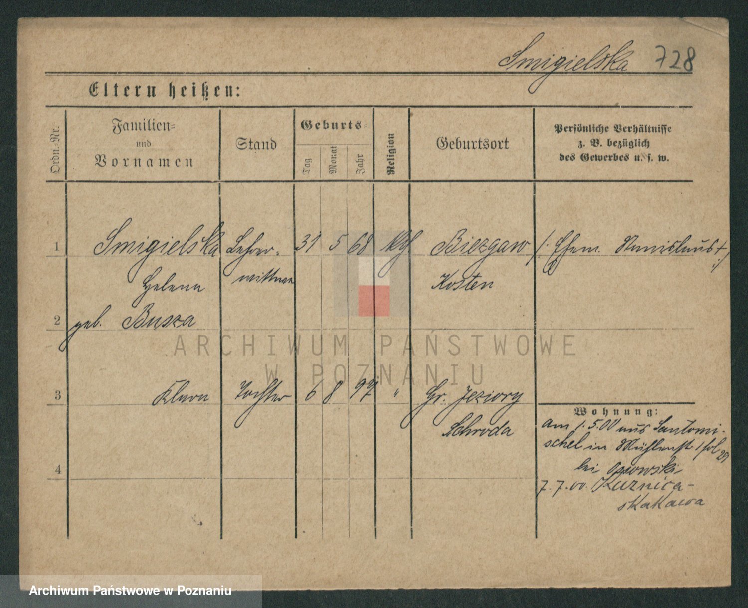 Podgląd karty osobowej dostępny jest po kliknięciu na nazwisko lub ikonkę karty. Można dokonywać powiększenia (ikony na górze) lub przechodzić między kolejnymi skanami (strzałki po bokach).