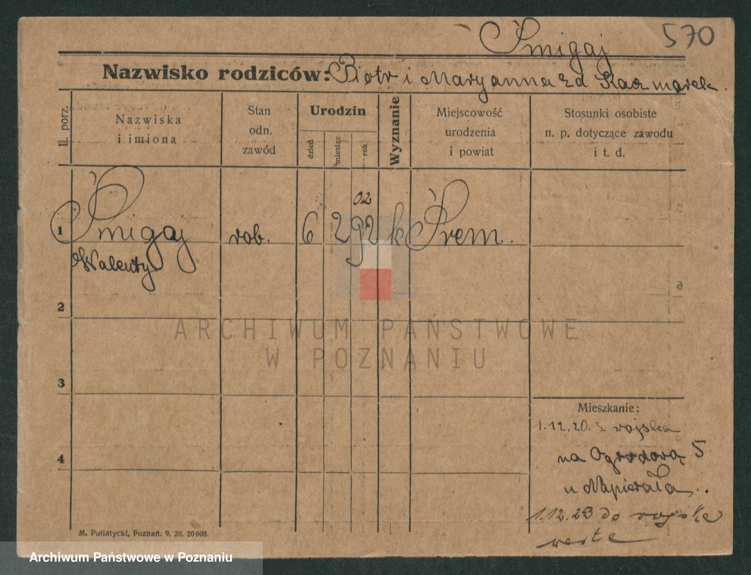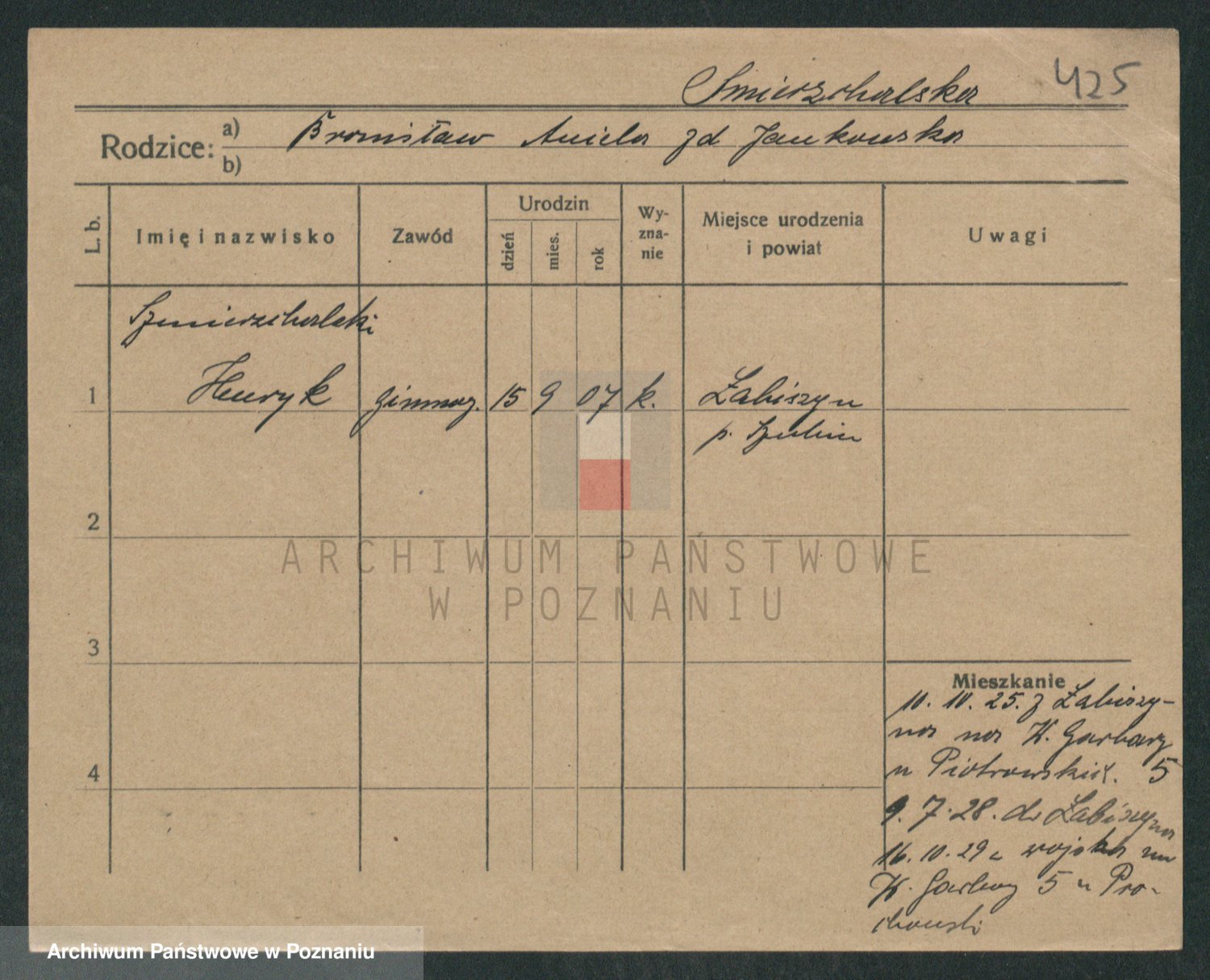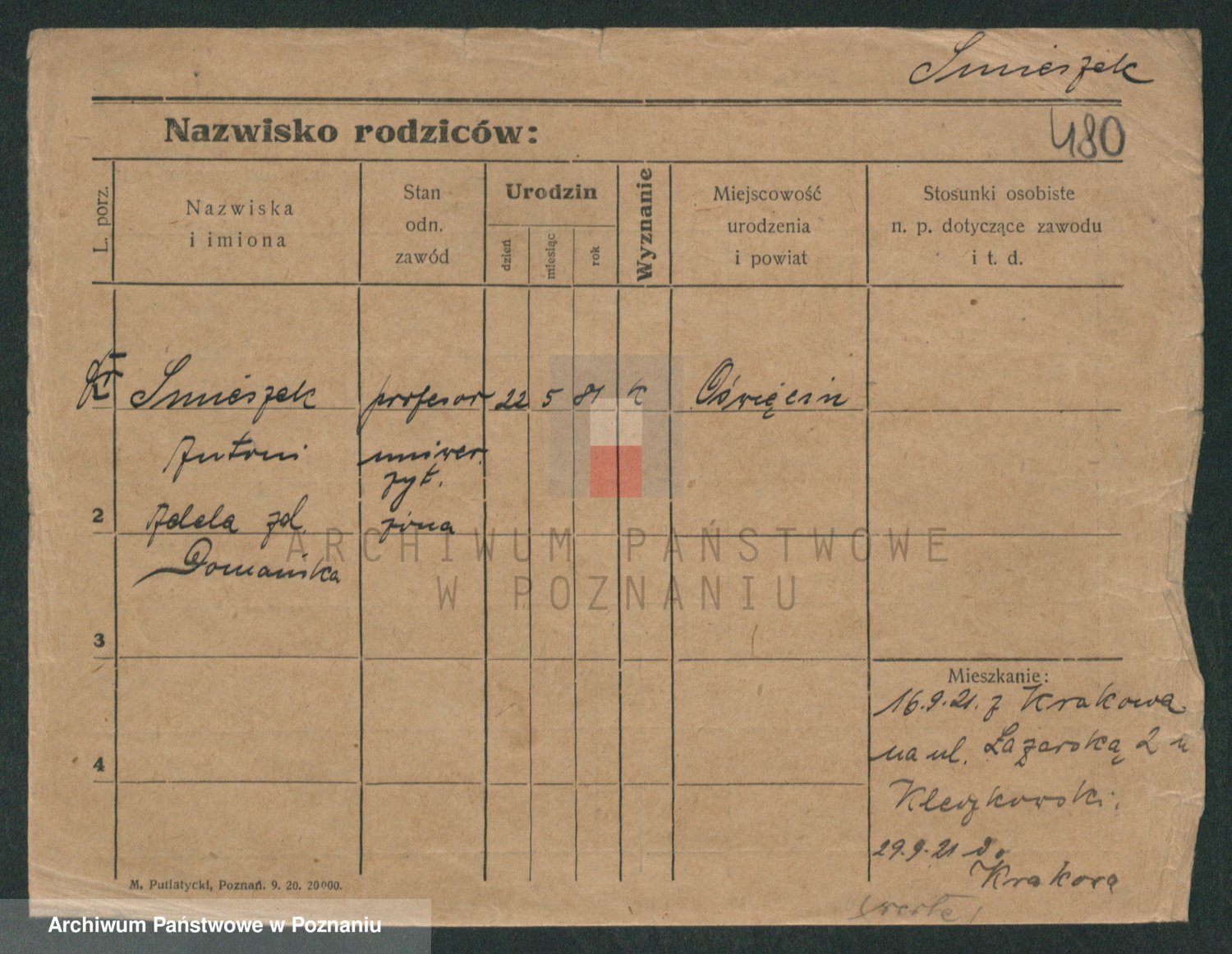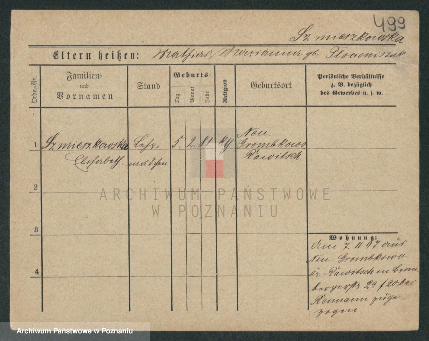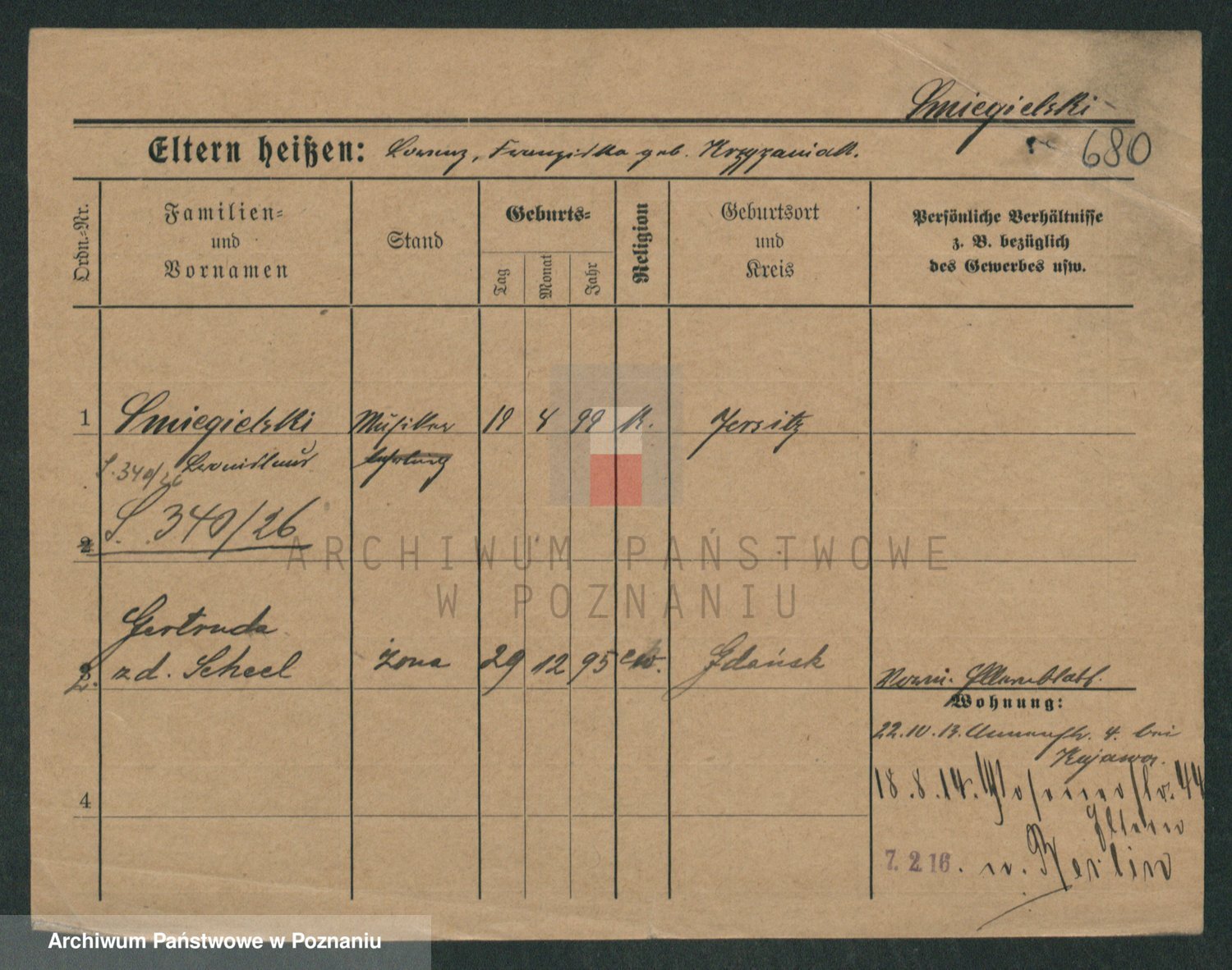 Podgląd karty osobowej dostępny jest po kliknięciu na nazwisko lub ikonkę karty. Można dokonywać powiększenia (ikony na górze) lub przechodzić między kolejnymi skanami (strzałki po bokach).