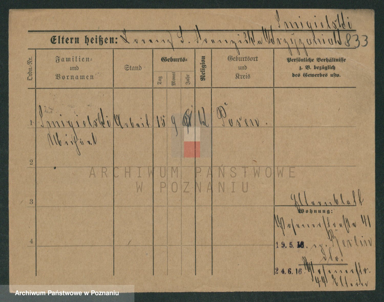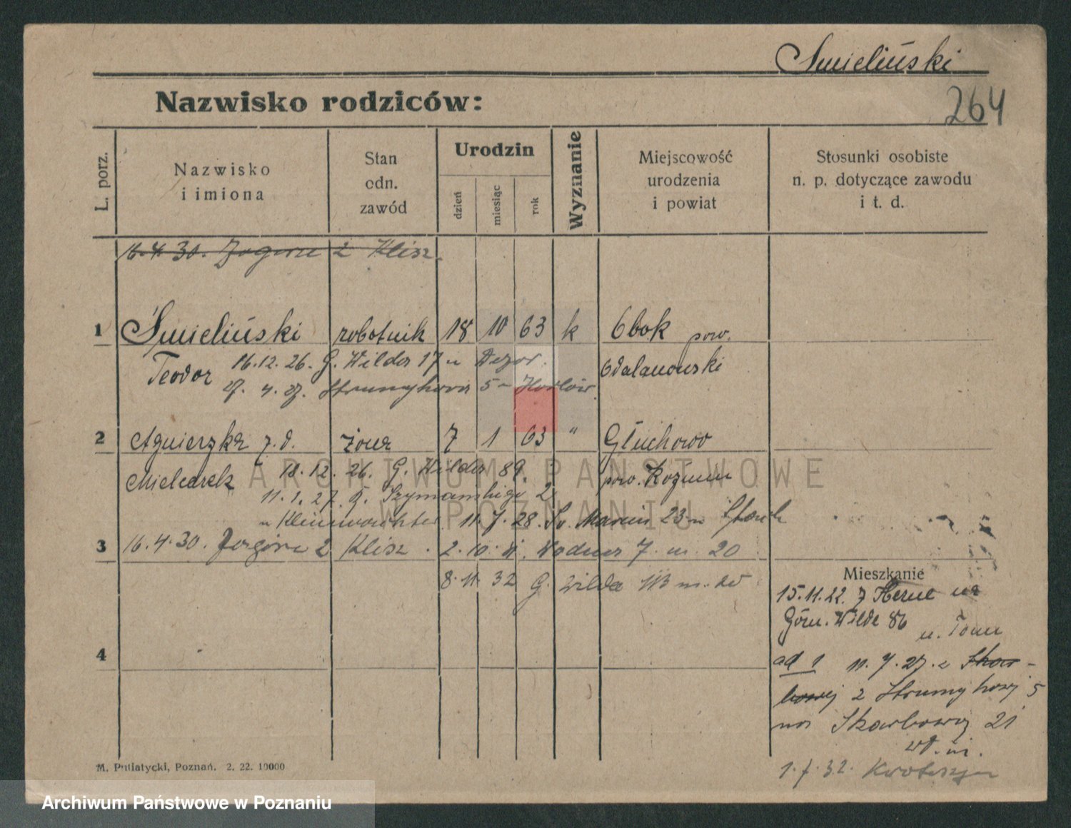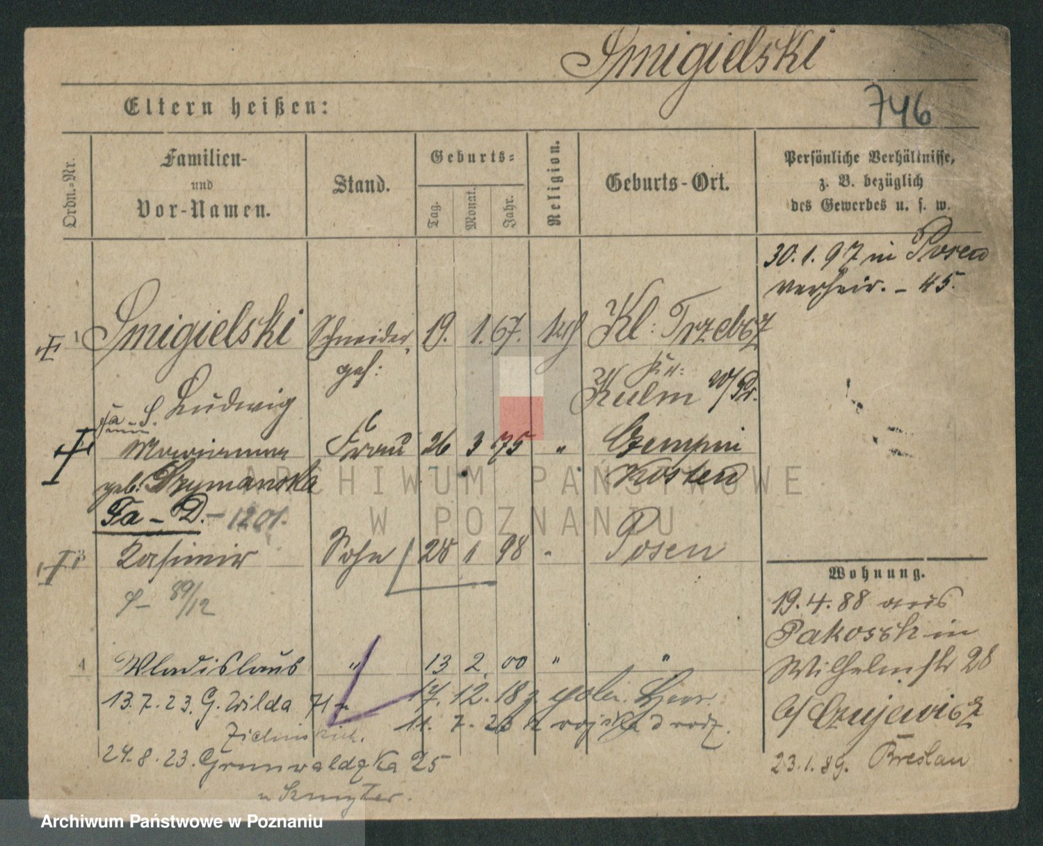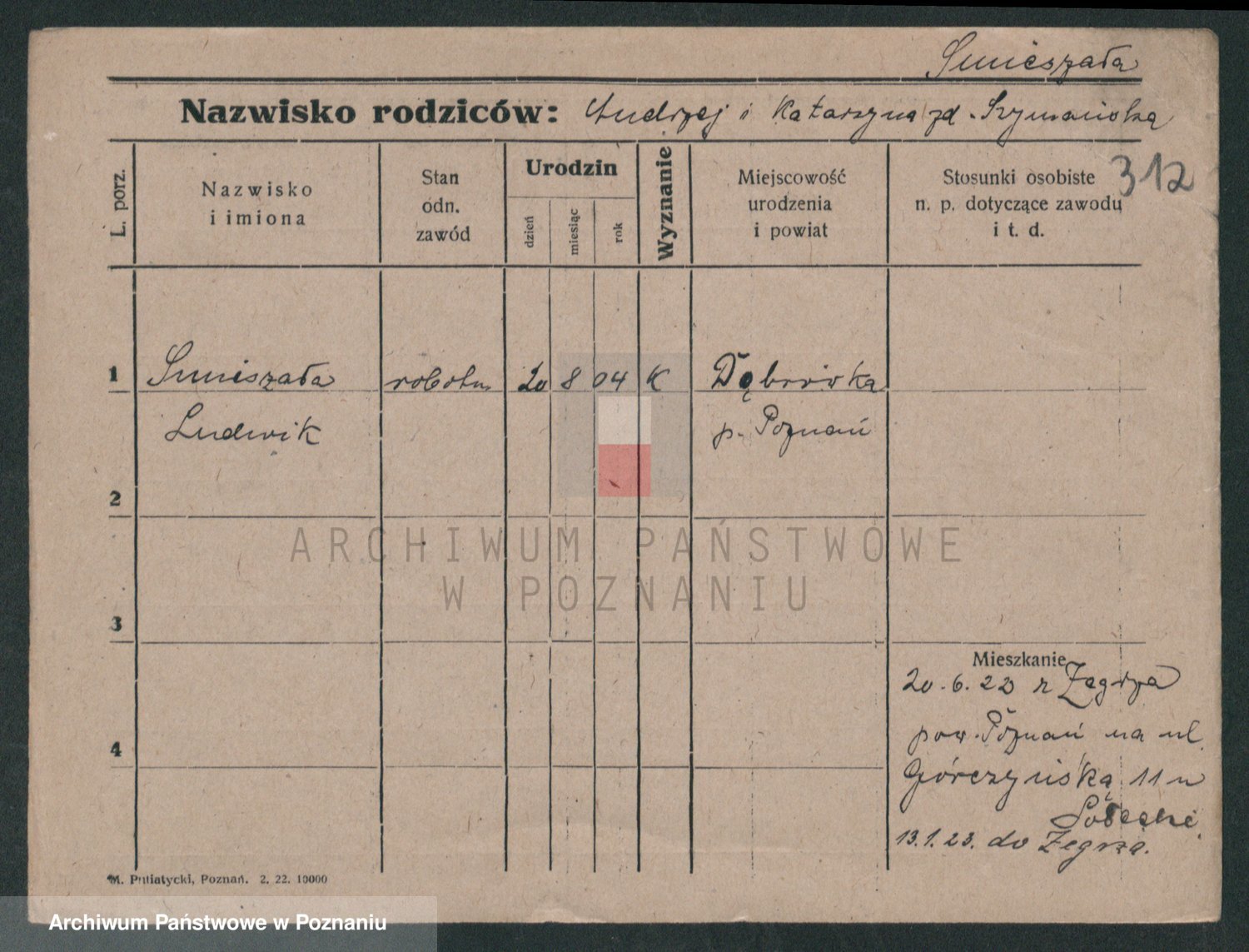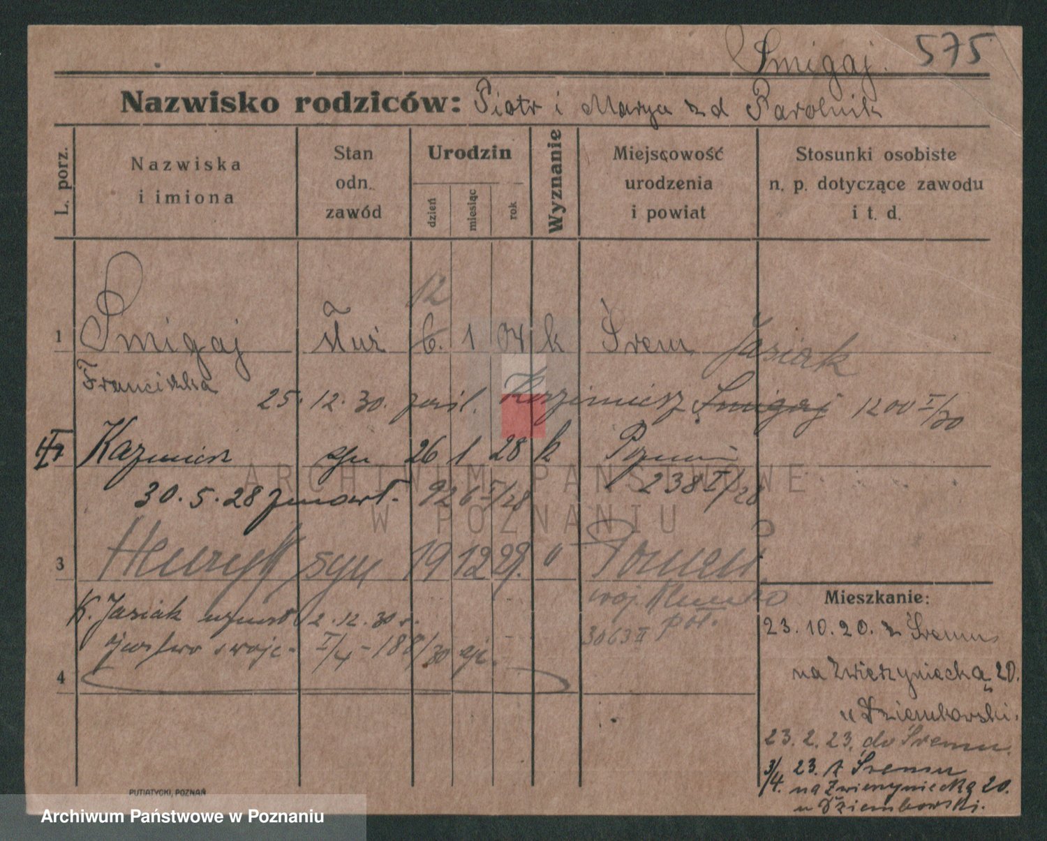 Podgląd karty osobowej dostępny jest po kliknięciu na nazwisko lub ikonkę karty. Można dokonywać powiększenia (ikony na górze) lub przechodzić między kolejnymi skanami (strzałki po bokach).