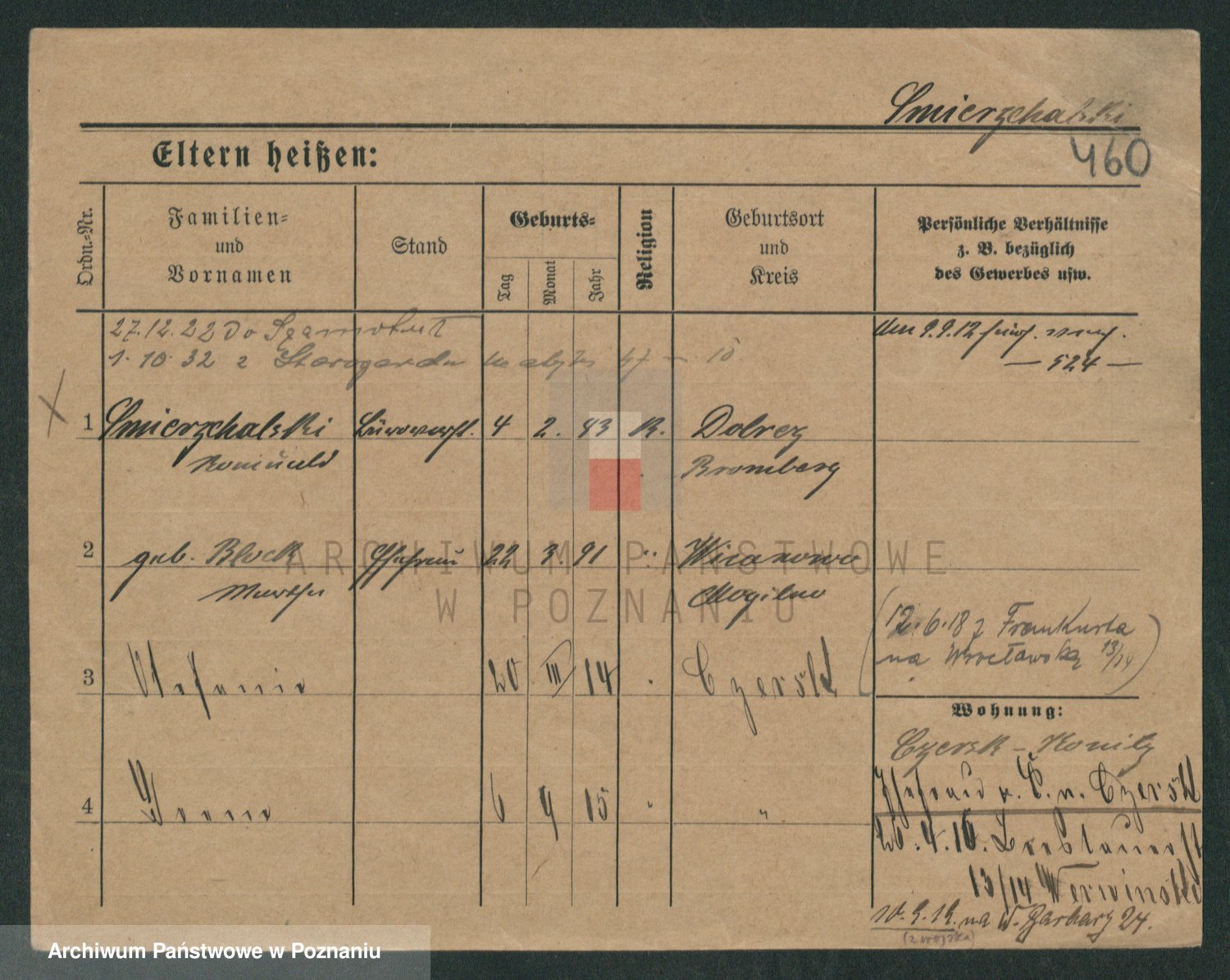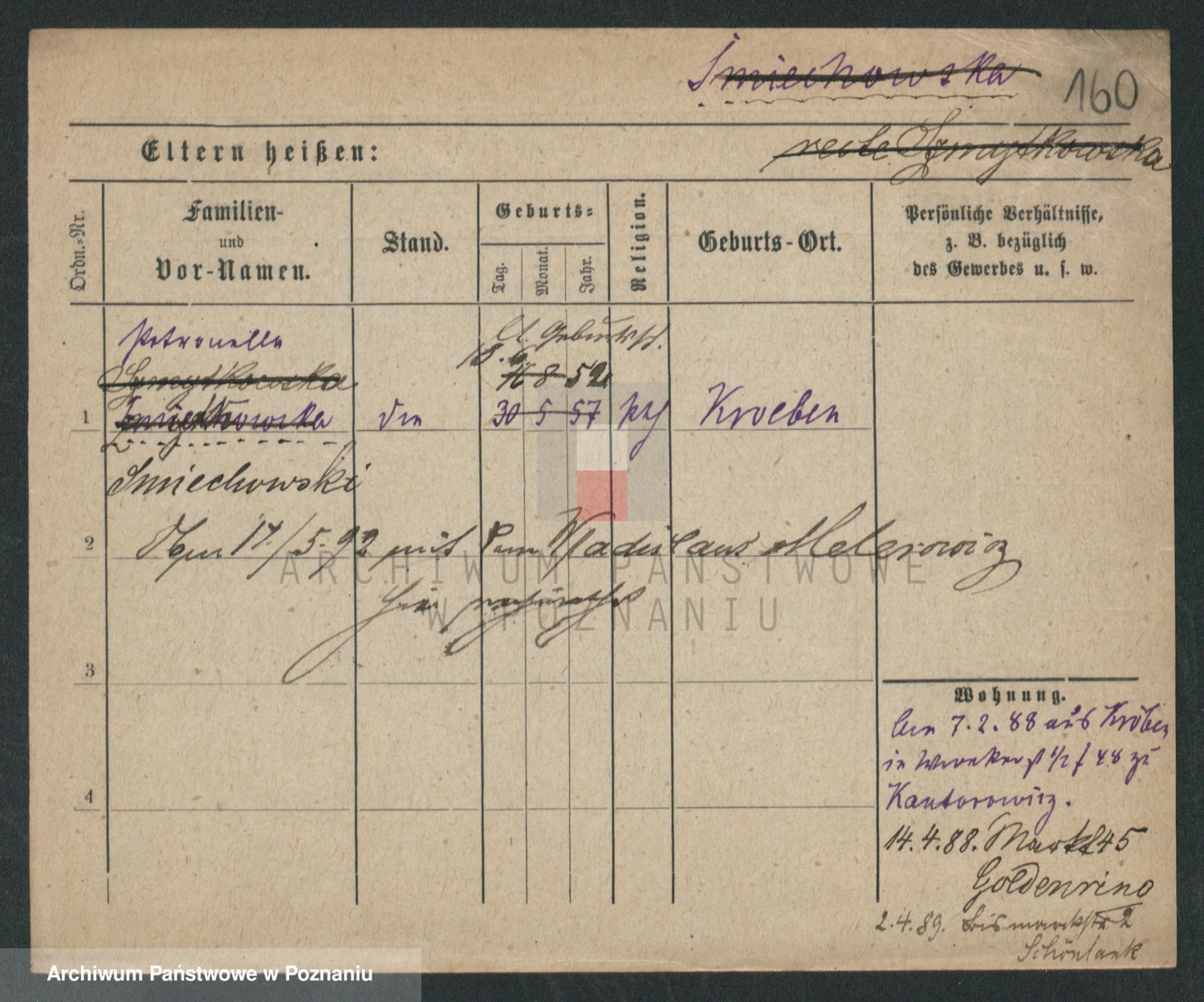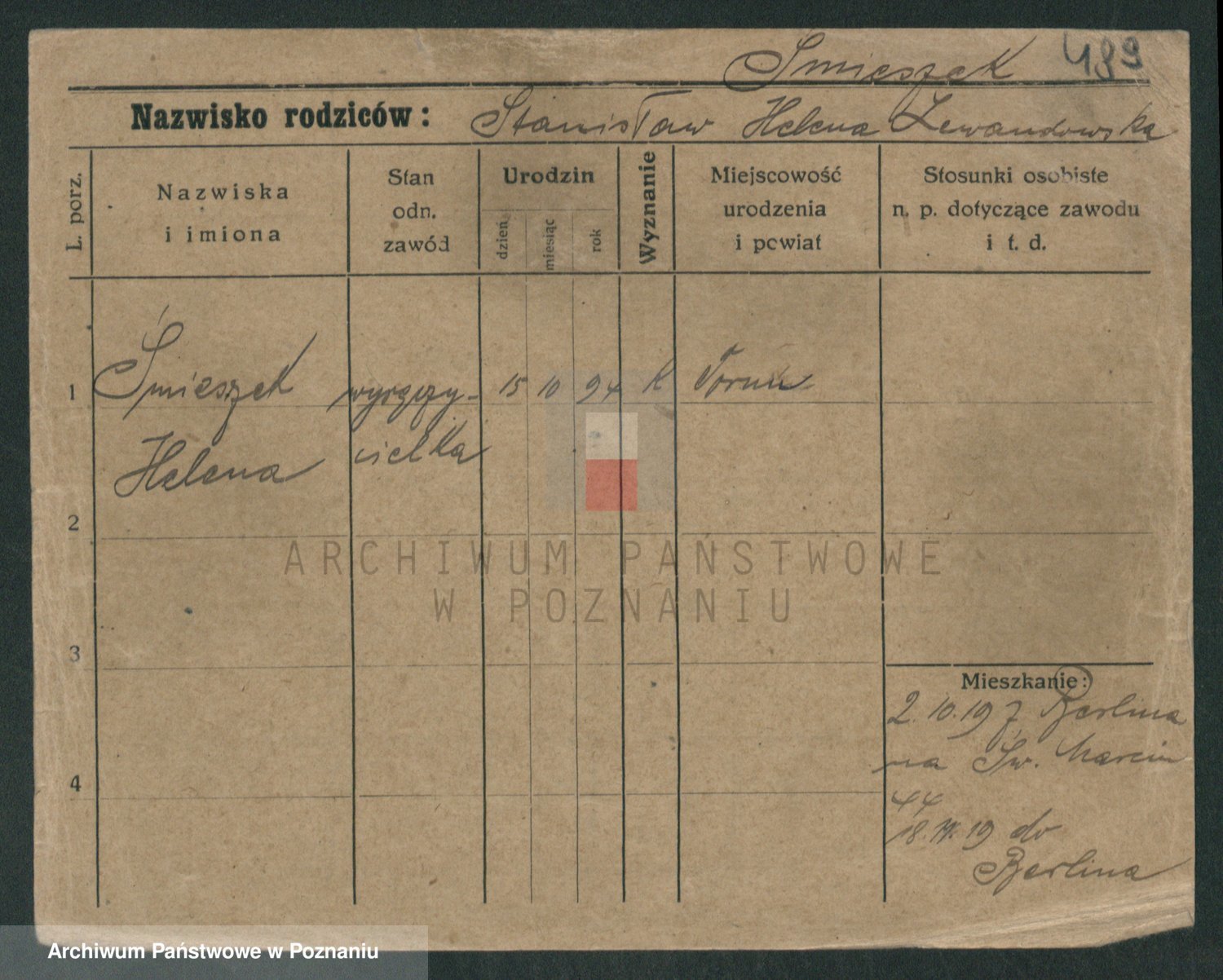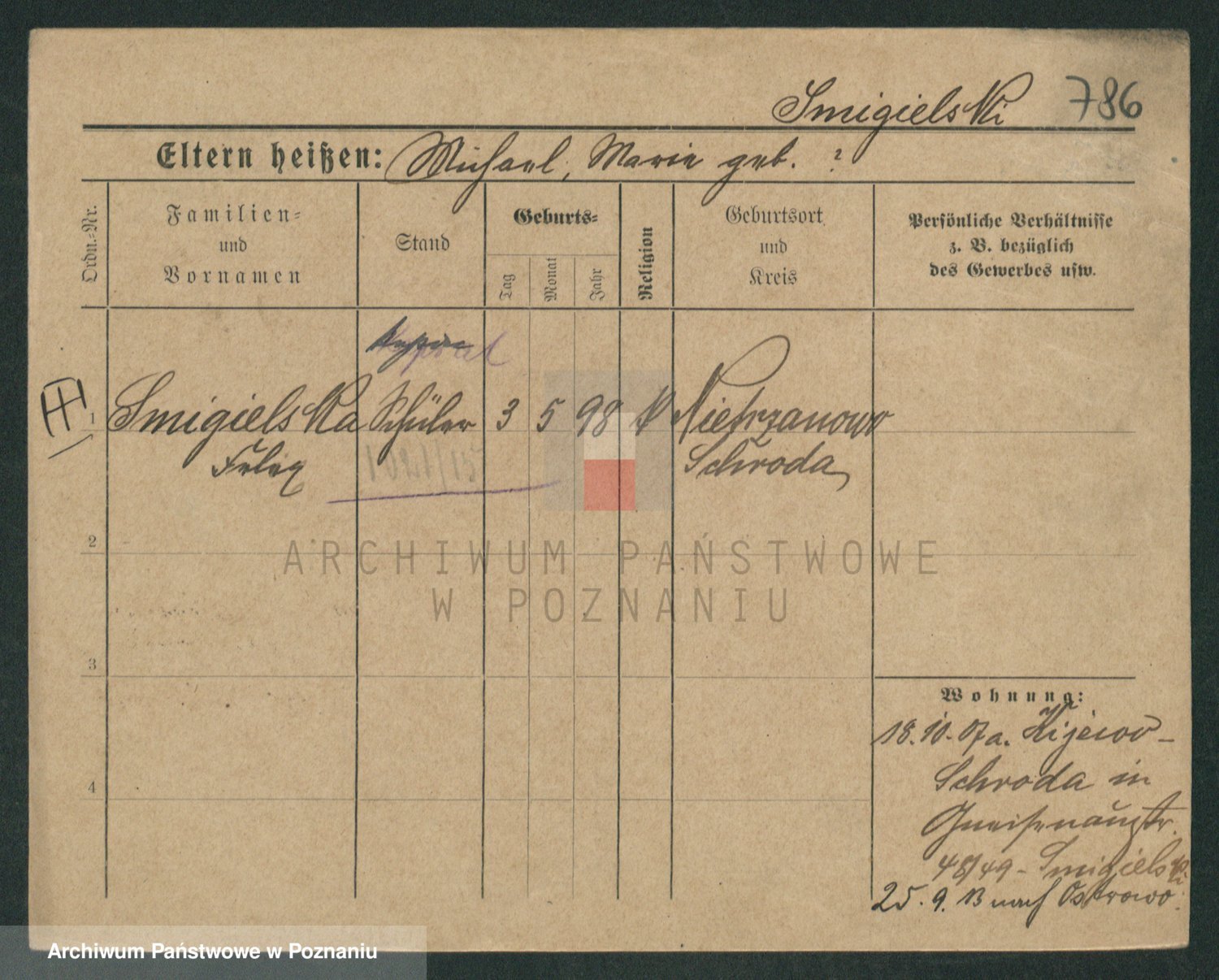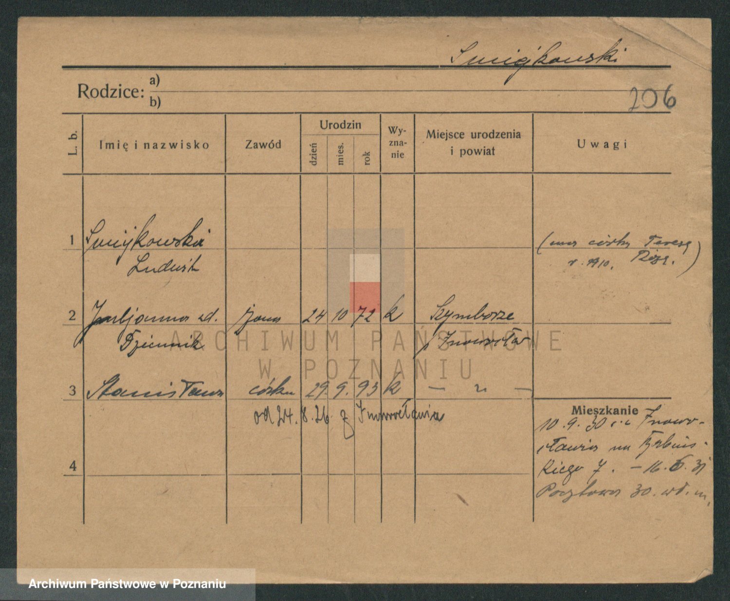 Podgląd karty osobowej dostępny jest po kliknięciu na nazwisko lub ikonkę karty. Można dokonywać powiększenia (ikony na górze) lub przechodzić między kolejnymi skanami (strzałki po bokach).