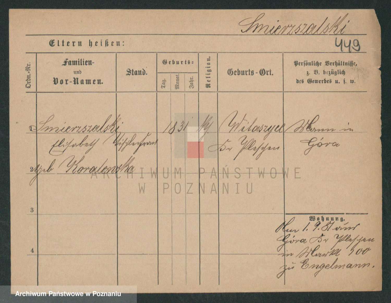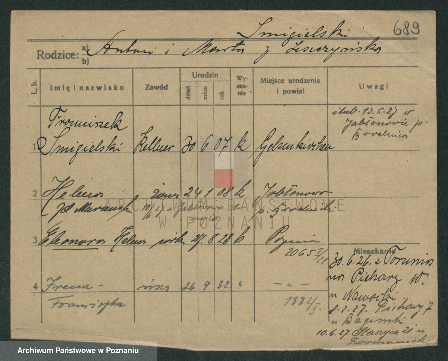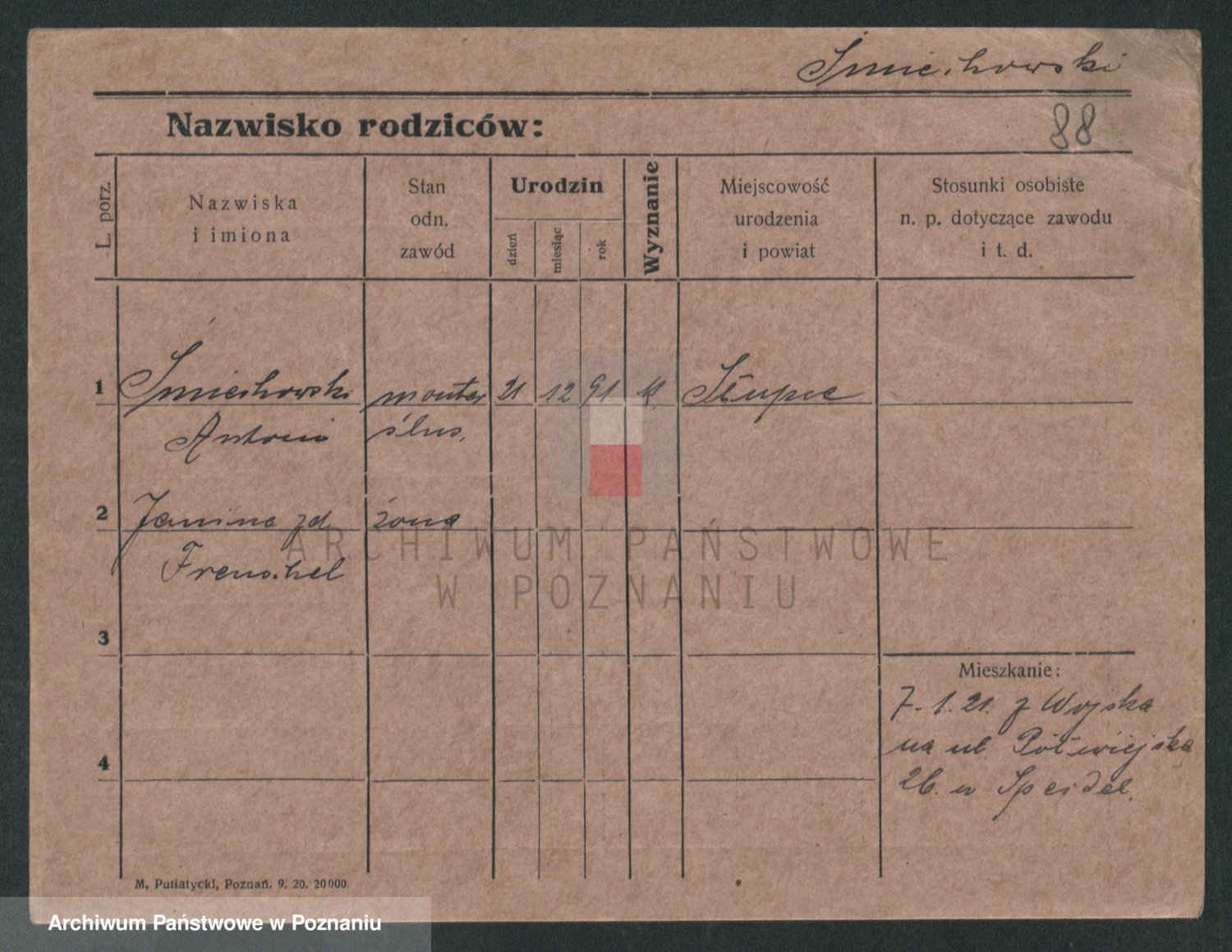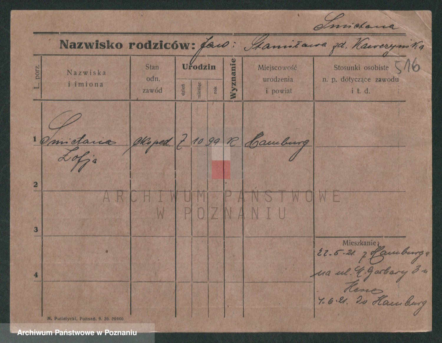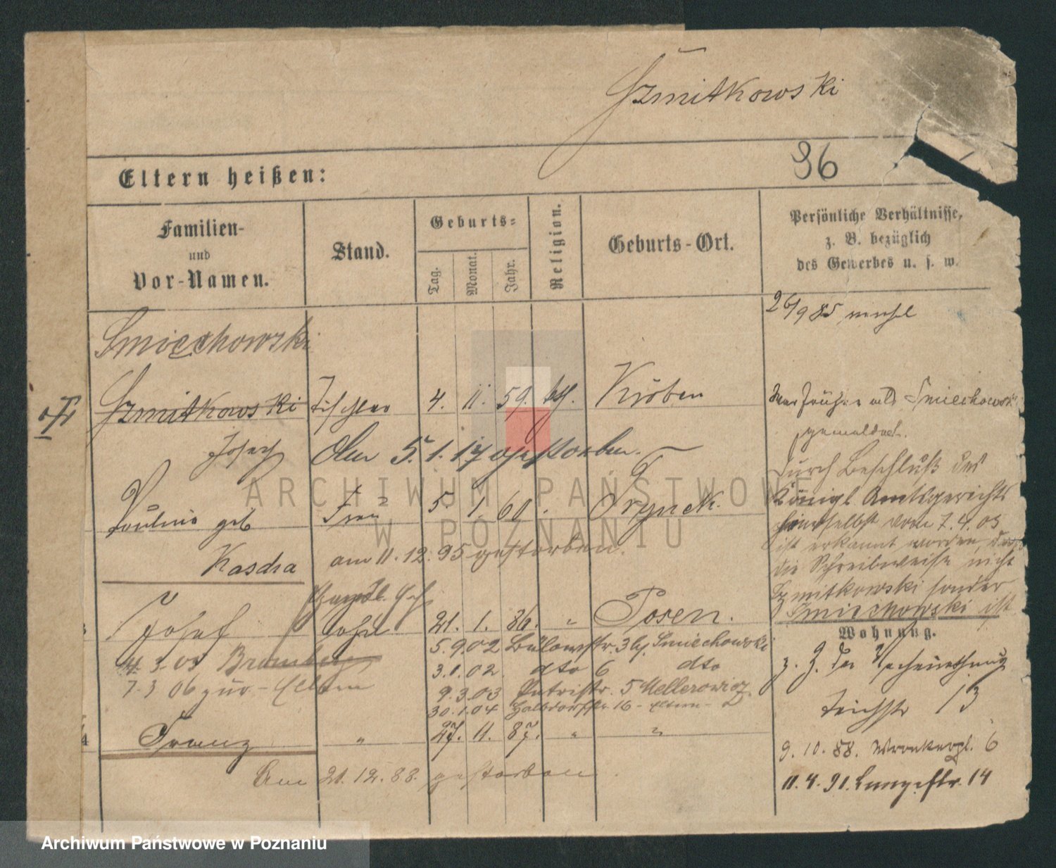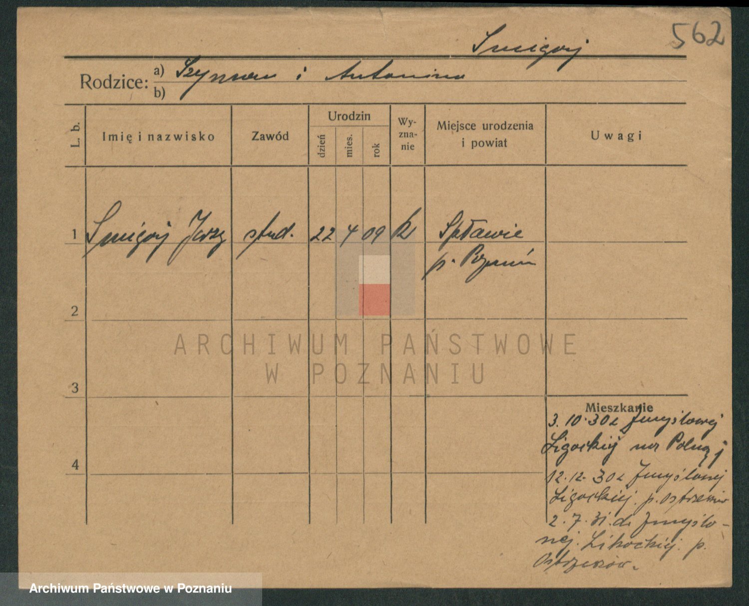 Podgląd karty osobowej dostępny jest po kliknięciu na nazwisko lub ikonkę karty. Można dokonywać powiększenia (ikony na górze) lub przechodzić między kolejnymi skanami (strzałki po bokach).