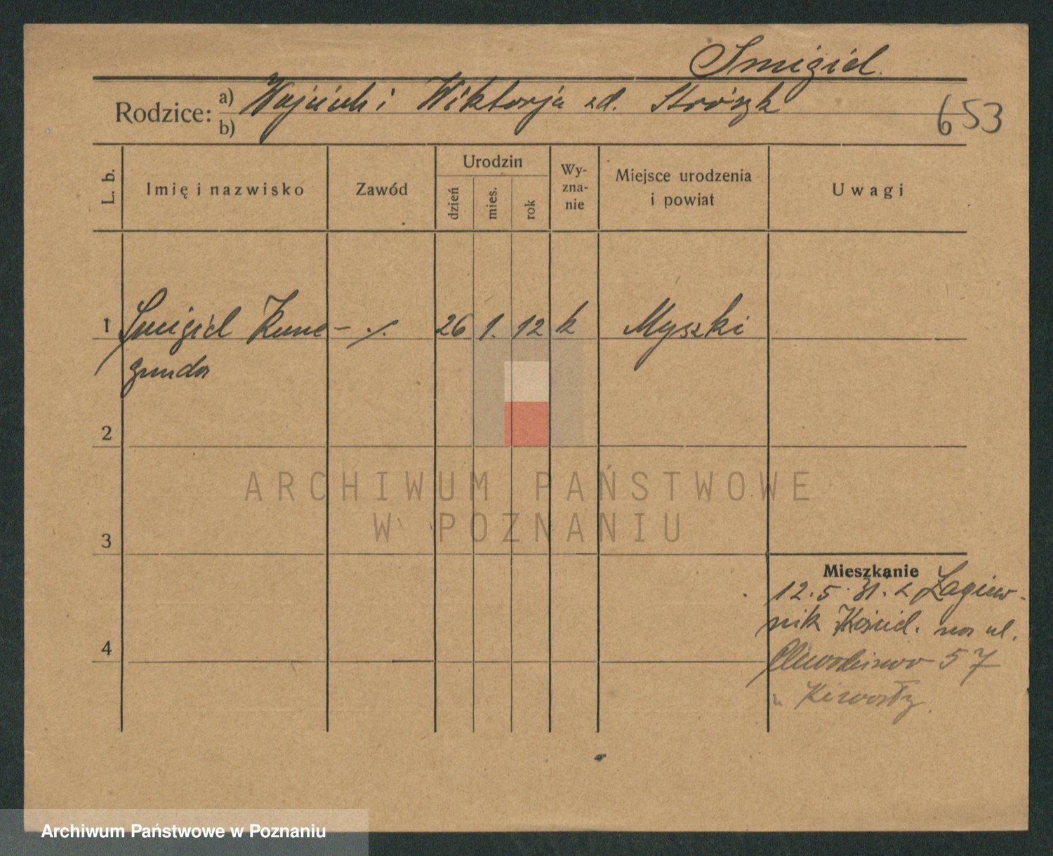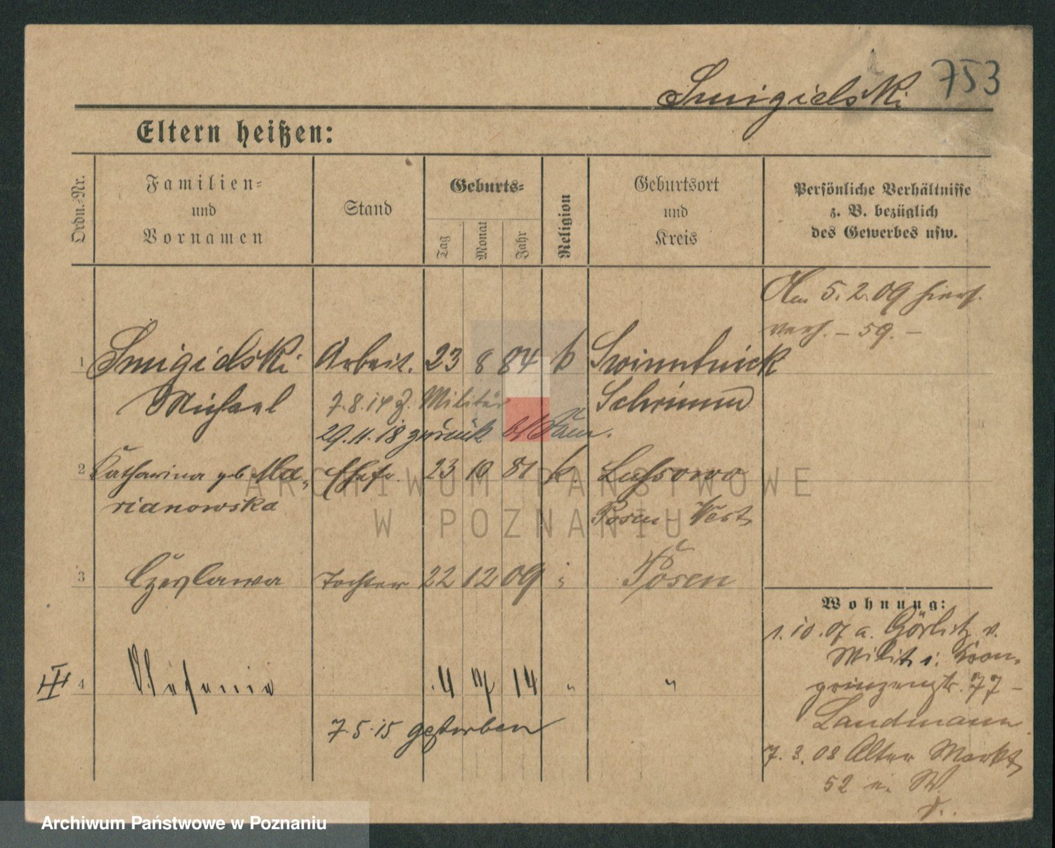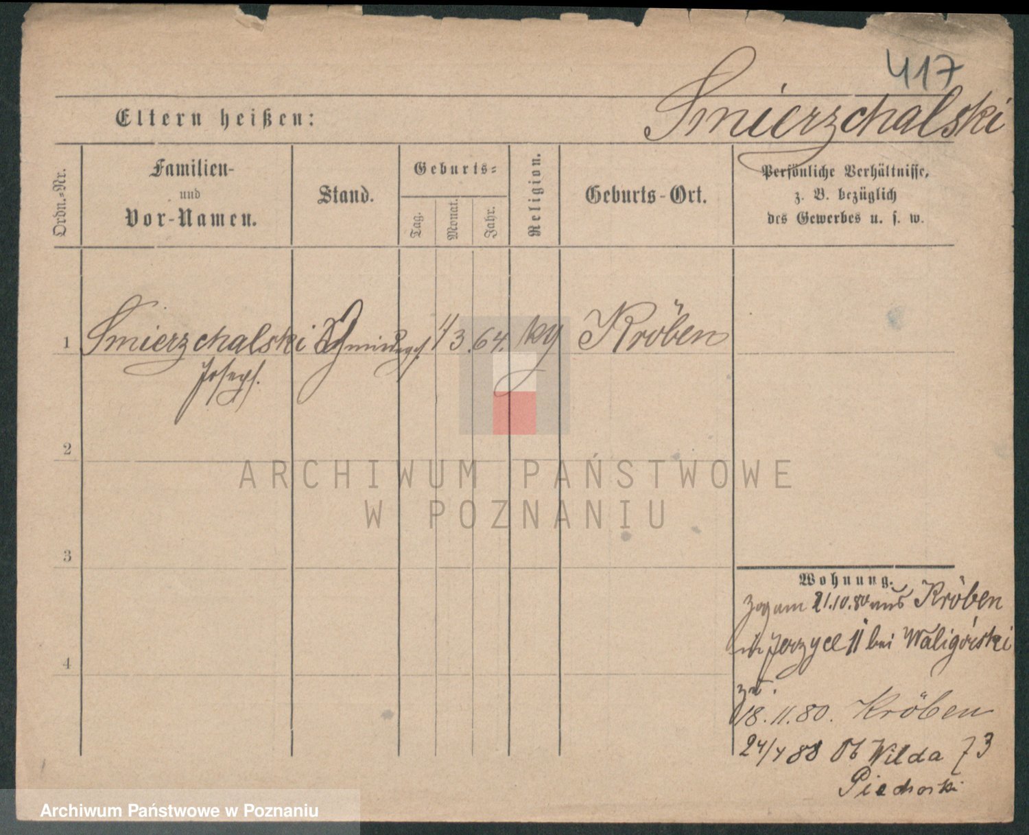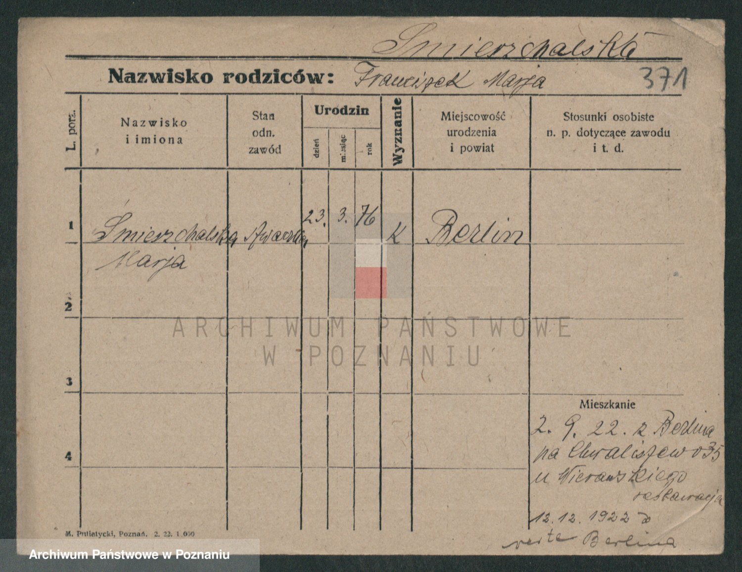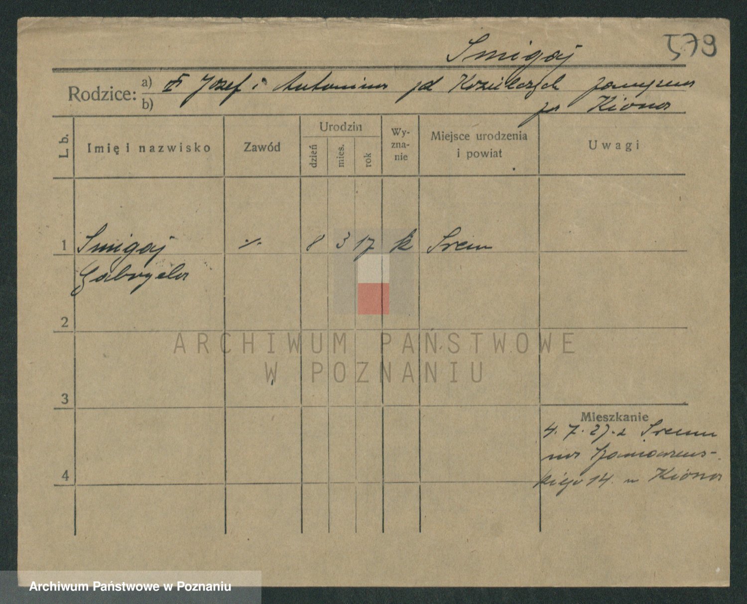 Podgląd karty osobowej dostępny jest po kliknięciu na nazwisko lub ikonkę karty. Można dokonywać powiększenia (ikony na górze) lub przechodzić między kolejnymi skanami (strzałki po bokach).