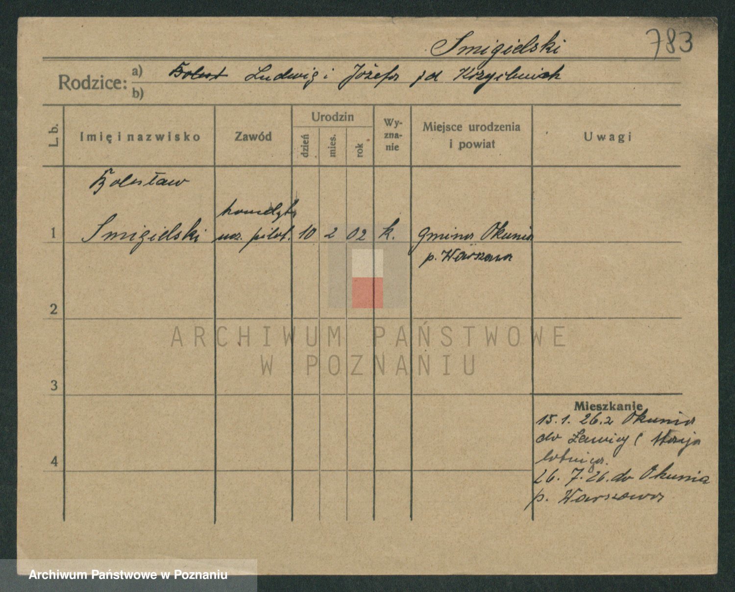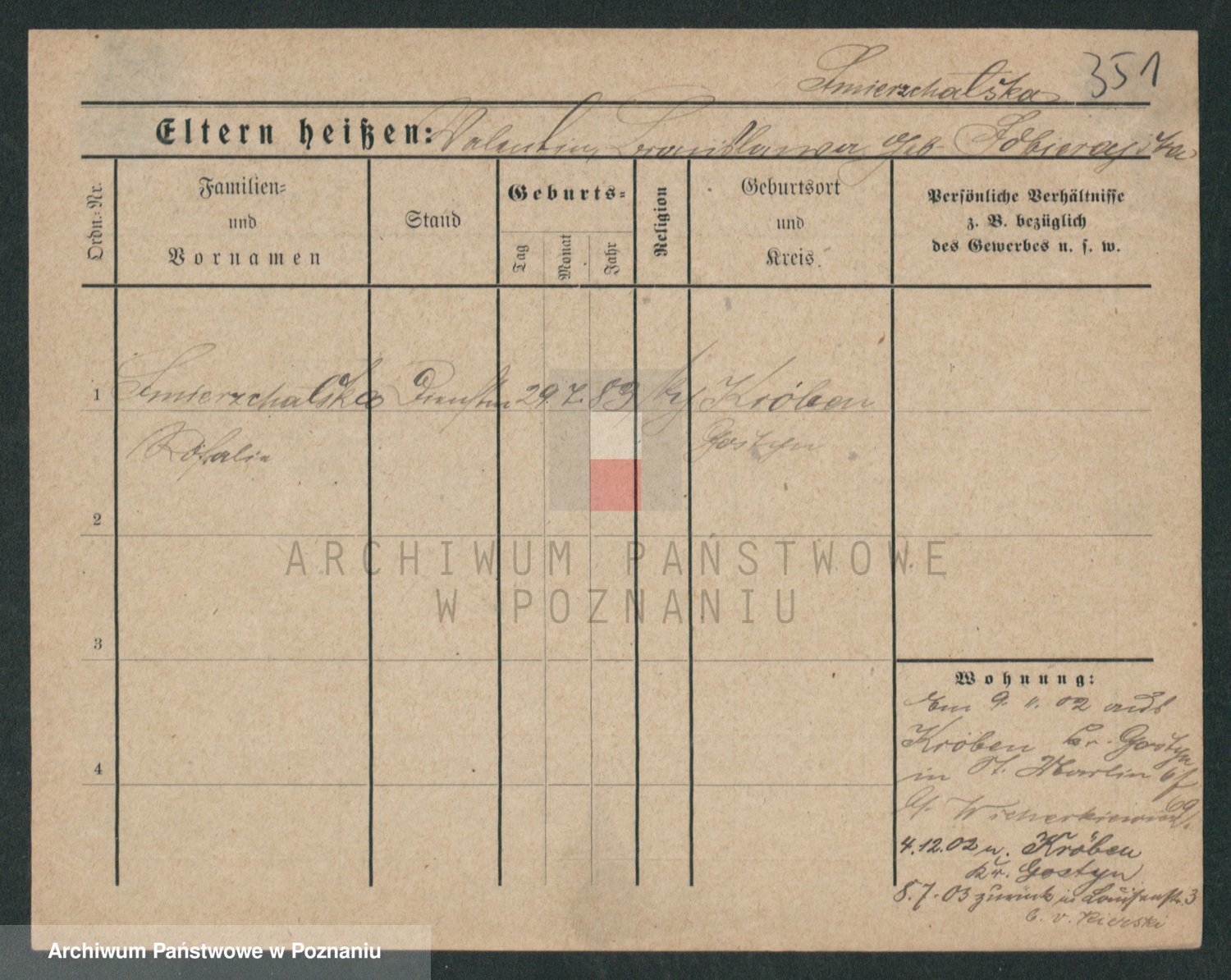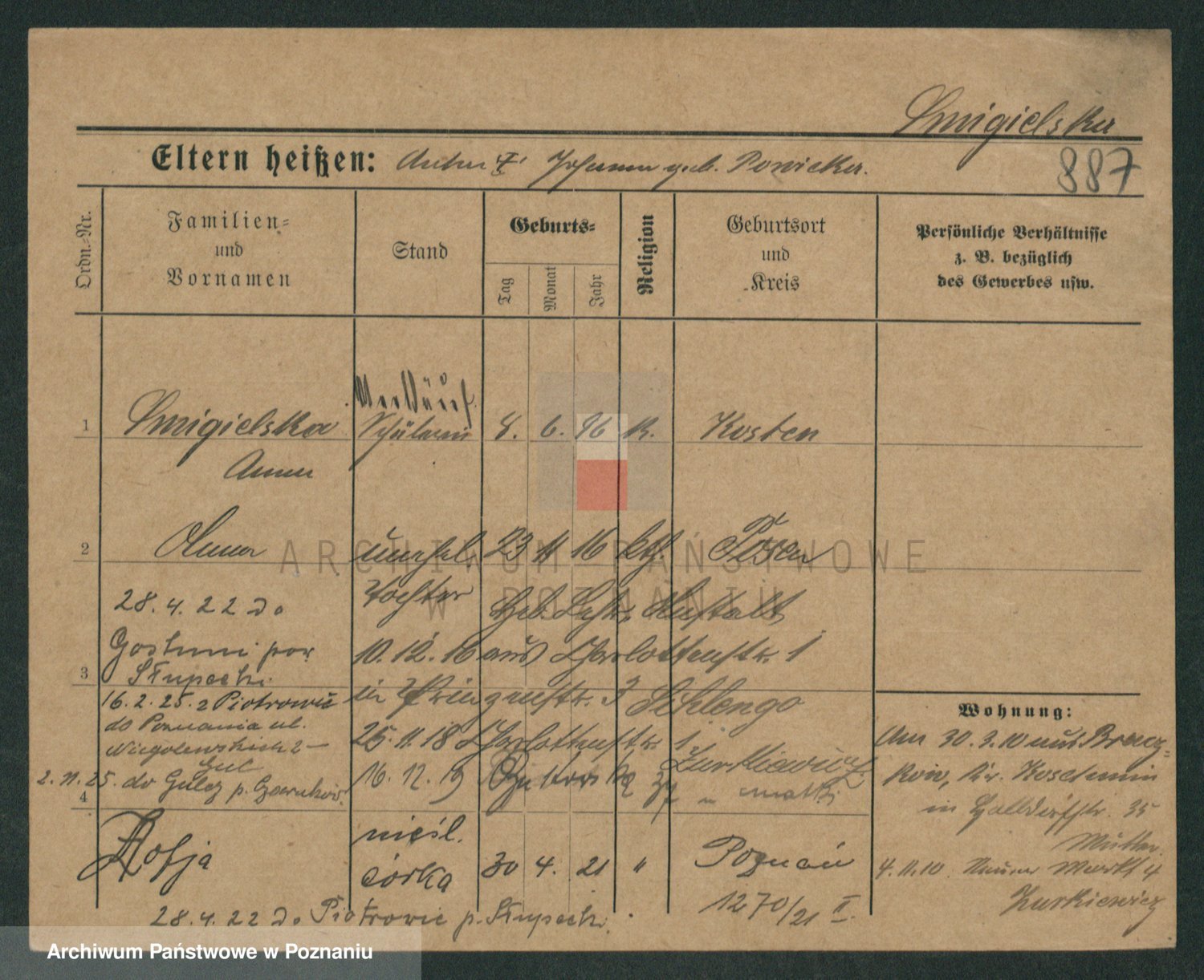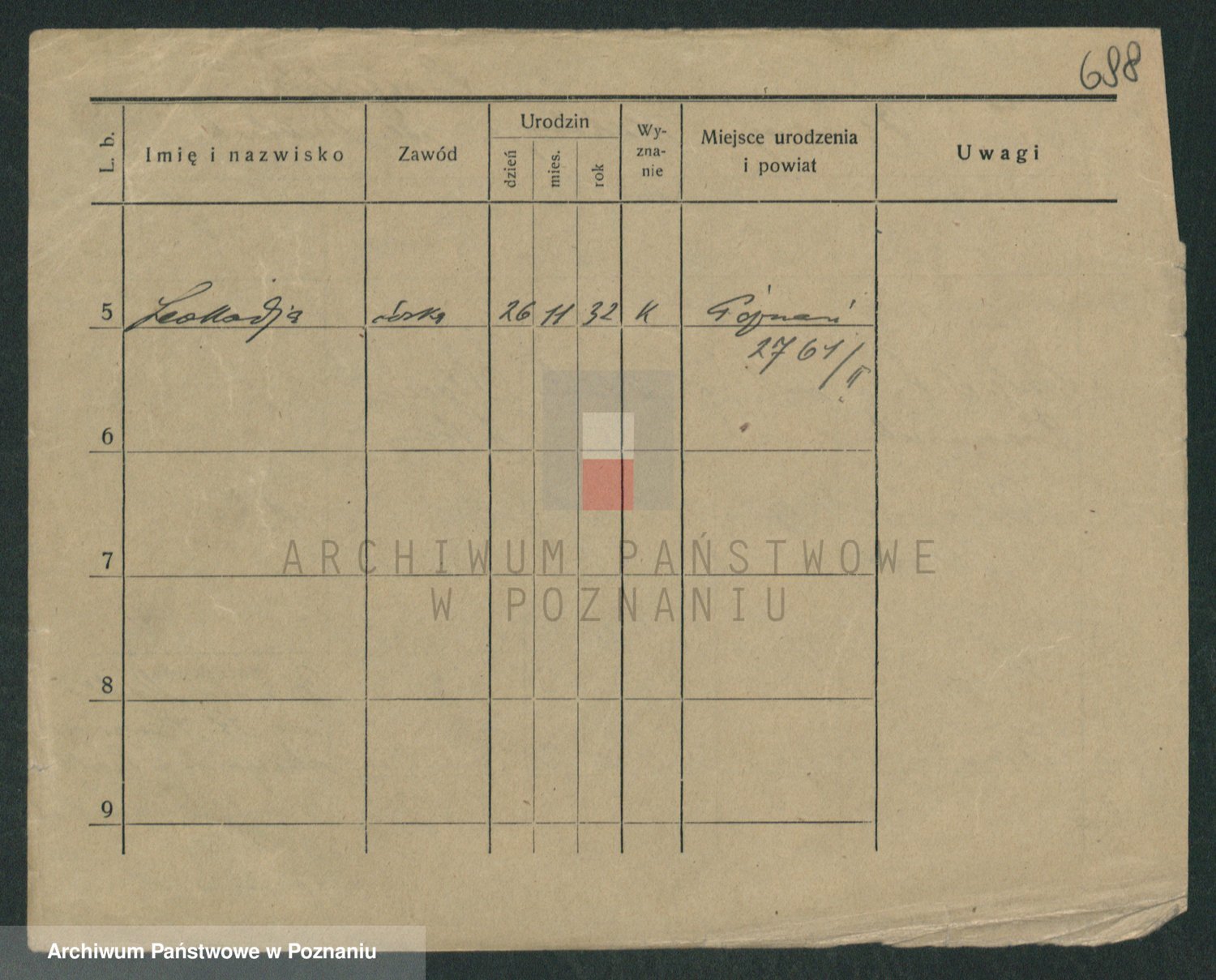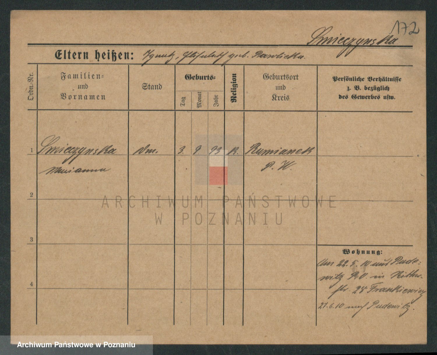 Podgląd karty osobowej dostępny jest po kliknięciu na nazwisko lub ikonkę karty. Można dokonywać powiększenia (ikony na górze) lub przechodzić między kolejnymi skanami (strzałki po bokach).