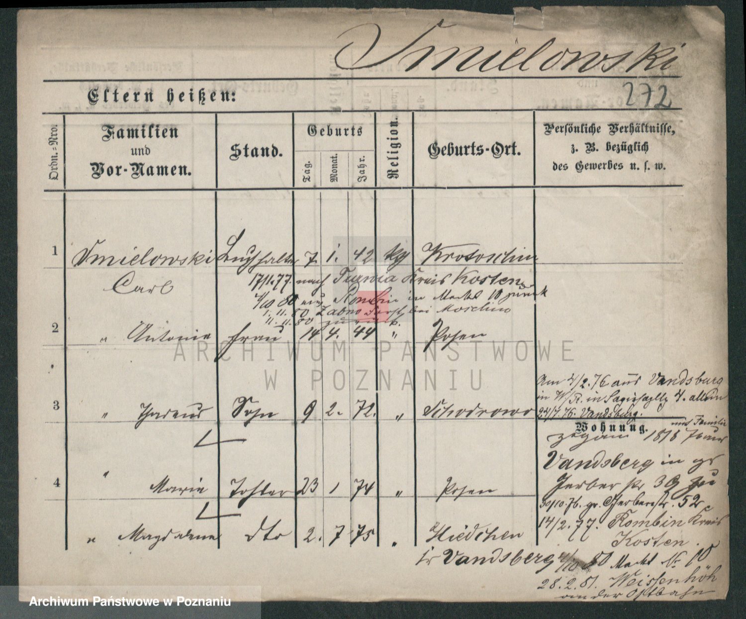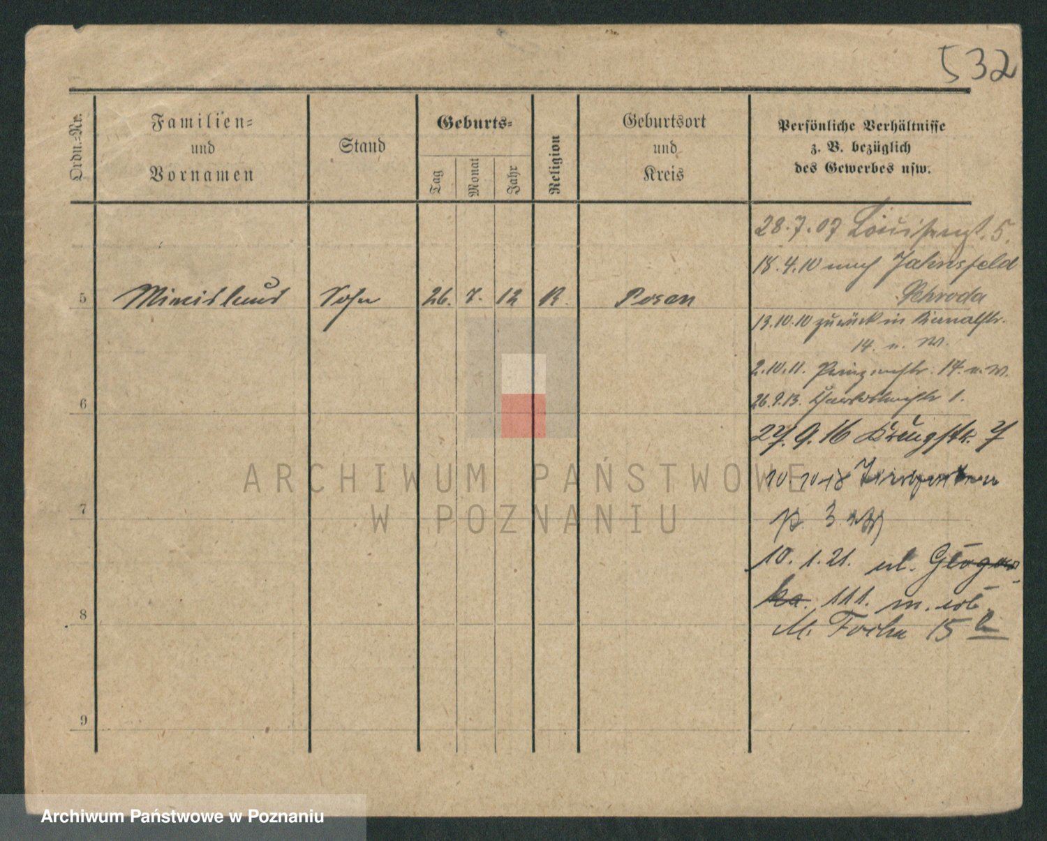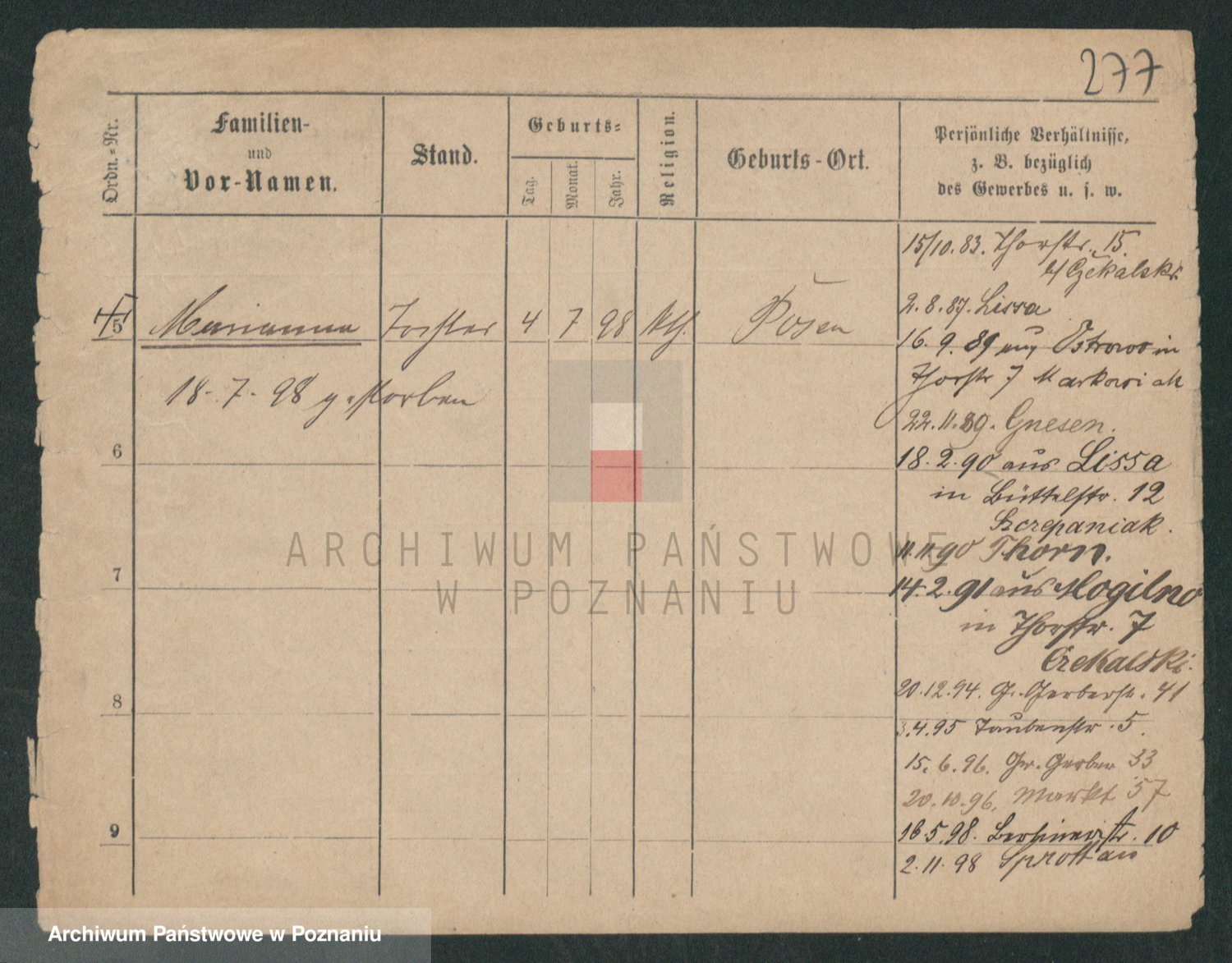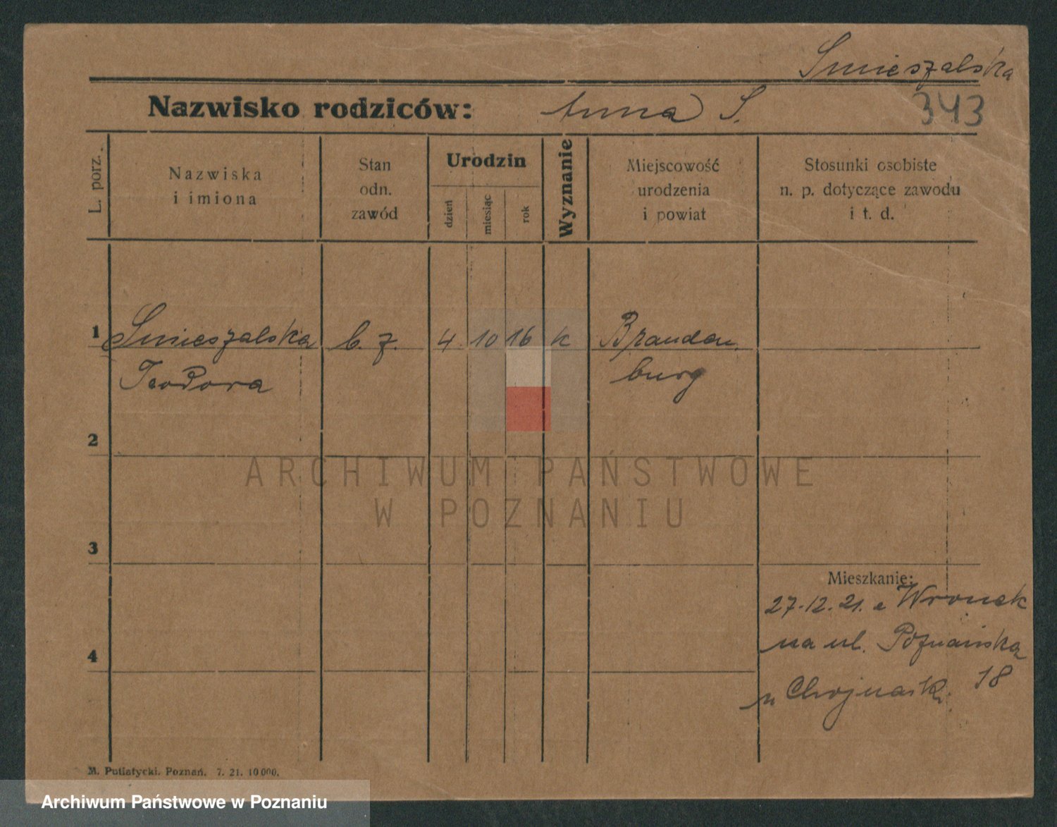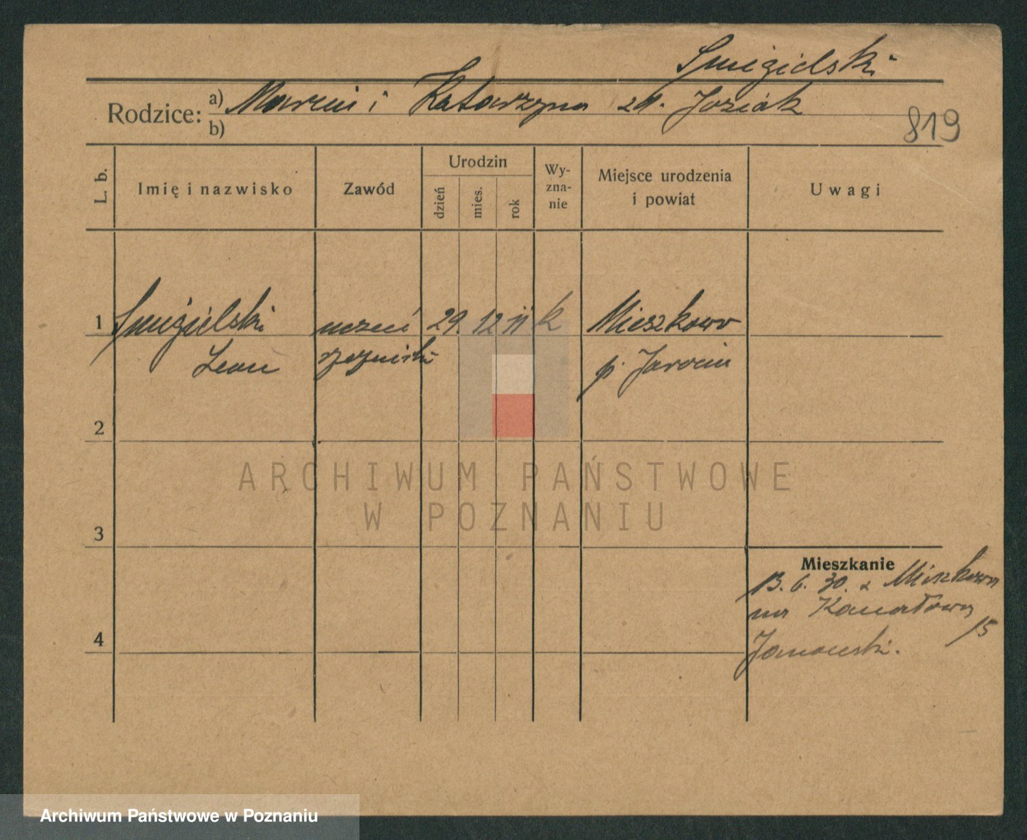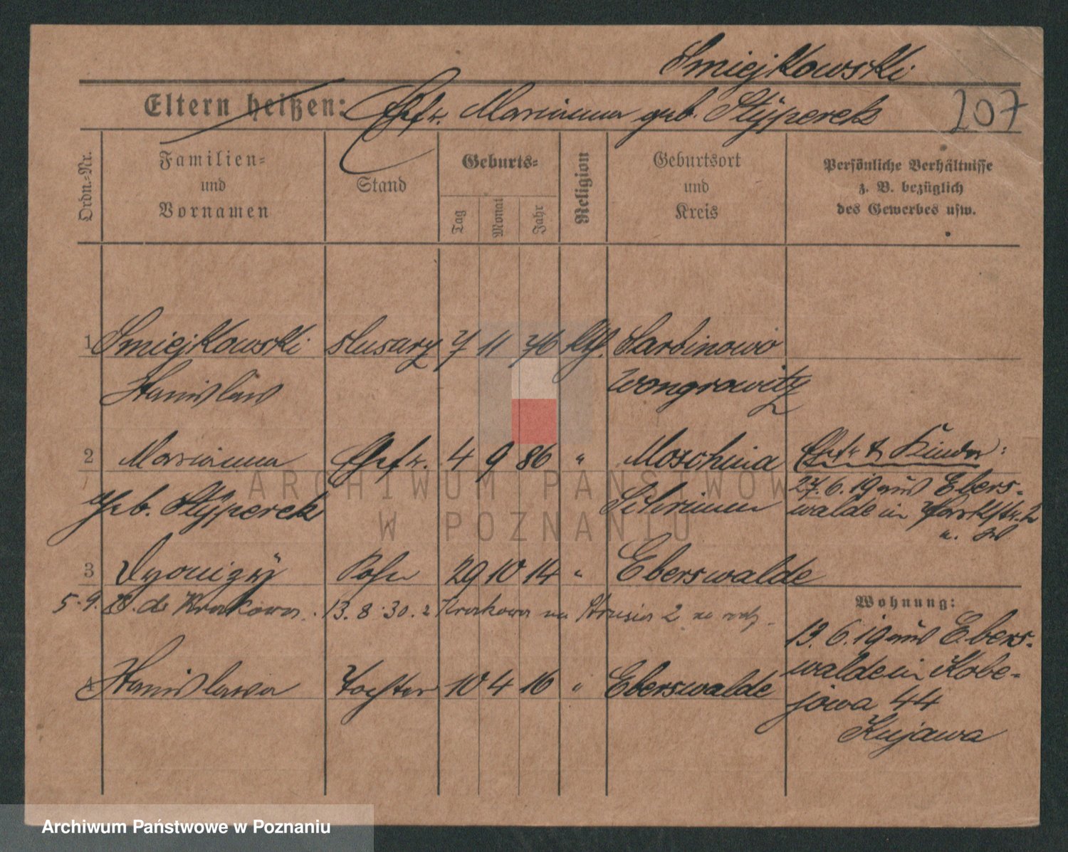 Podgląd karty osobowej dostępny jest po kliknięciu na nazwisko lub ikonkę karty. Można dokonywać powiększenia (ikony na górze) lub przechodzić między kolejnymi skanami (strzałki po bokach).