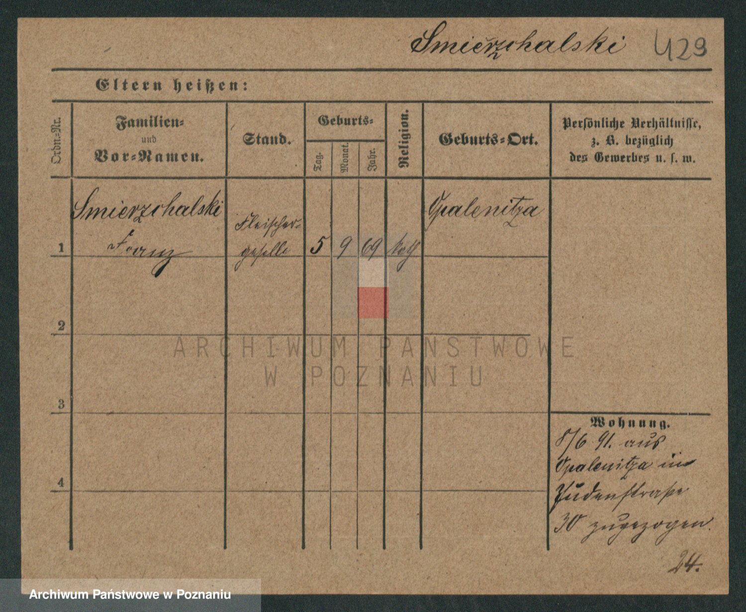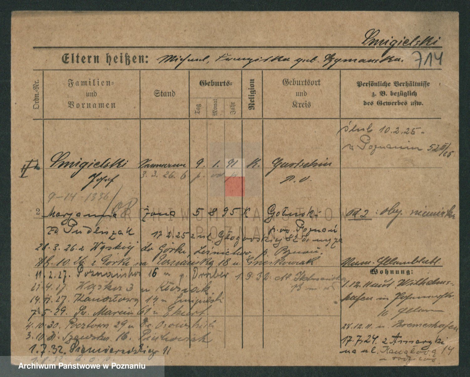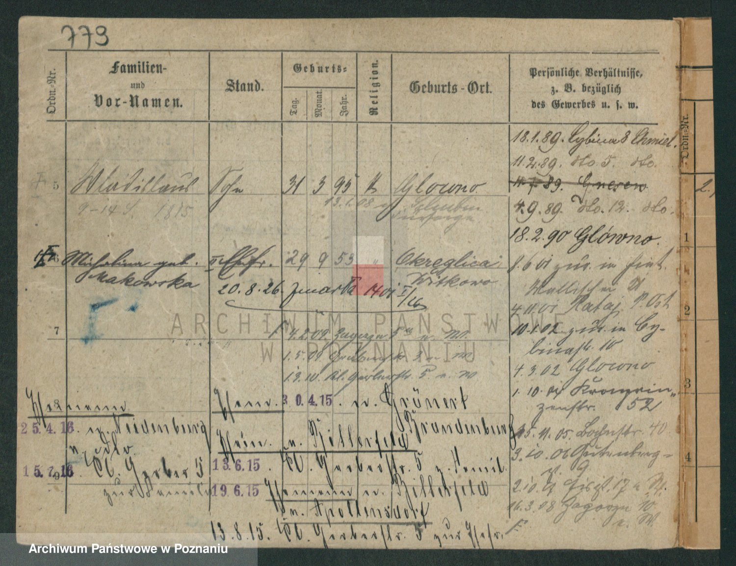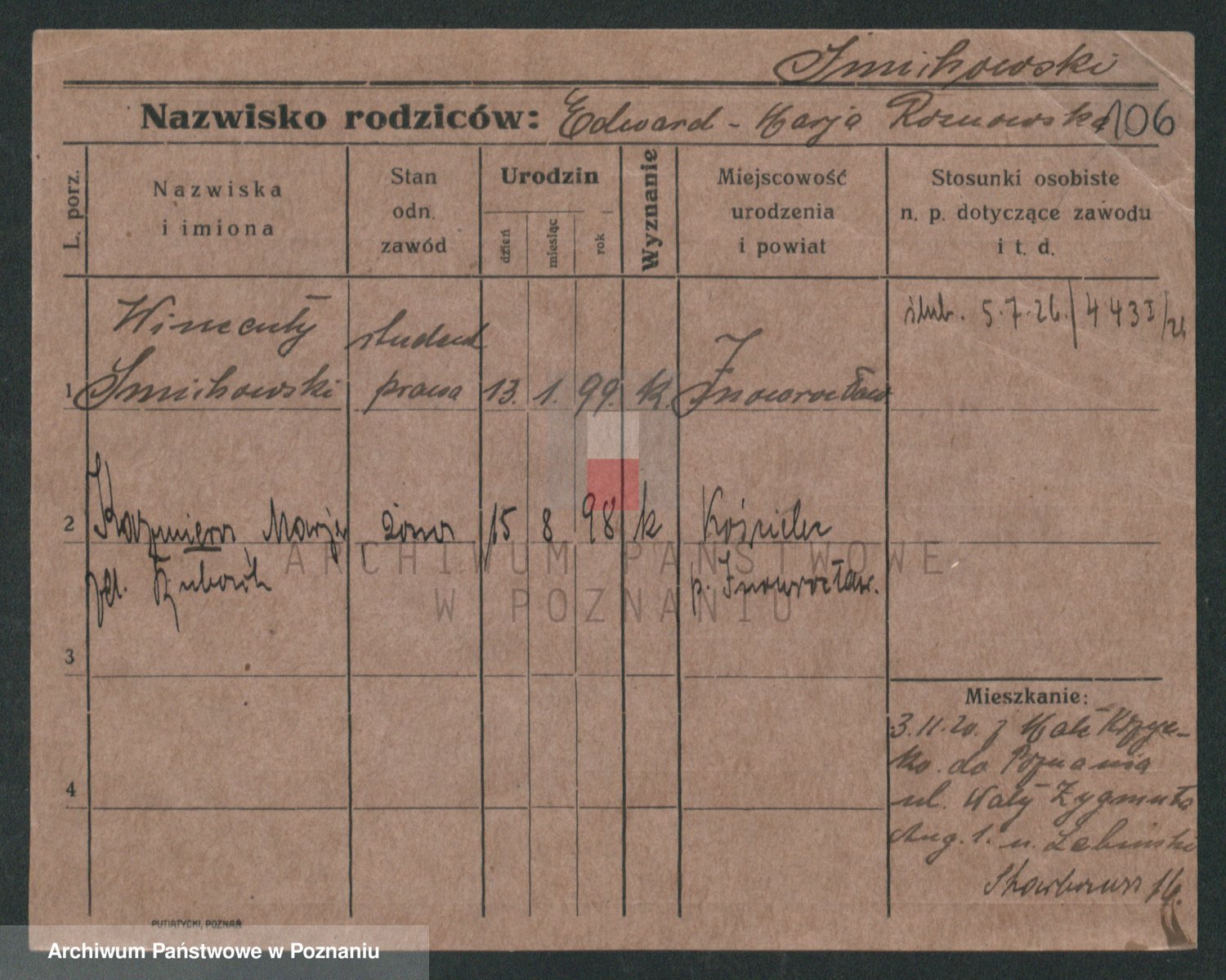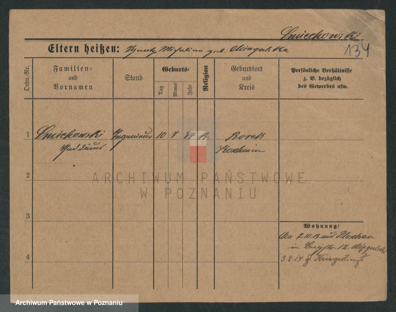 Podgląd karty osobowej dostępny jest po kliknięciu na nazwisko lub ikonkę karty. Można dokonywać powiększenia (ikony na górze) lub przechodzić między kolejnymi skanami (strzałki po bokach).