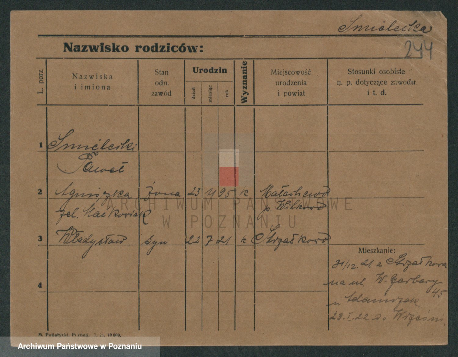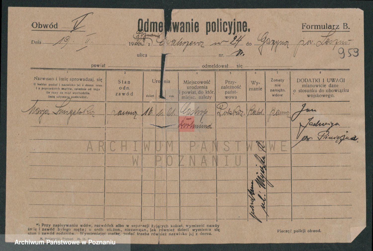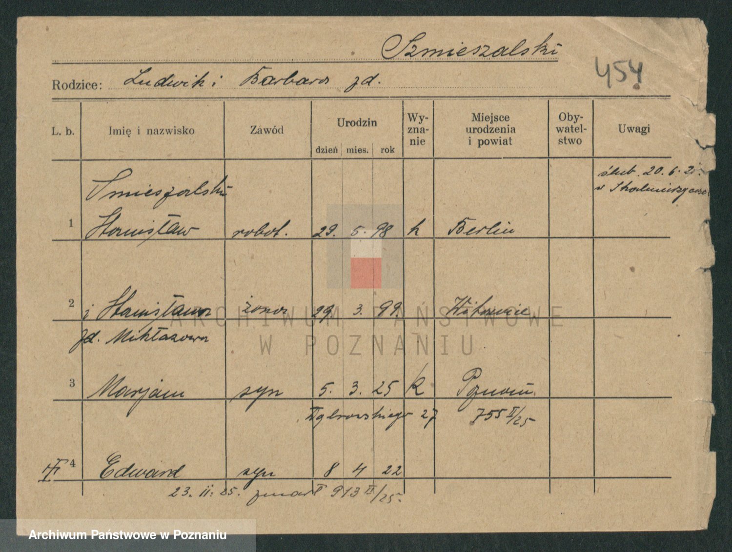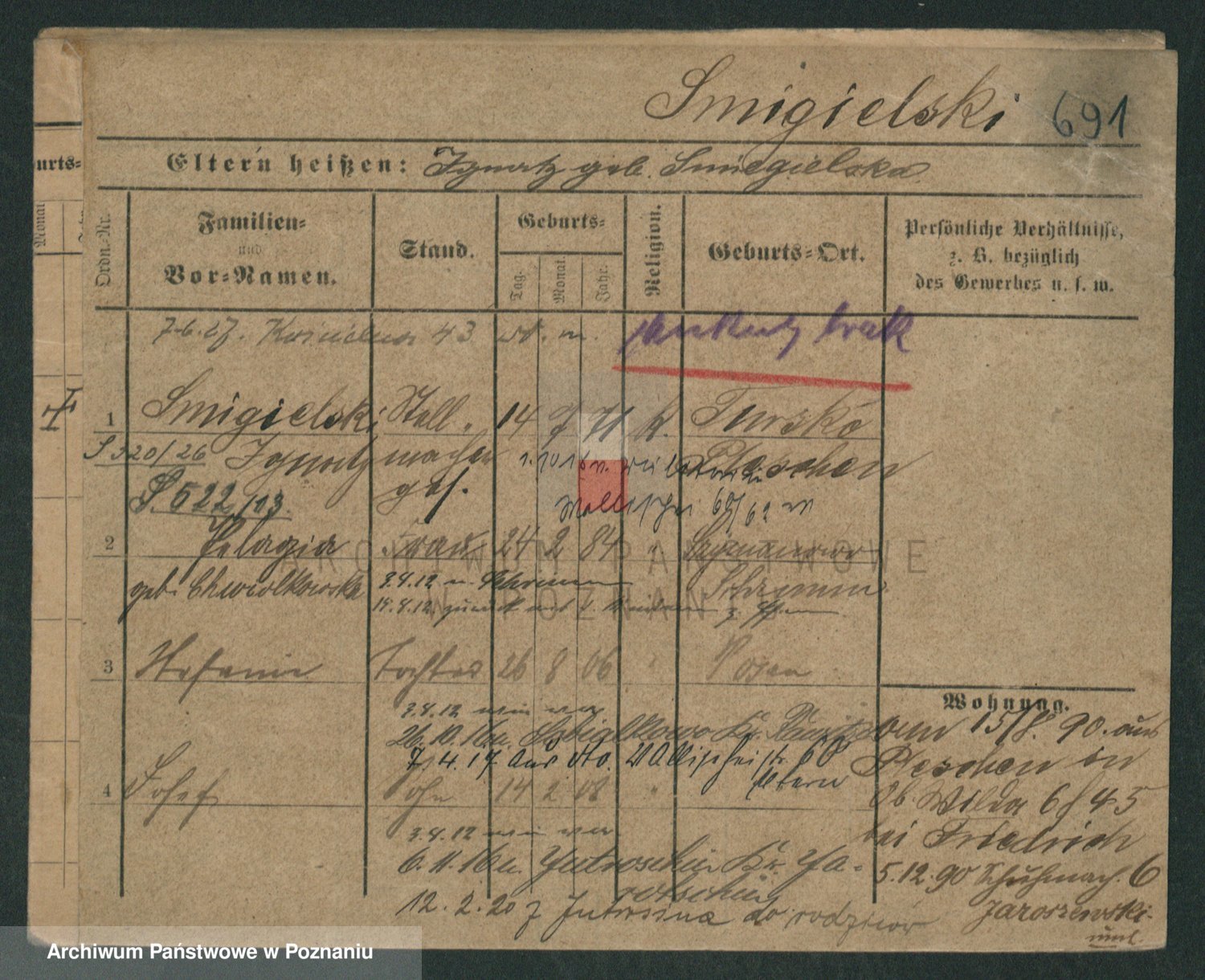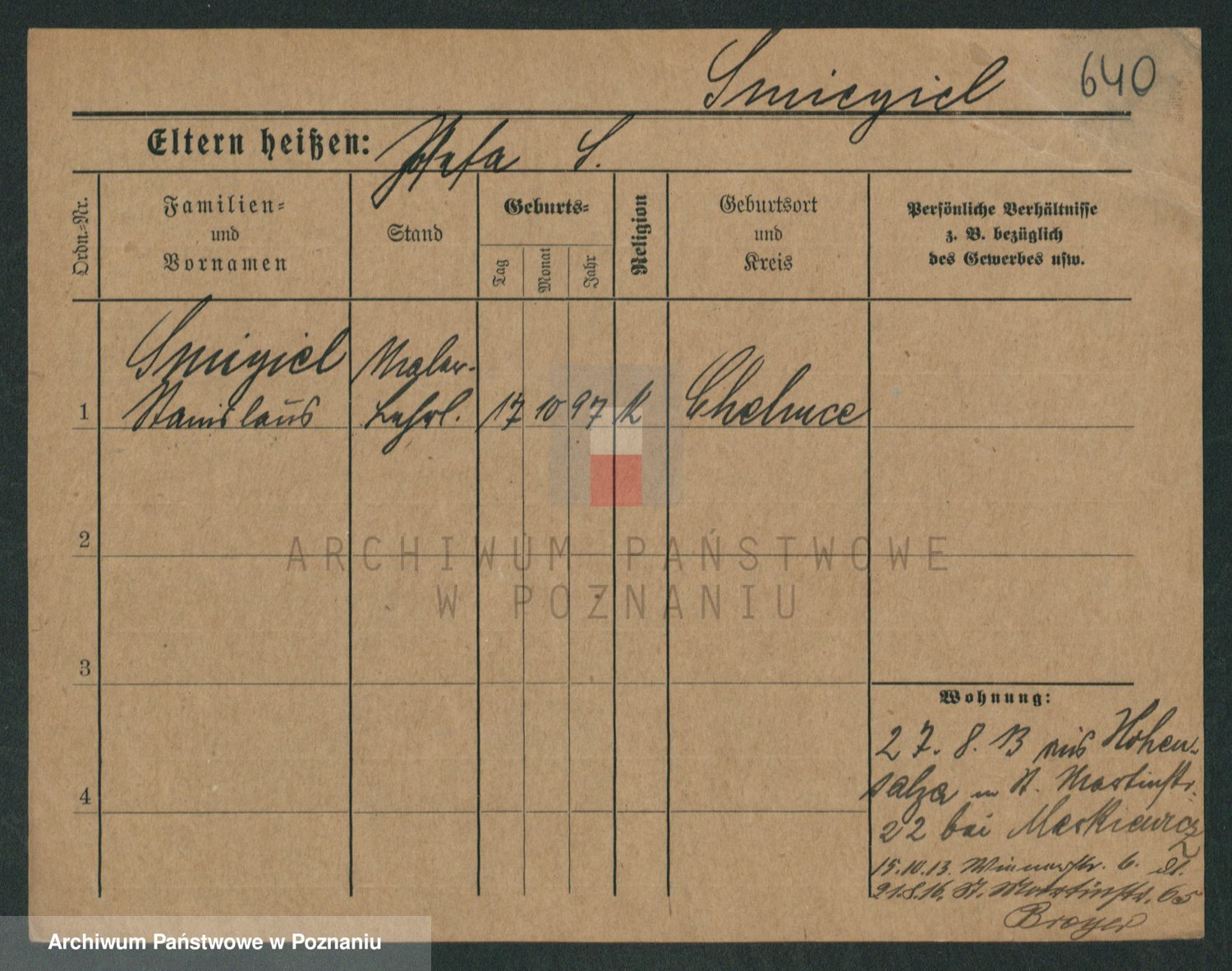 Podgląd karty osobowej dostępny jest po kliknięciu na nazwisko lub ikonkę karty. Można dokonywać powiększenia (ikony na górze) lub przechodzić między kolejnymi skanami (strzałki po bokach).