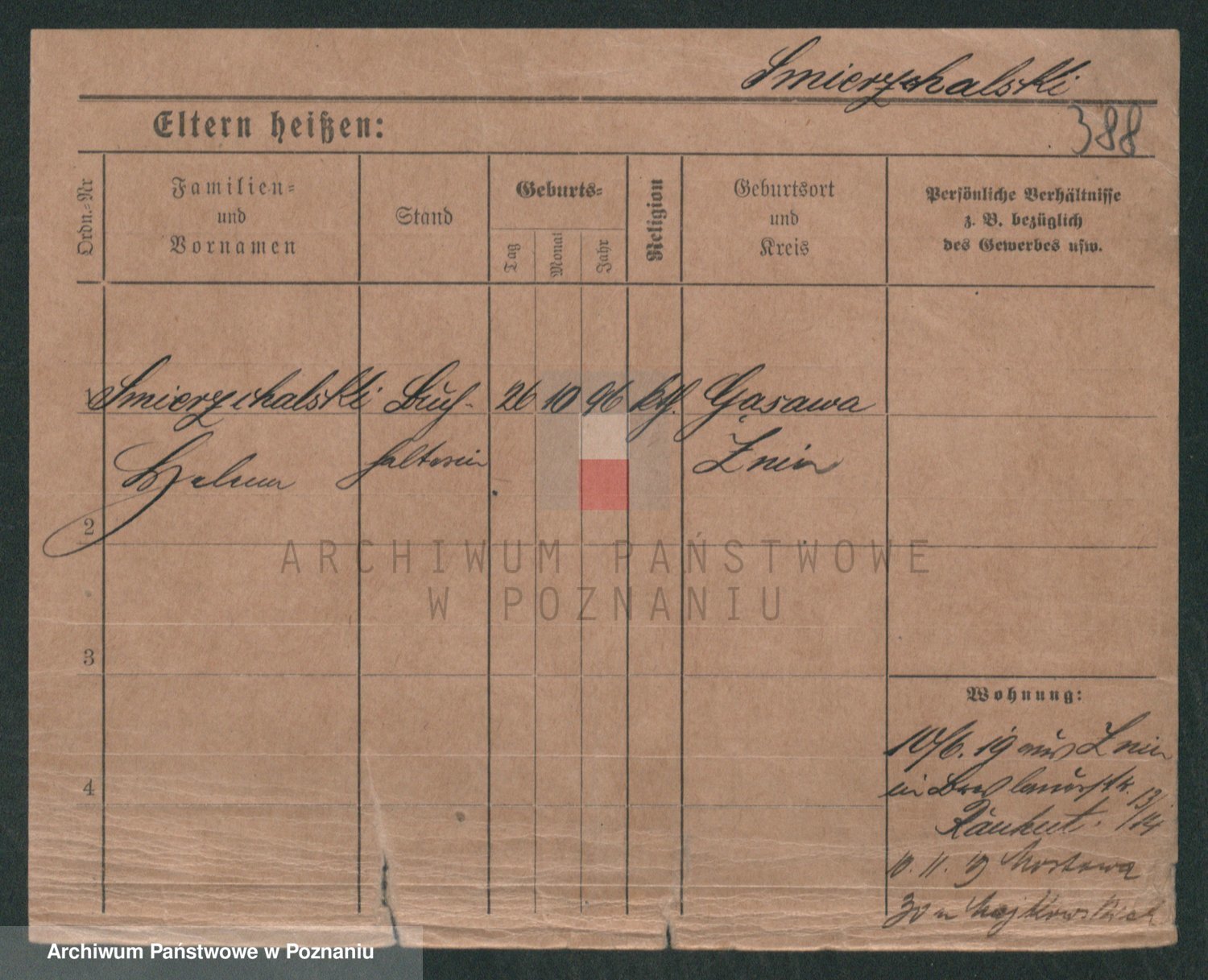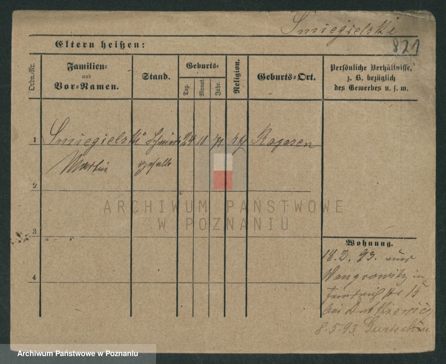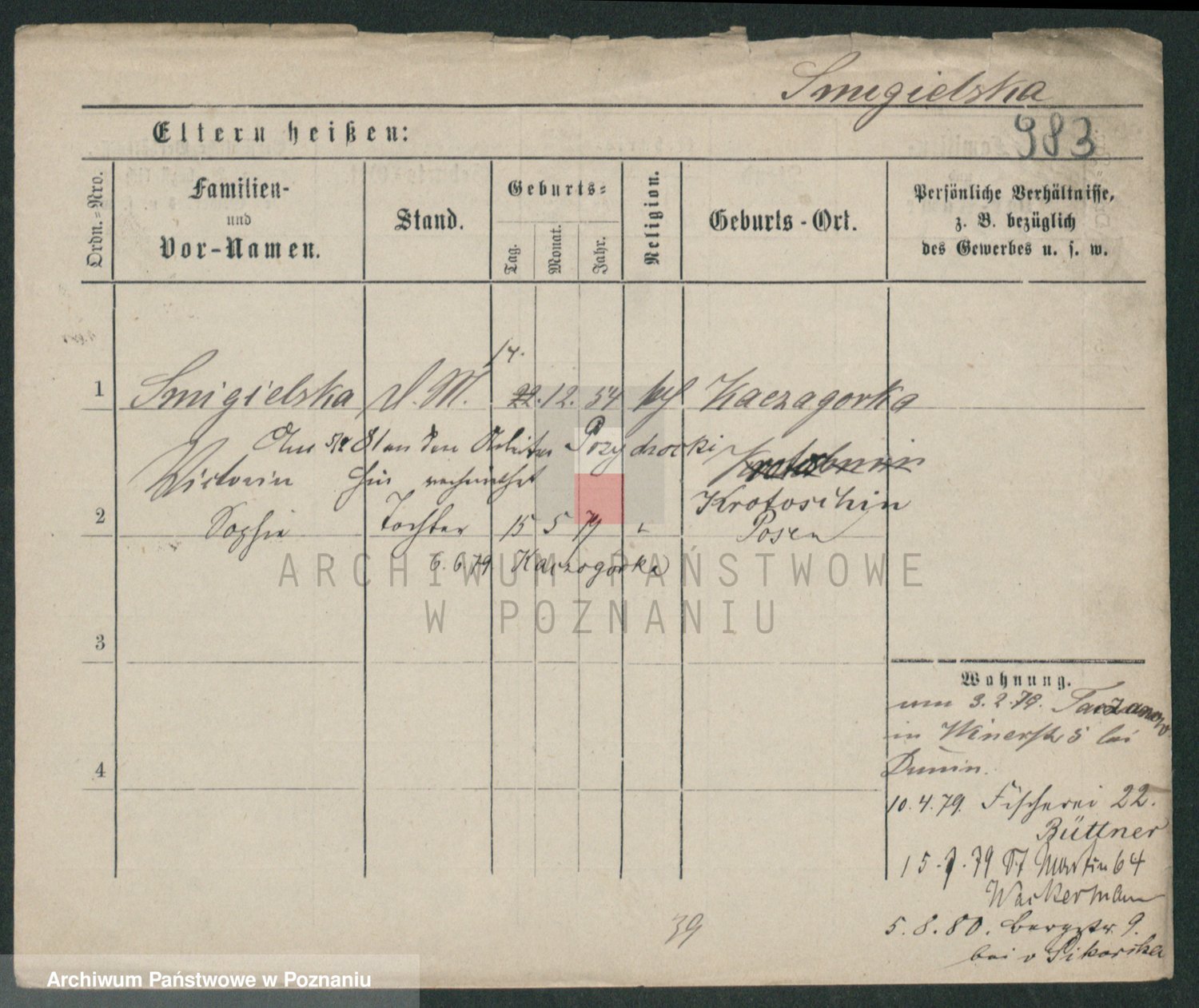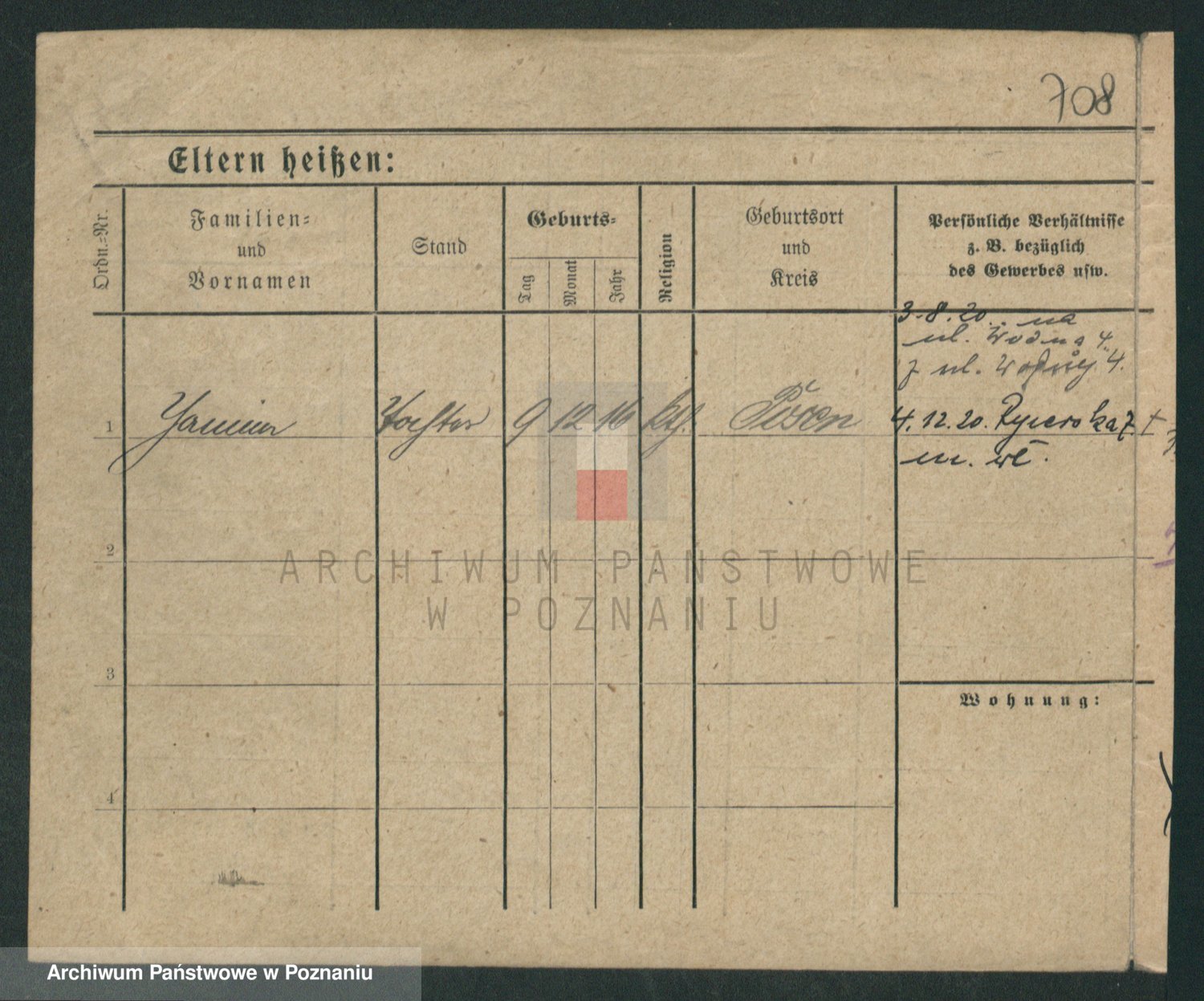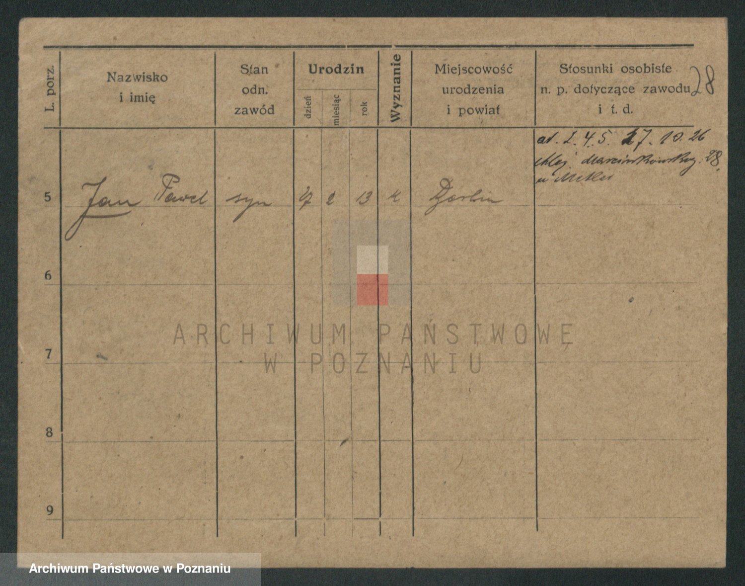 Podgląd karty osobowej dostępny jest po kliknięciu na nazwisko lub ikonkę karty. Można dokonywać powiększenia (ikony na górze) lub przechodzić między kolejnymi skanami (strzałki po bokach).