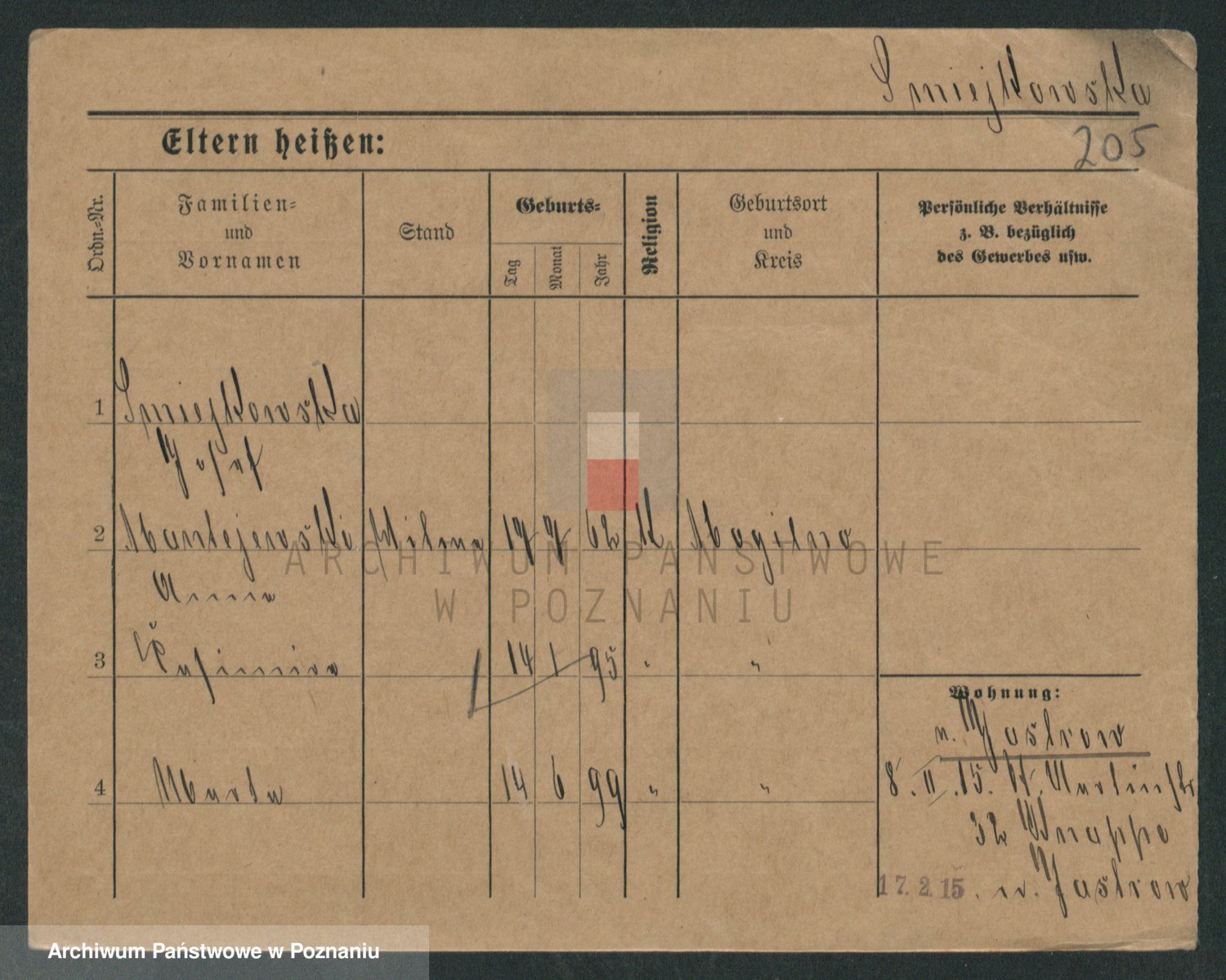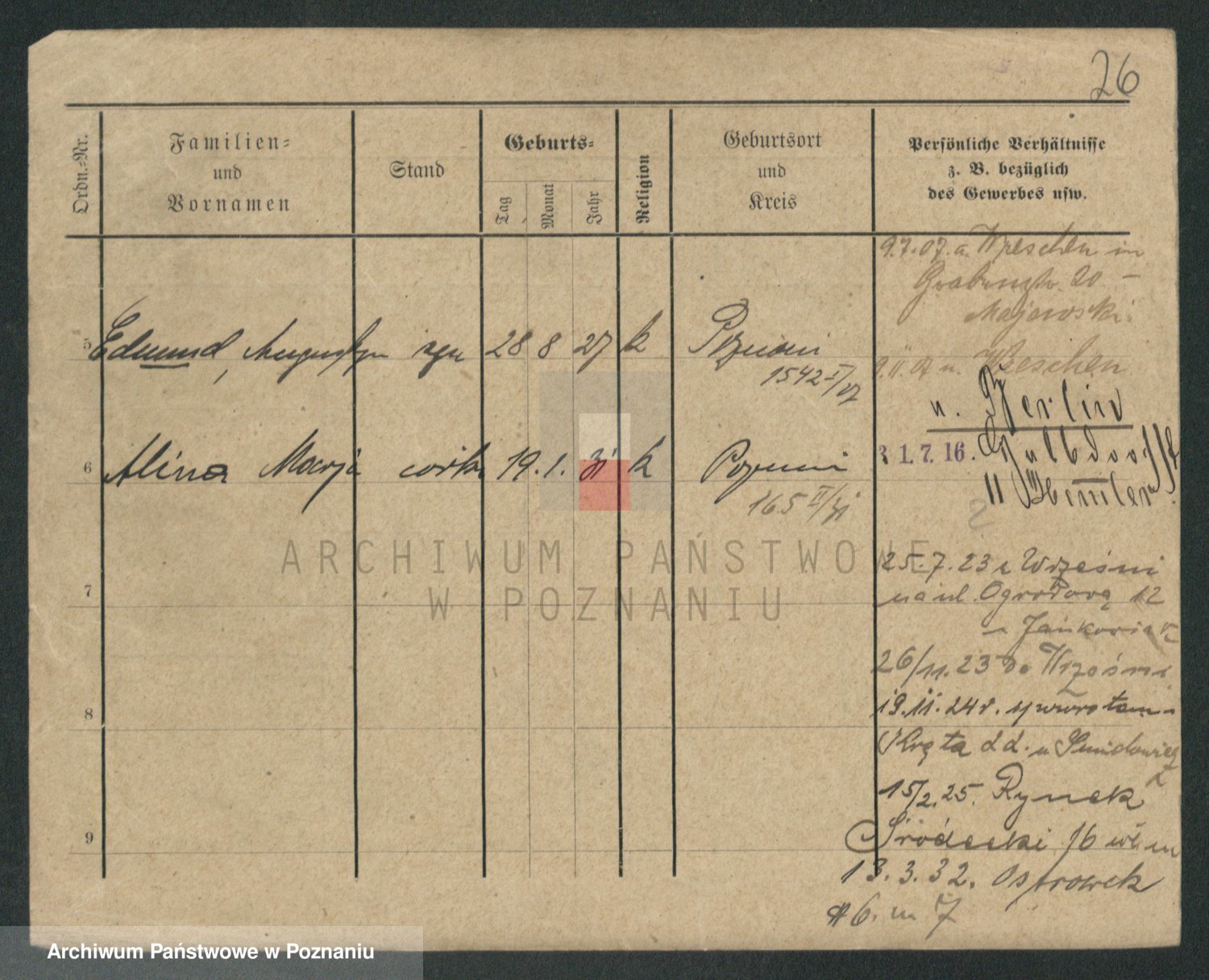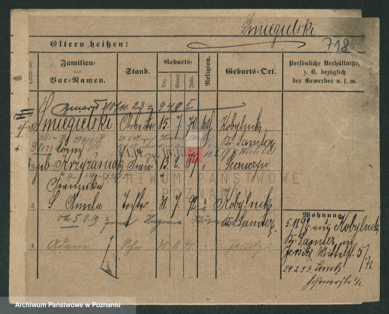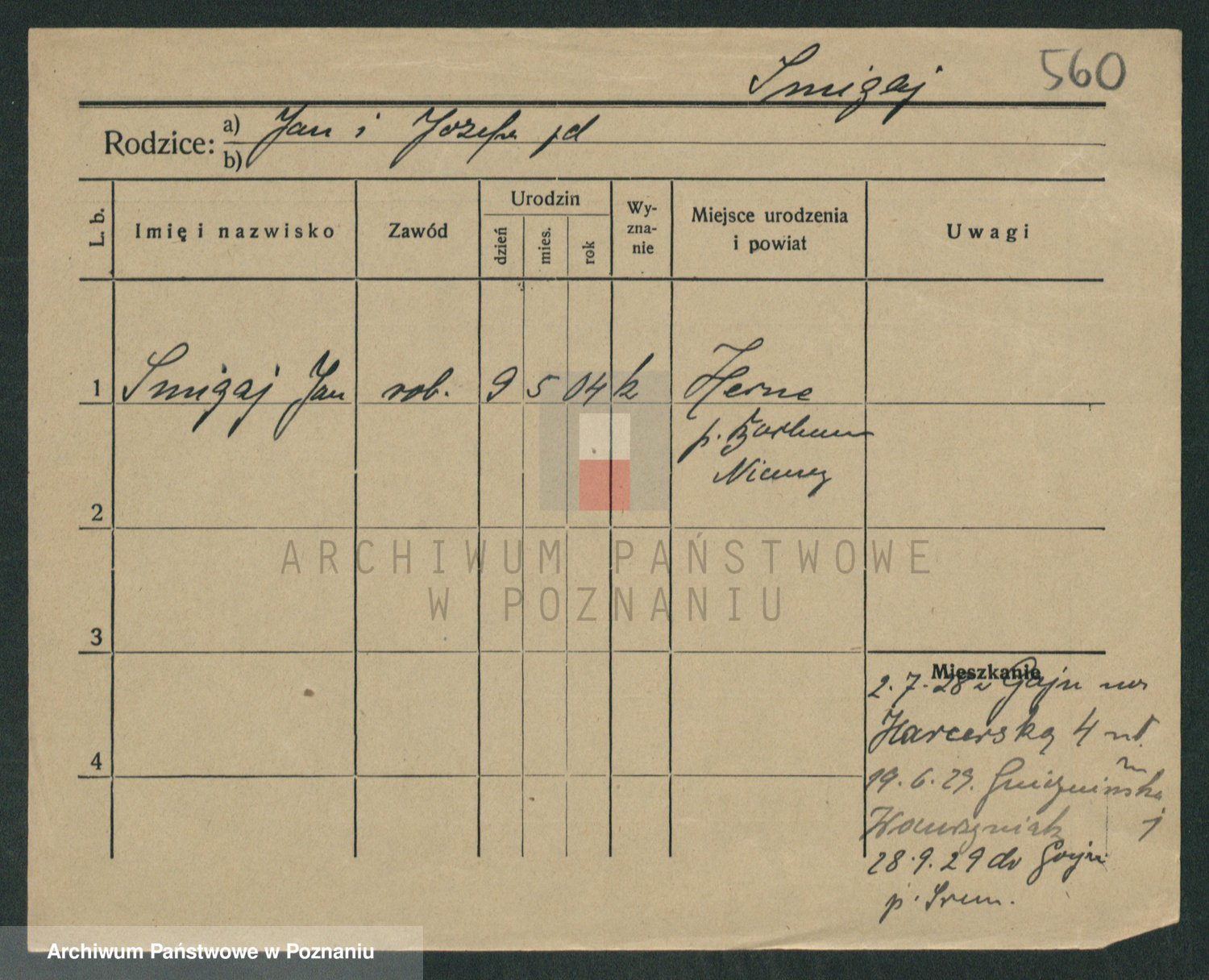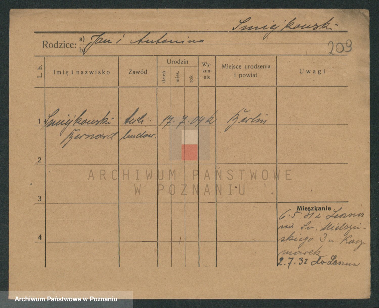 Podgląd karty osobowej dostępny jest po kliknięciu na nazwisko lub ikonkę karty. Można dokonywać powiększenia (ikony na górze) lub przechodzić między kolejnymi skanami (strzałki po bokach).