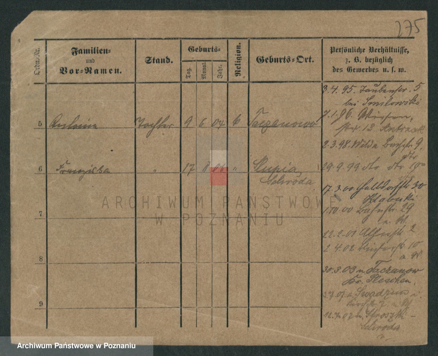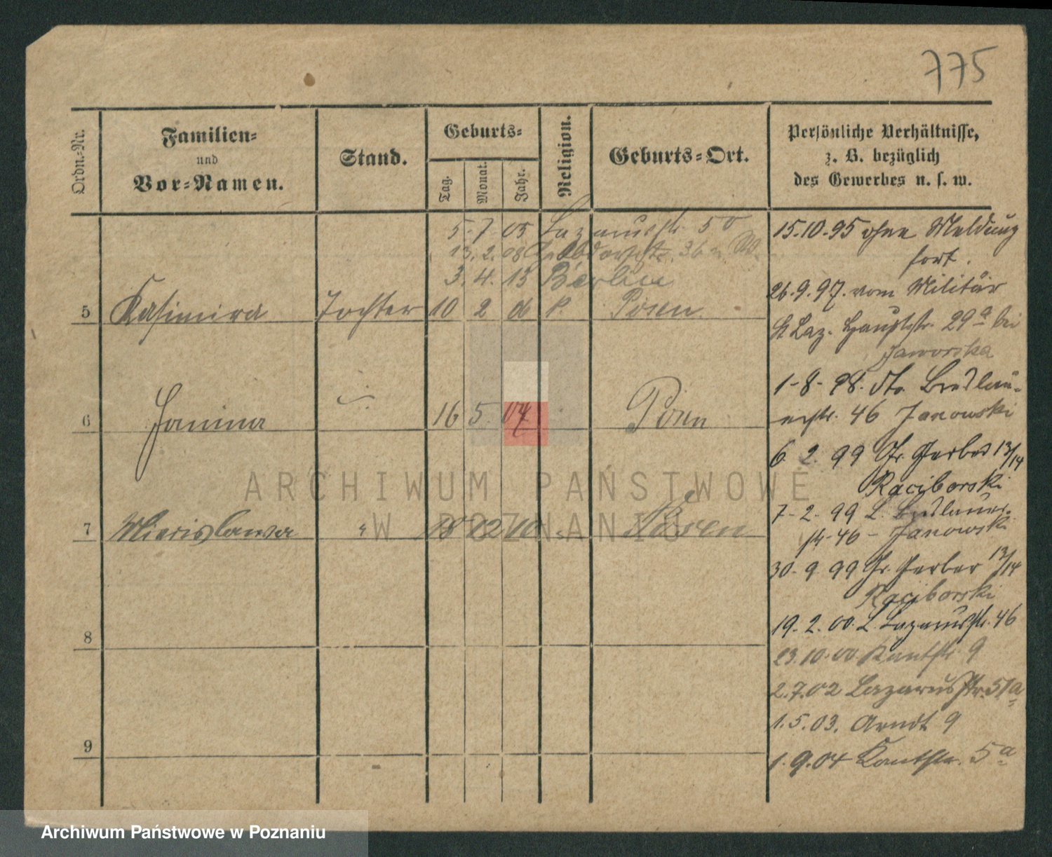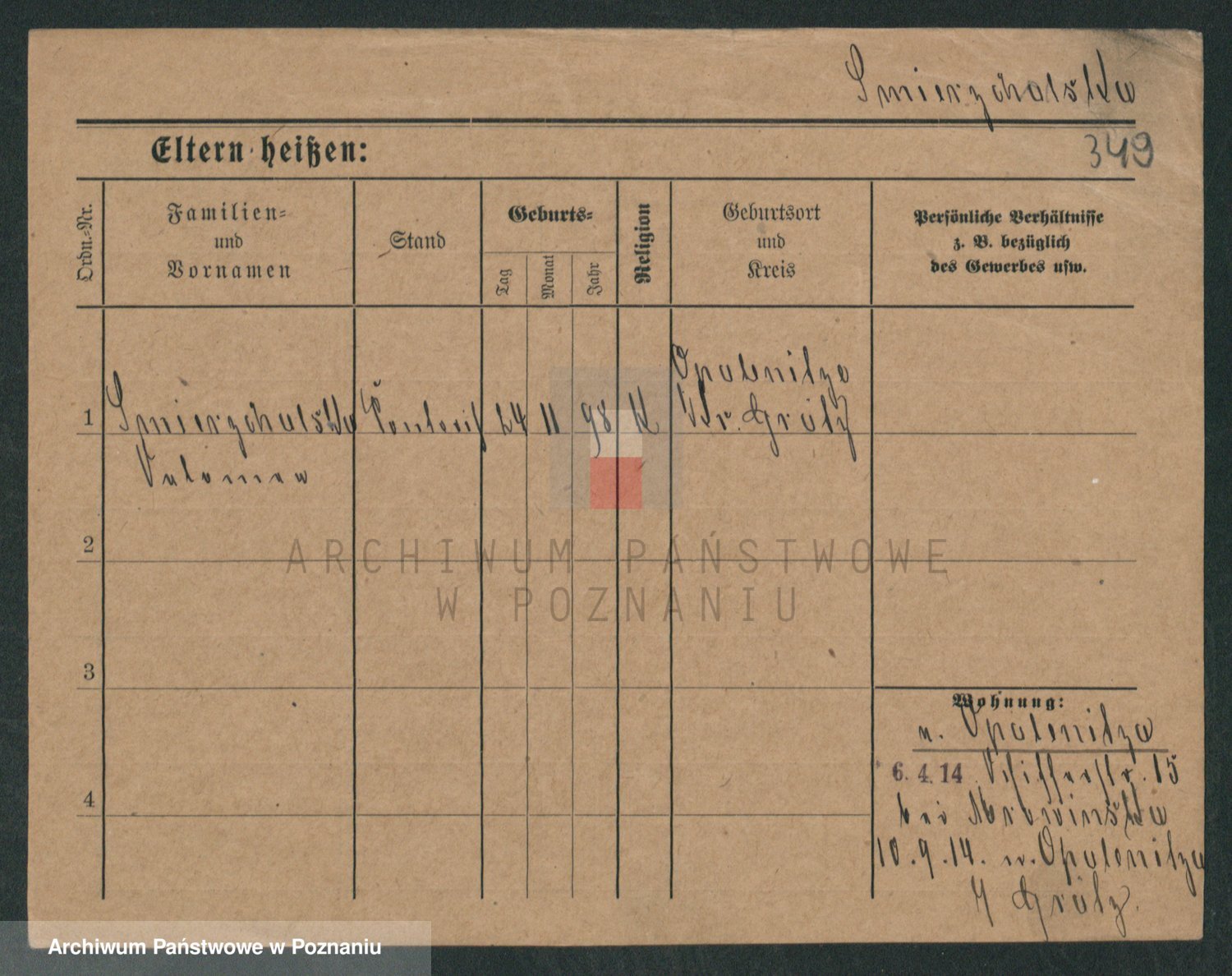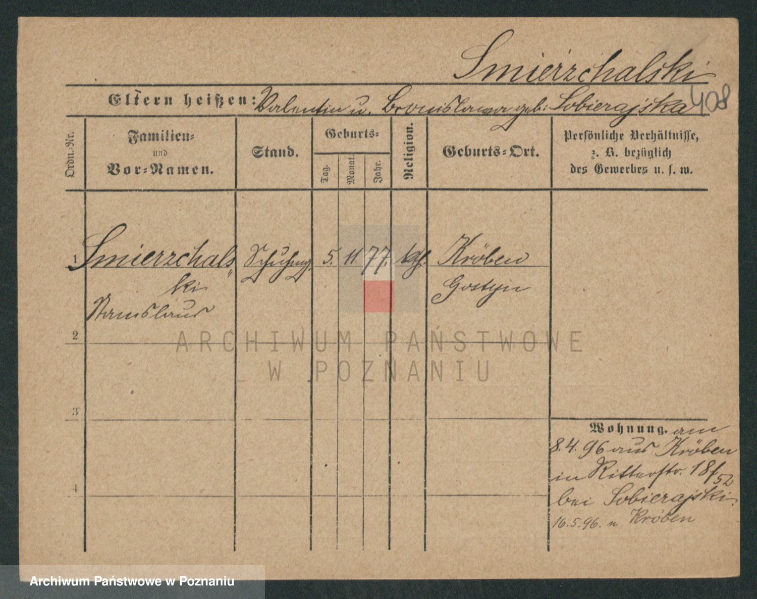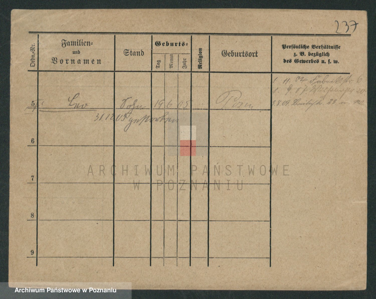 Podgląd karty osobowej dostępny jest po kliknięciu na nazwisko lub ikonkę karty. Można dokonywać powiększenia (ikony na górze) lub przechodzić między kolejnymi skanami (strzałki po bokach).
