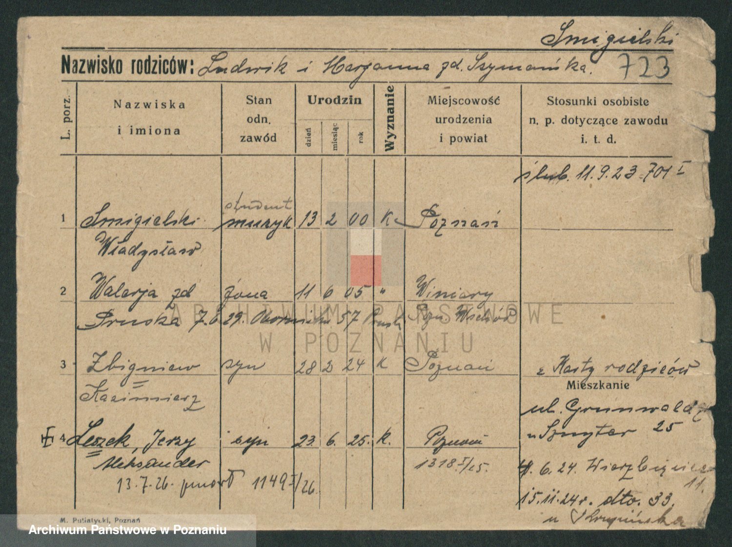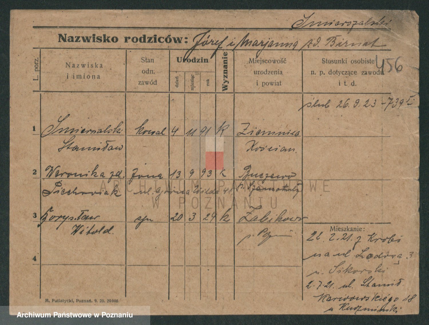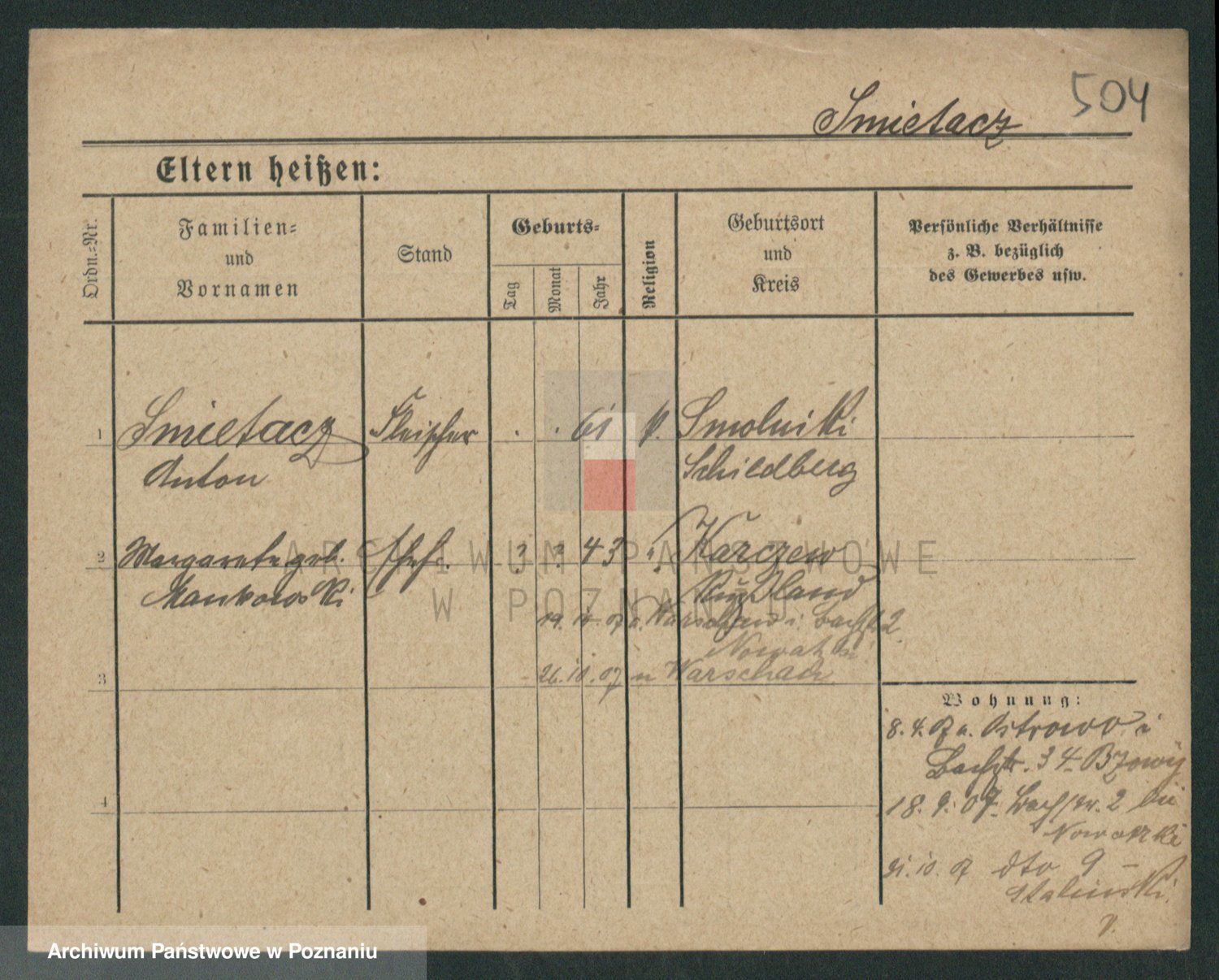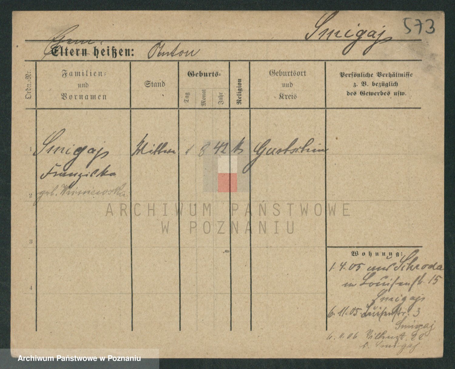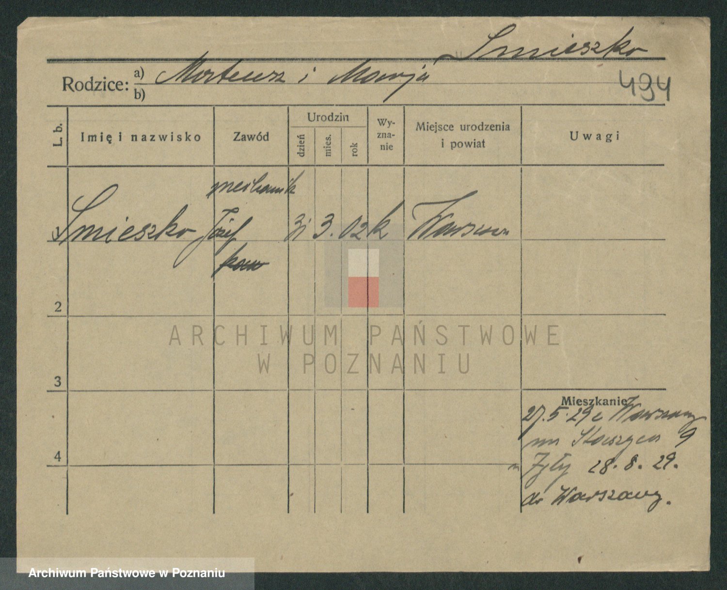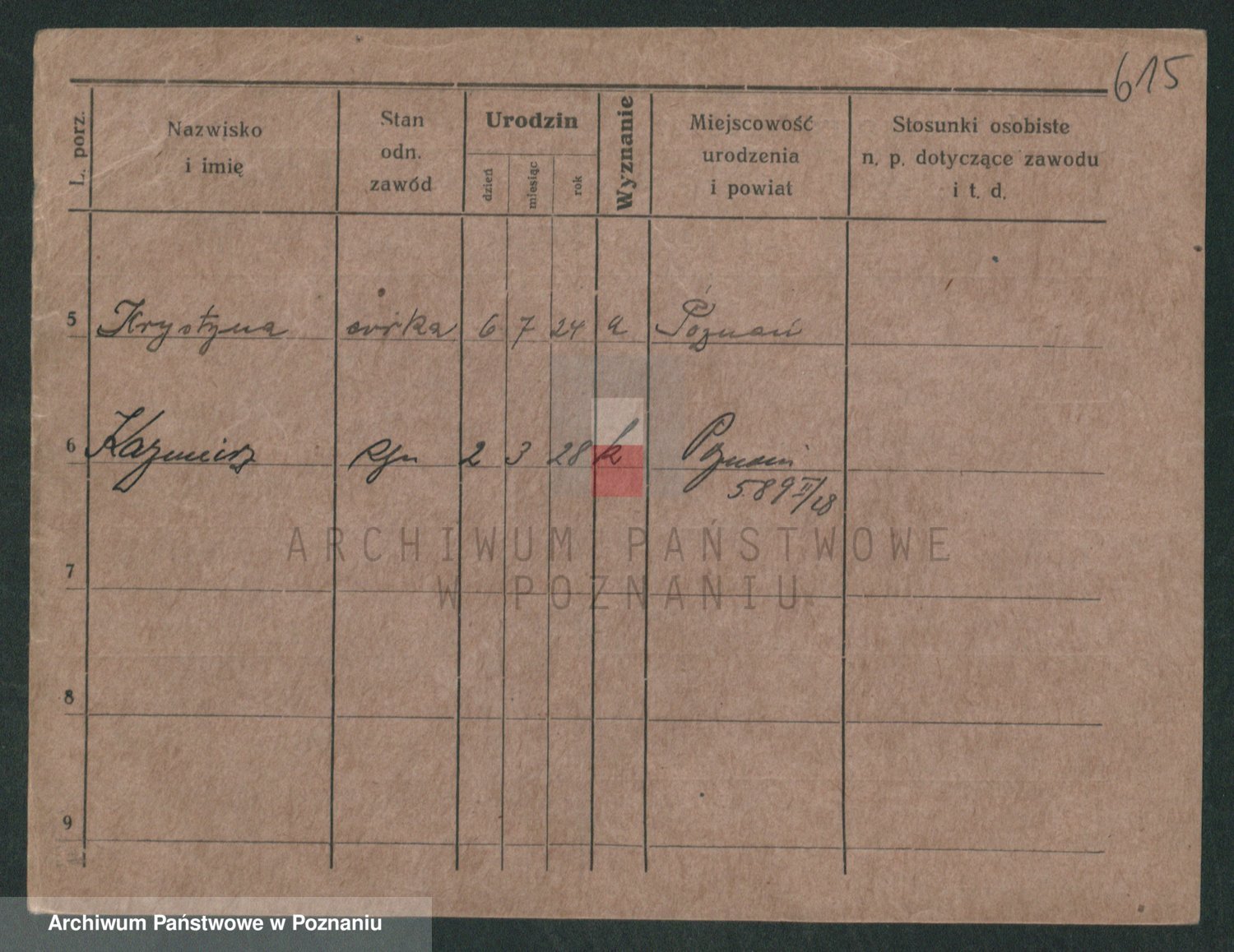 Podgląd karty osobowej dostępny jest po kliknięciu na nazwisko lub ikonkę karty. Można dokonywać powiększenia (ikony na górze) lub przechodzić między kolejnymi skanami (strzałki po bokach).