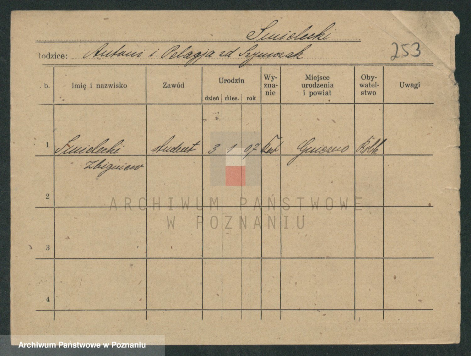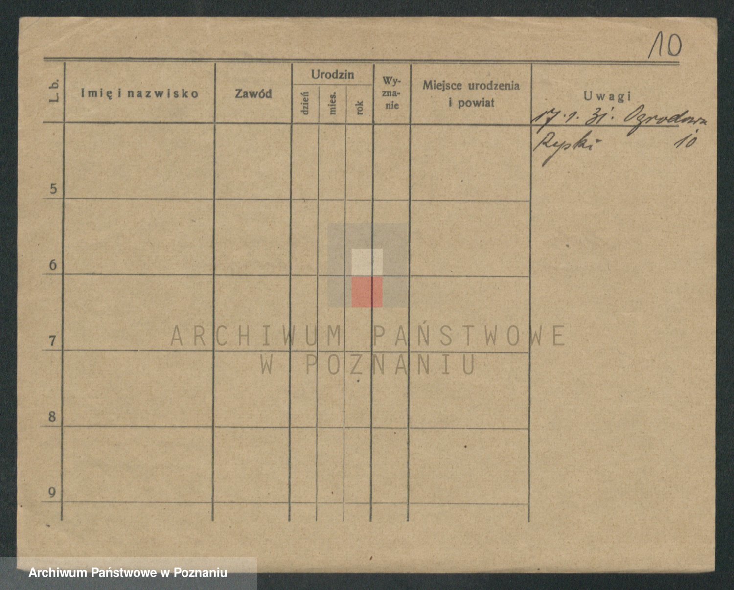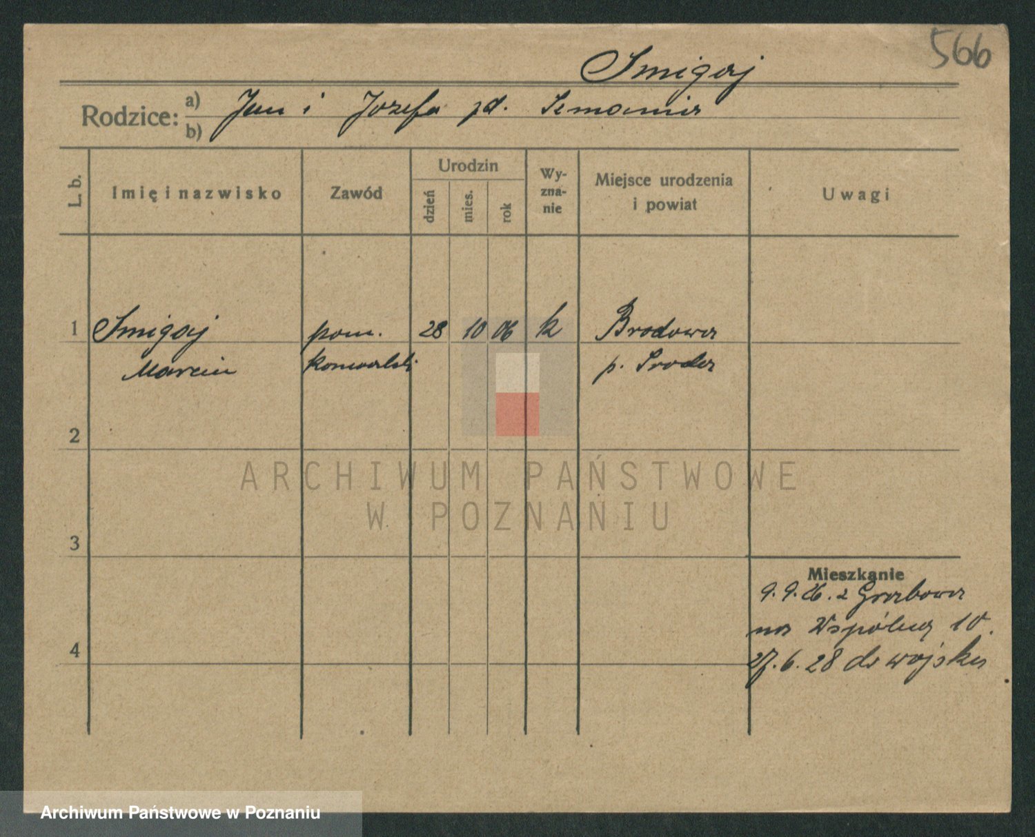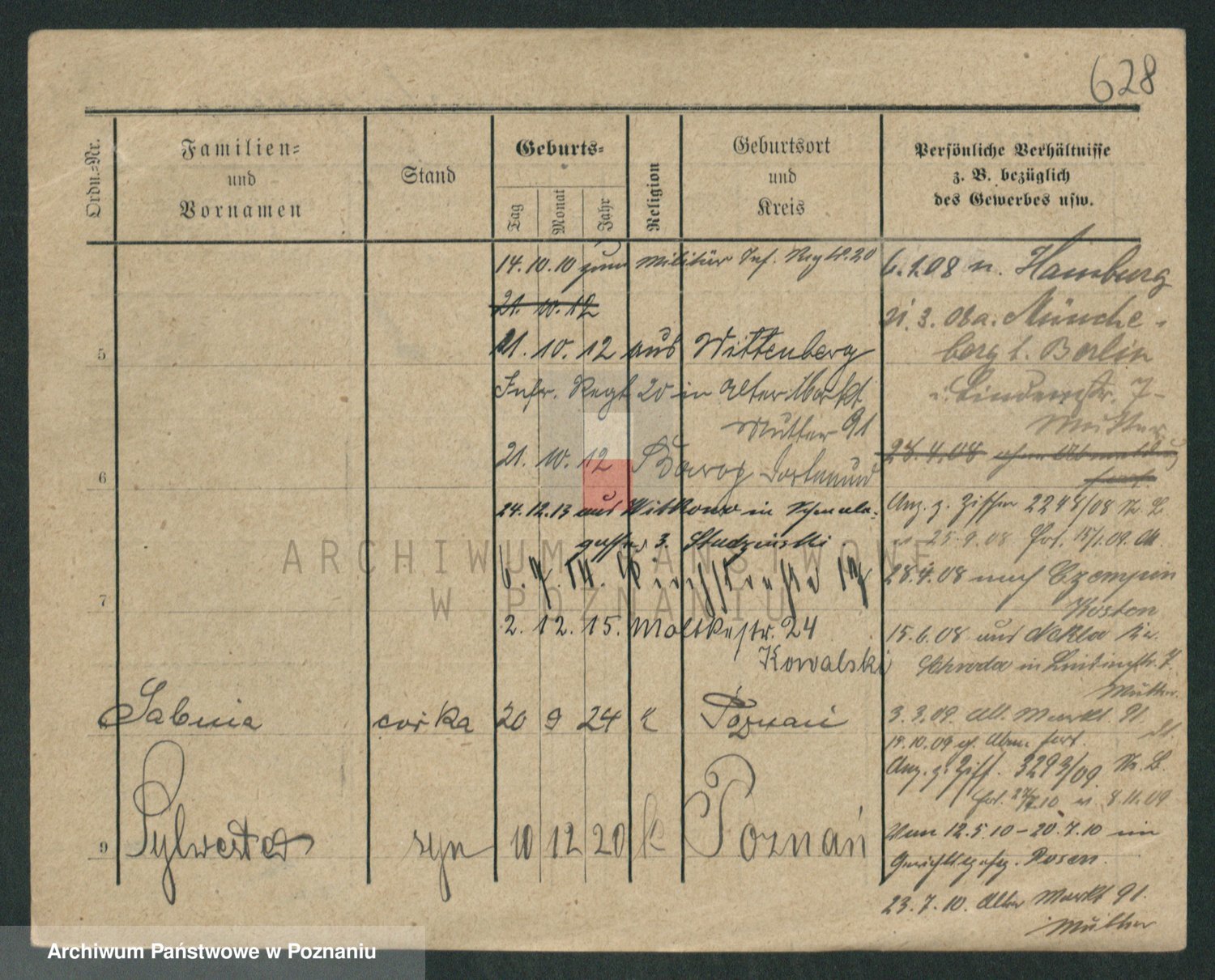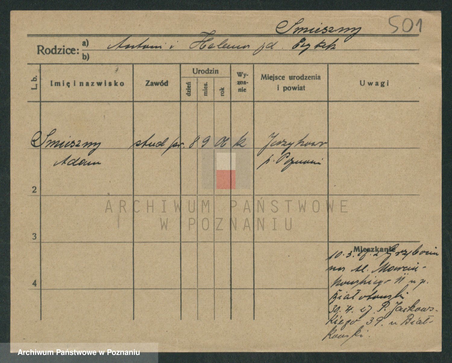 Podgląd karty osobowej dostępny jest po kliknięciu na nazwisko lub ikonkę karty. Można dokonywać powiększenia (ikony na górze) lub przechodzić między kolejnymi skanami (strzałki po bokach).